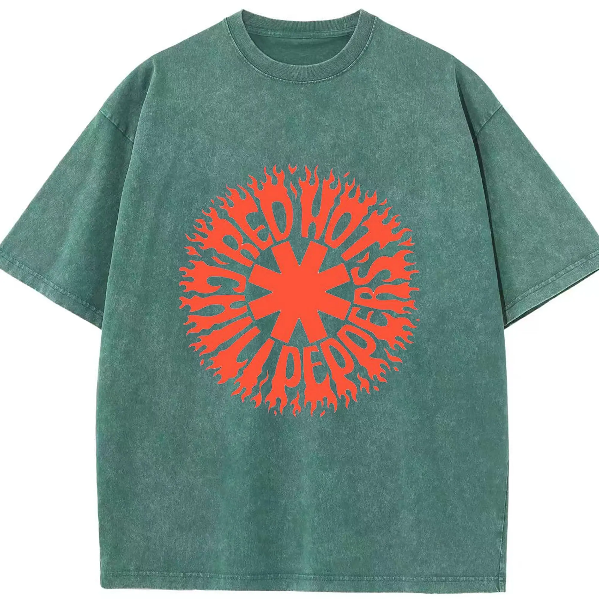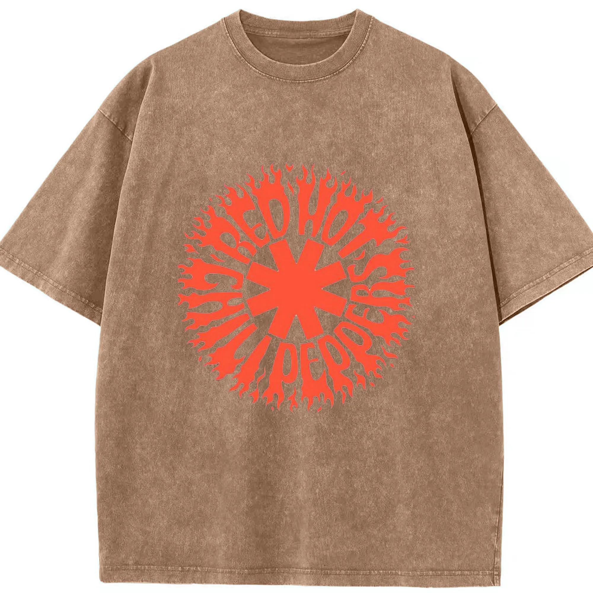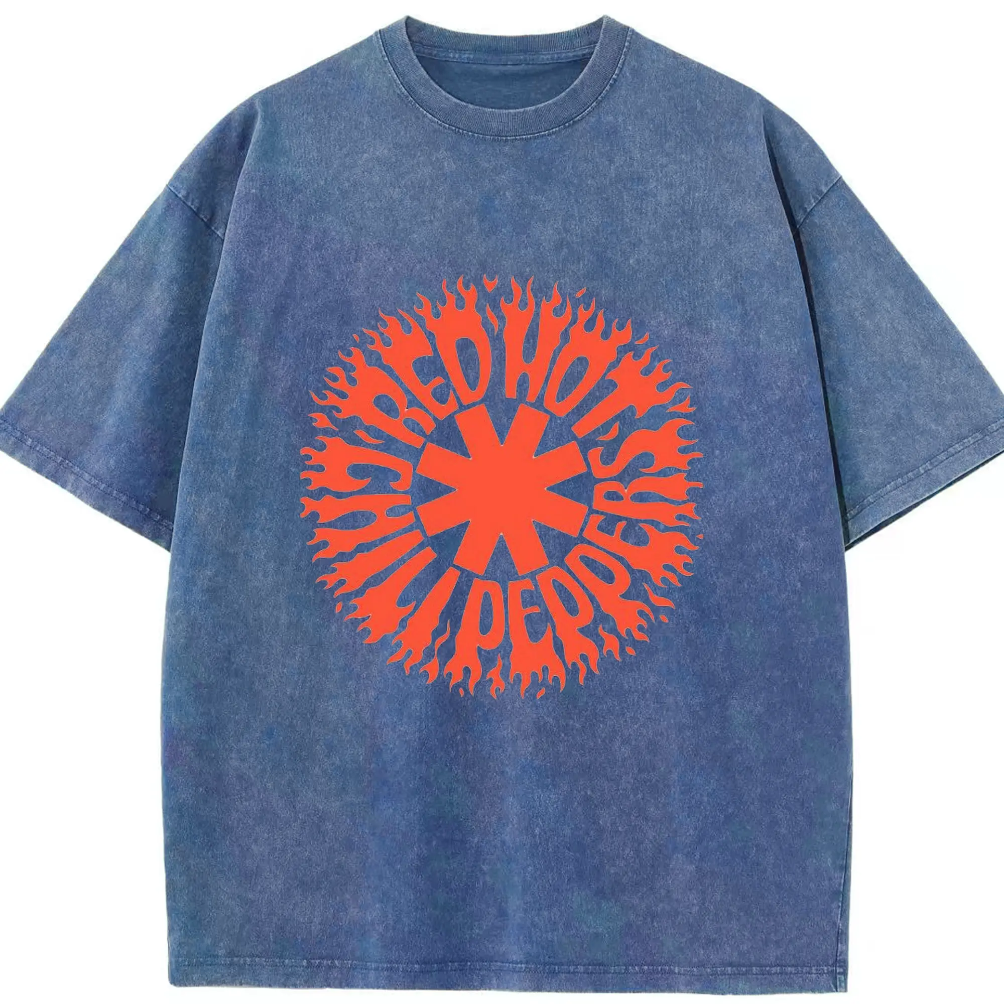 Red Hot Chili Peppers Flame Logo DIY - Washed Vintage Look 230g Cotton Oversized T-Shirt With Front Heat Transfer Print – Soft, Lightweight, Stylish Fit – Comfortable Casual Wear For Sports & Everyday Use