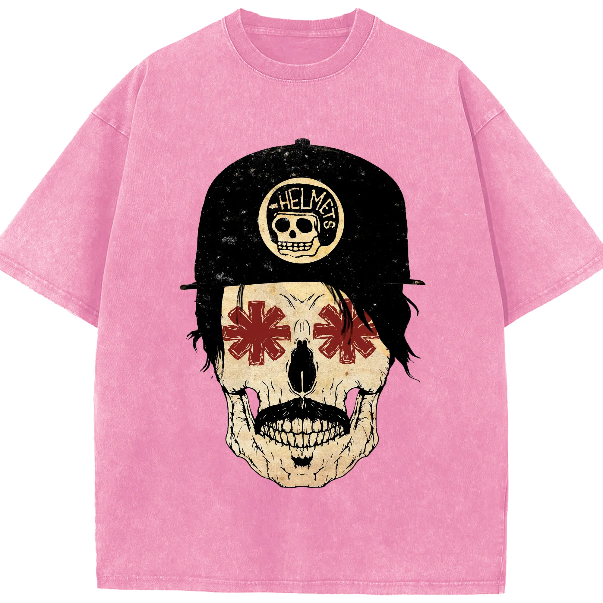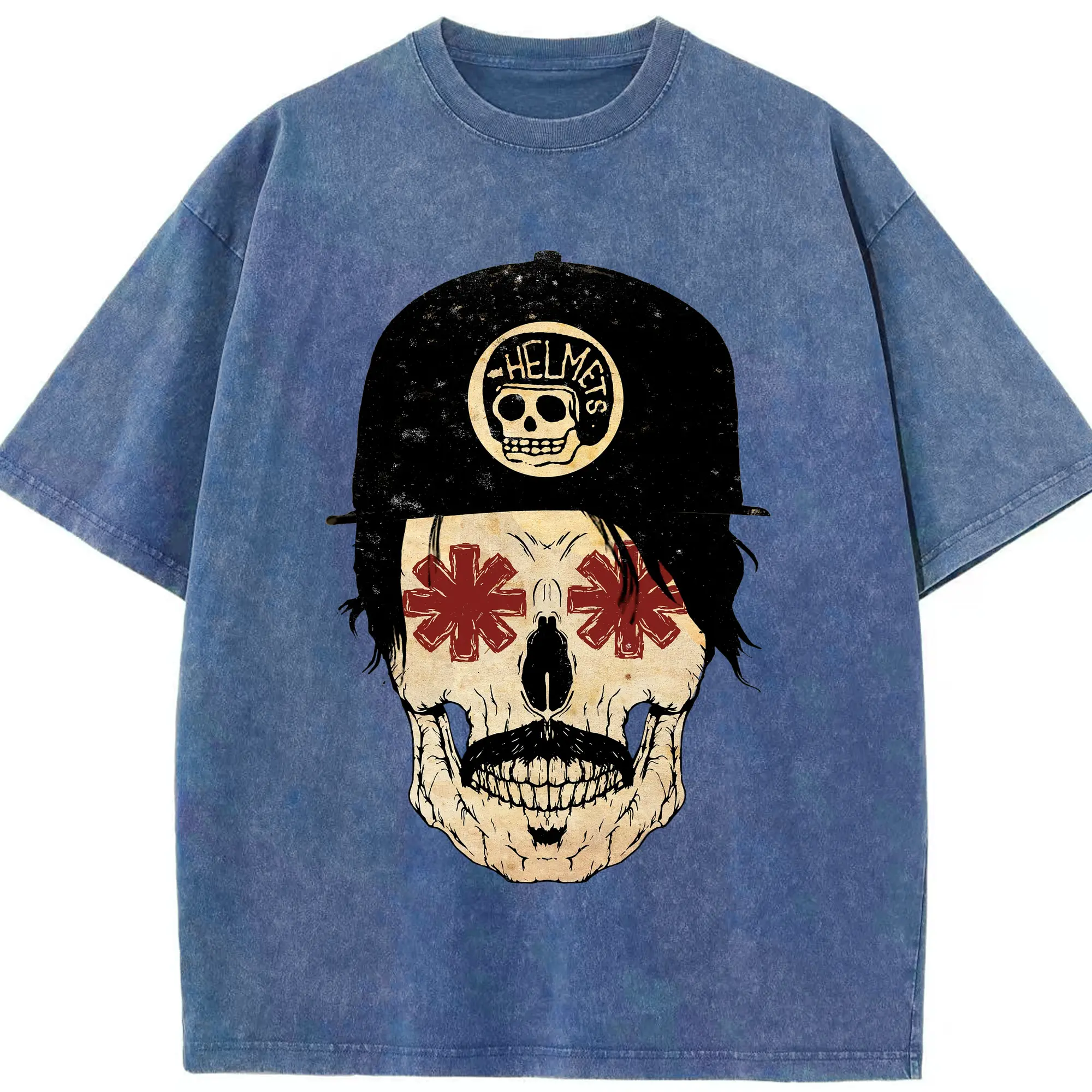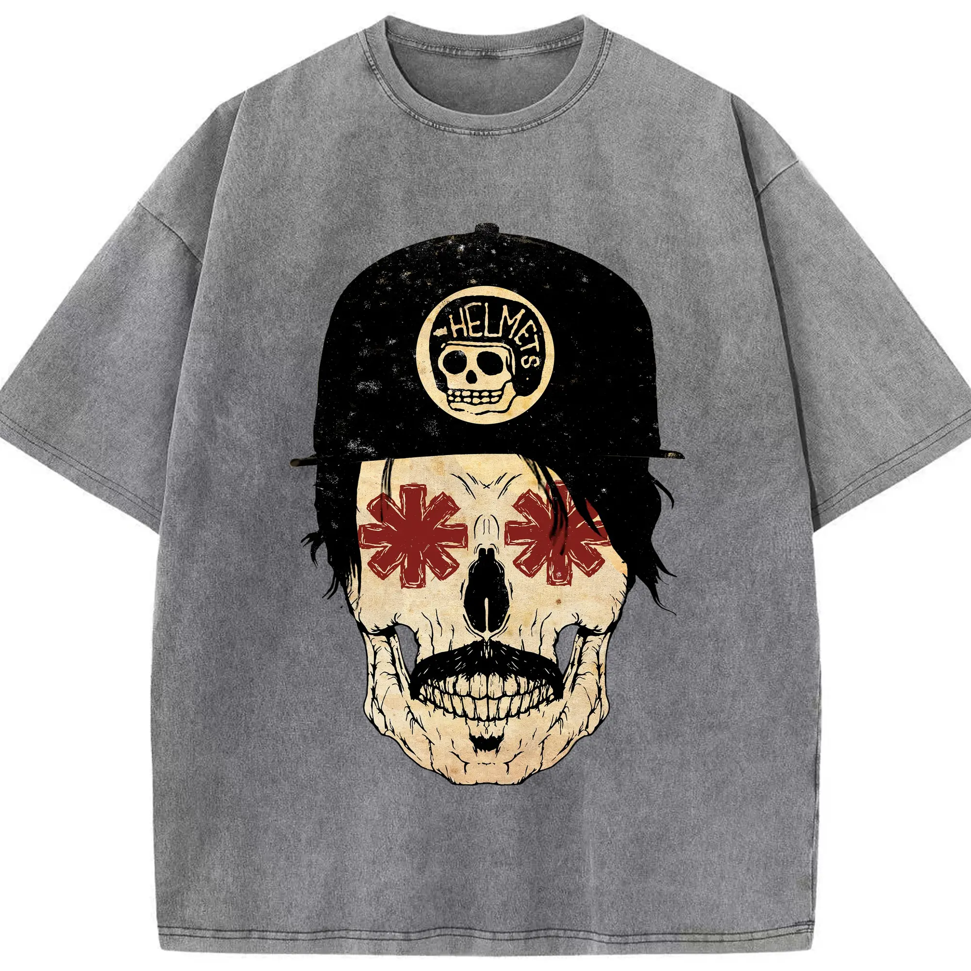 Red Hot Chili Peppers Motorcycle Skull DIY - Washed Vintage Look 230g Cotton Oversized T-Shirt With Front Heat Transfer Print – Soft, Lightweight, Stylish Fit – Comfortable Casual Wear For Sports & Everyday Use