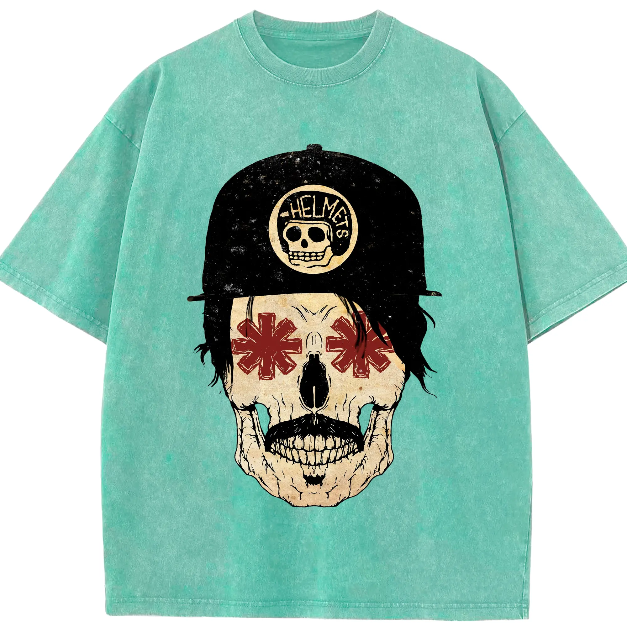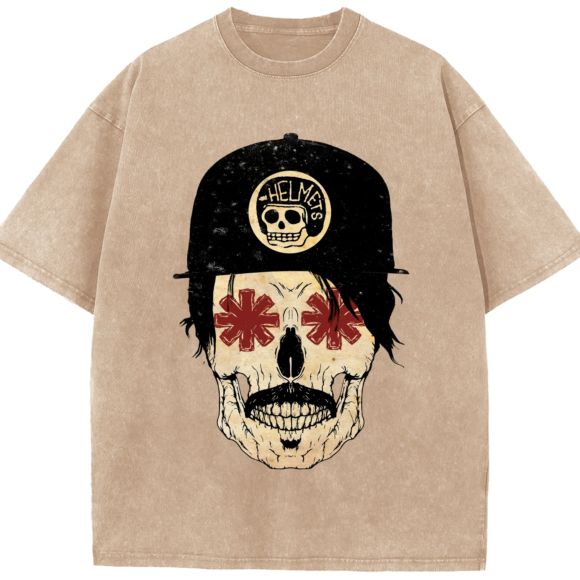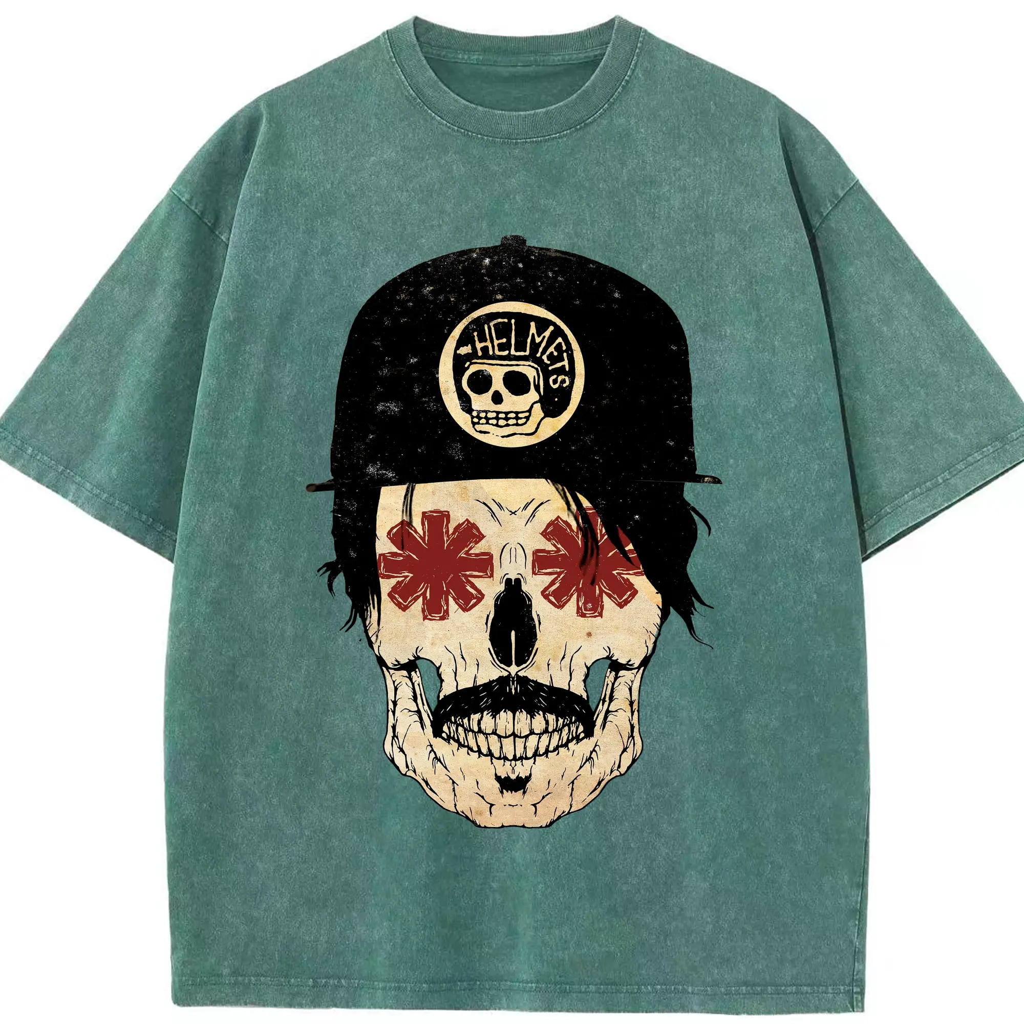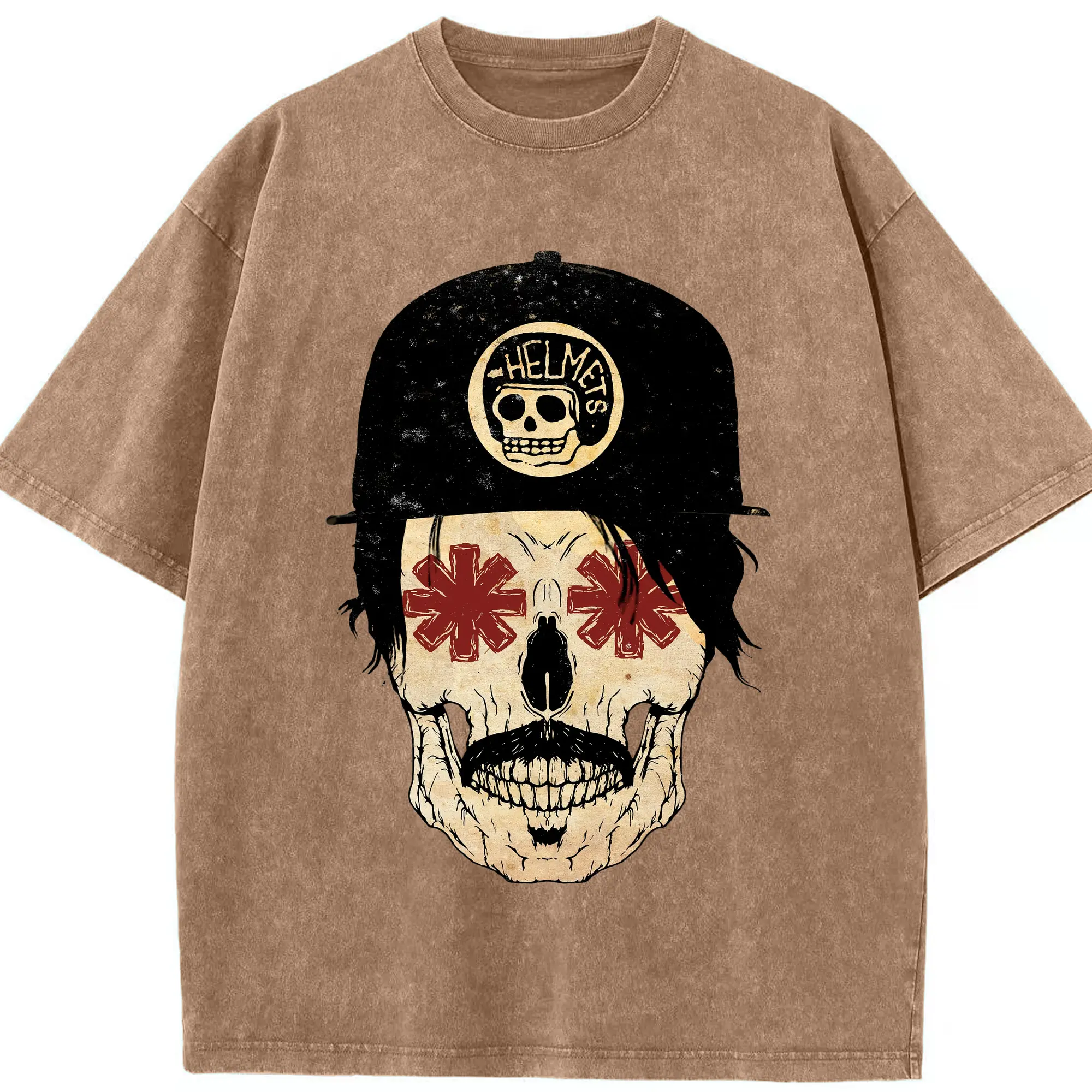 Red Hot Chili Peppers Motorcycle Skull DIY - Washed Vintage Look 230g Cotton Oversized T-Shirt With Front Heat Transfer Print – Soft, Lightweight, Stylish Fit – Comfortable Casual Wear For Sports & Everyday Use