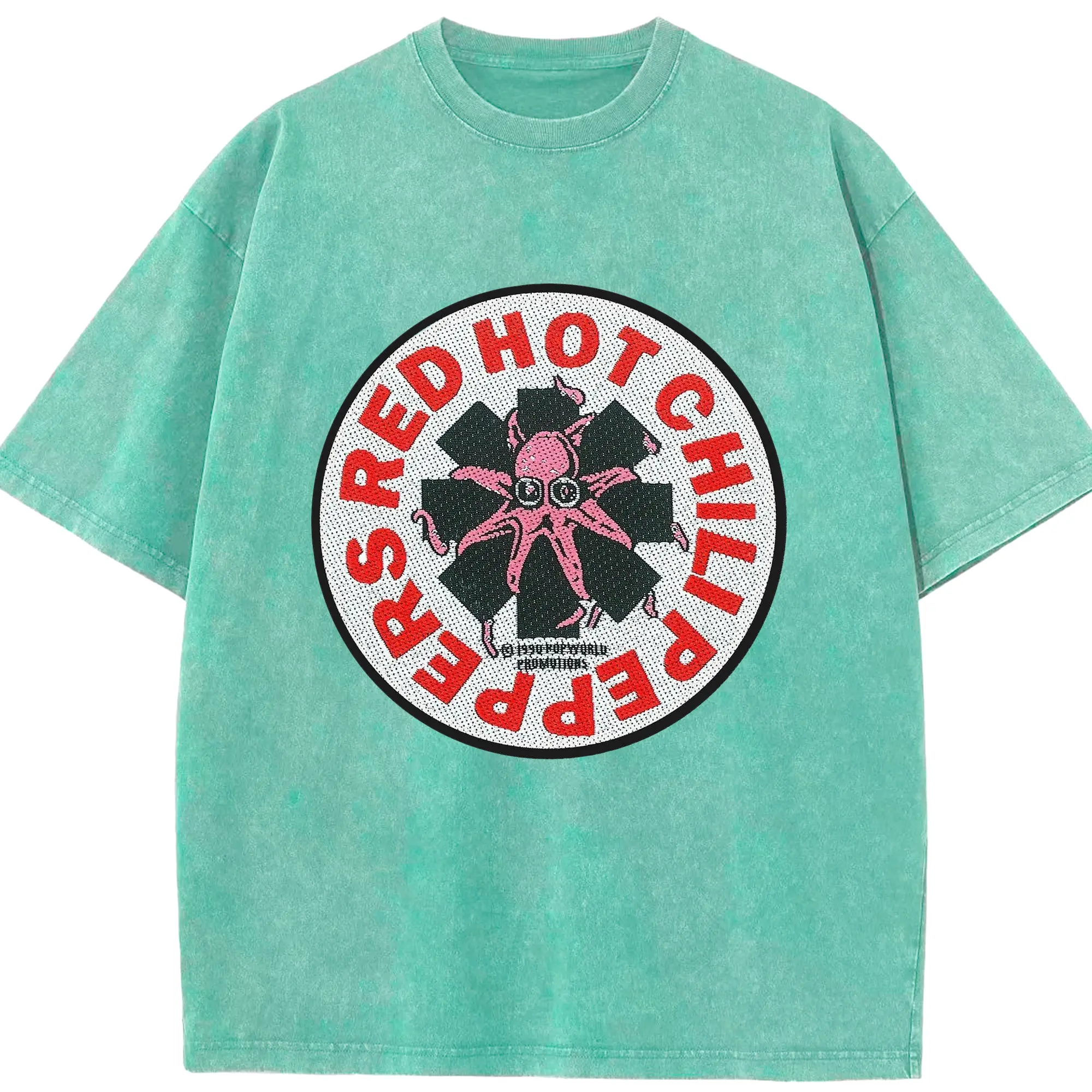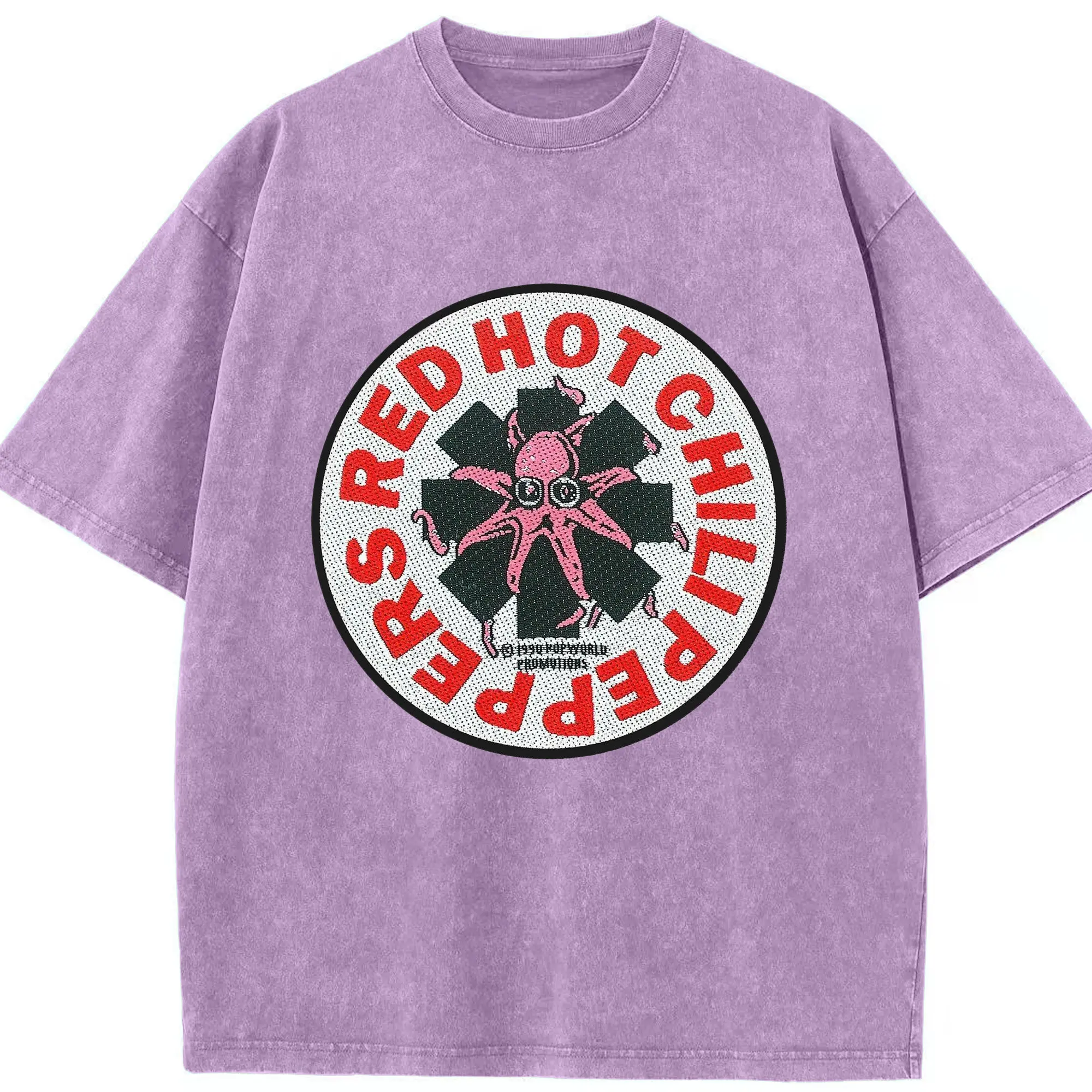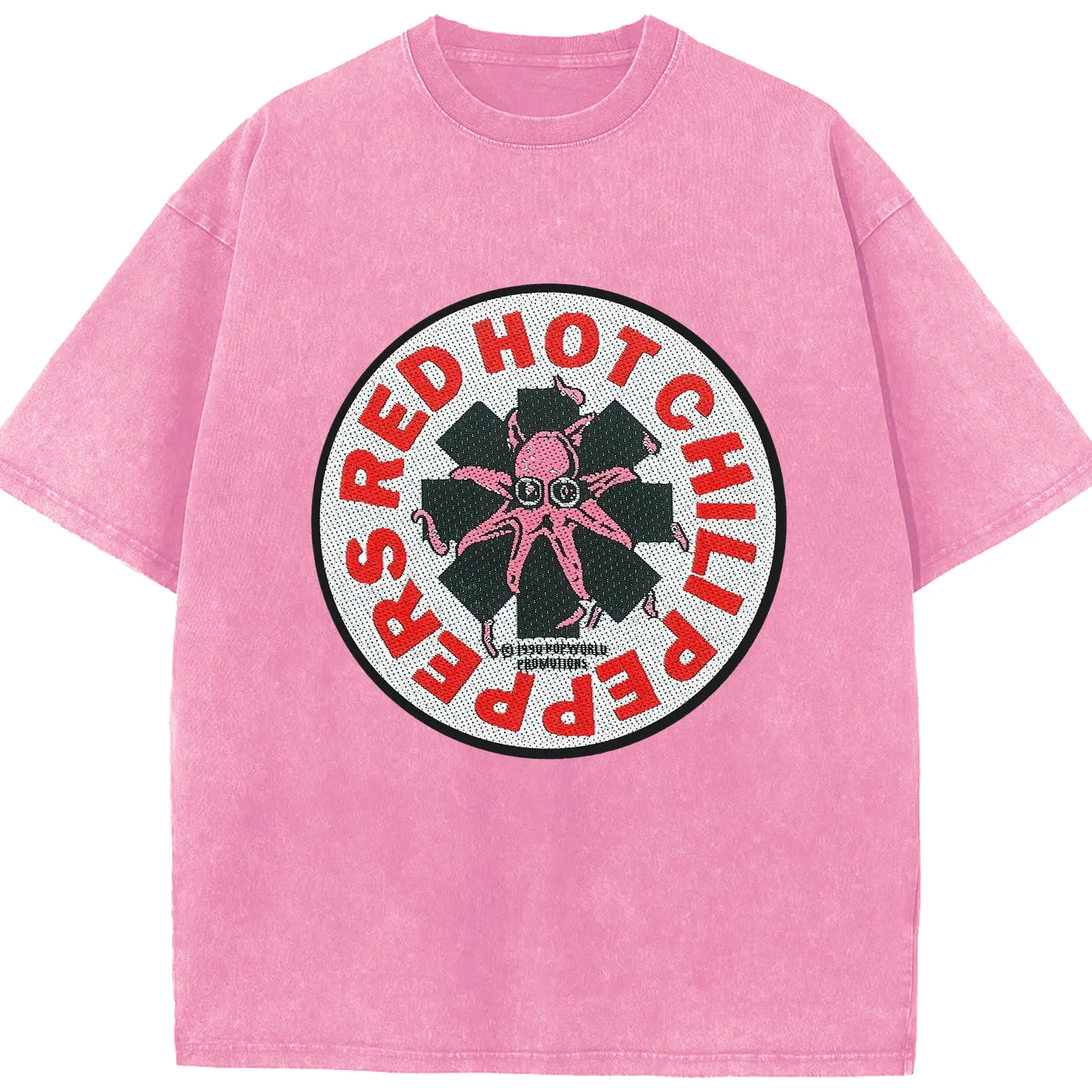 Red Hot Chili Peppers Pink Octopus Logo DIY - Washed Vintage Look 230g Cotton Oversized T-Shirt With Front Heat Transfer Print – Soft, Lightweight, Stylish Fit – Comfortable Casual Wear For Sports & Everyday Use