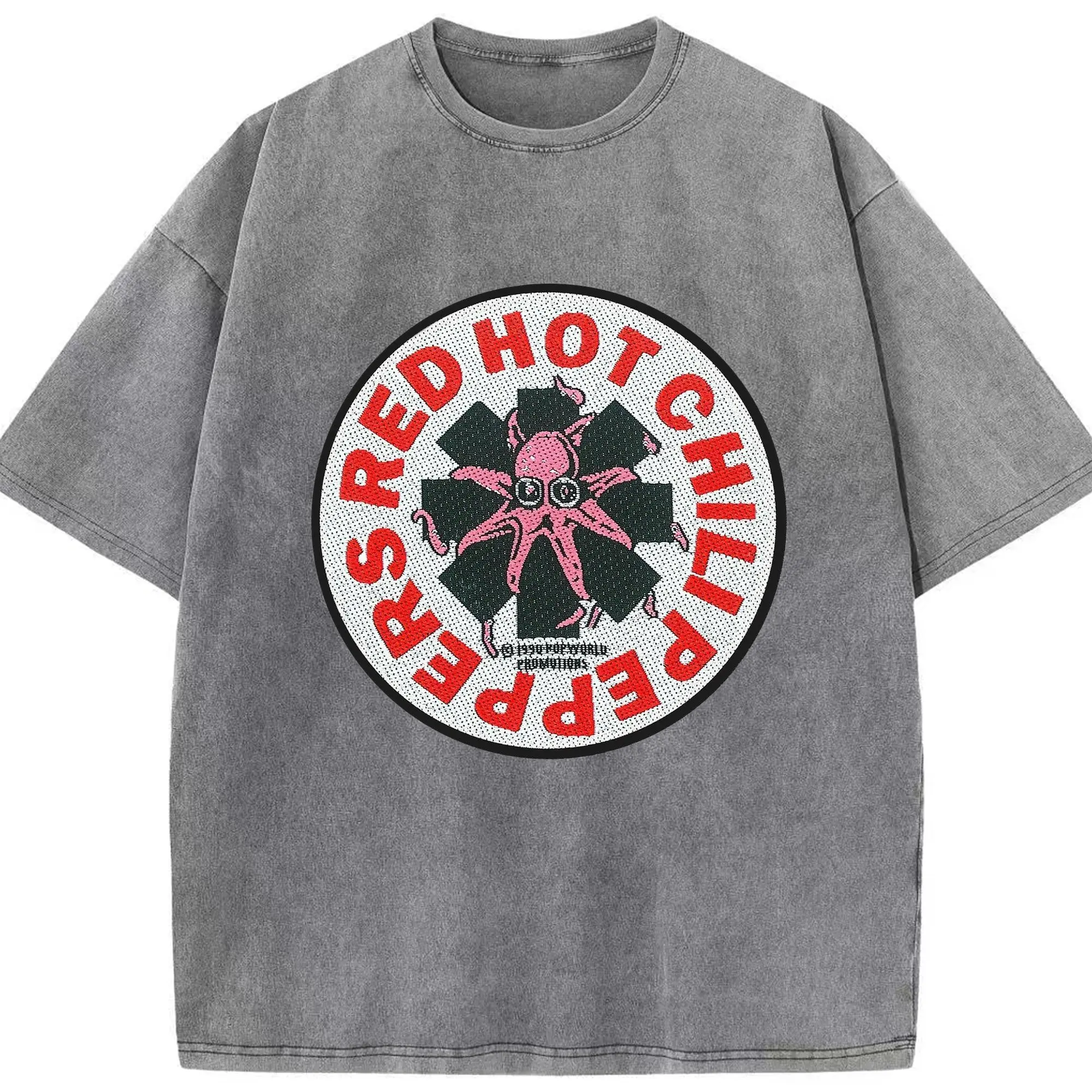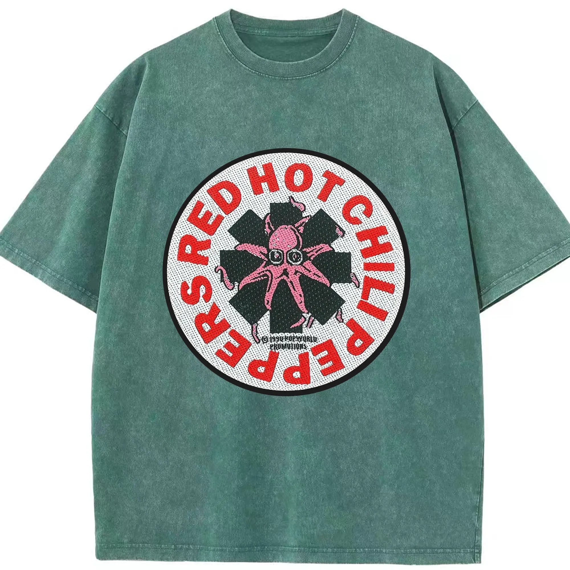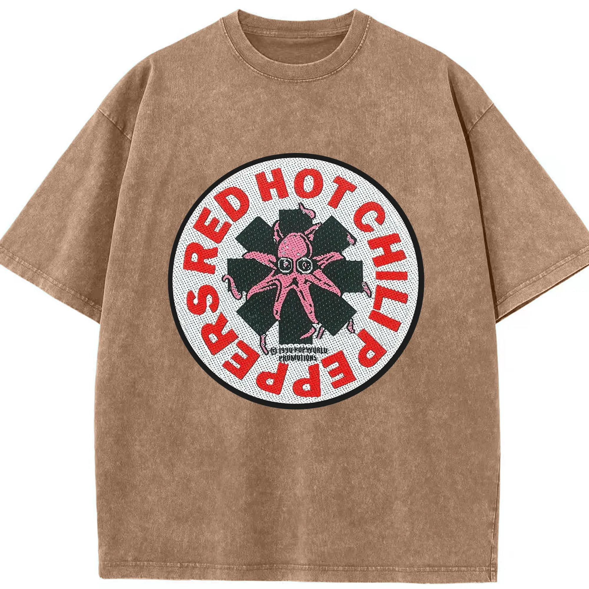 Red Hot Chili Peppers Pink Octopus Logo DIY - Washed Vintage Look 230g Cotton Oversized T-Shirt With Front Heat Transfer Print – Soft, Lightweight, Stylish Fit – Comfortable Casual Wear For Sports & Everyday Use