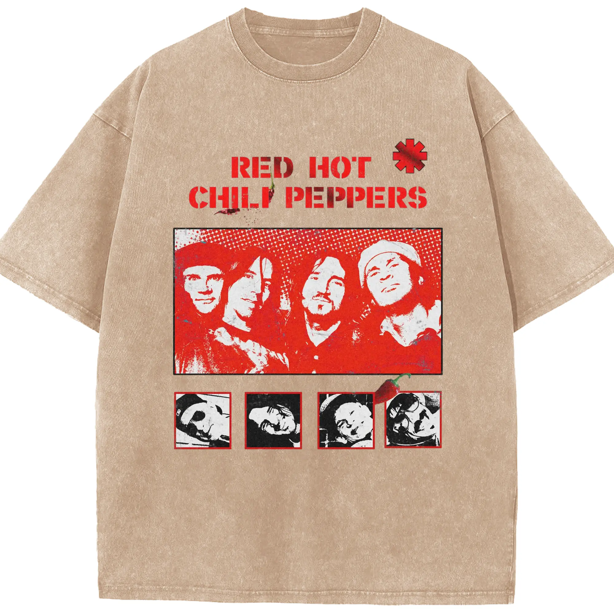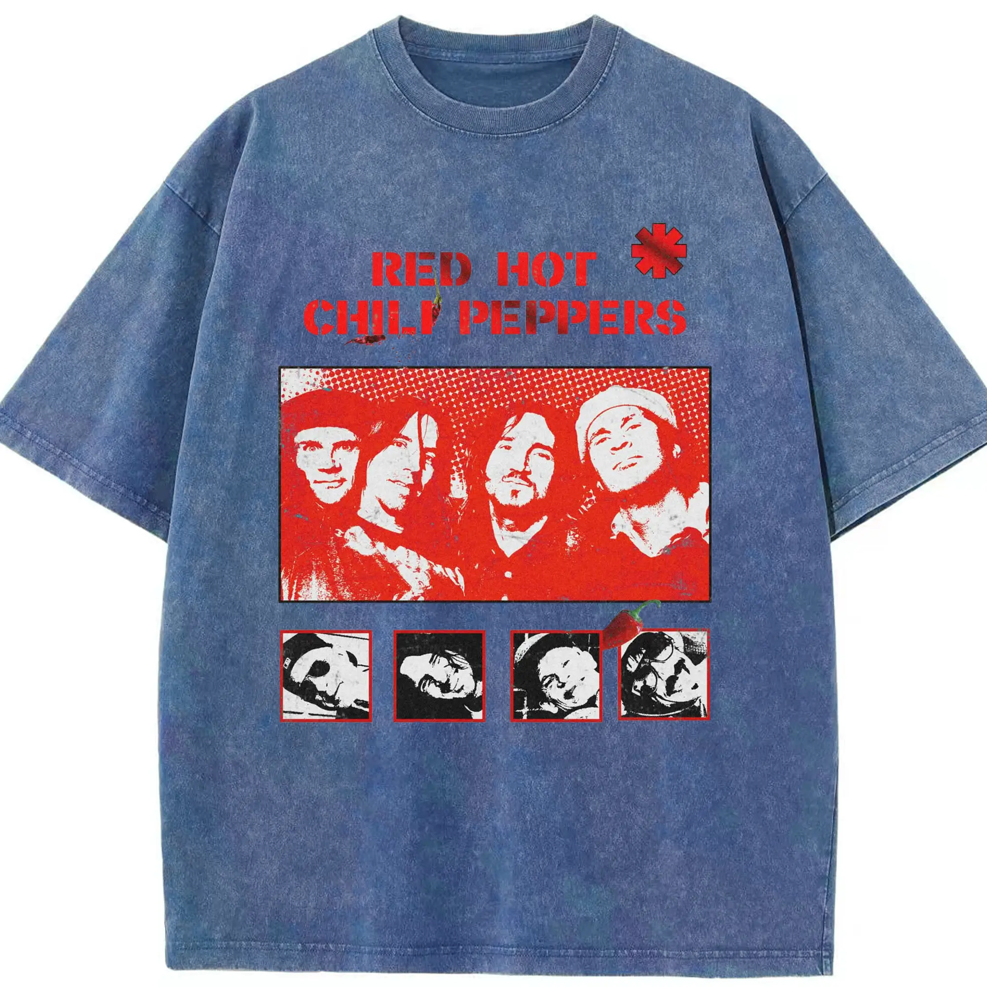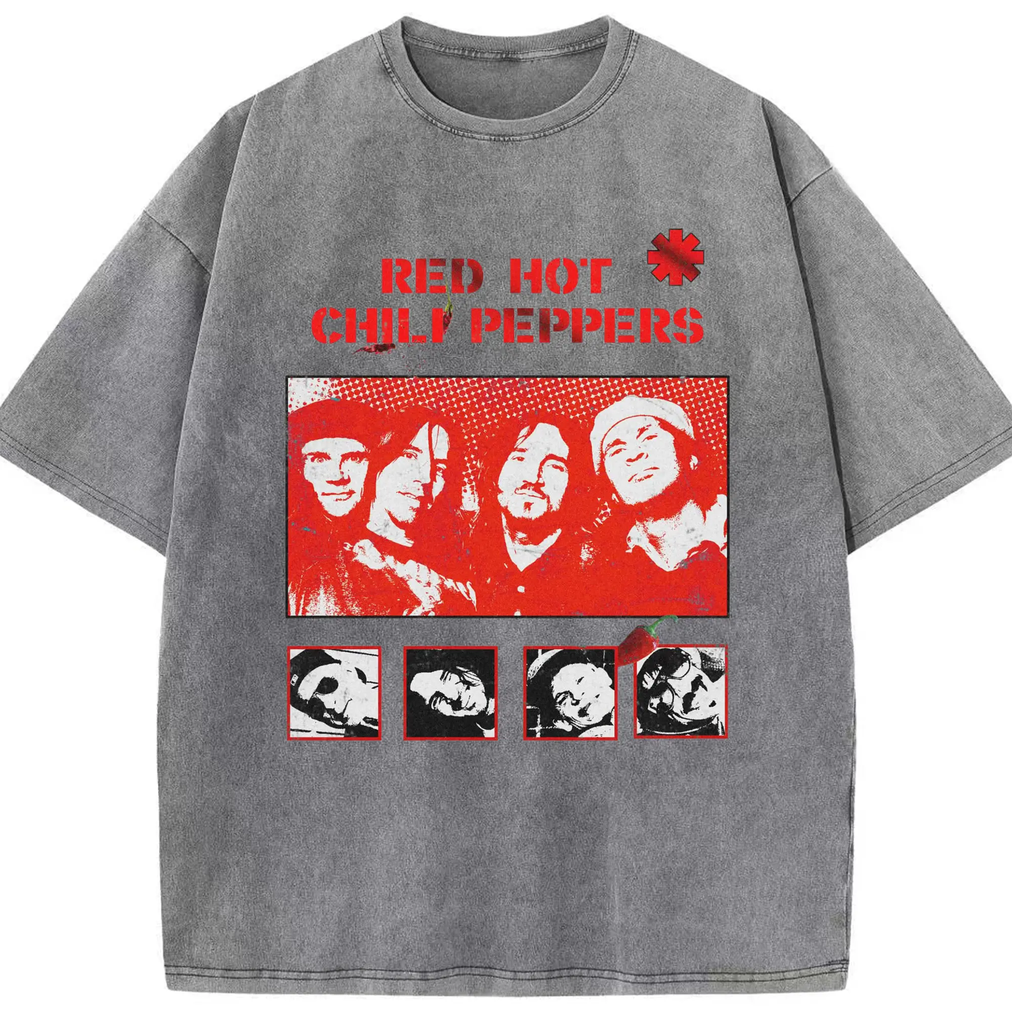 Red Hot Chili Peppers Vintage Pop Art DIY - Washed Vintage Look 230g Cotton Oversized T-Shirt With Front Heat Transfer Print – Soft, Lightweight, Stylish Fit – Comfortable Casual Wear For Sports & Everyday Use