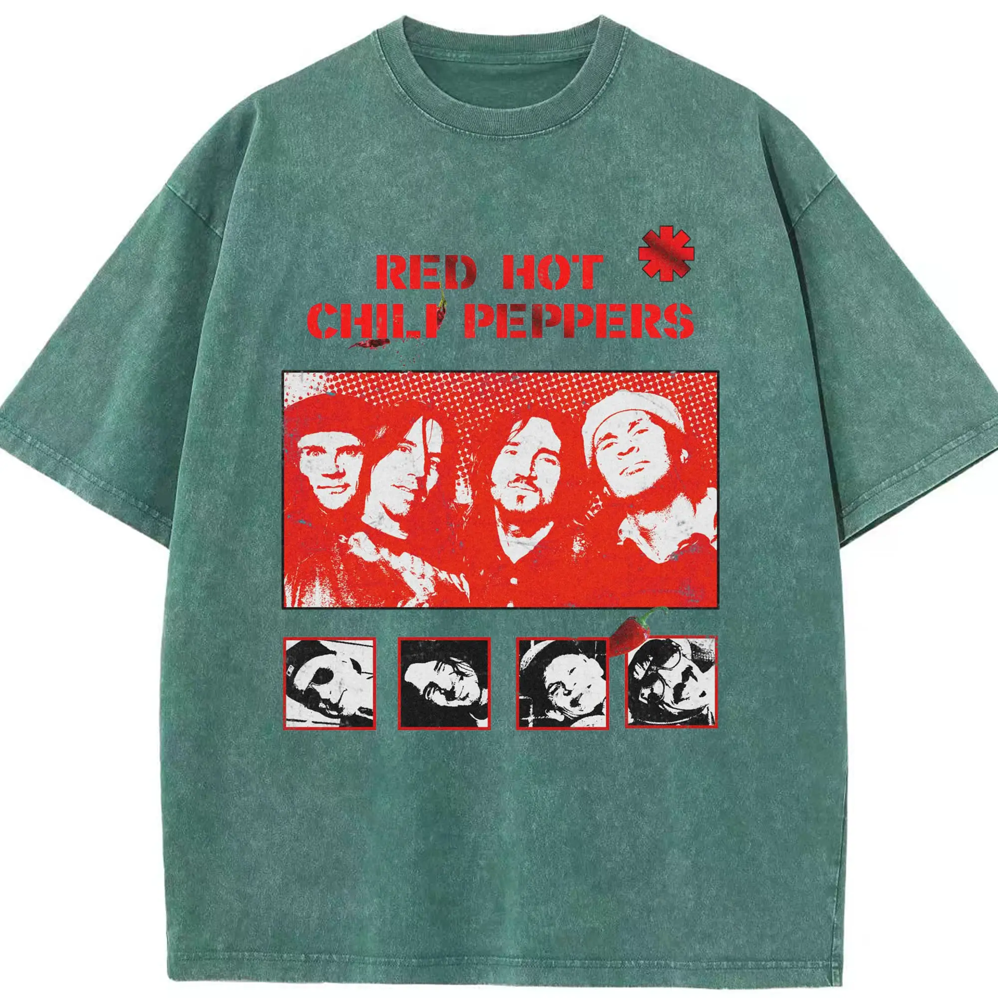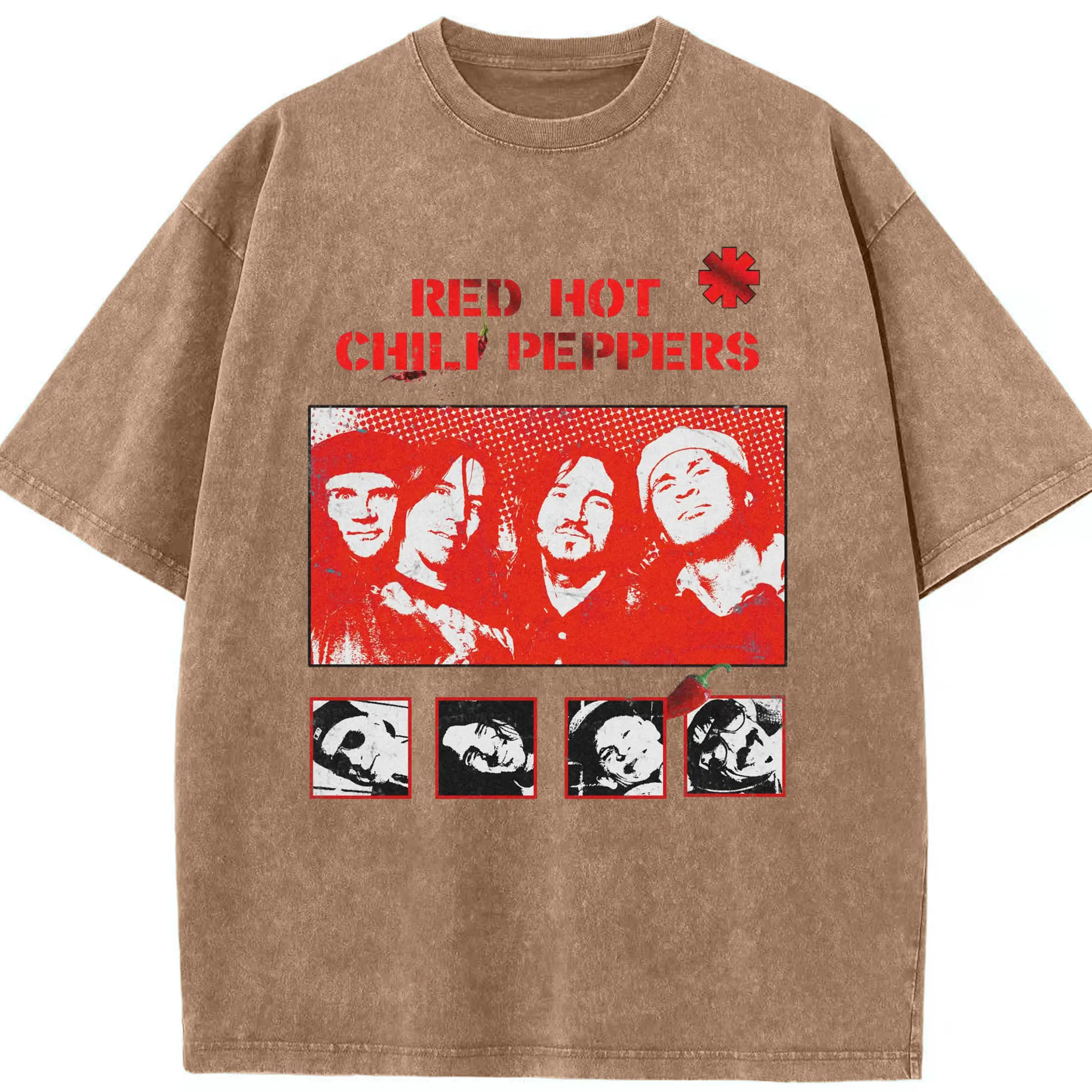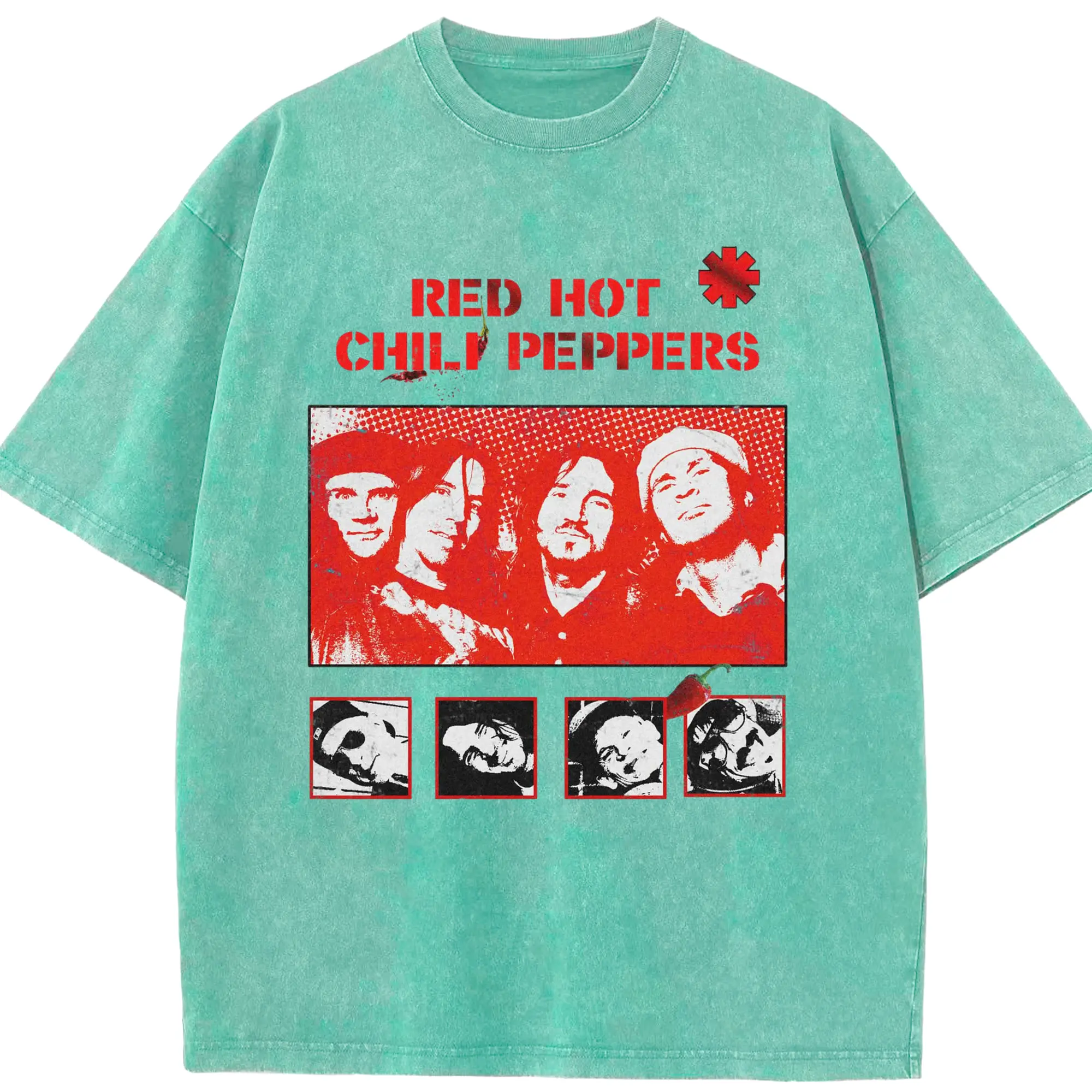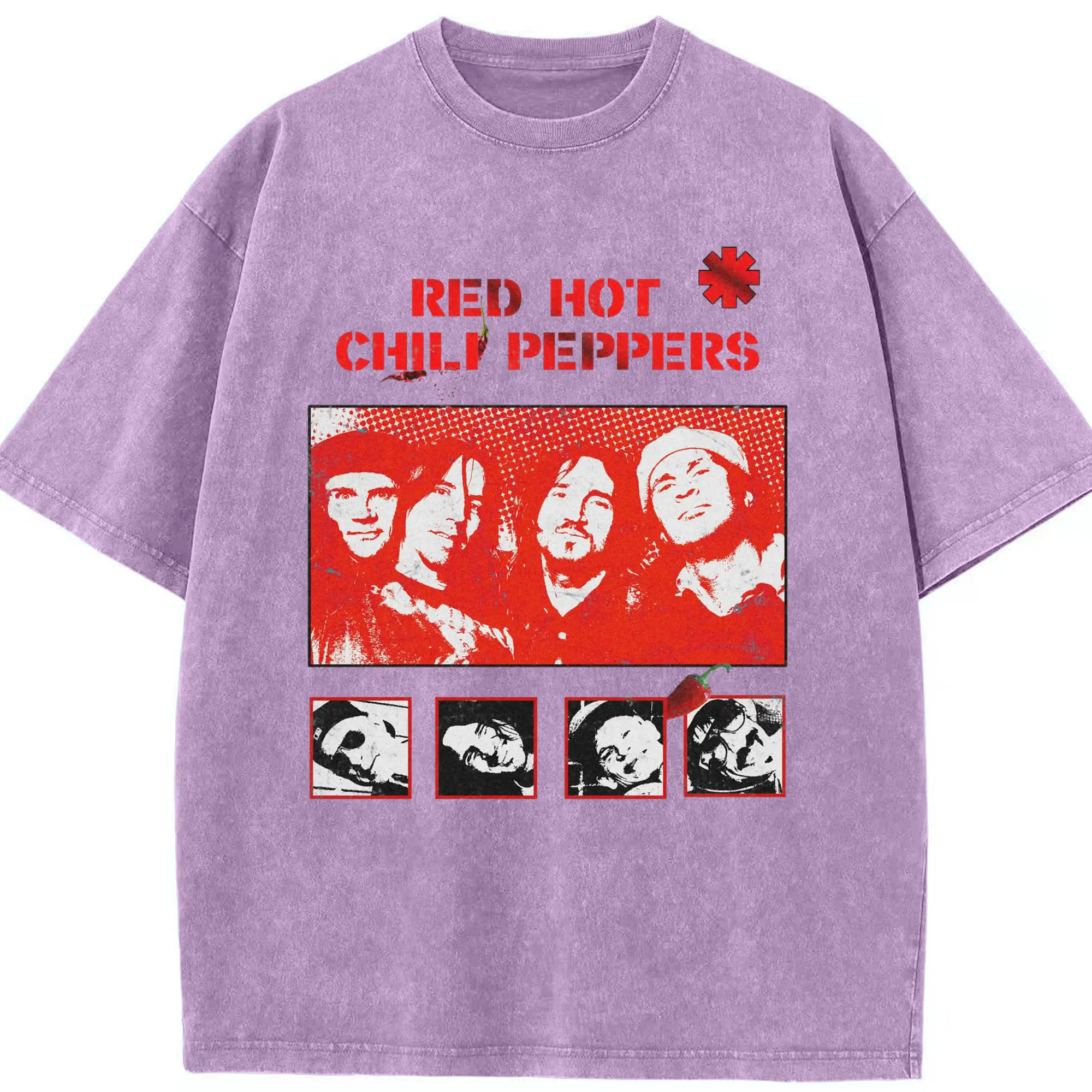 Red Hot Chili Peppers Vintage Pop Art DIY - Washed Vintage Look 230g Cotton Oversized T-Shirt With Front Heat Transfer Print – Soft, Lightweight, Stylish Fit – Comfortable Casual Wear For Sports & Everyday Use