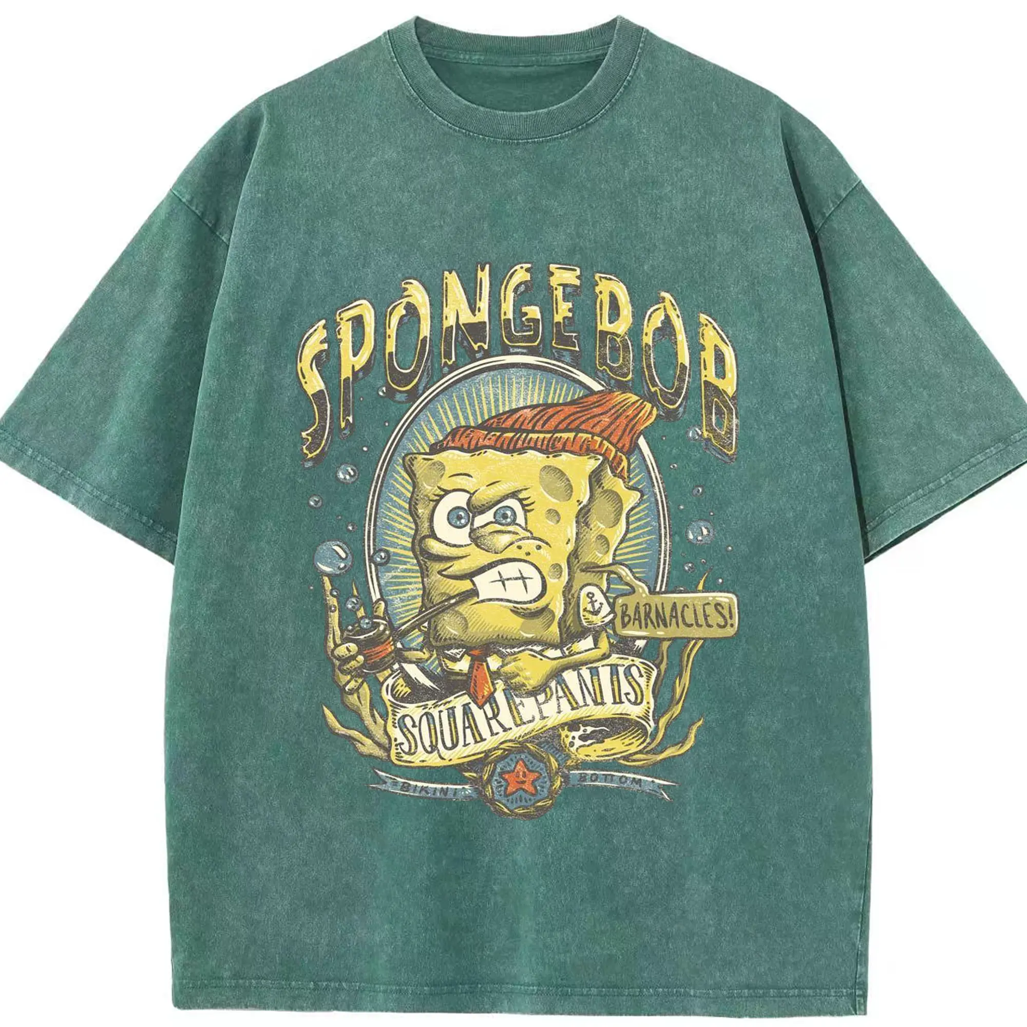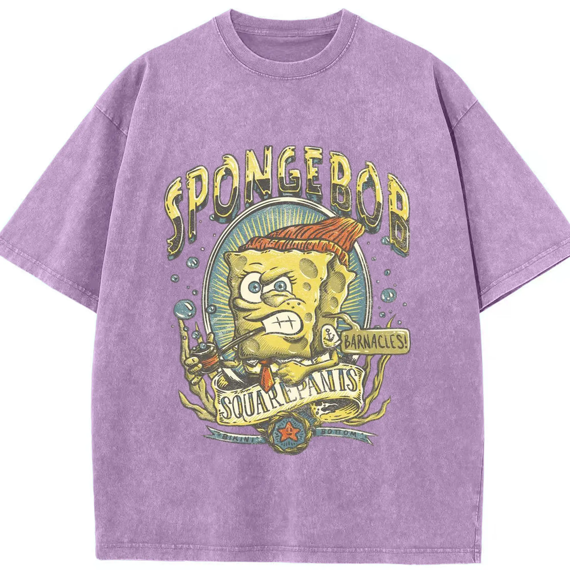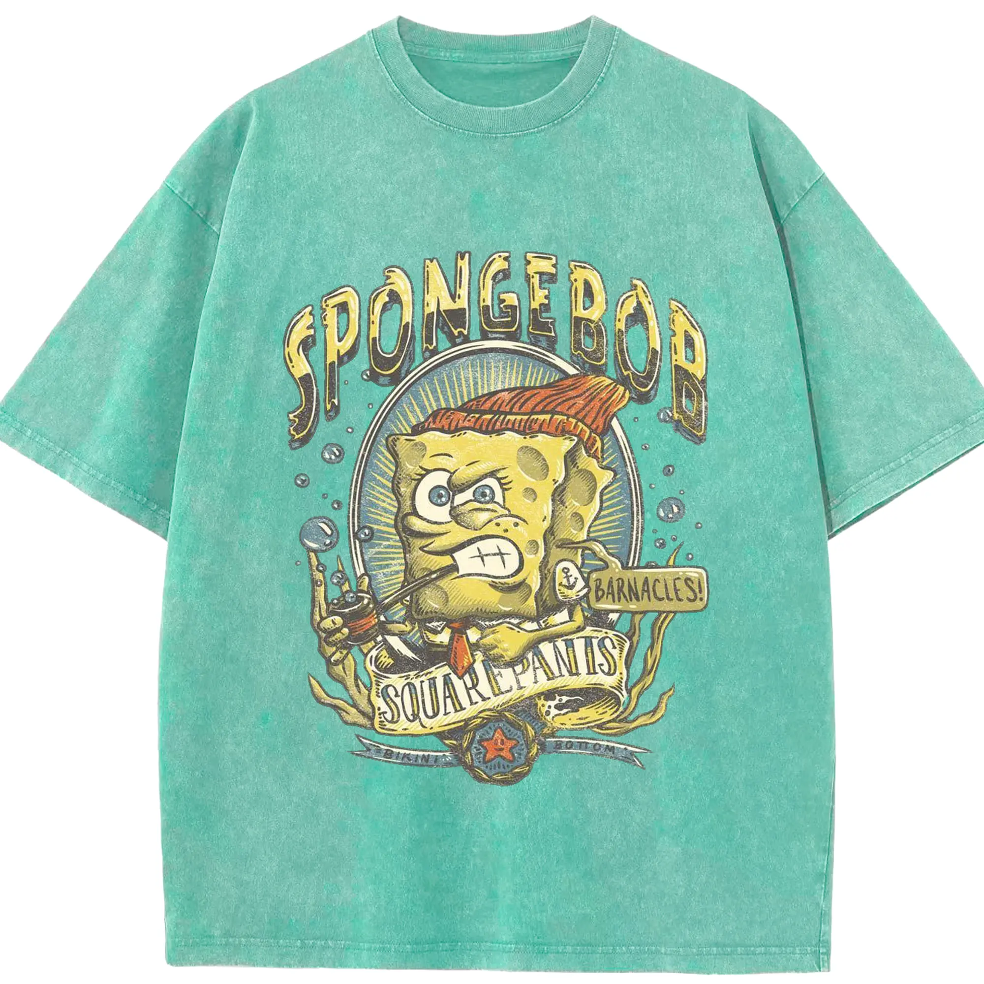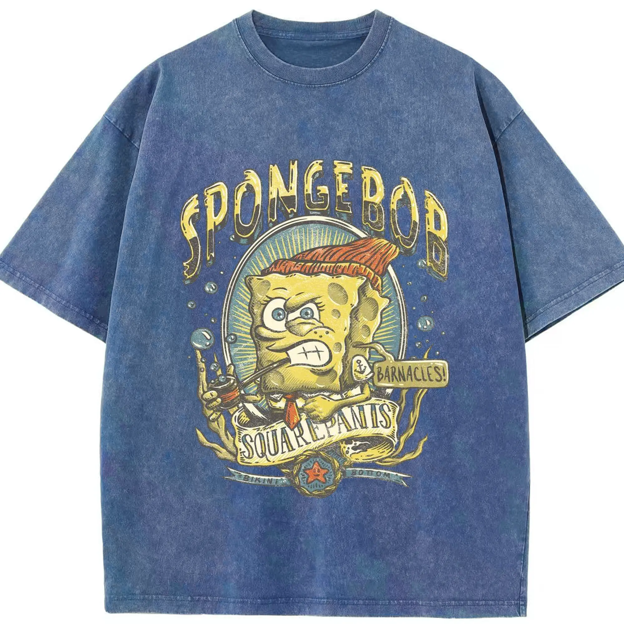 Retro Funny SpongeBob Barnacles! DIY - Washed Vintage Look 230g Cotton Oversized T-Shirt With Front Heat Transfer Print – Soft, Lightweight, Stylish Fit – Comfortable Casual Wear For Sports & Everyday Use