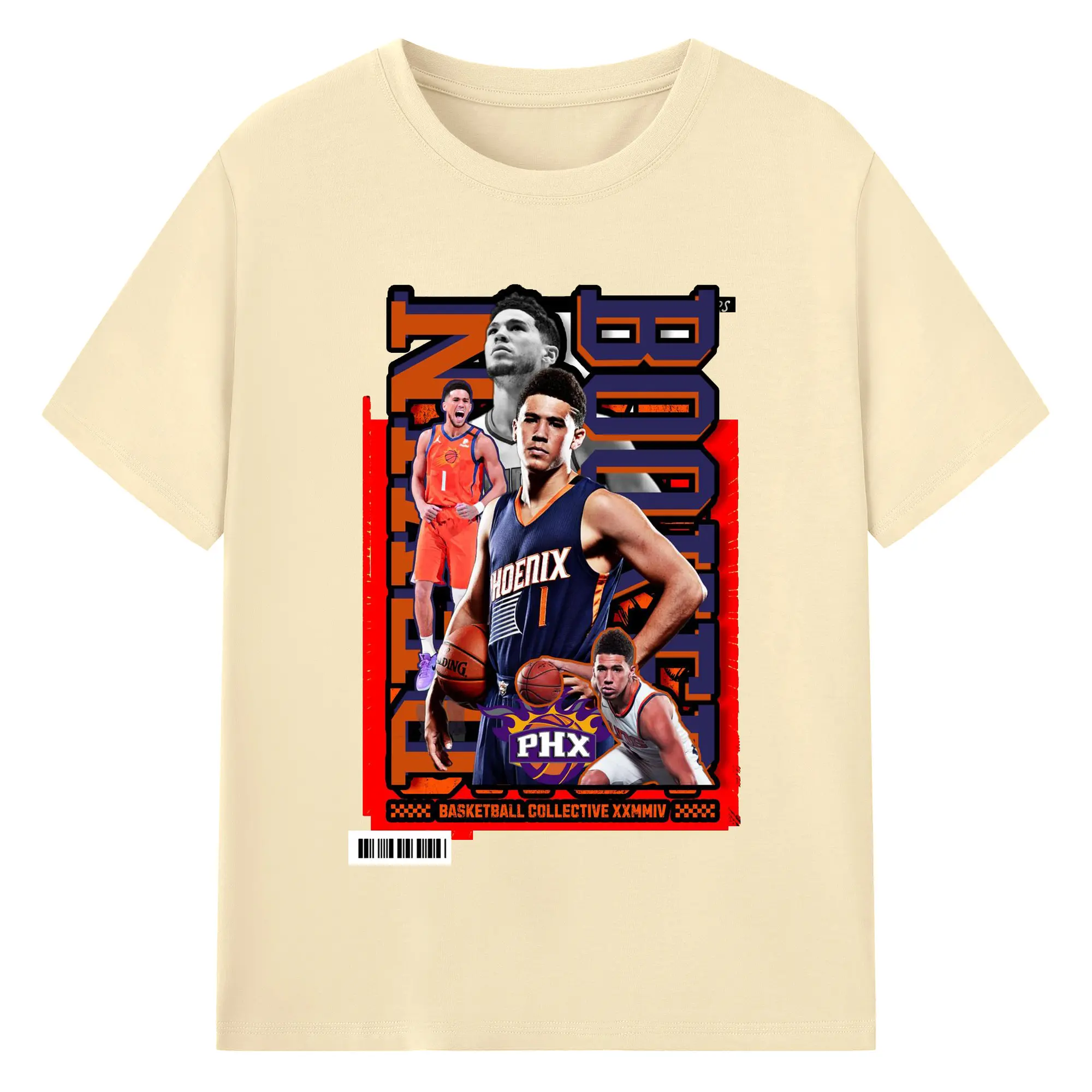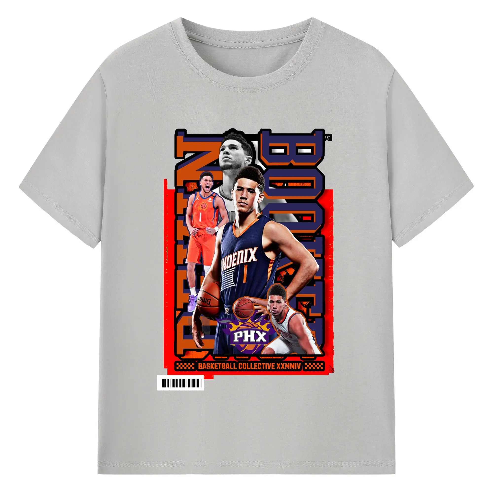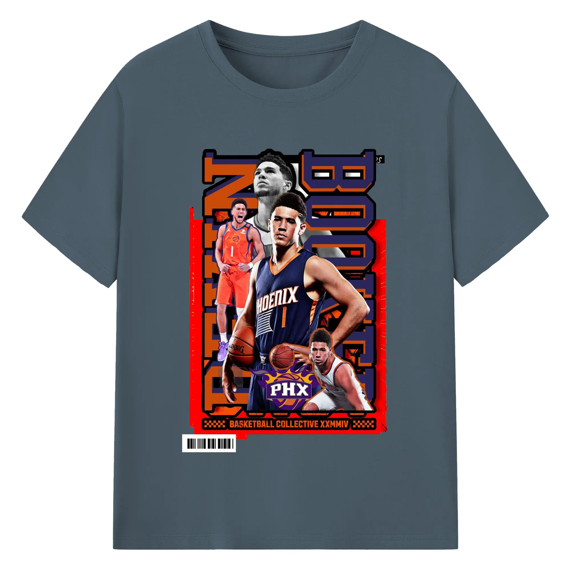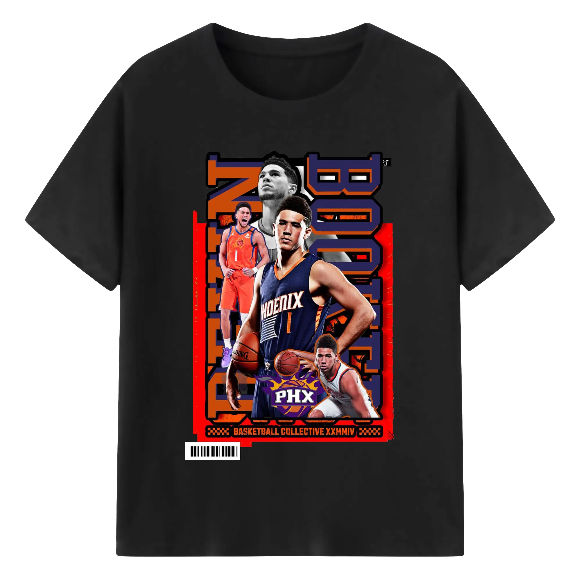 Retro PHX Devin Booker Basketball Card Shirt - 180g Cotton T-Shirt With Front Heat Transfer Print – Soft, Lightweight, Fitted Design – Comfortable Casual Wear For Sports & Everyday Use