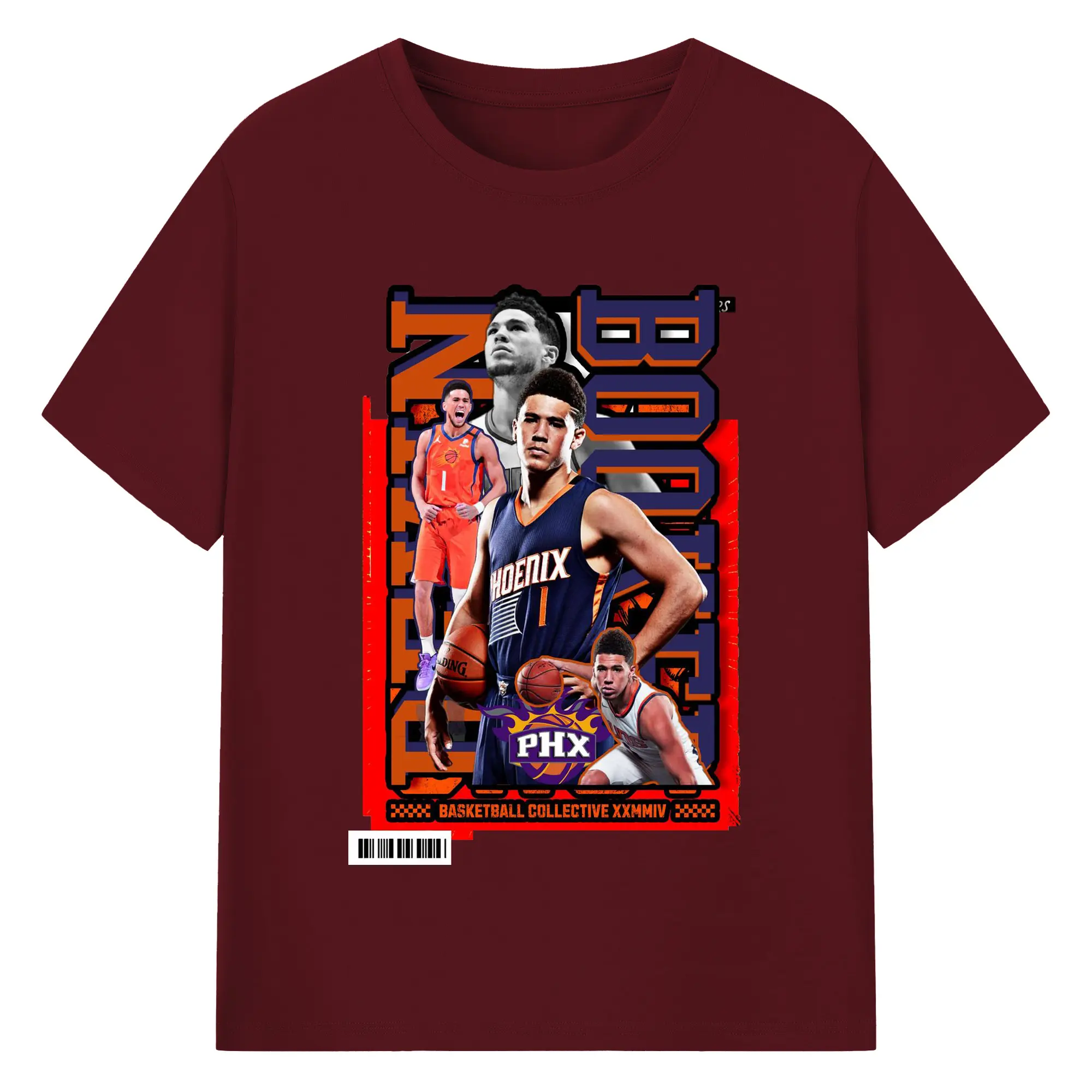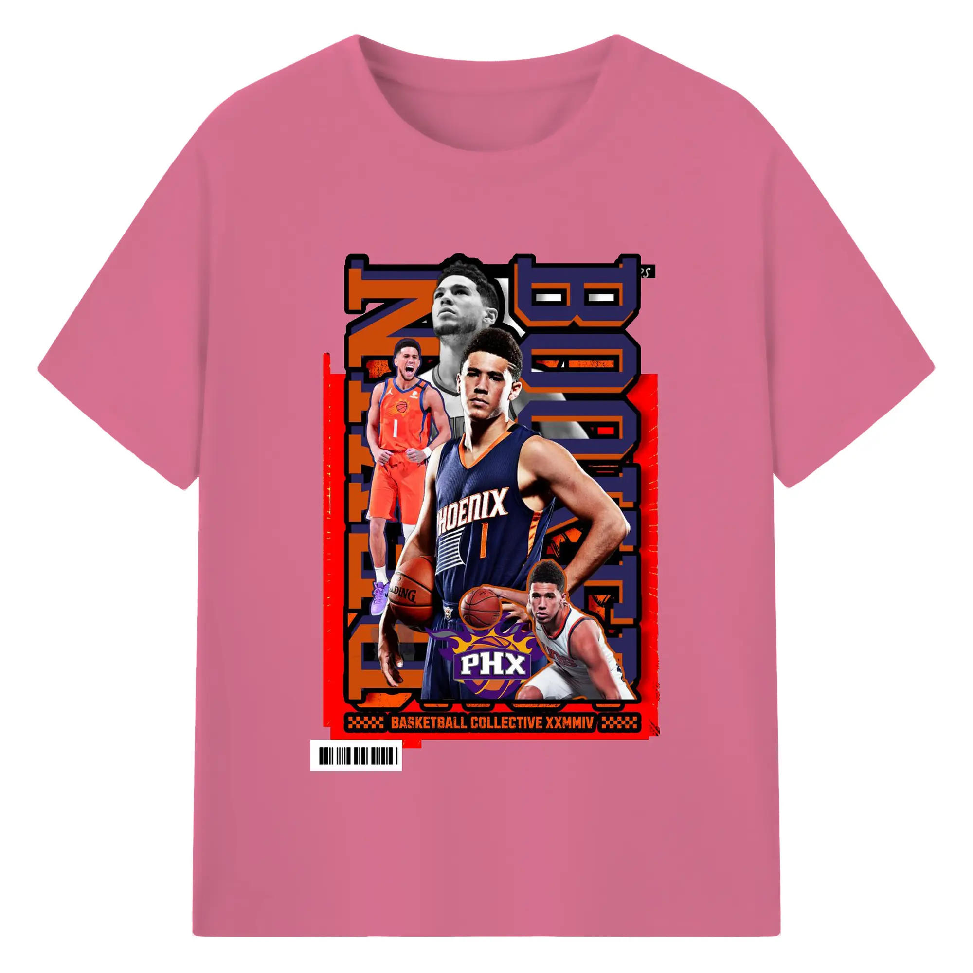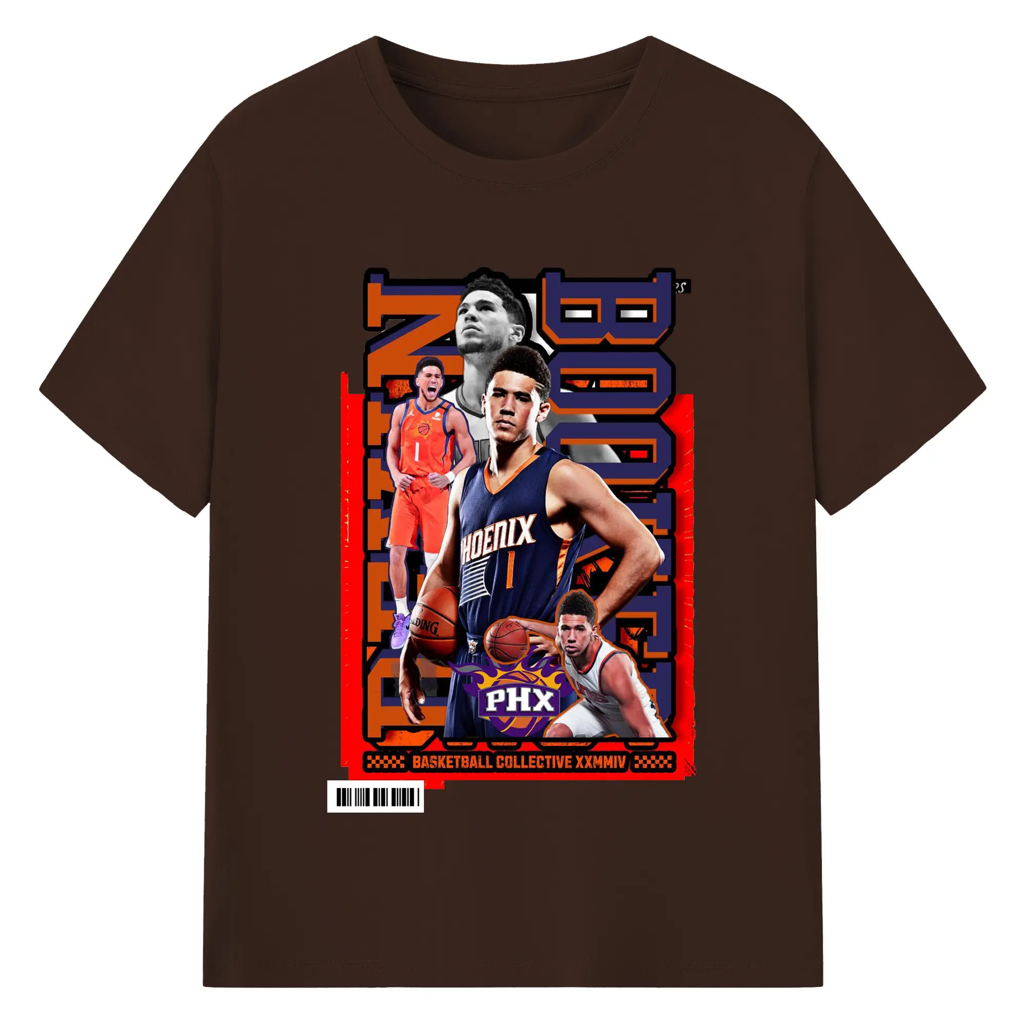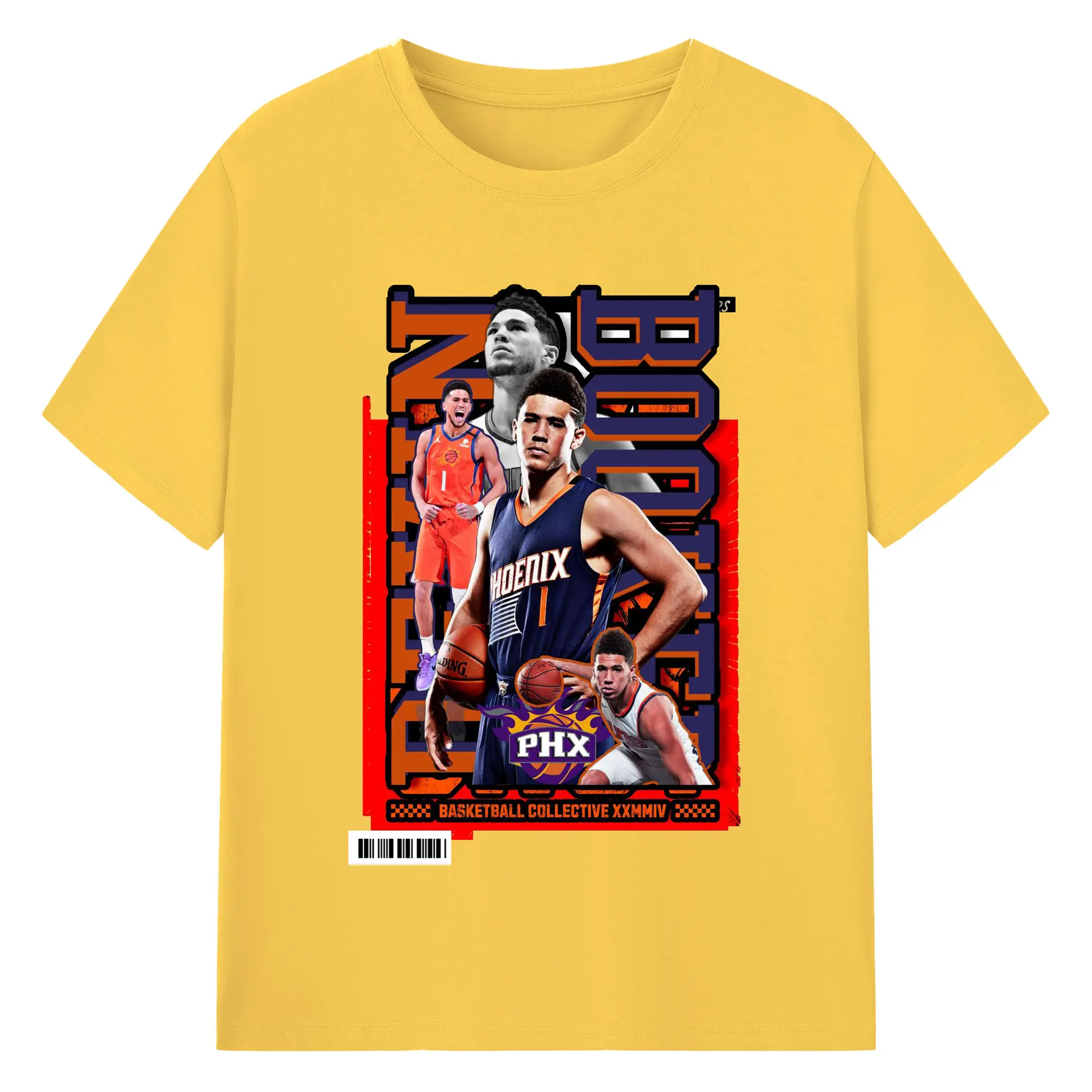 Retro PHX Devin Booker Basketball Card Shirt - 180g Cotton T-Shirt With Front Heat Transfer Print – Soft, Lightweight, Fitted Design – Comfortable Casual Wear For Sports & Everyday Use