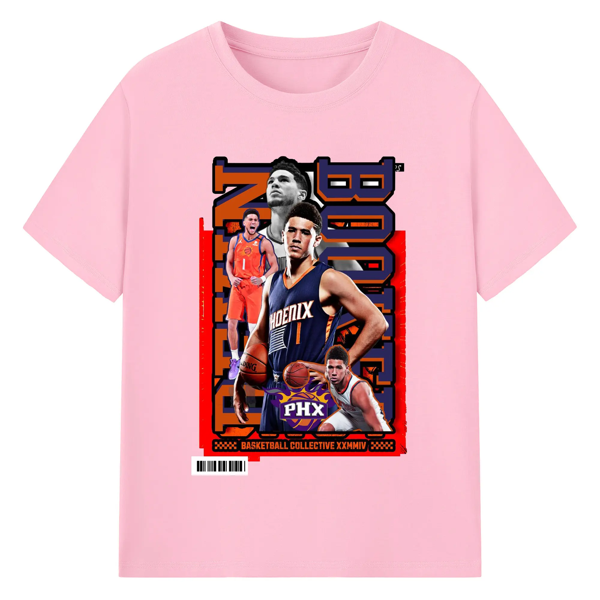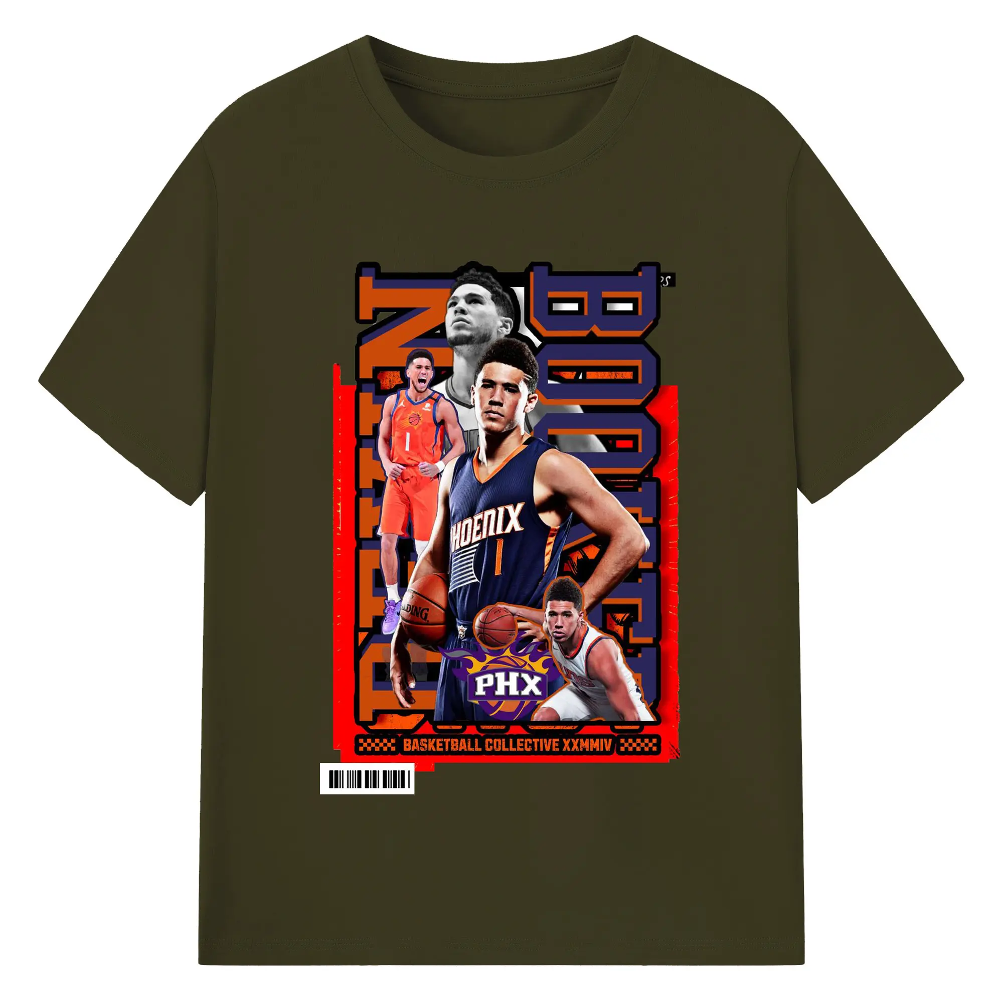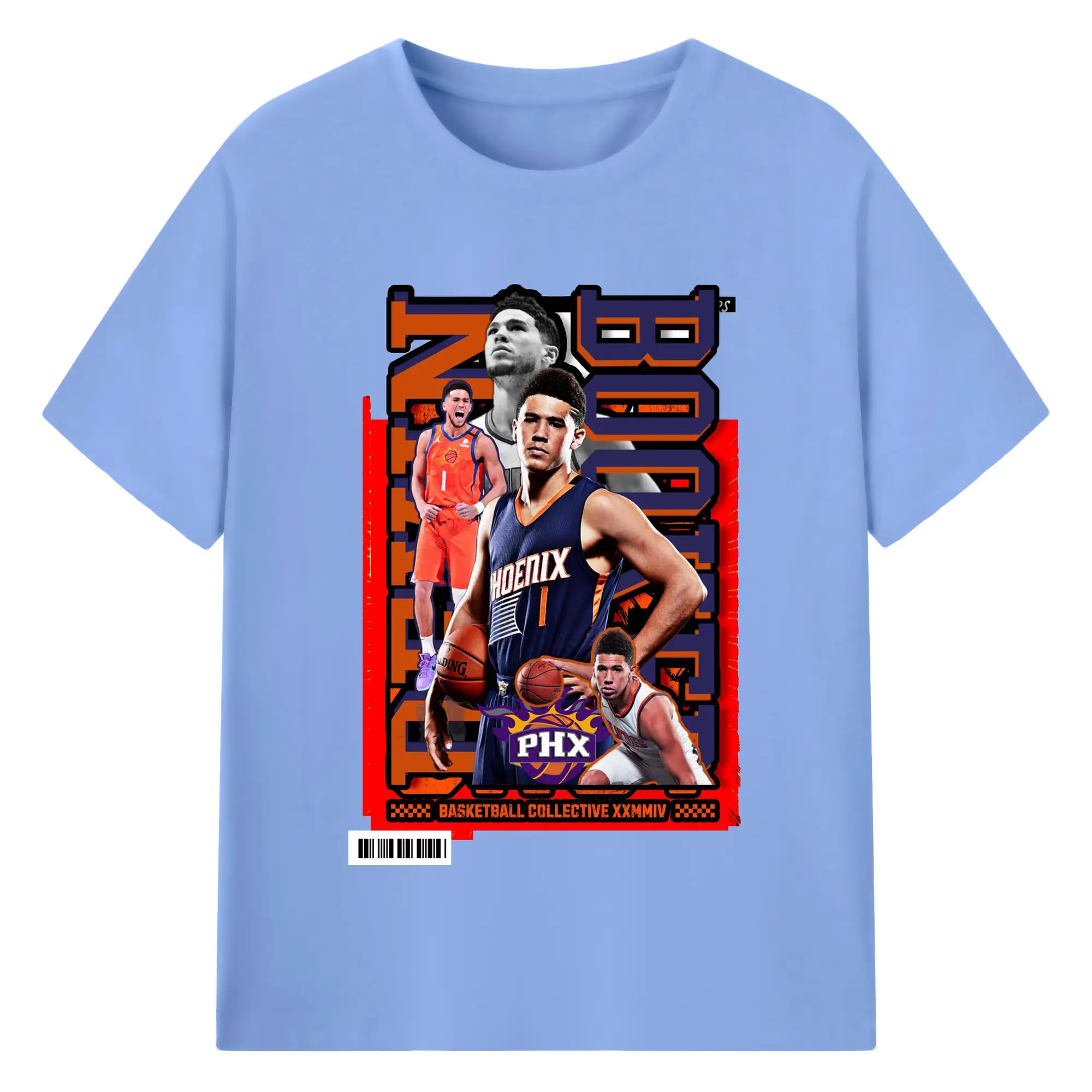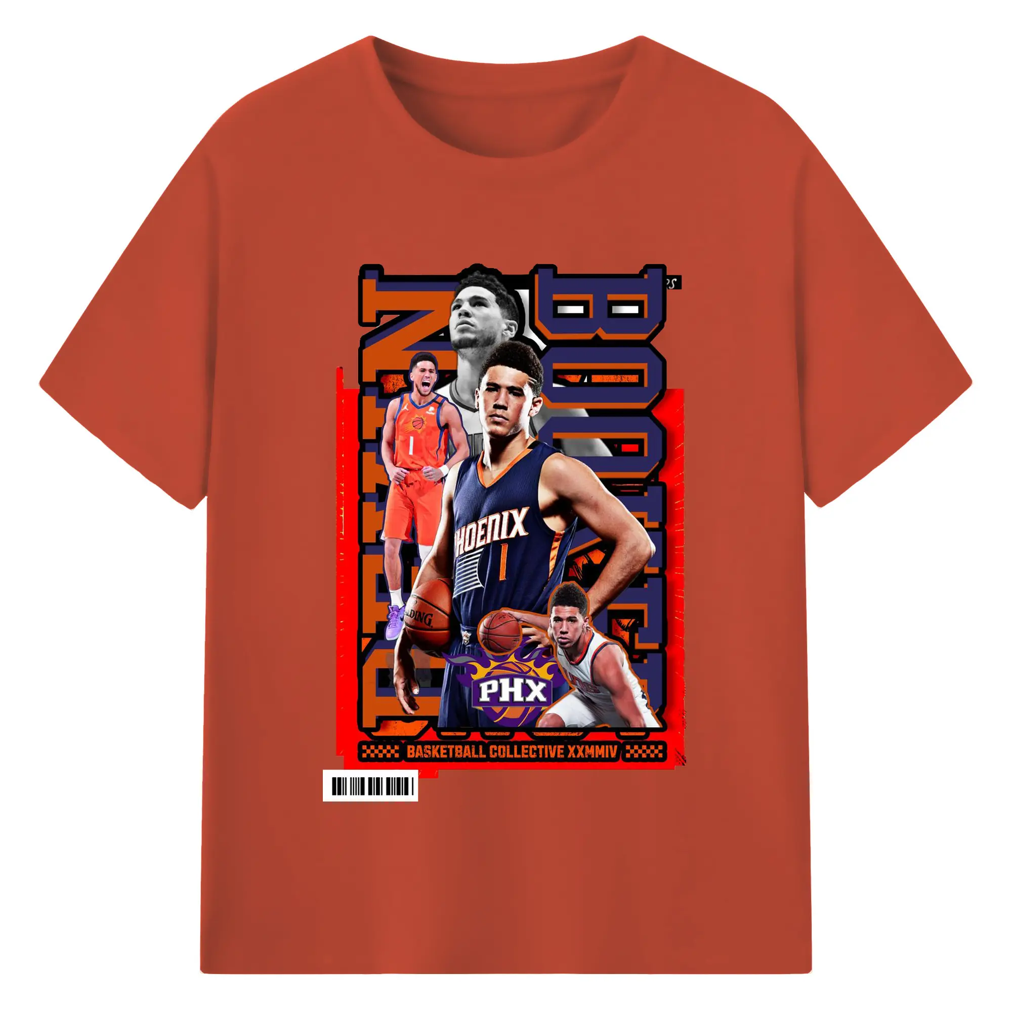 Retro PHX Devin Booker Basketball Card Shirt - 180g Cotton T-Shirt With Front Heat Transfer Print – Soft, Lightweight, Fitted Design – Comfortable Casual Wear For Sports & Everyday Use
