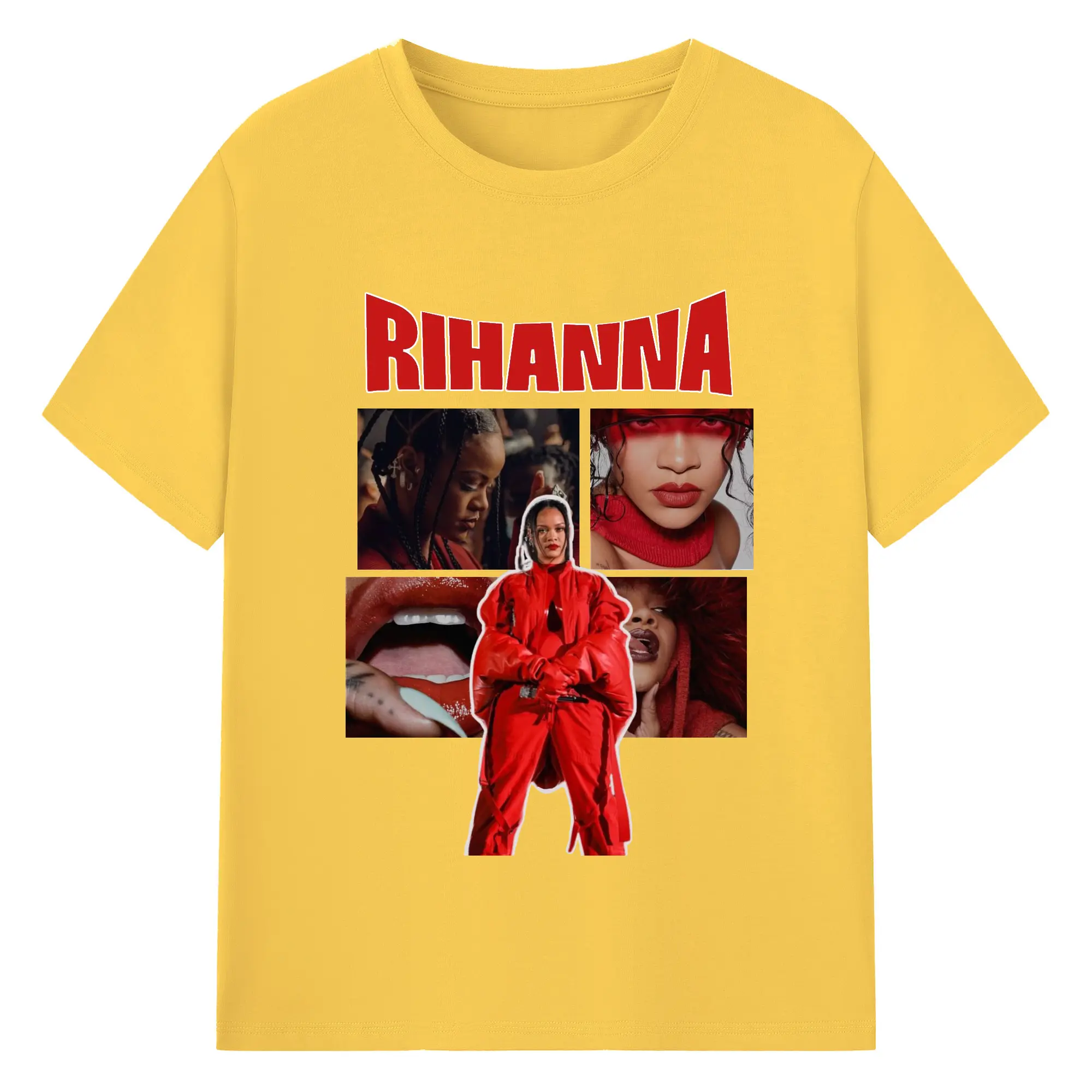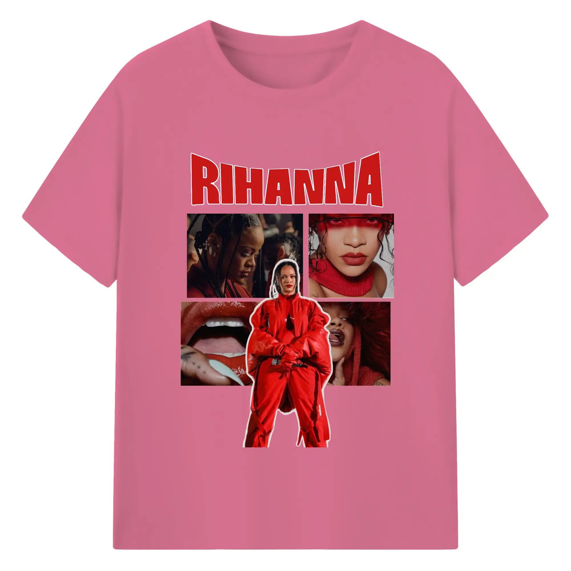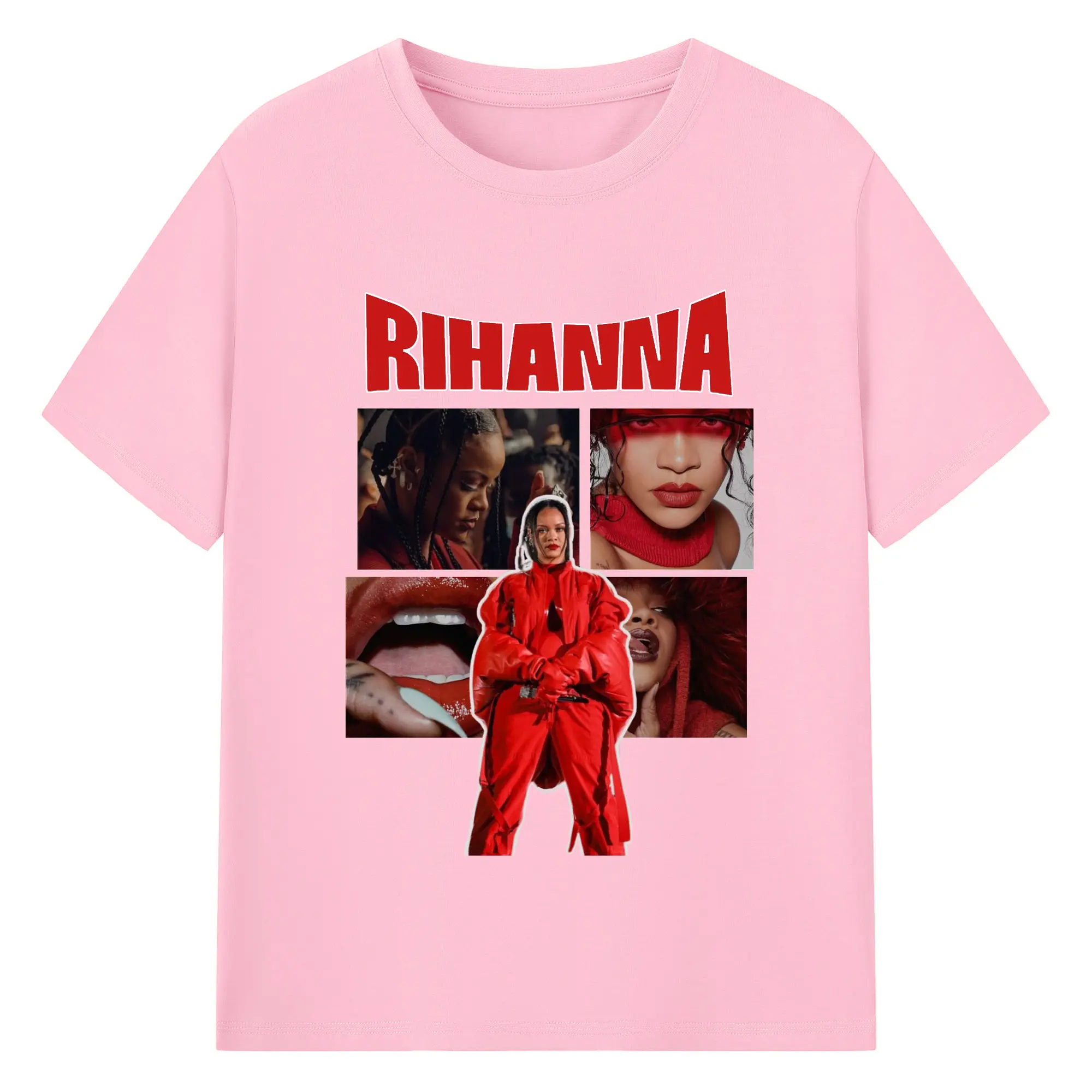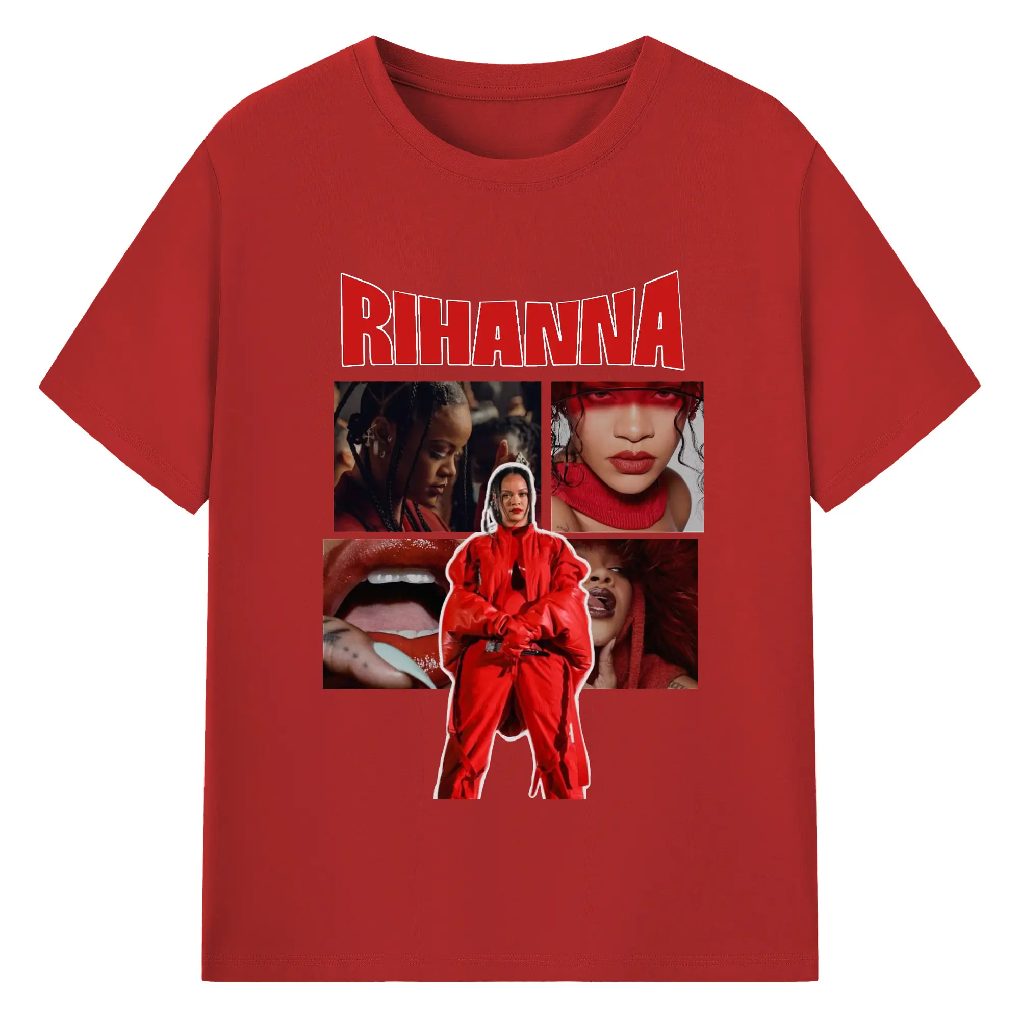 Rihanna Red Fashion Collage DIY - 180g Cotton T-Shirt With Front Heat Transfer Print – Soft, Lightweight, Fitted Design – Comfortable Casual Wear For Sports & Everyday Use