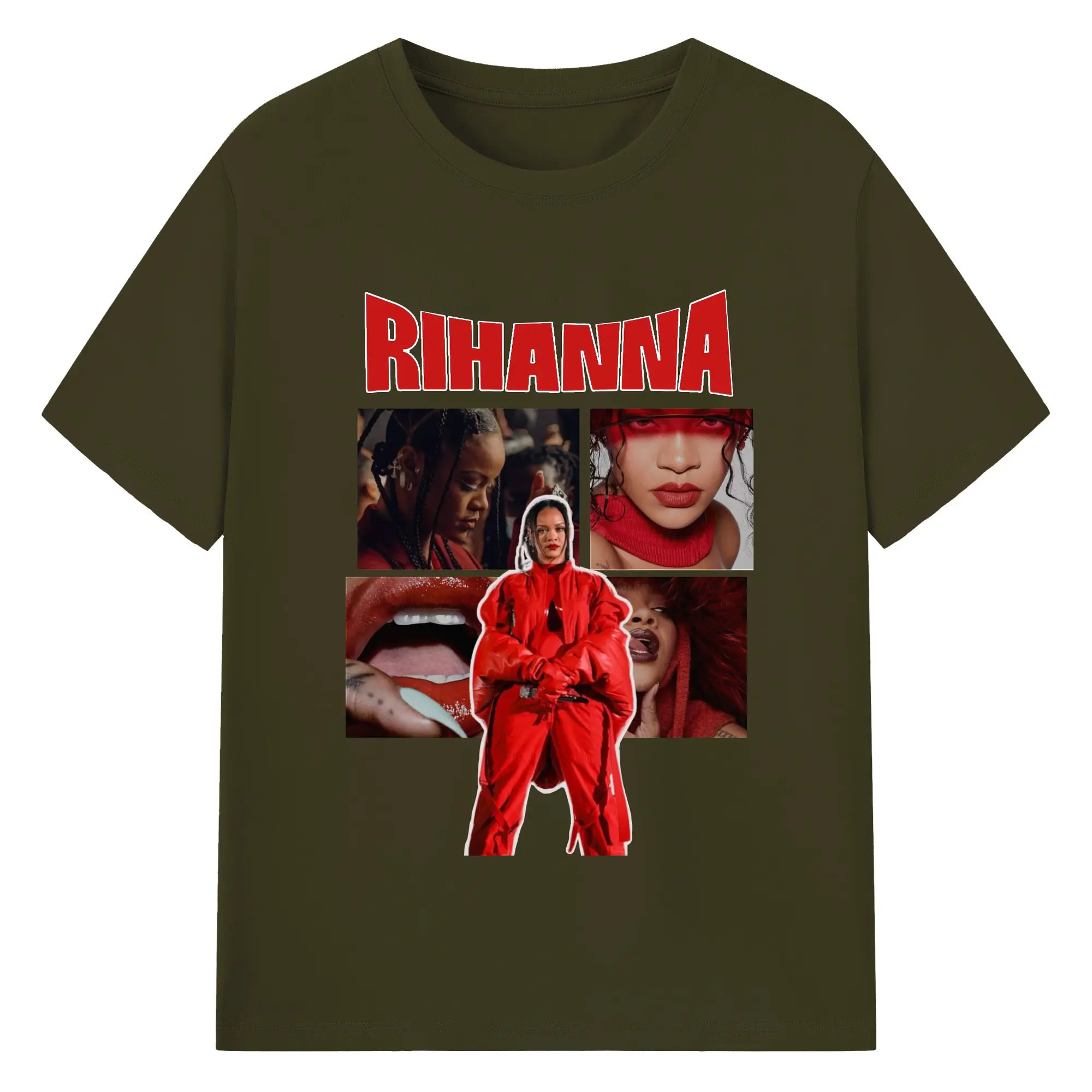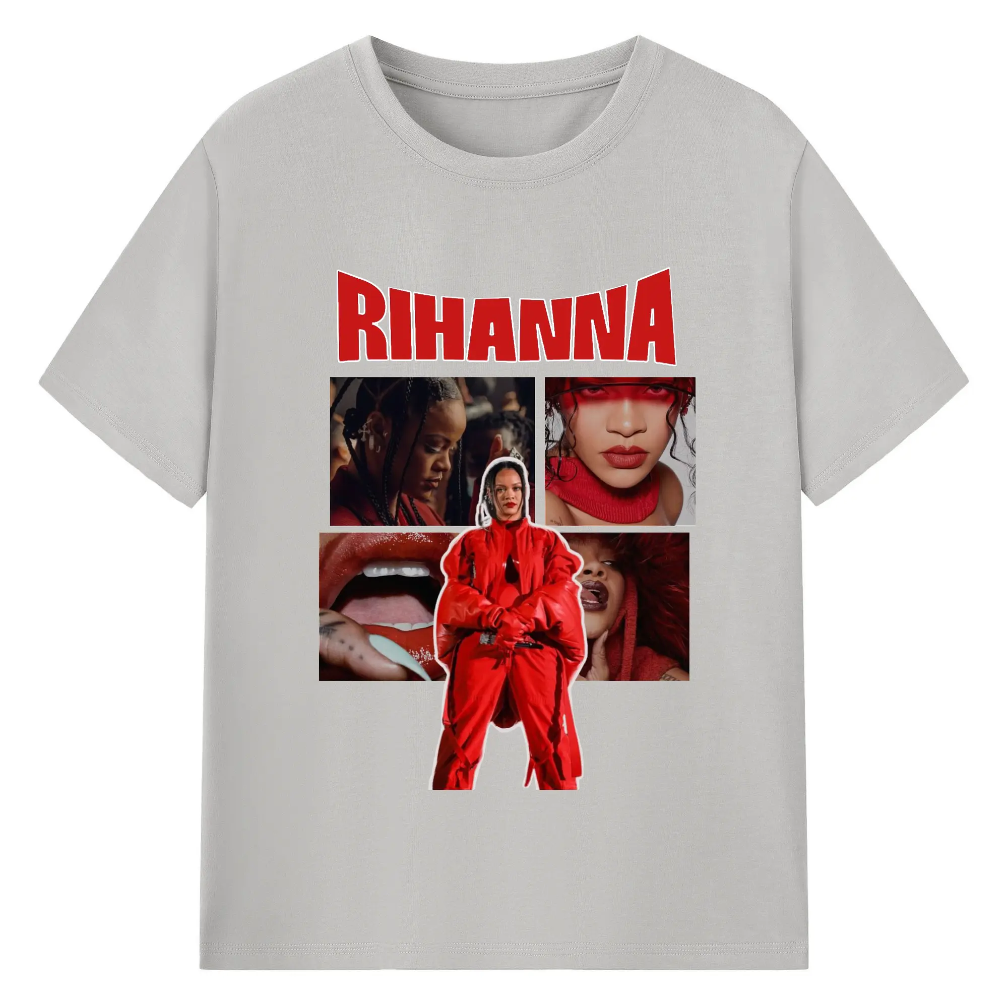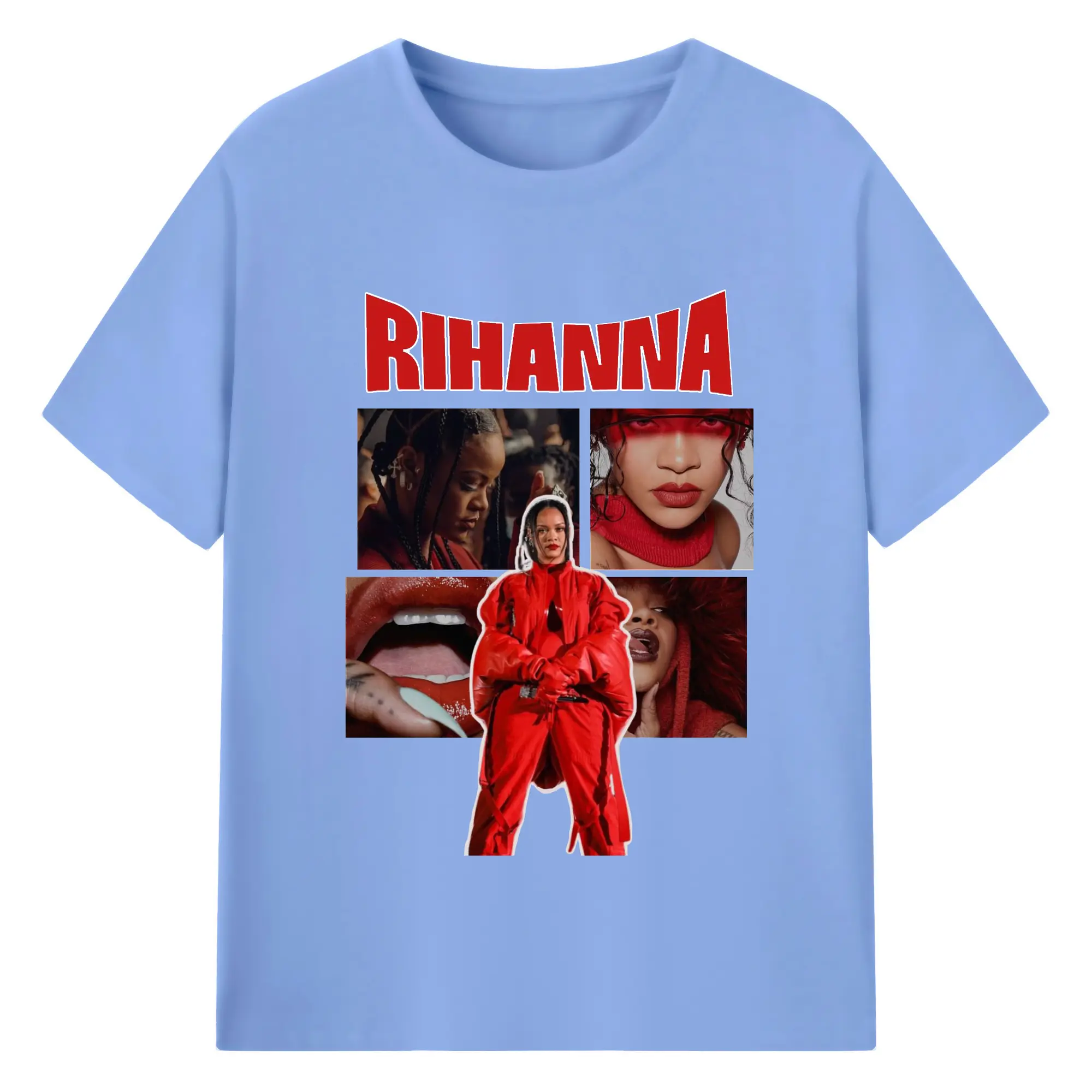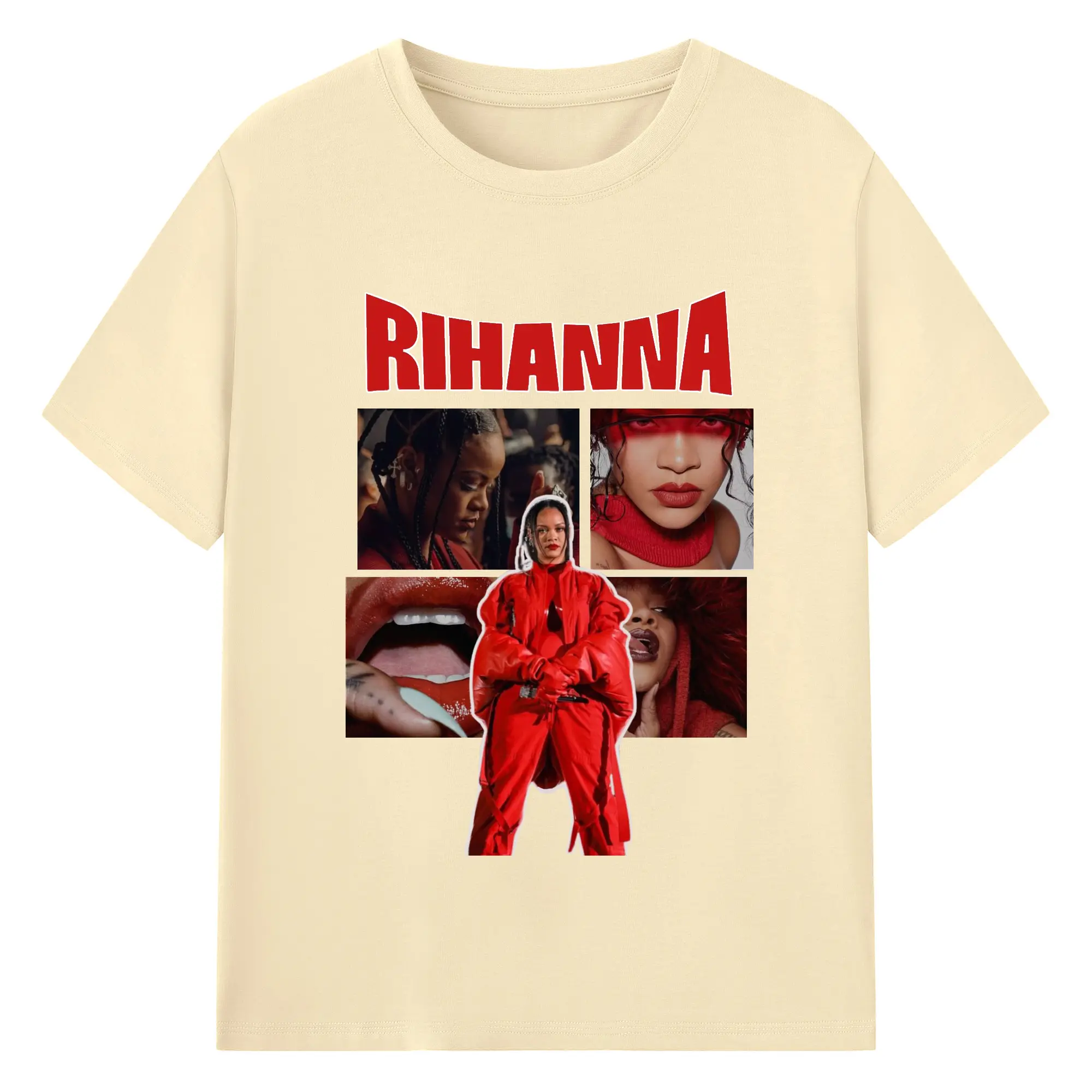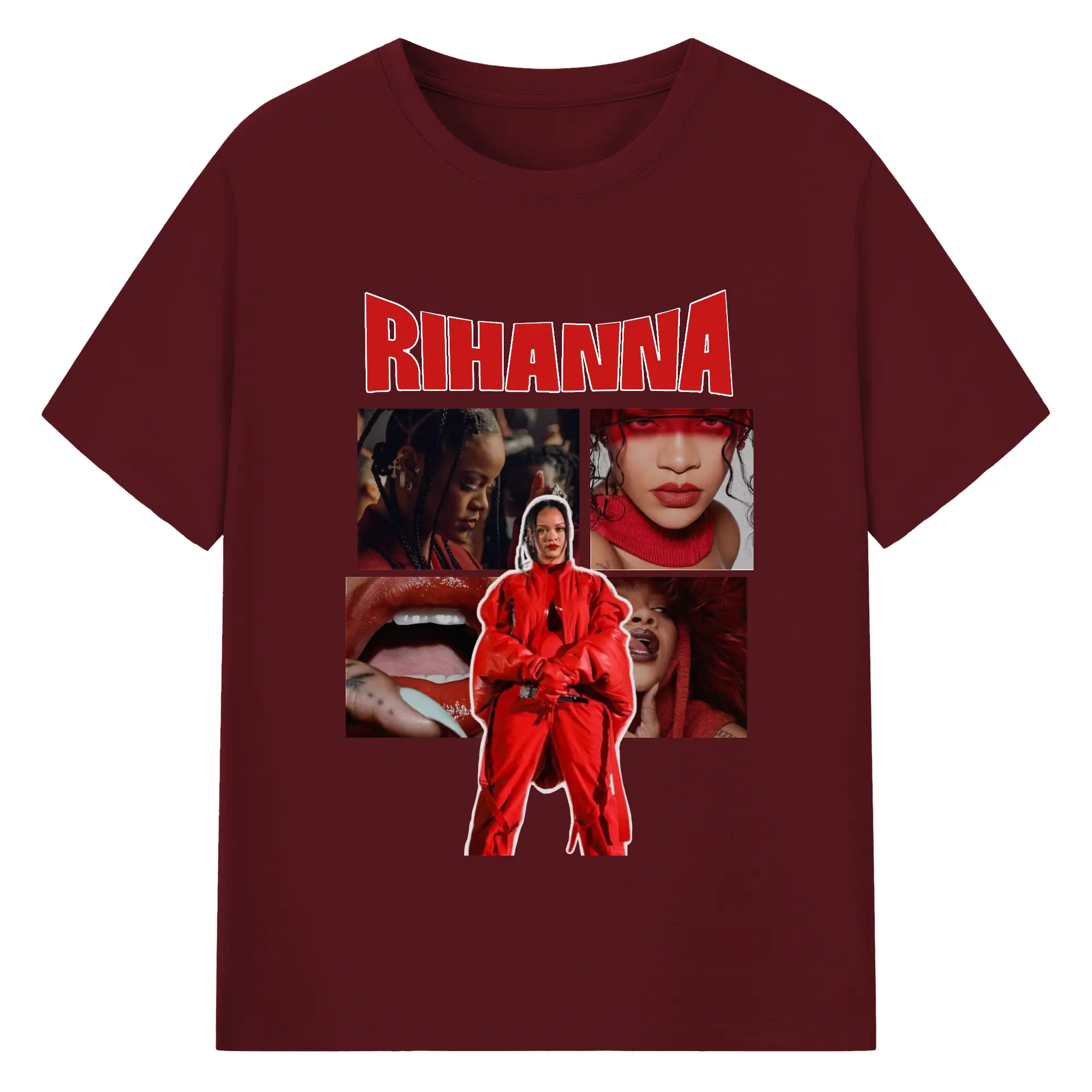 Rihanna Red Fashion Collage DIY - 180g Cotton T-Shirt With Front Heat Transfer Print – Soft, Lightweight, Fitted Design – Comfortable Casual Wear For Sports & Everyday Use