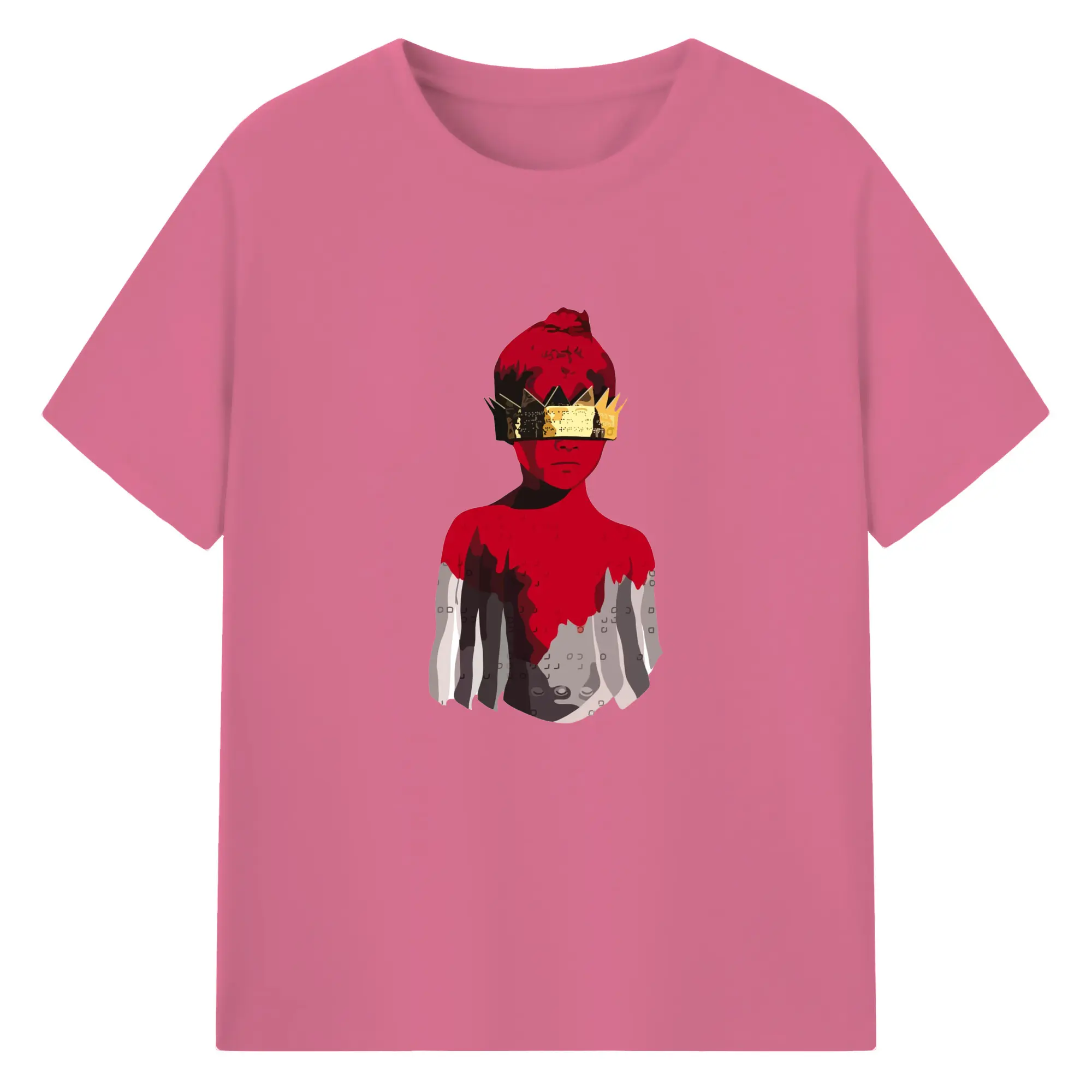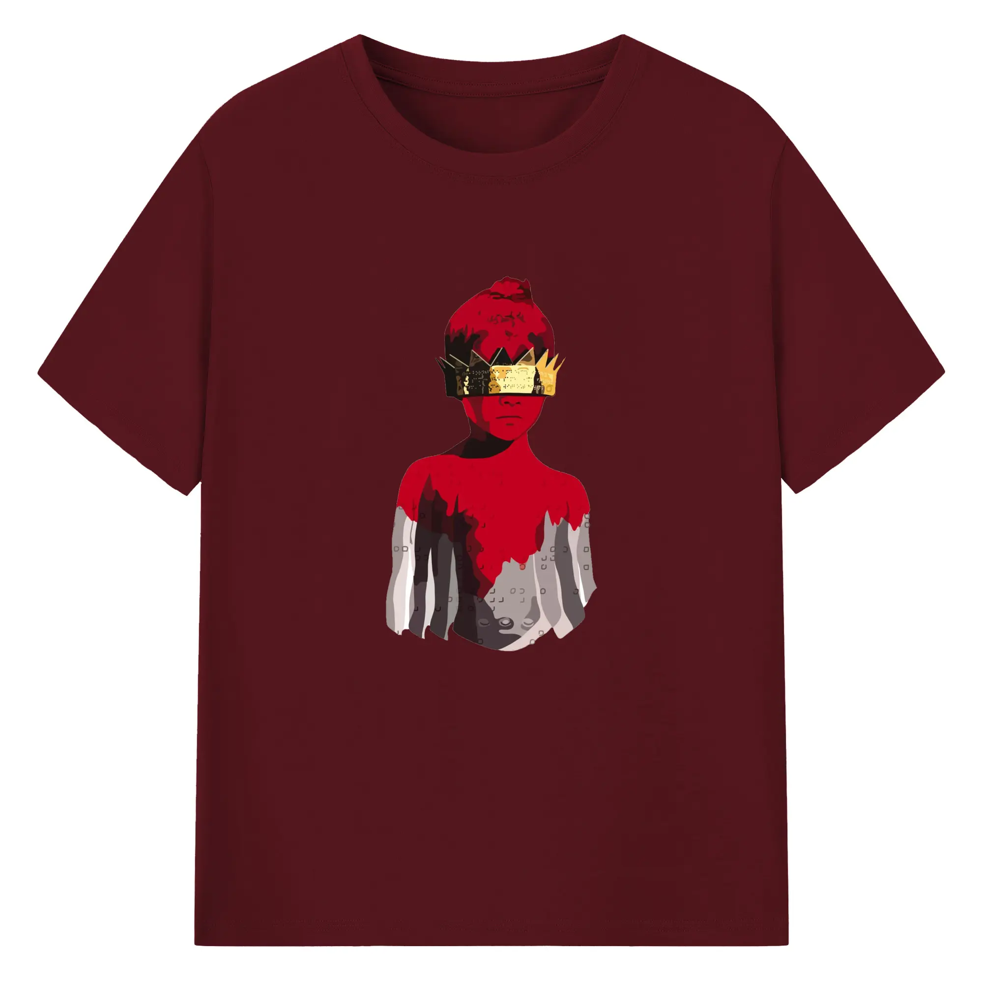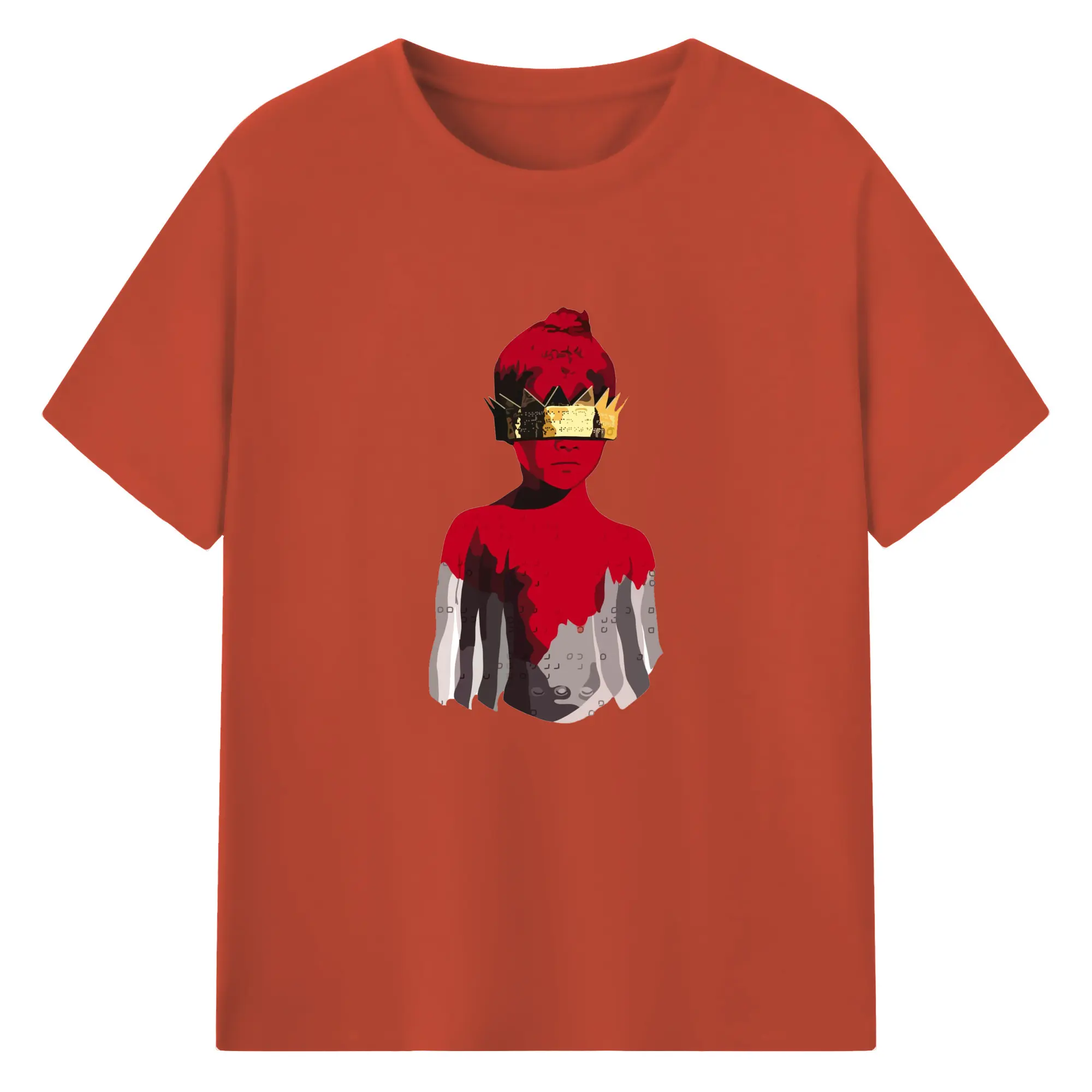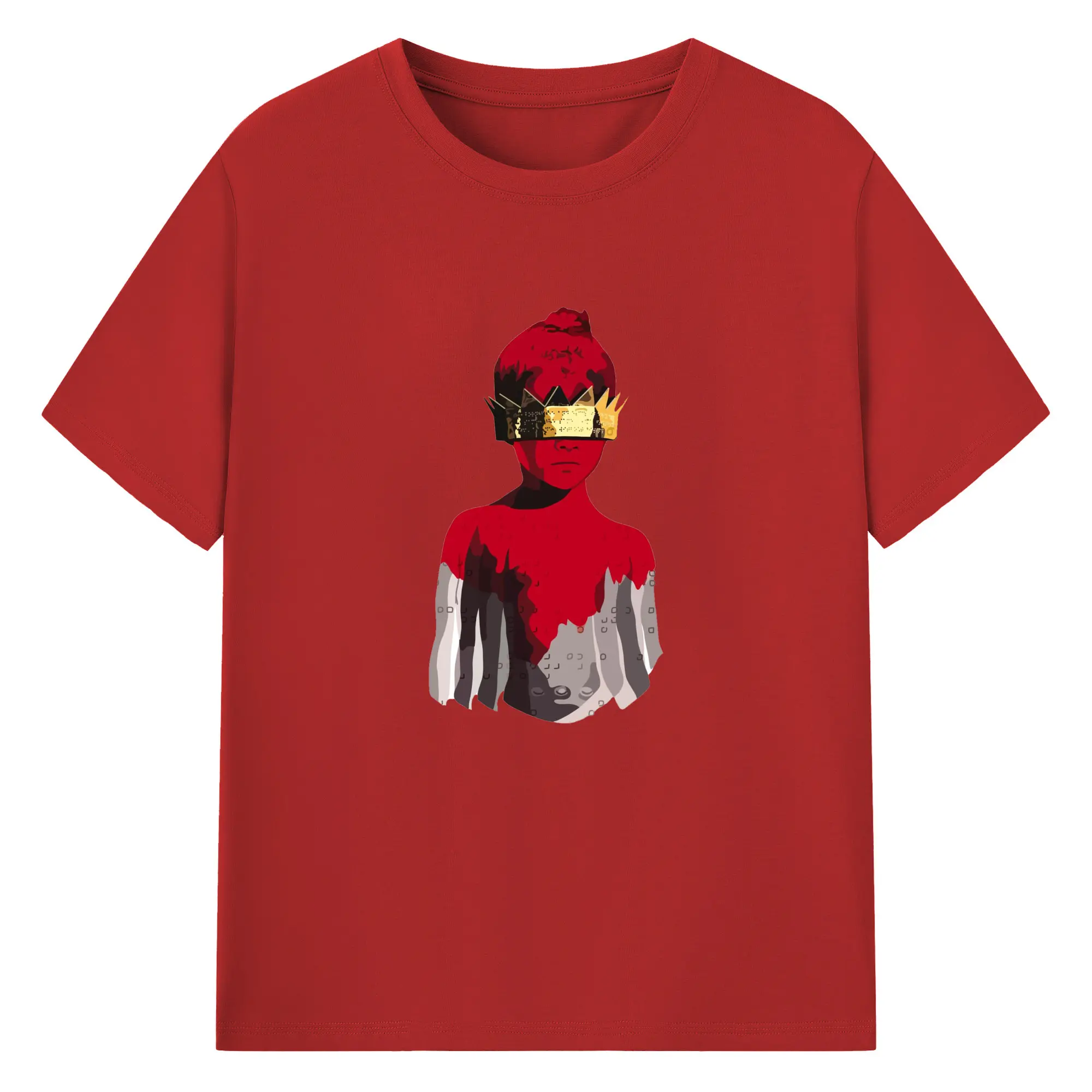 Rihanna Red & Gold Art Trend DIY - 180g Cotton T-Shirt With Front Heat Transfer Print – Soft, Lightweight, Fitted Design – Comfortable Casual Wear For Sports & Everyday Use