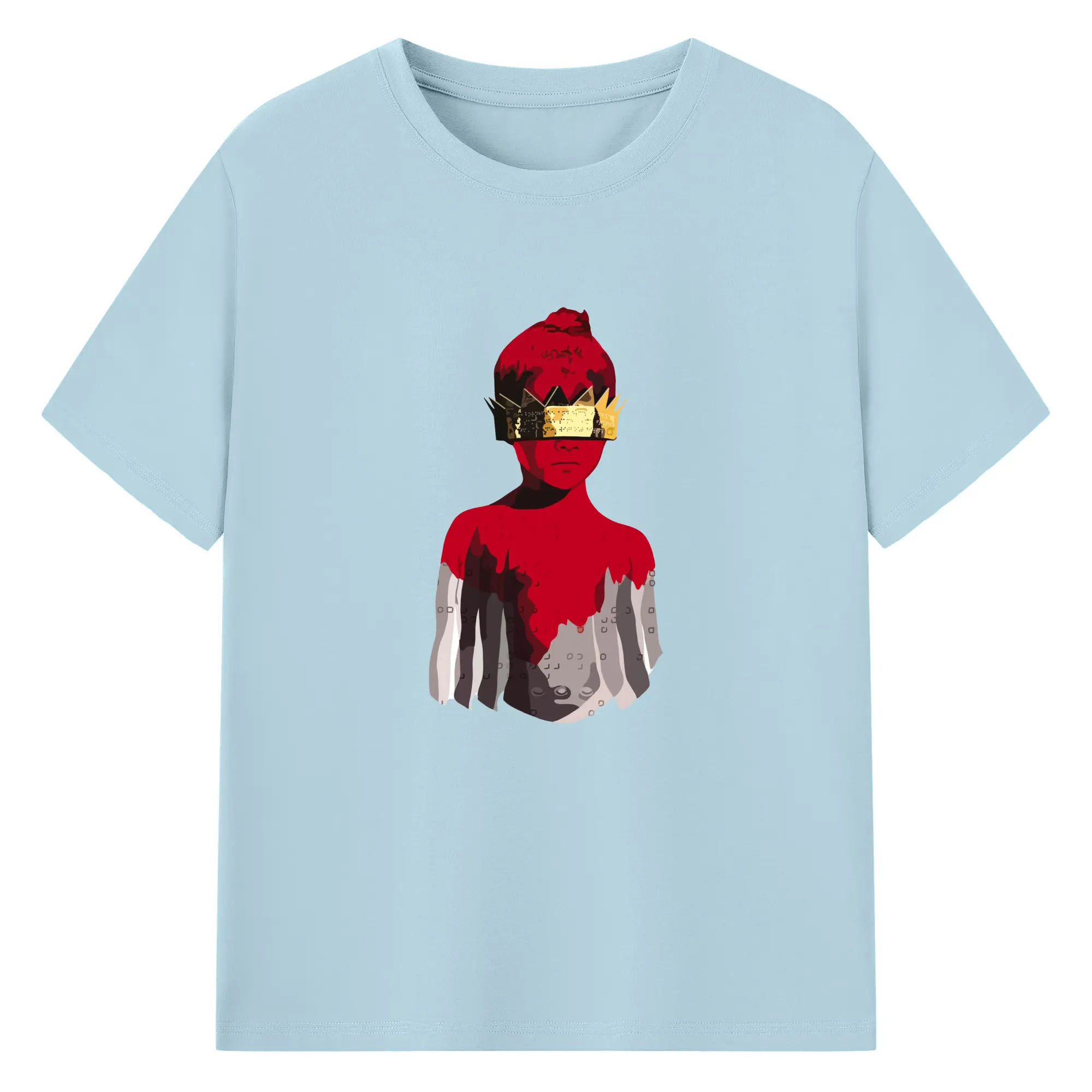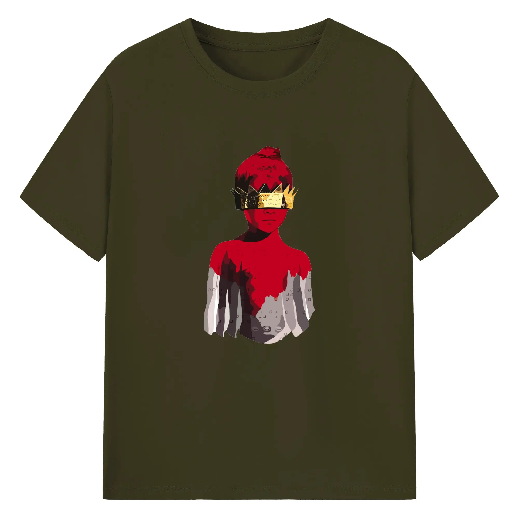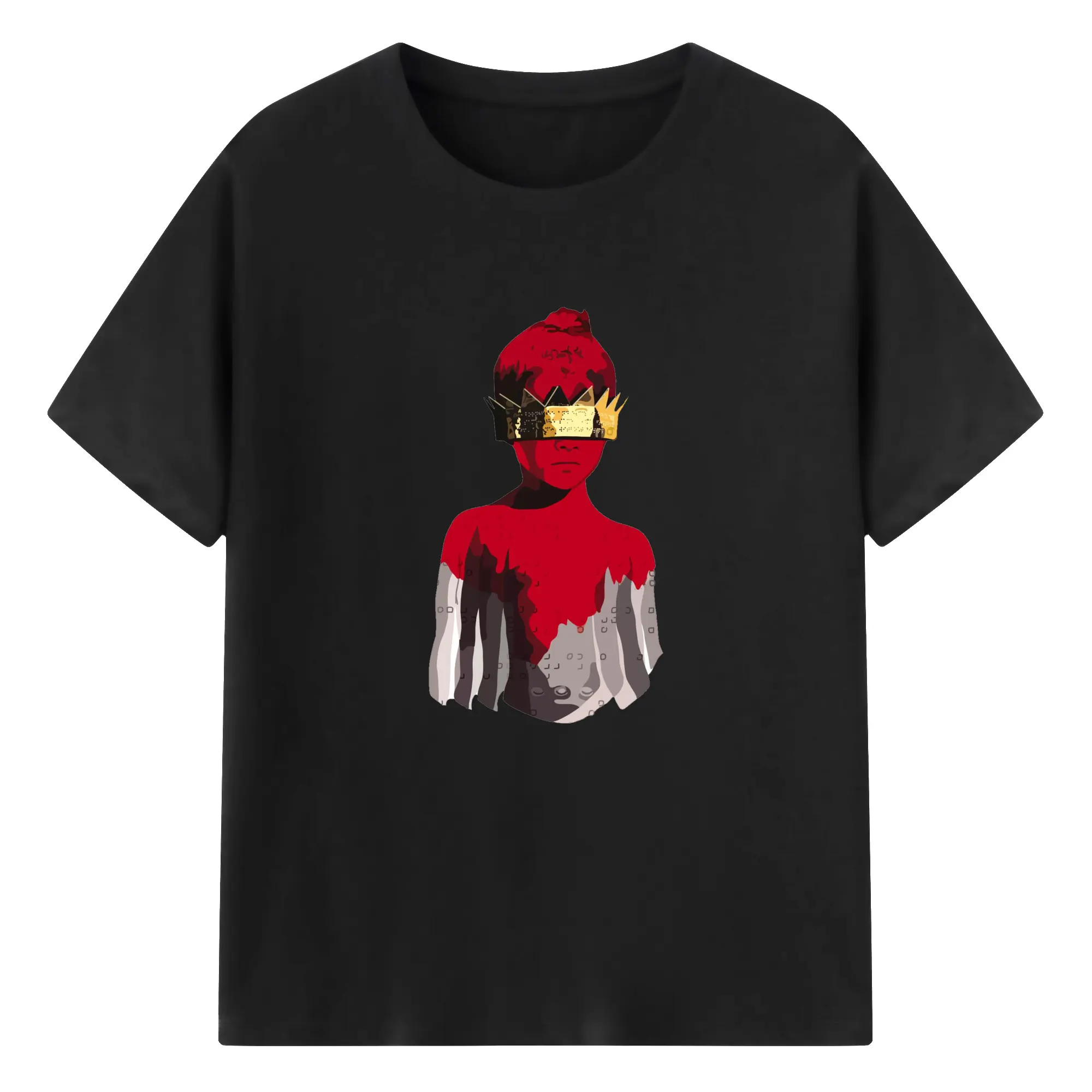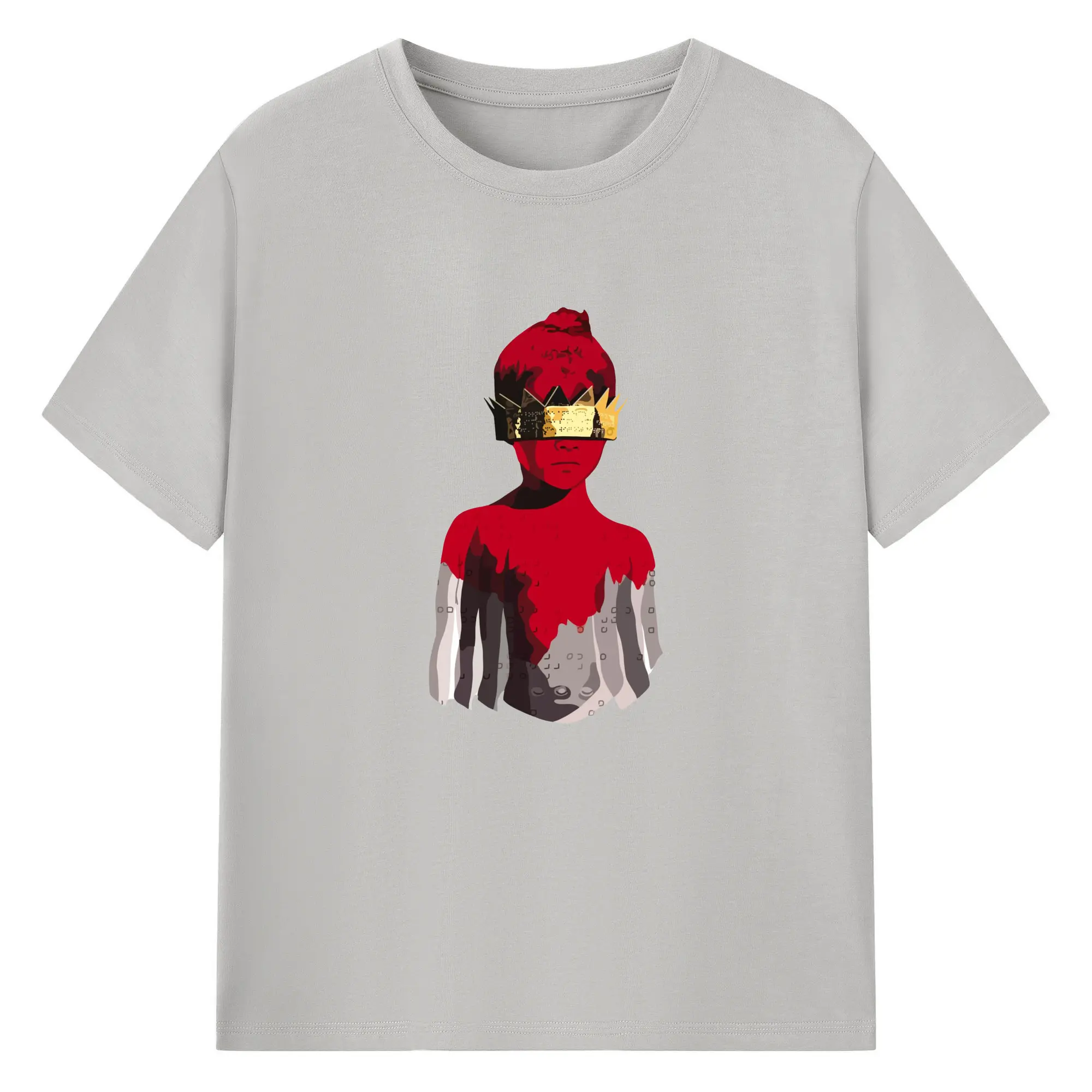 Rihanna Red & Gold Art Trend DIY - 180g Cotton T-Shirt With Front Heat Transfer Print – Soft, Lightweight, Fitted Design – Comfortable Casual Wear For Sports & Everyday Use