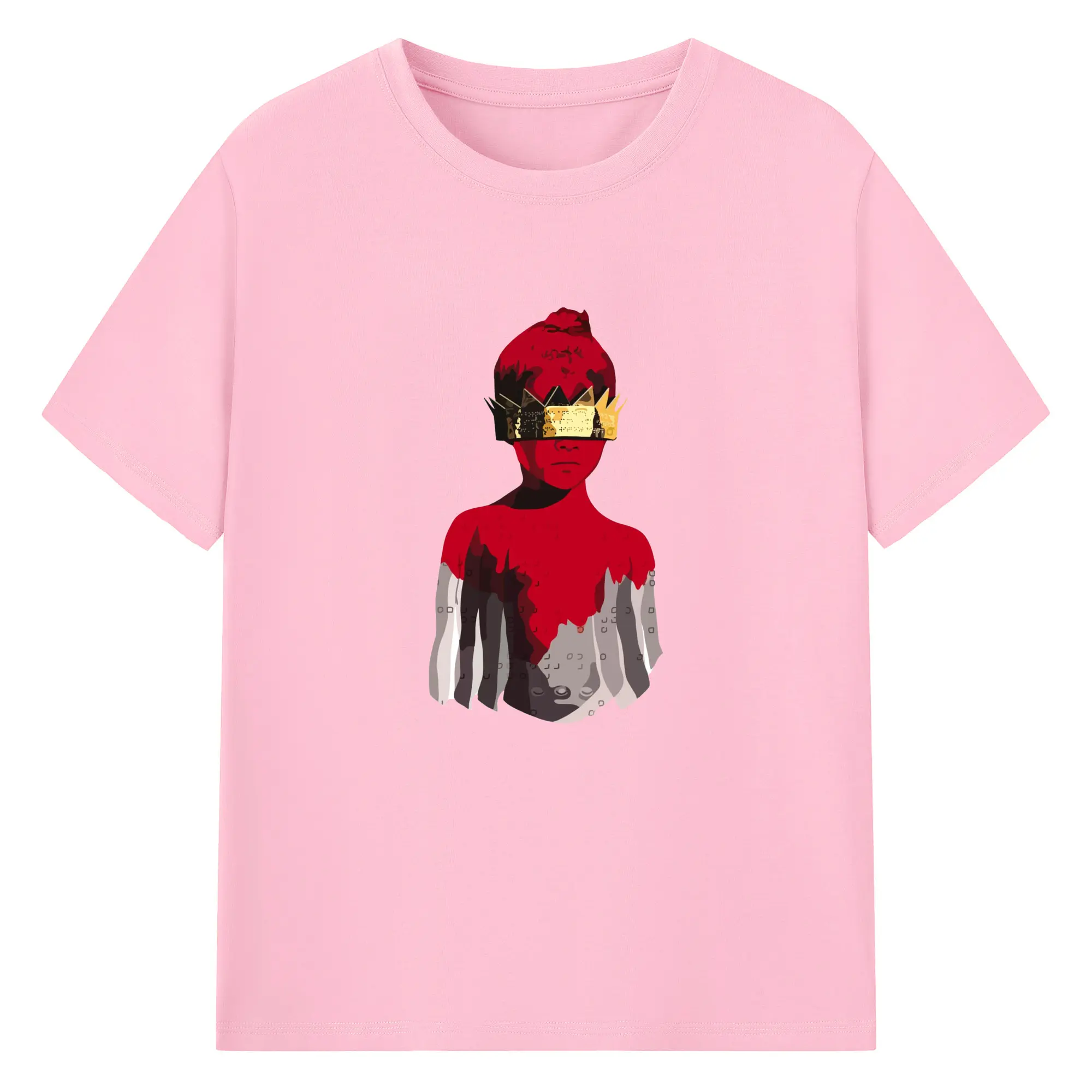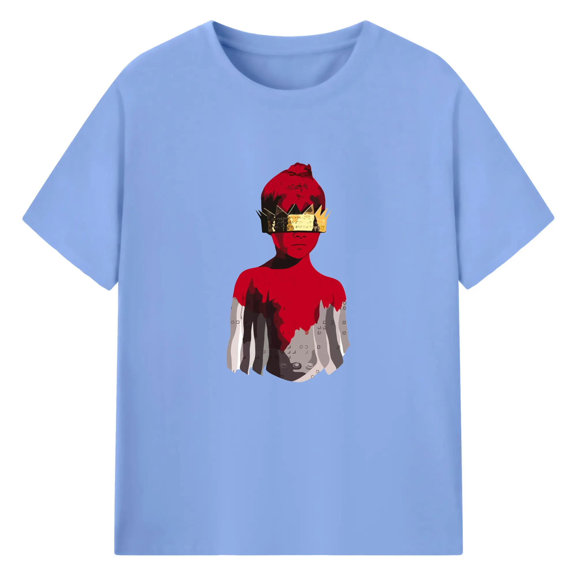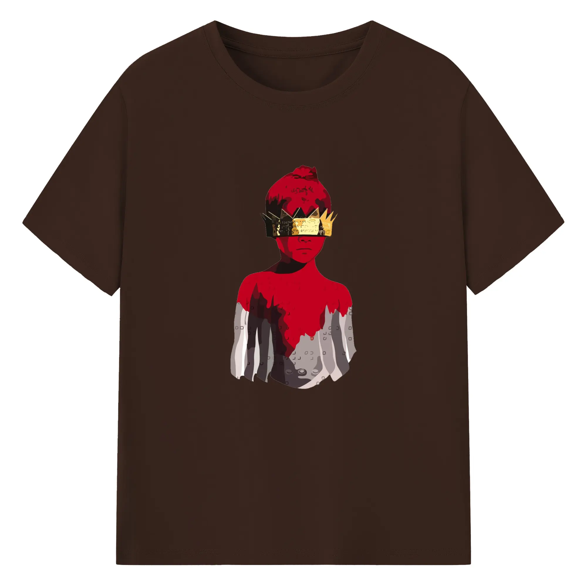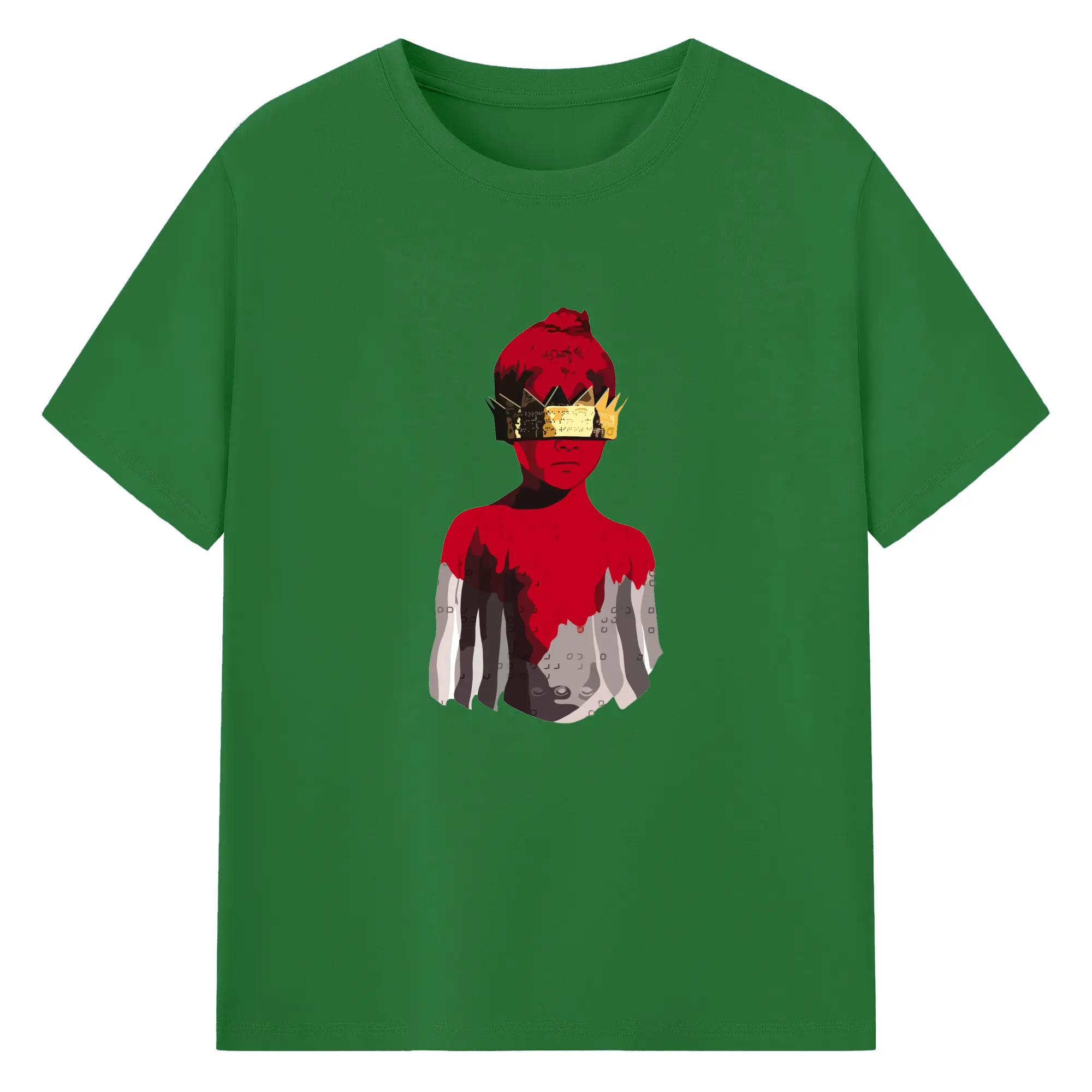 Rihanna Red & Gold Art Trend DIY - 180g Cotton T-Shirt With Front Heat Transfer Print – Soft, Lightweight, Fitted Design – Comfortable Casual Wear For Sports & Everyday Use