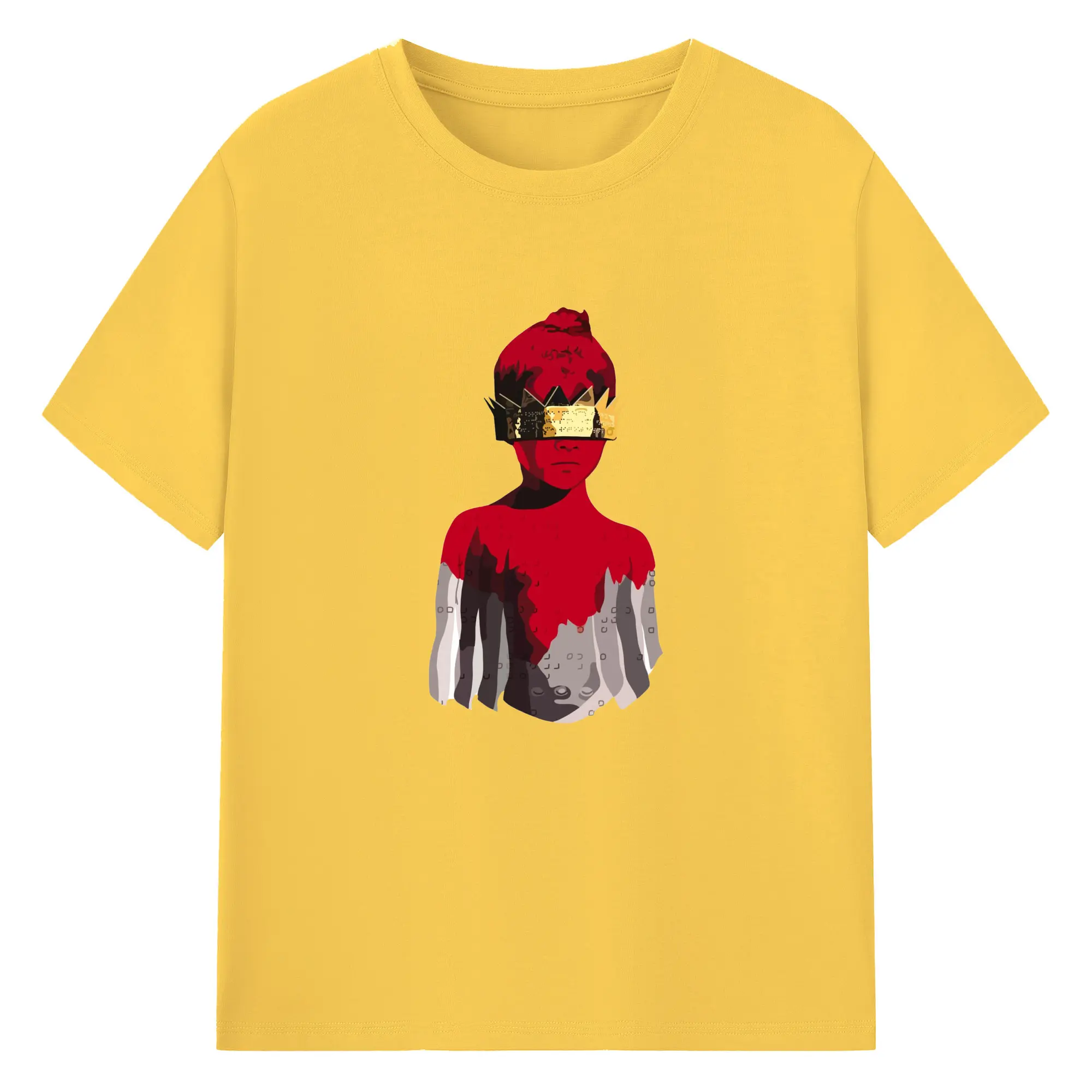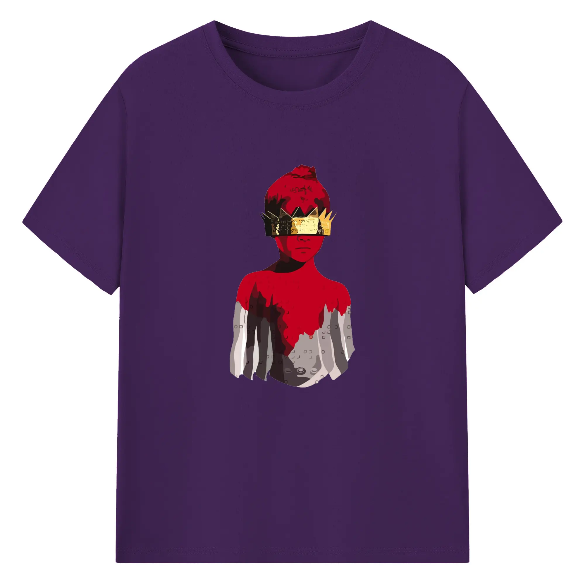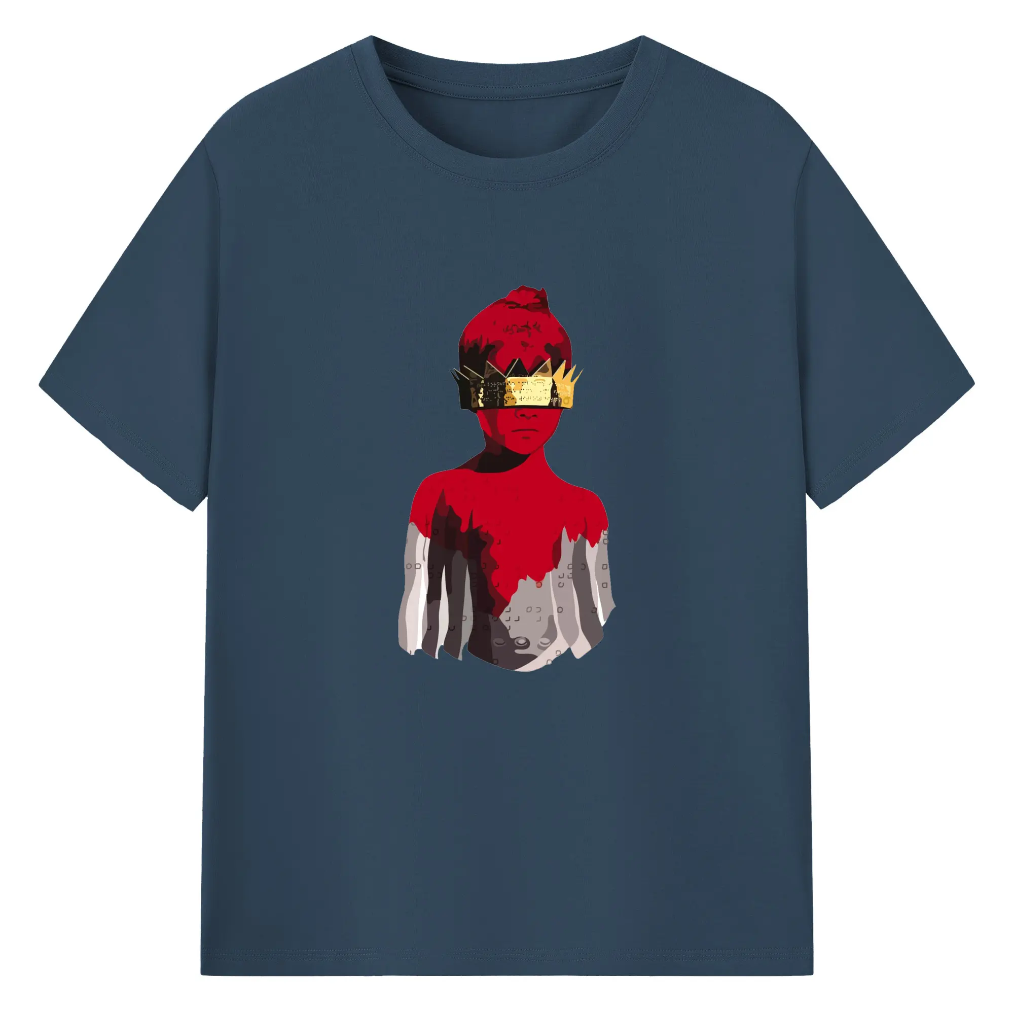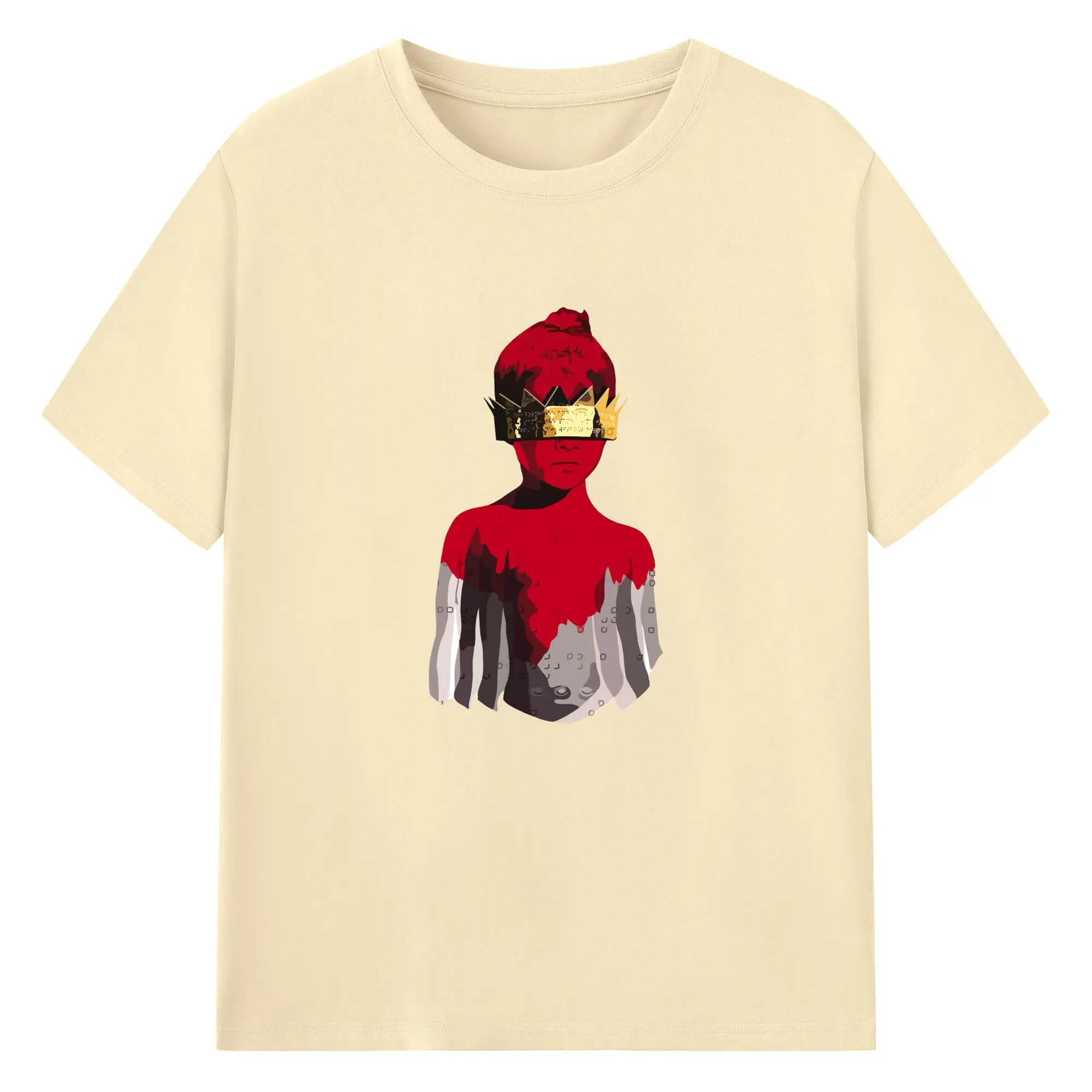 Rihanna Red & Gold Art Trend DIY - 180g Cotton T-Shirt With Front Heat Transfer Print – Soft, Lightweight, Fitted Design – Comfortable Casual Wear For Sports & Everyday Use