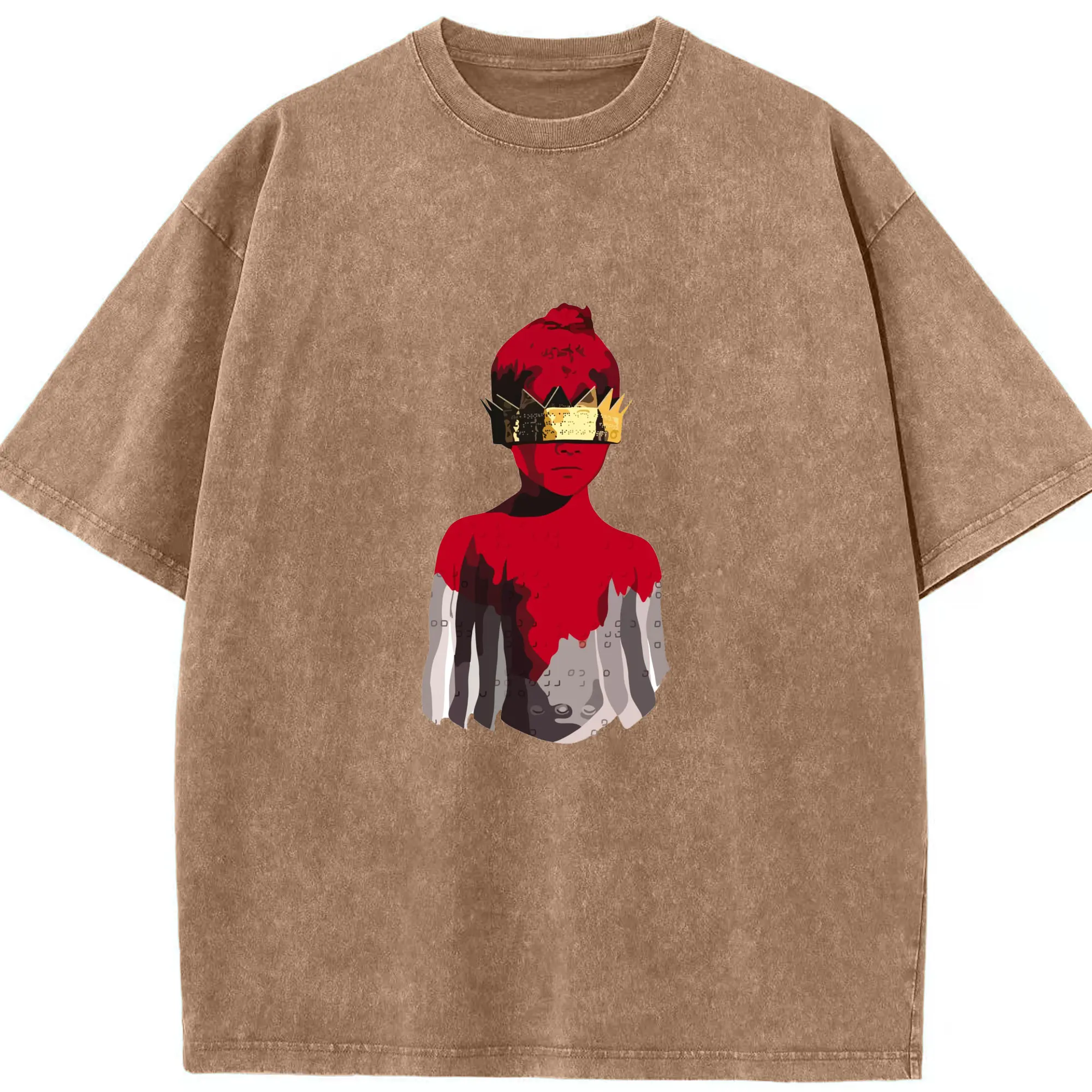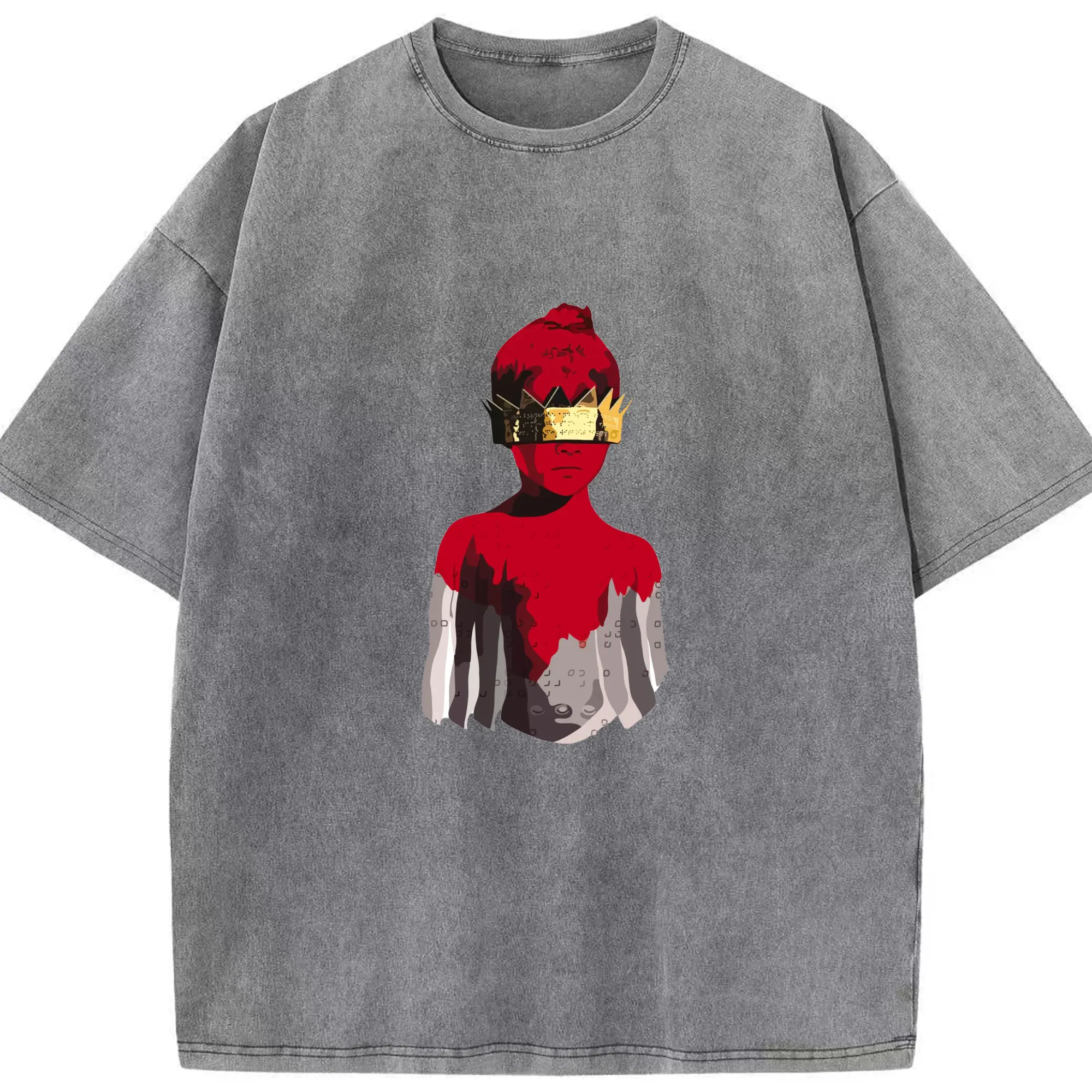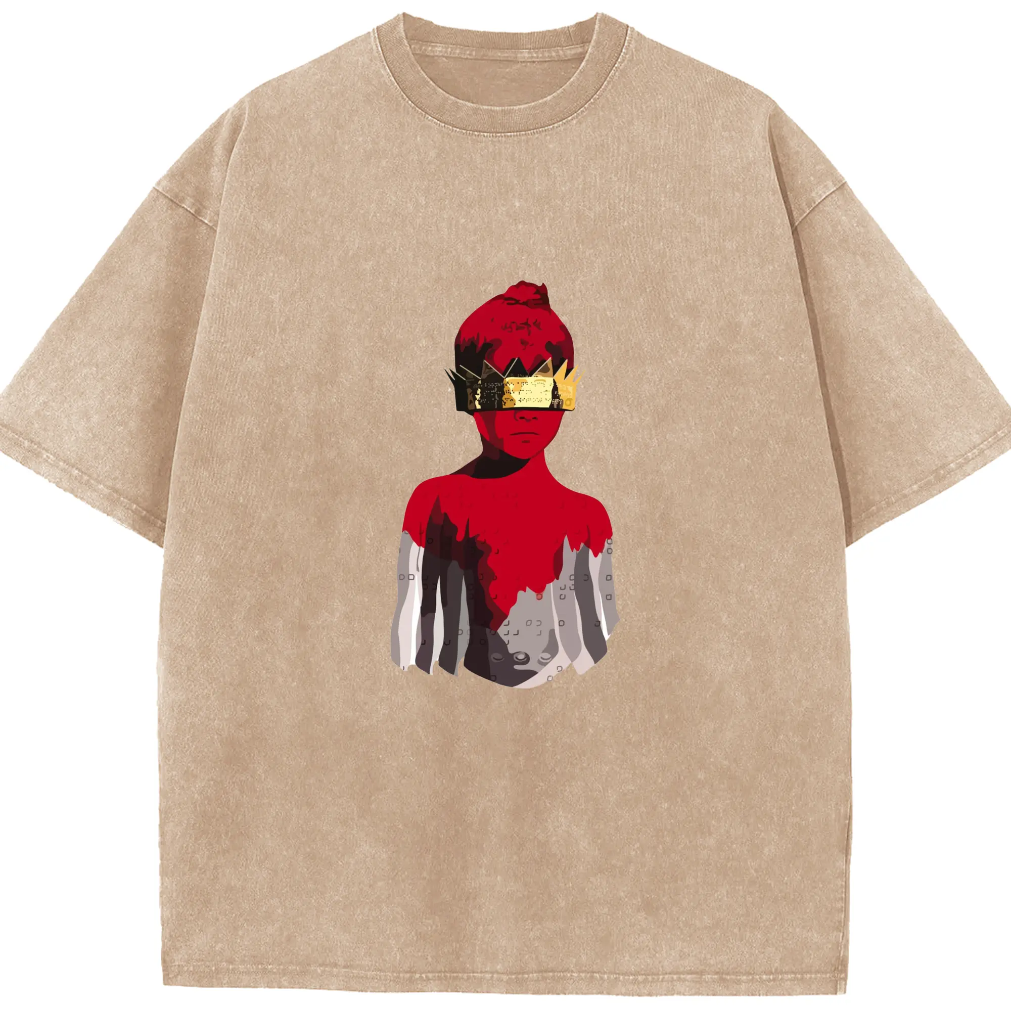 Rihanna Red & Gold Art Trend DIY - Washed Vintage Look 230g Cotton Oversized T-Shirt With Front Heat Transfer Print – Soft, Lightweight, Stylish Fit – Comfortable Casual Wear For Sports & Everyday Use
