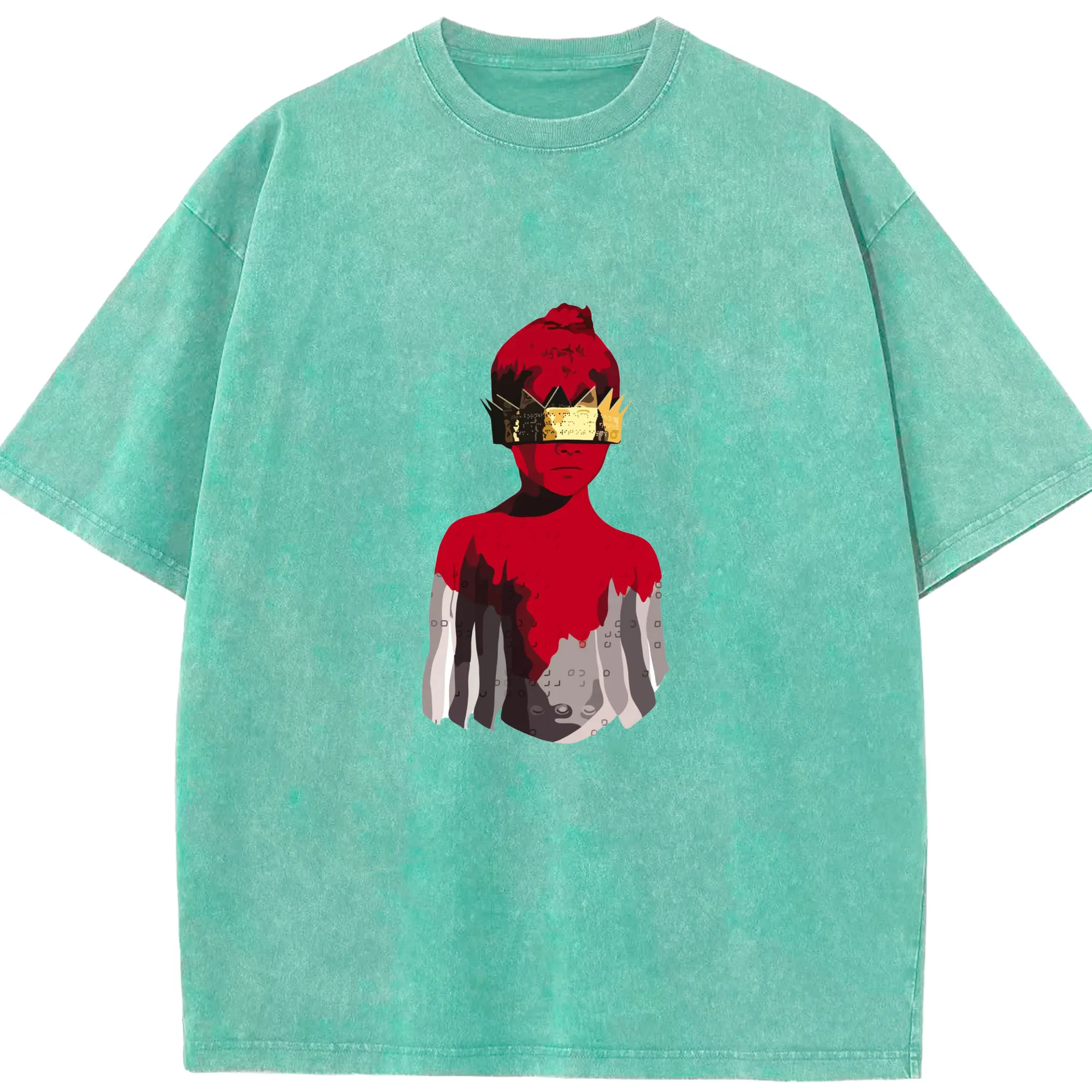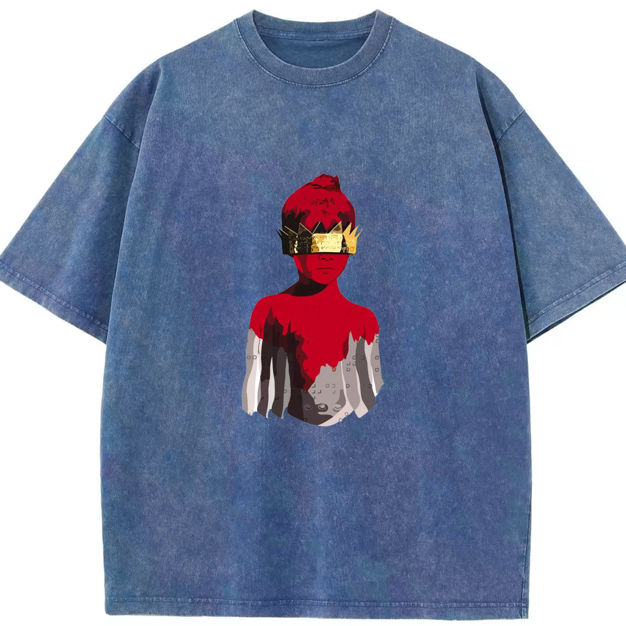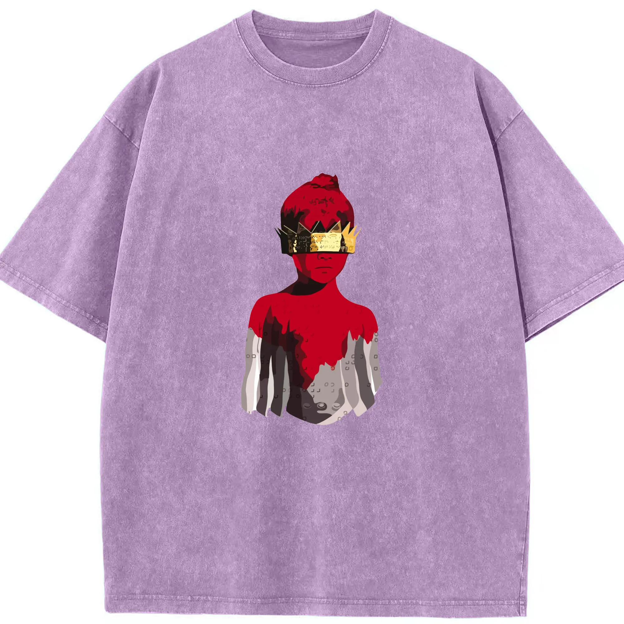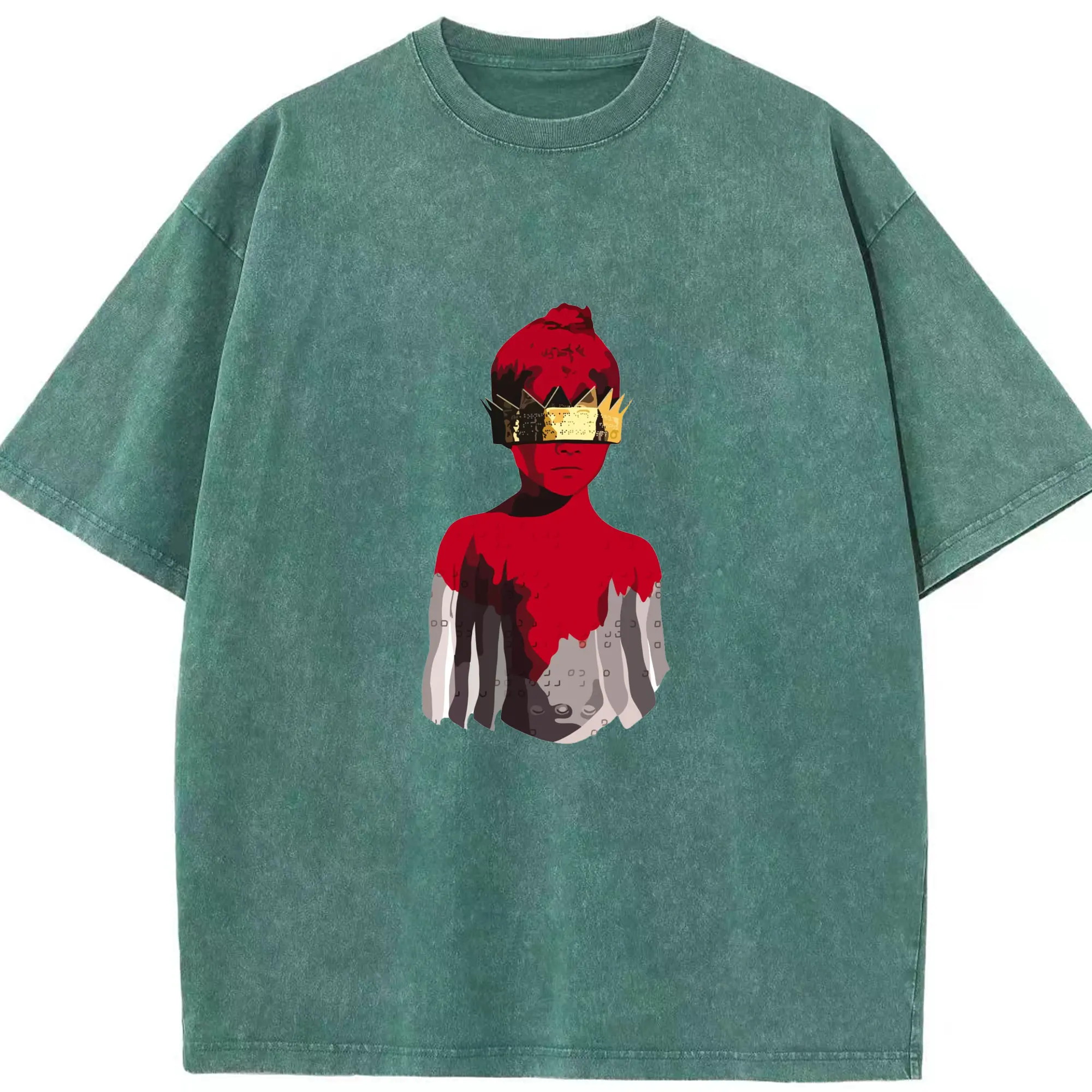 Rihanna Red & Gold Art Trend DIY - Washed Vintage Look 230g Cotton Oversized T-Shirt With Front Heat Transfer Print – Soft, Lightweight, Stylish Fit – Comfortable Casual Wear For Sports & Everyday Use