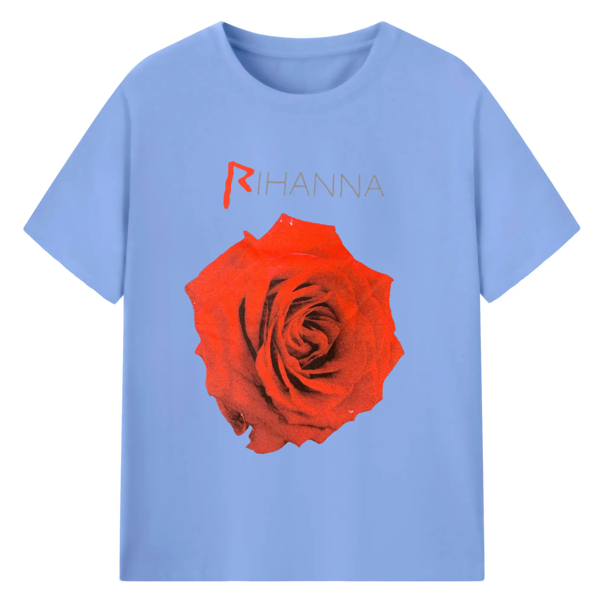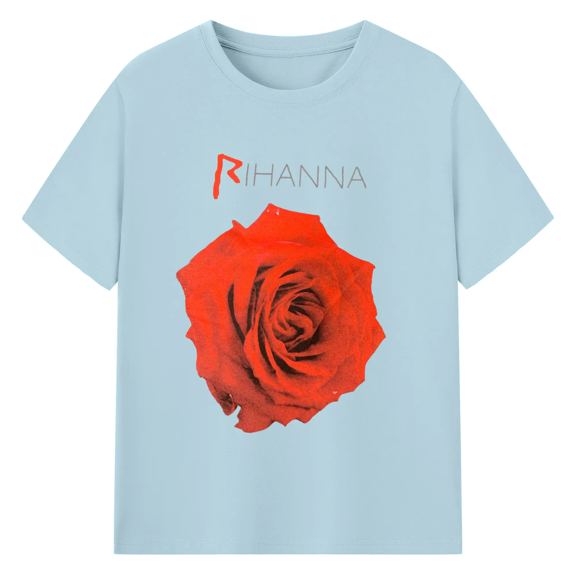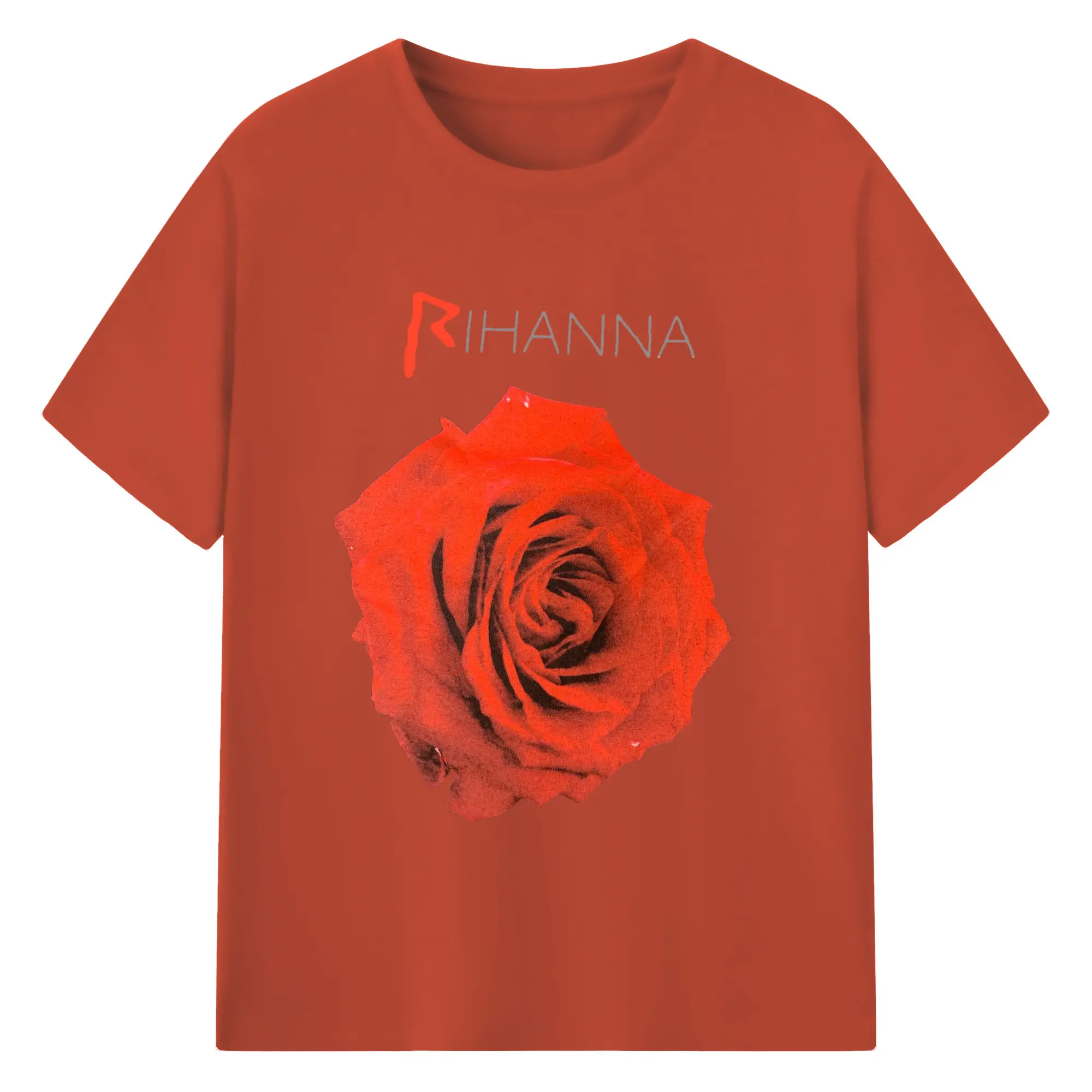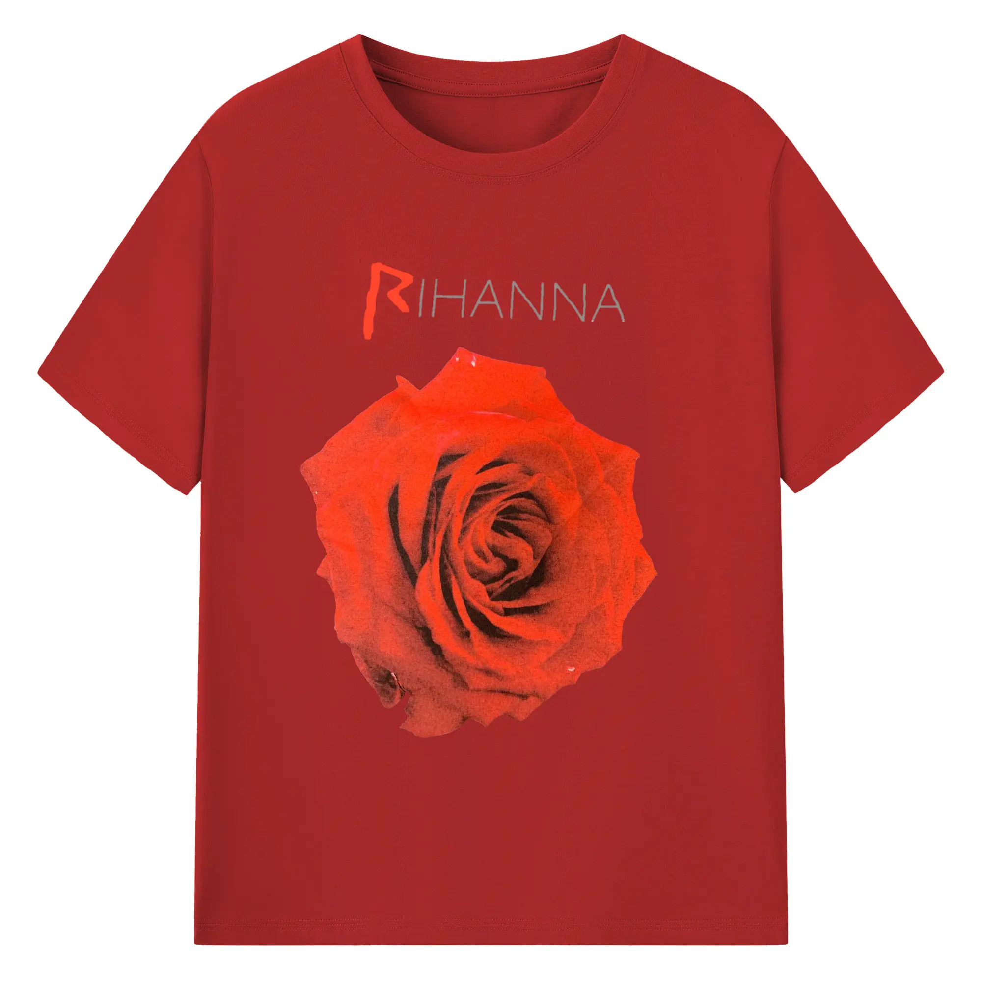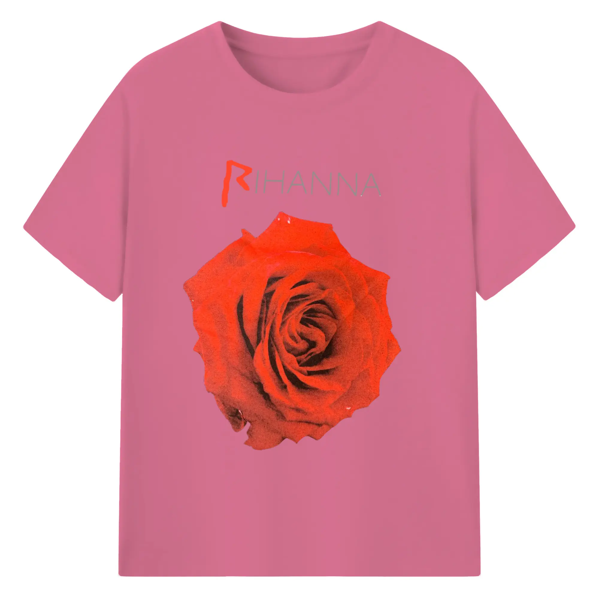 Rihanna Red Rose Romantic DIY - 180g Cotton T-Shirt With Front Heat Transfer Print – Soft, Lightweight, Fitted Design – Comfortable Casual Wear For Sports & Everyday Use