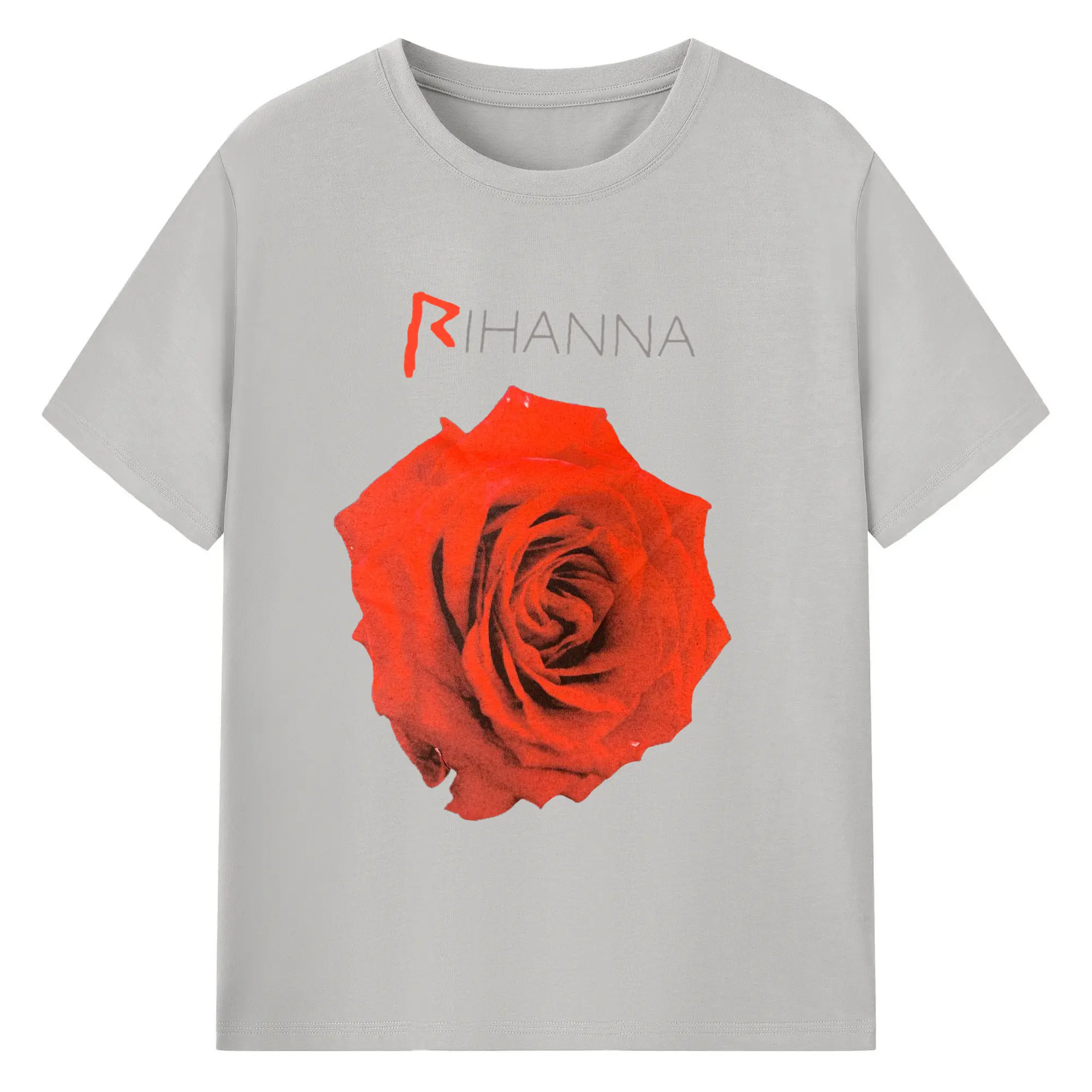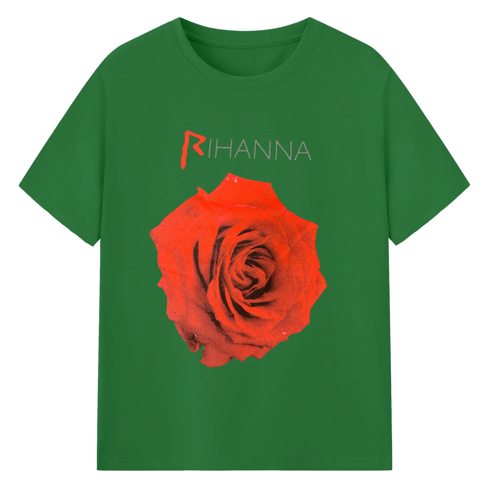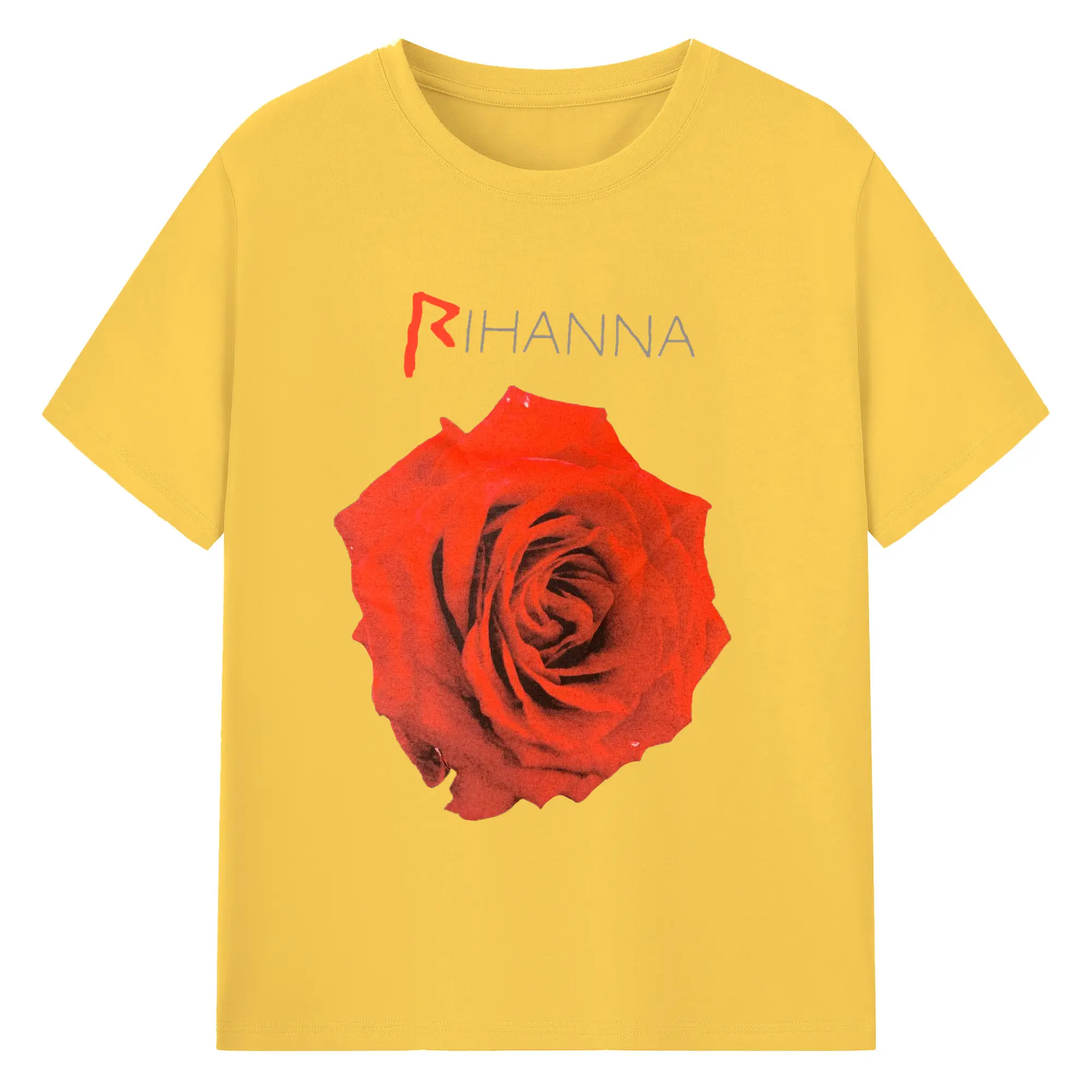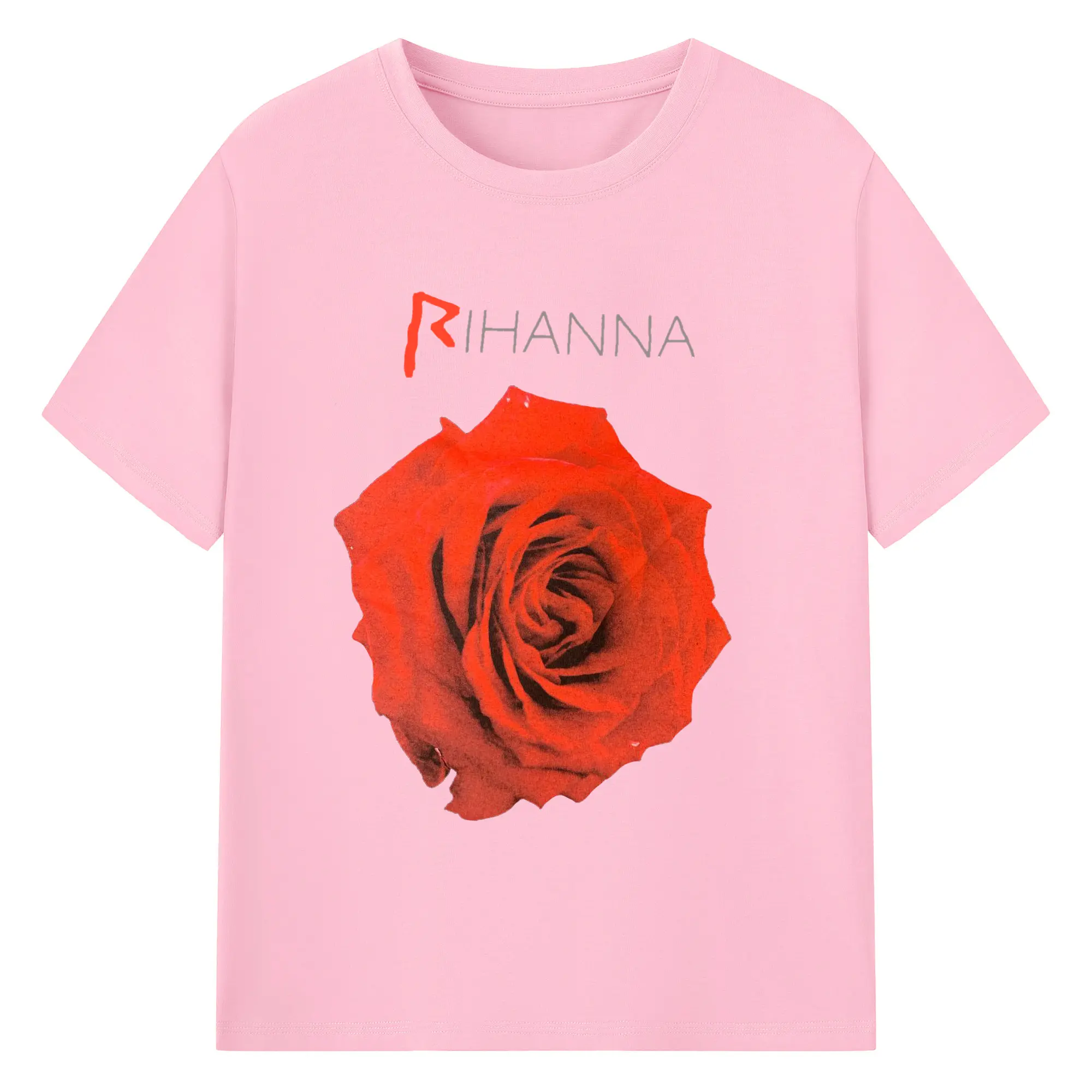 Rihanna Red Rose Romantic DIY - 180g Cotton T-Shirt With Front Heat Transfer Print – Soft, Lightweight, Fitted Design – Comfortable Casual Wear For Sports & Everyday Use
