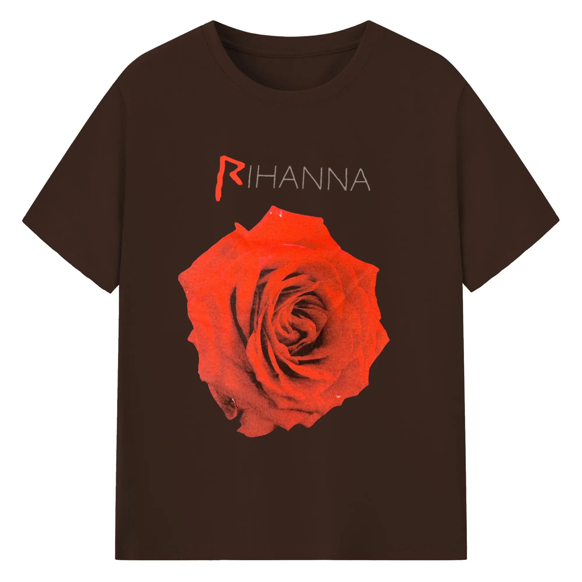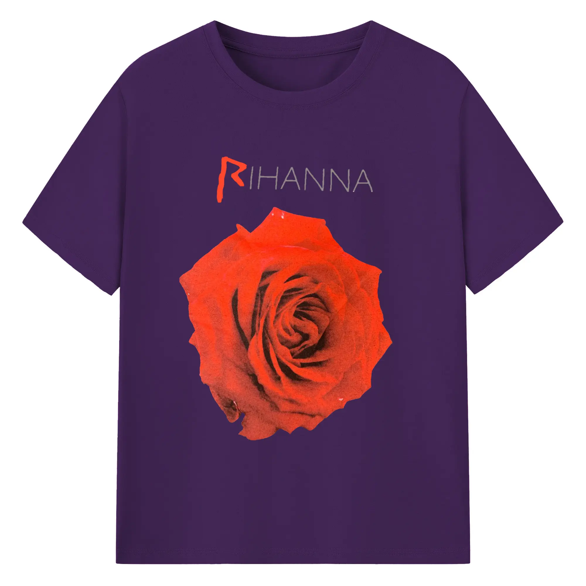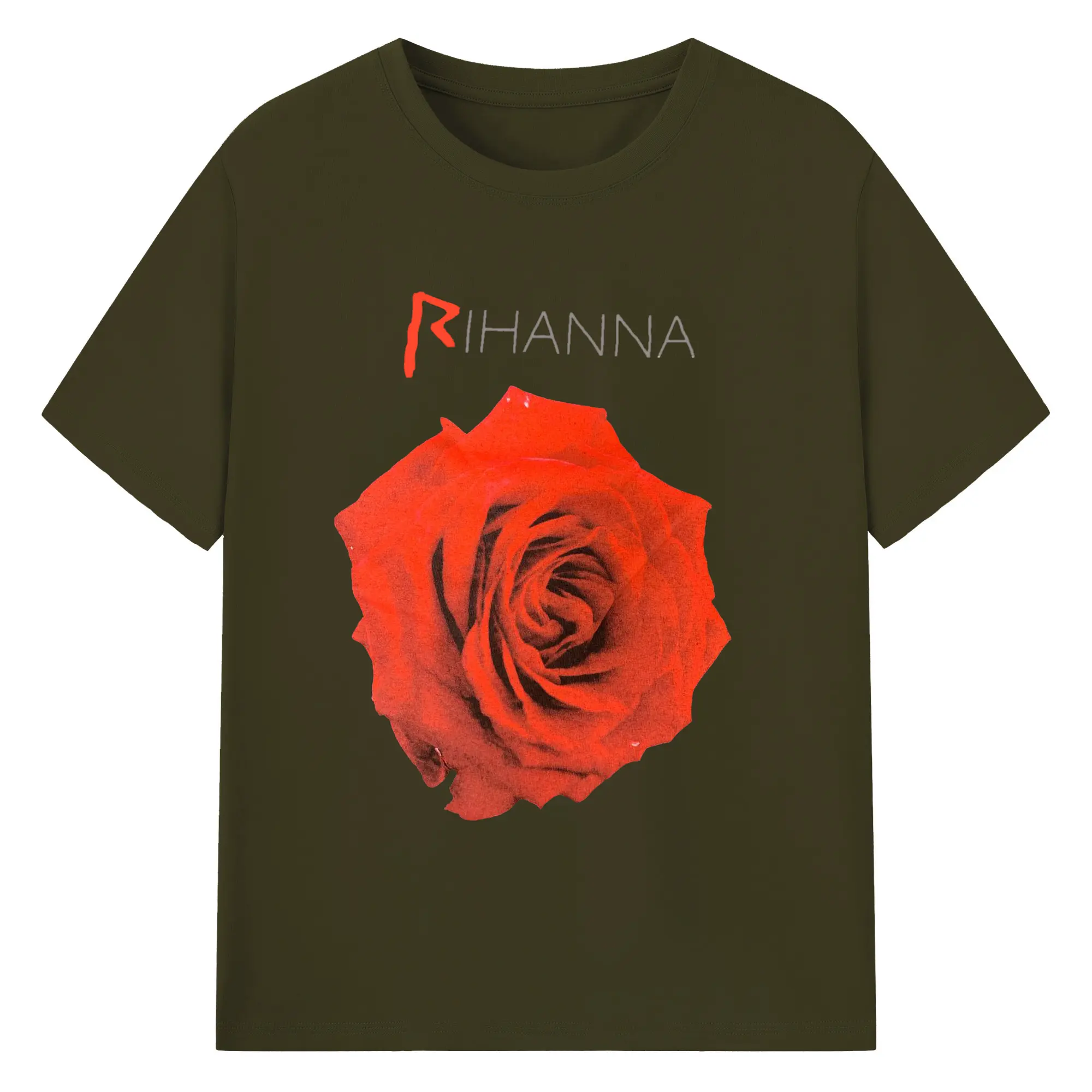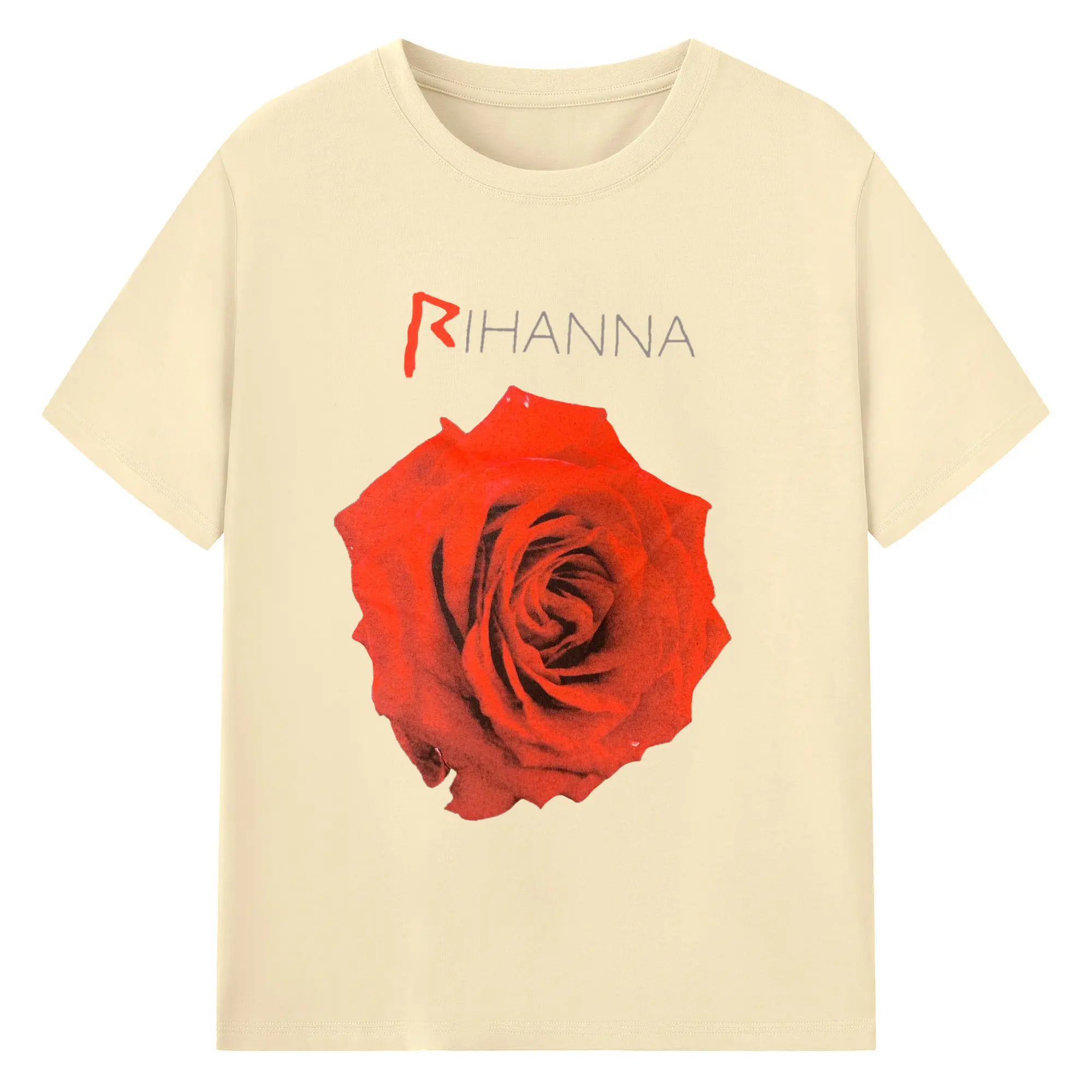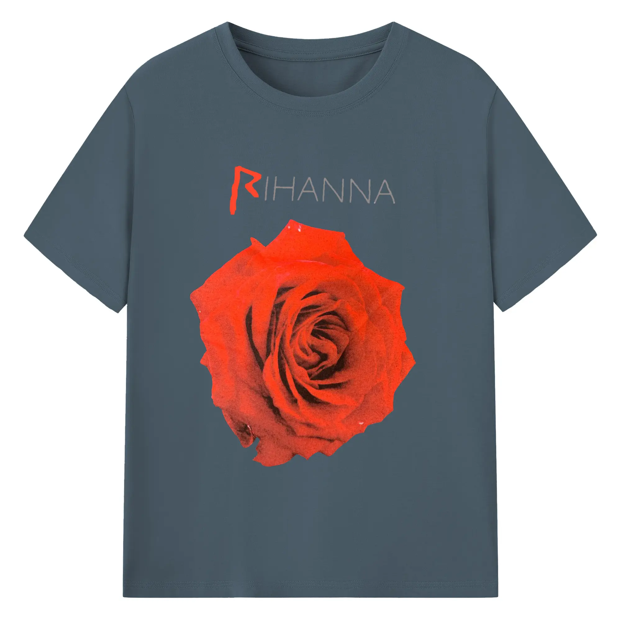 Rihanna Red Rose Romantic DIY - 180g Cotton T-Shirt With Front Heat Transfer Print – Soft, Lightweight, Fitted Design – Comfortable Casual Wear For Sports & Everyday Use