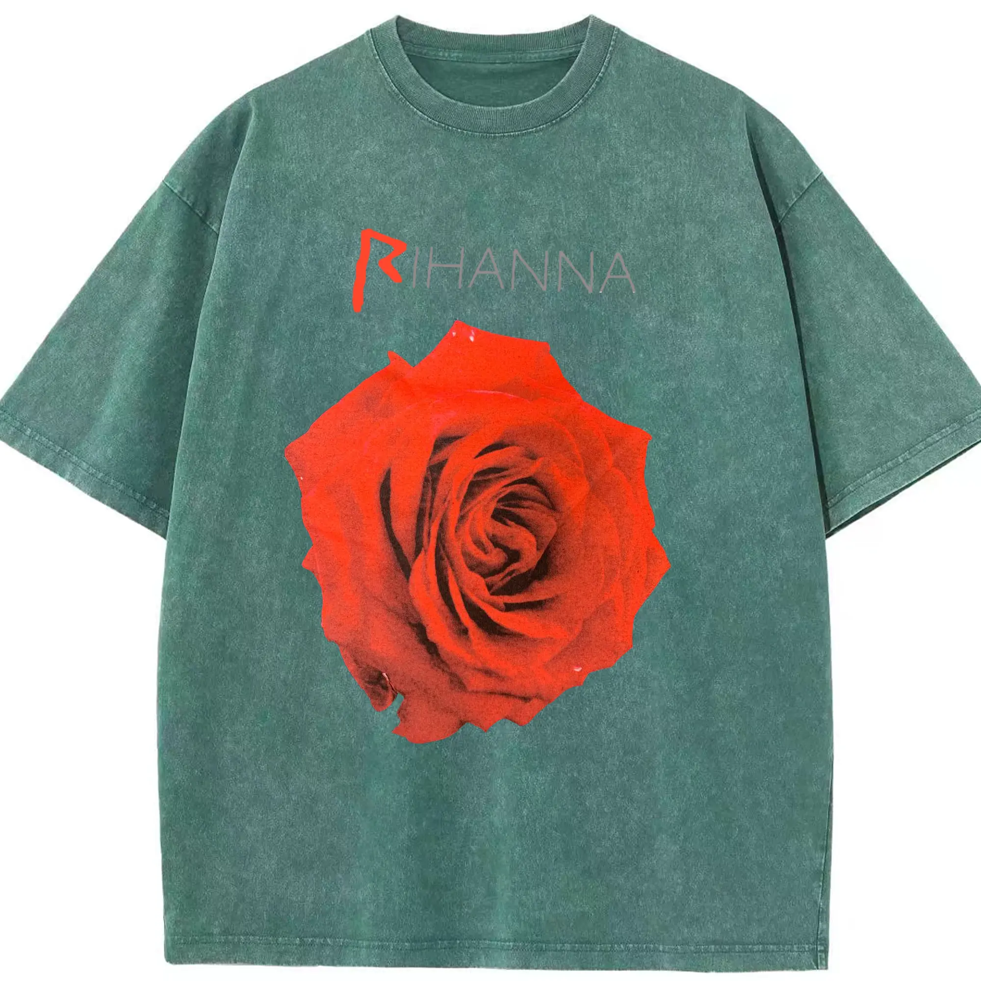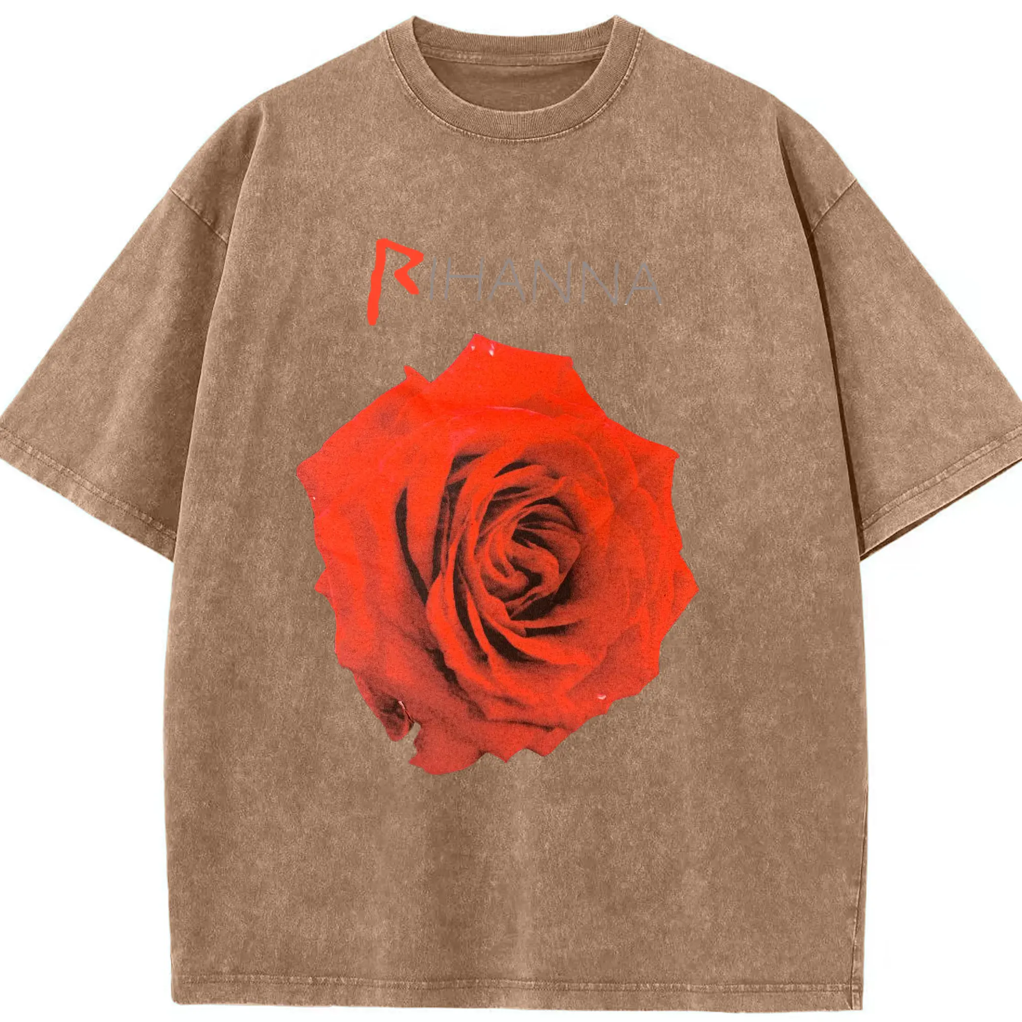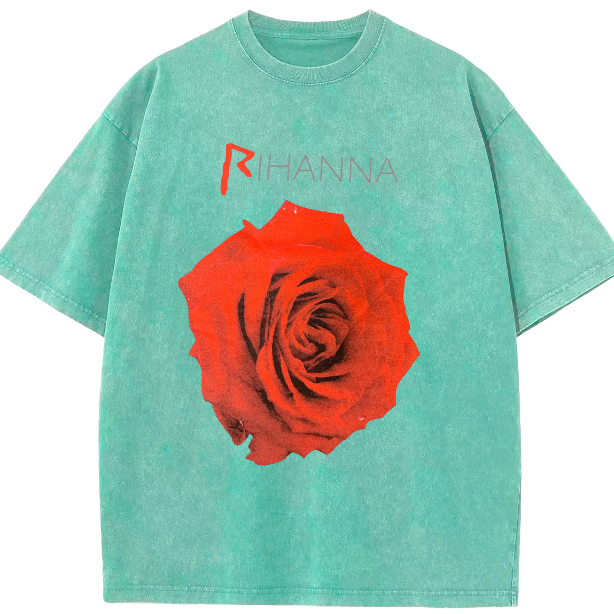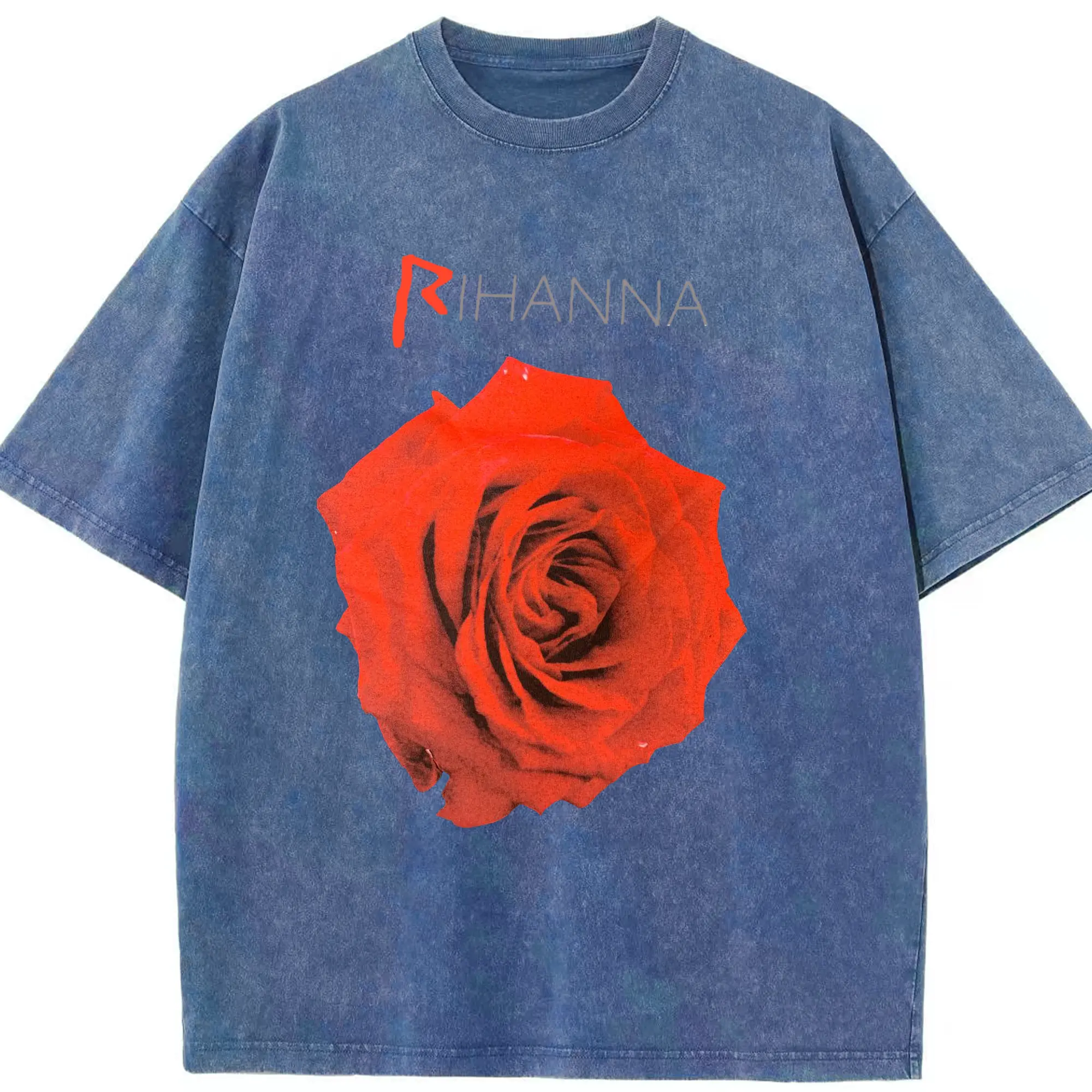 Rihanna Red Rose Romantic DIY - Washed Vintage Look 230g Cotton Oversized T-Shirt With Front Heat Transfer Print – Soft, Lightweight, Stylish Fit – Comfortable Casual Wear For Sports & Everyday Use