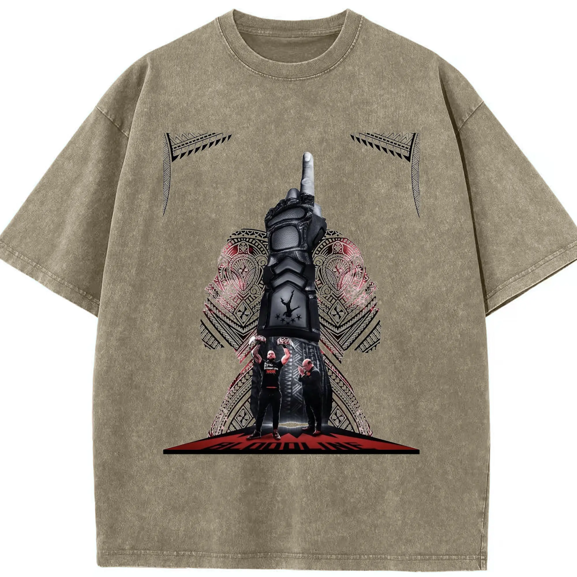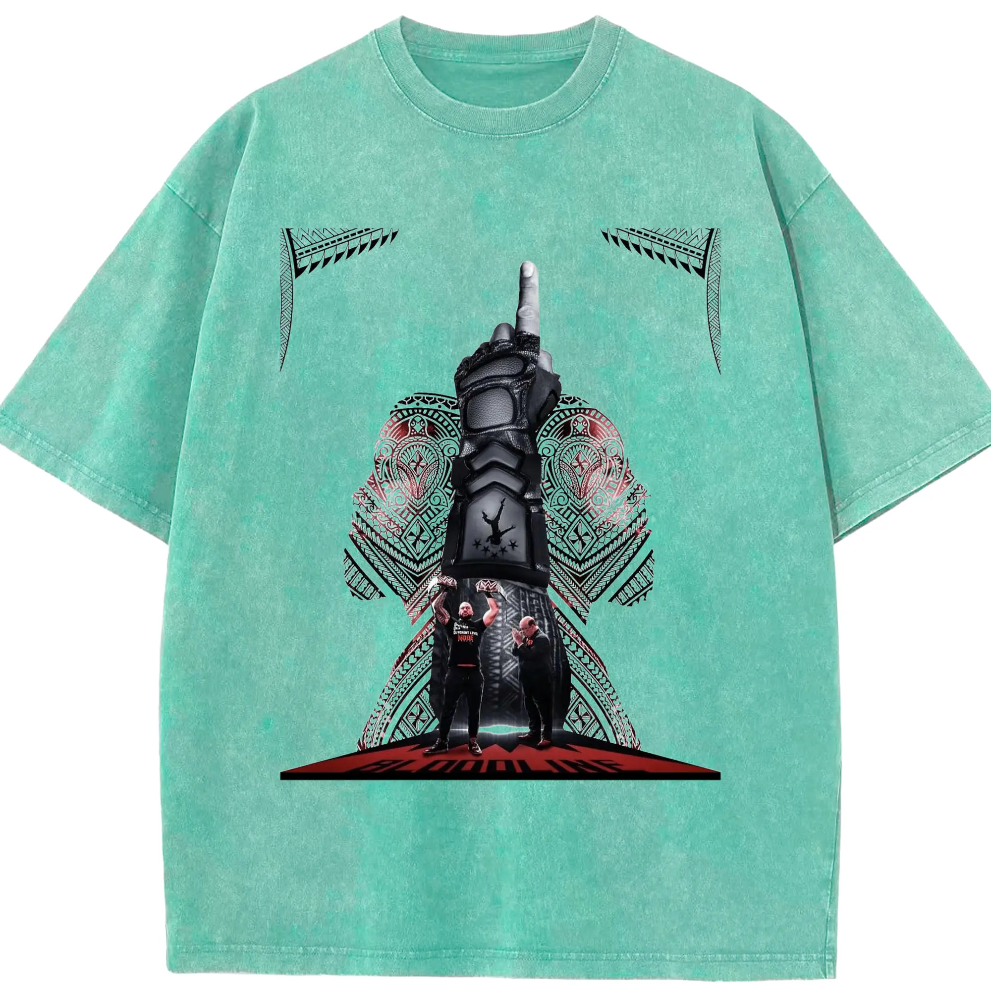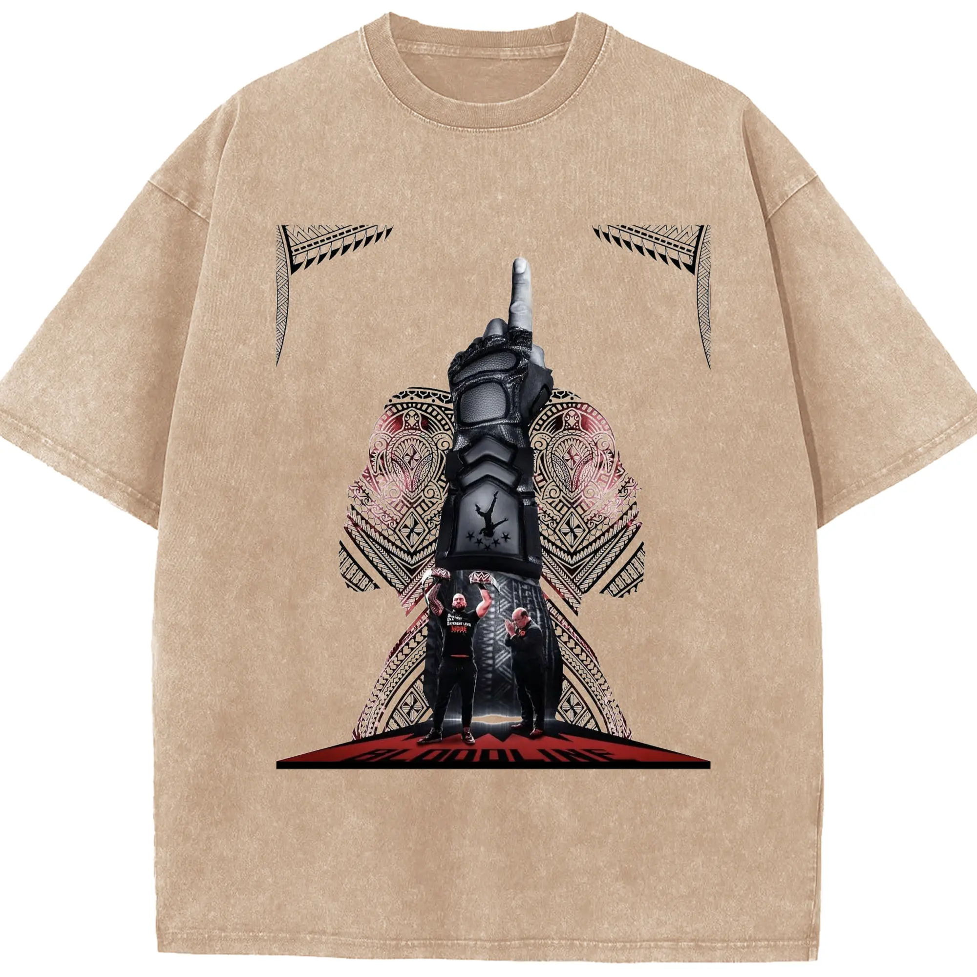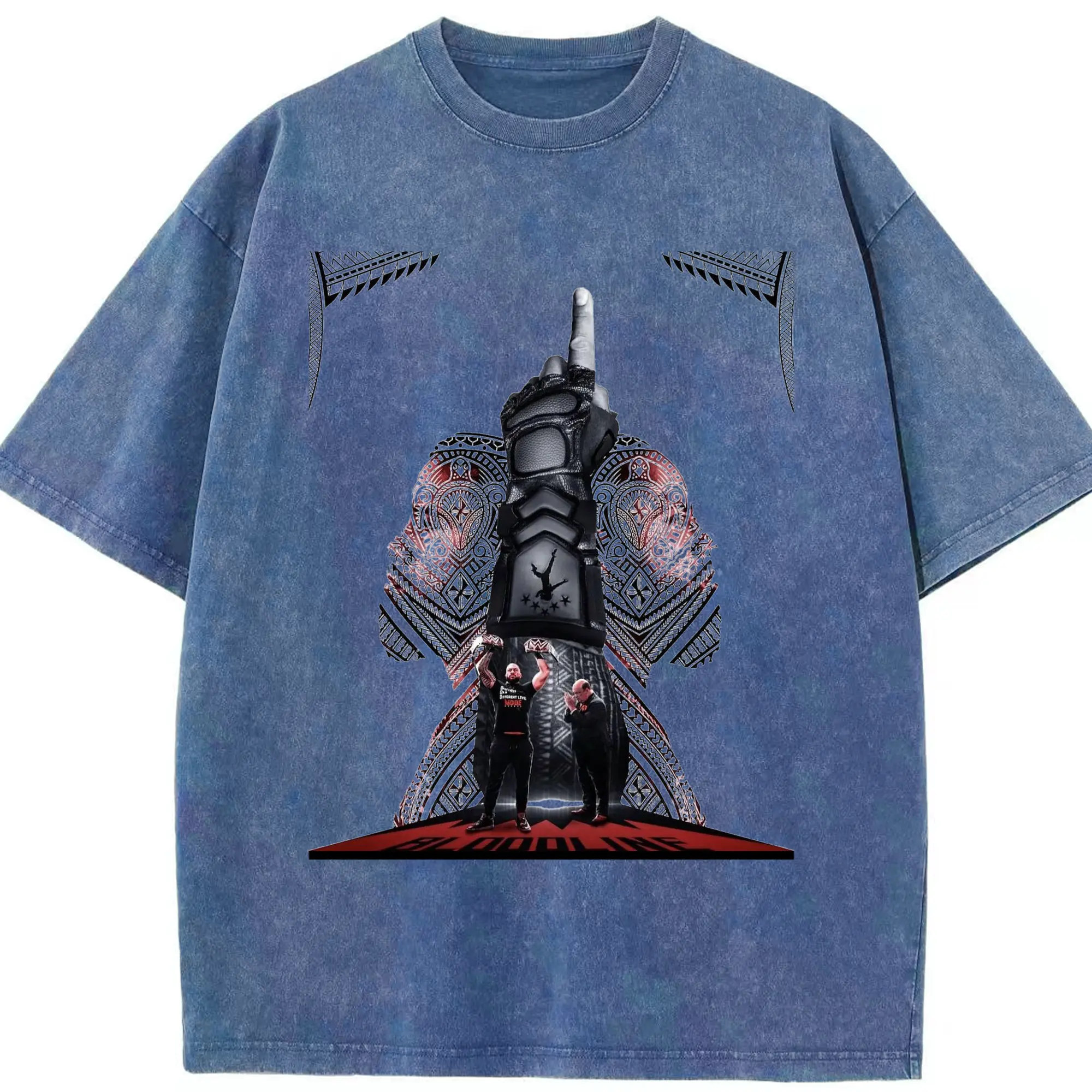 Roman Reigns Bloodline Tribal Hardcore Wrestling DIY Shirt - Washed Vintage Look 230g Cotton Oversized T-Shirt With Front Heat Transfer Print – Soft, Lightweight, Stylish Fit – Comfortable Casual Wear For Sports & Everyday Use