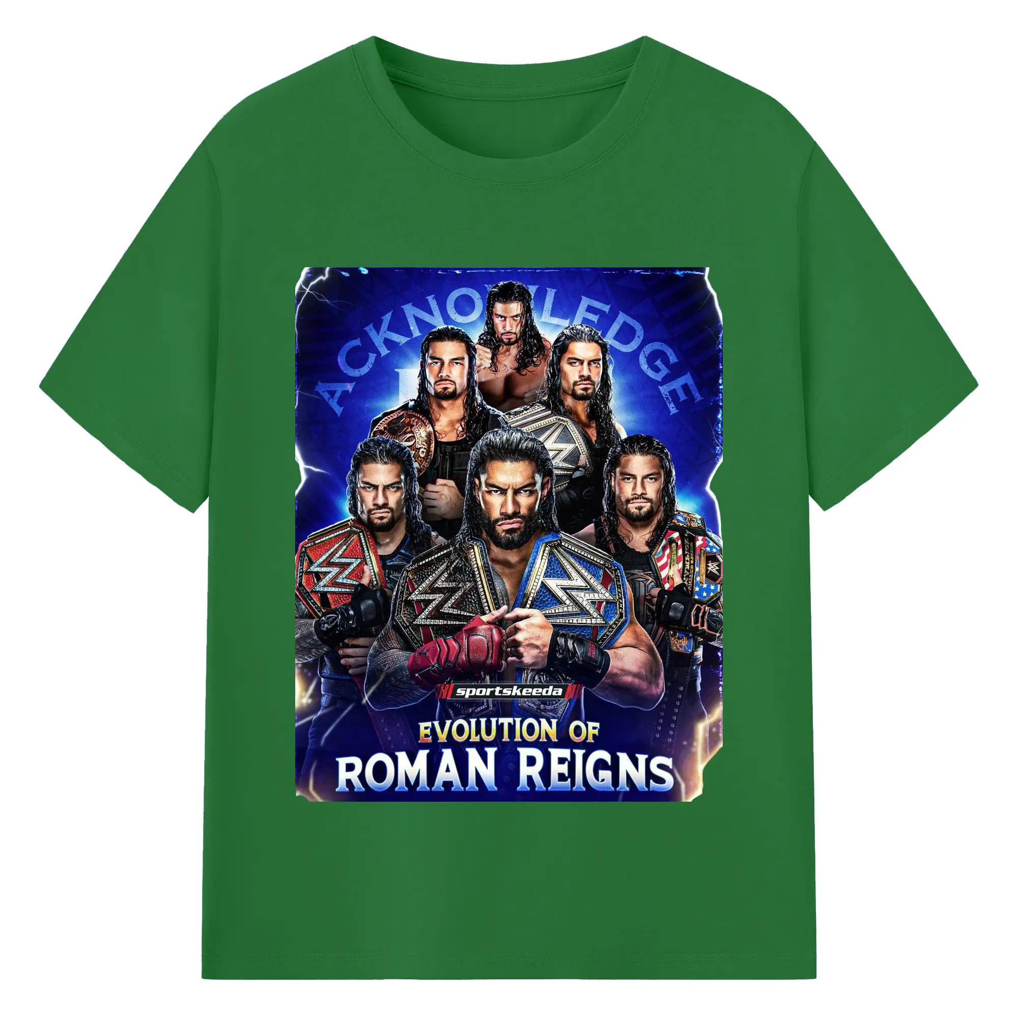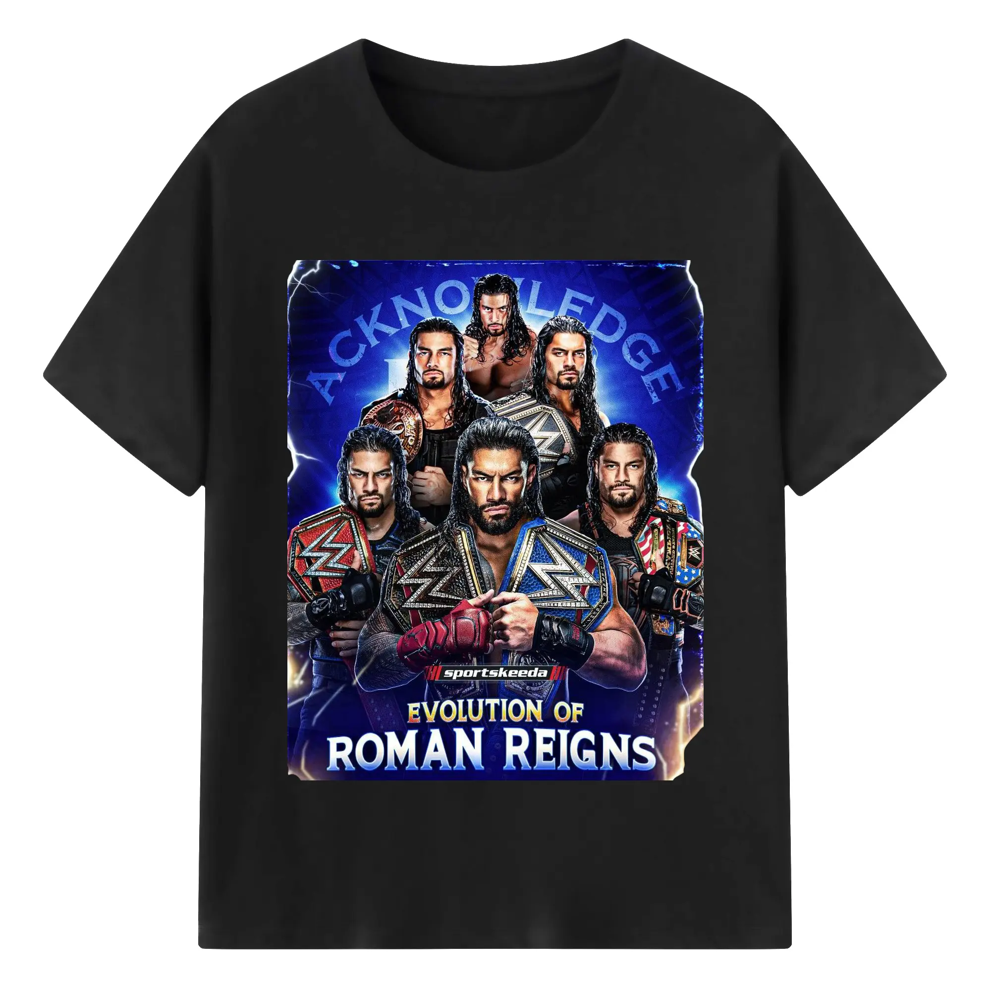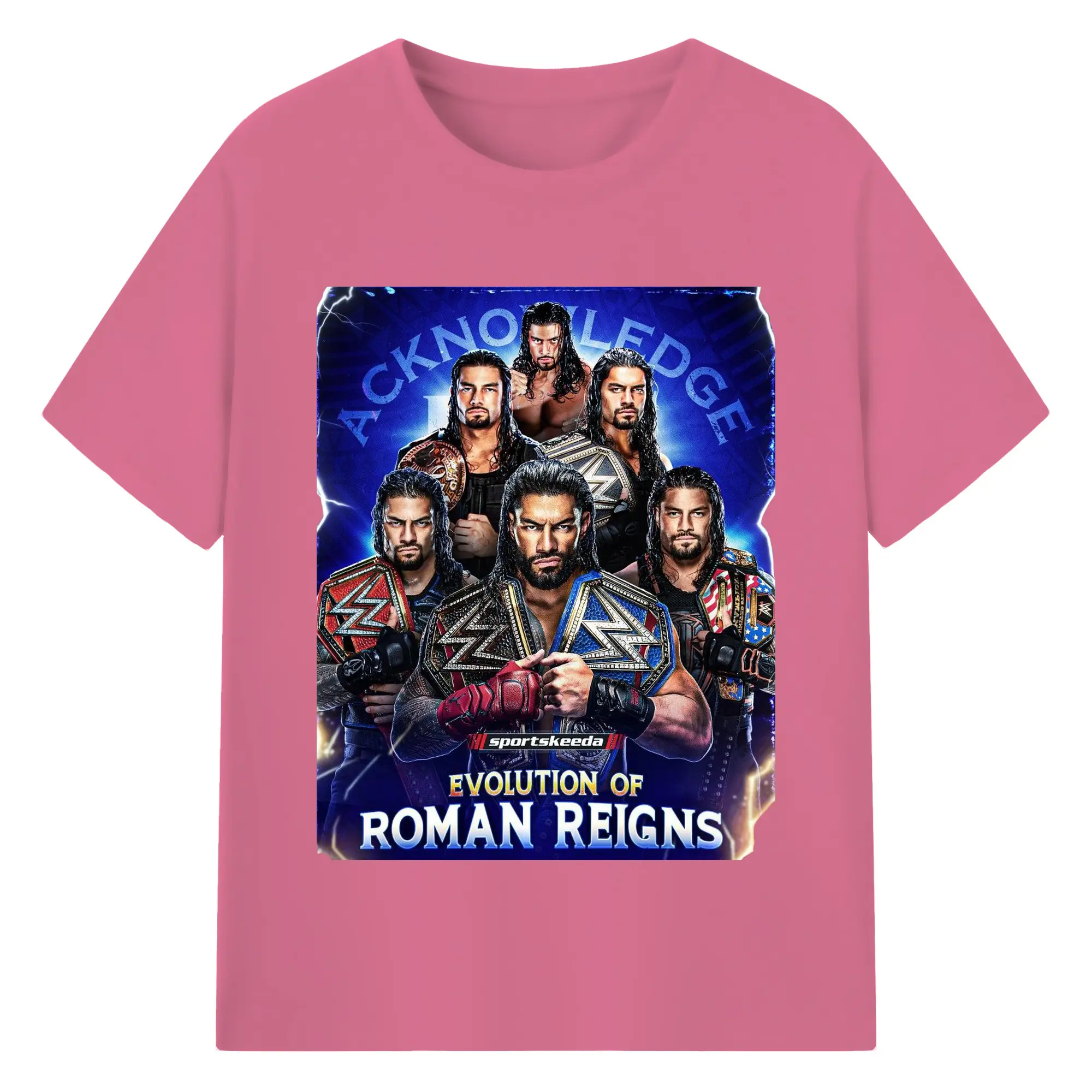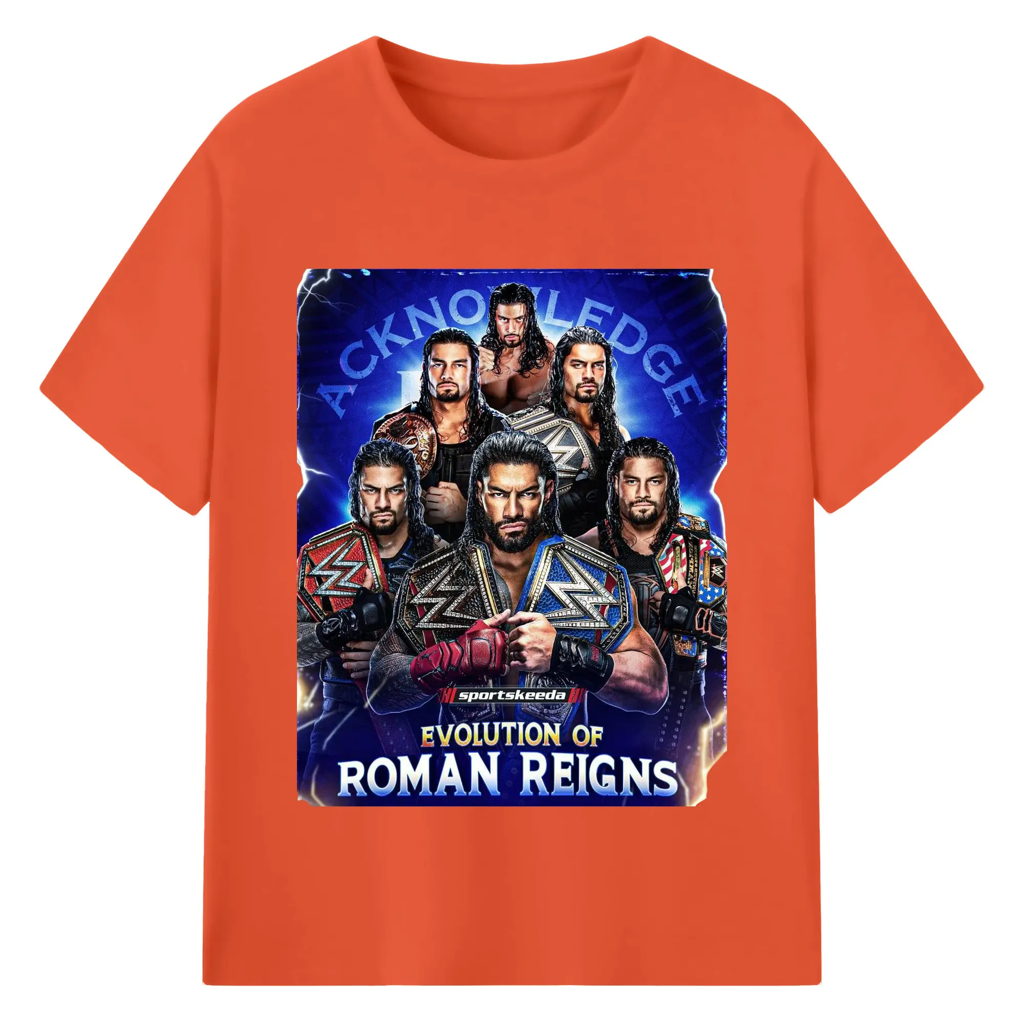 Roman Reigns WWE Evolution Champion DIY Shirt - 180g Cotton T-Shirt With Front Heat Transfer Print – Soft, Lightweight, Fitted Design – Comfortable Casual Wear For Sports & Everyday Use