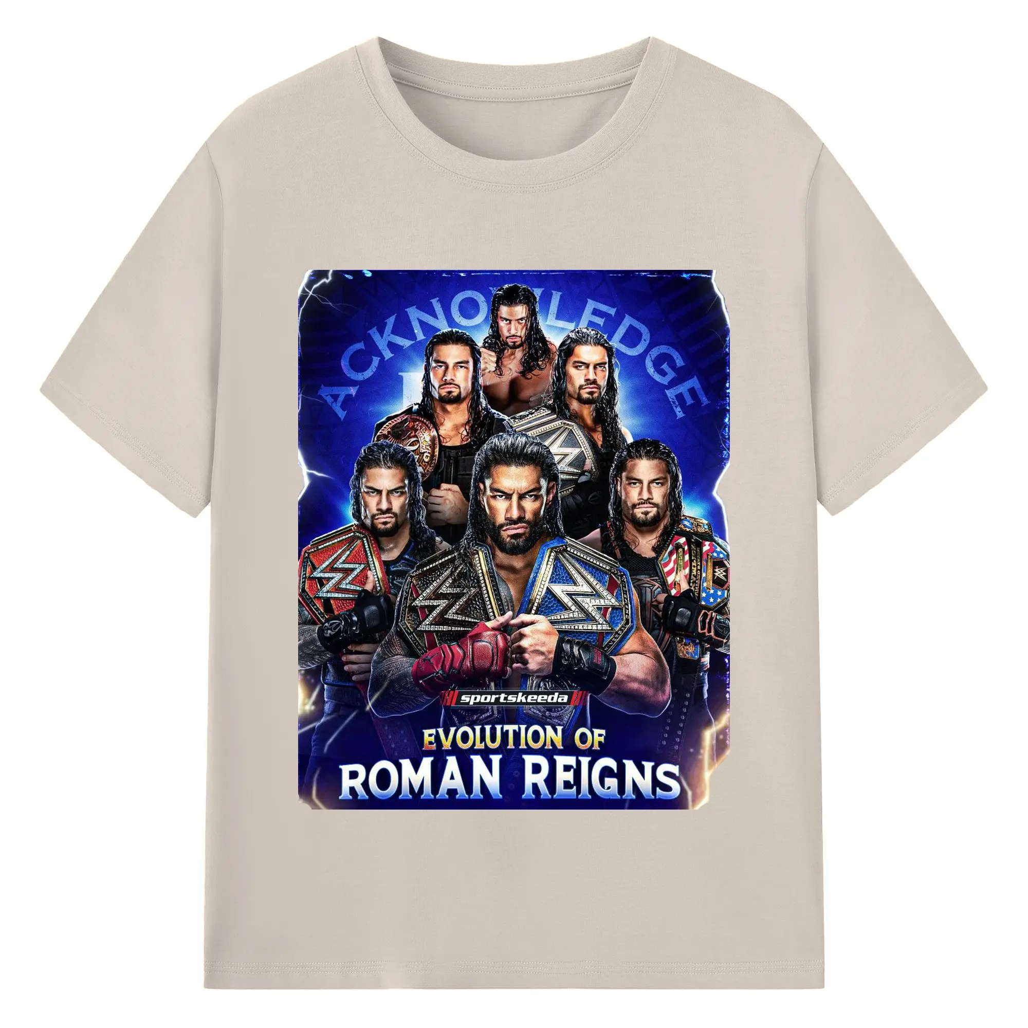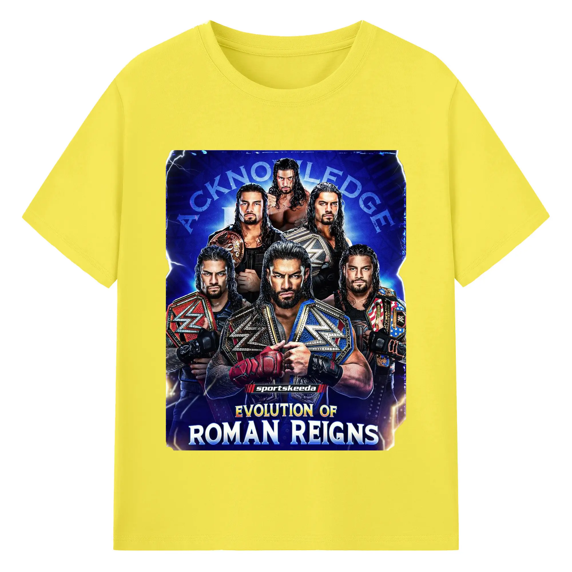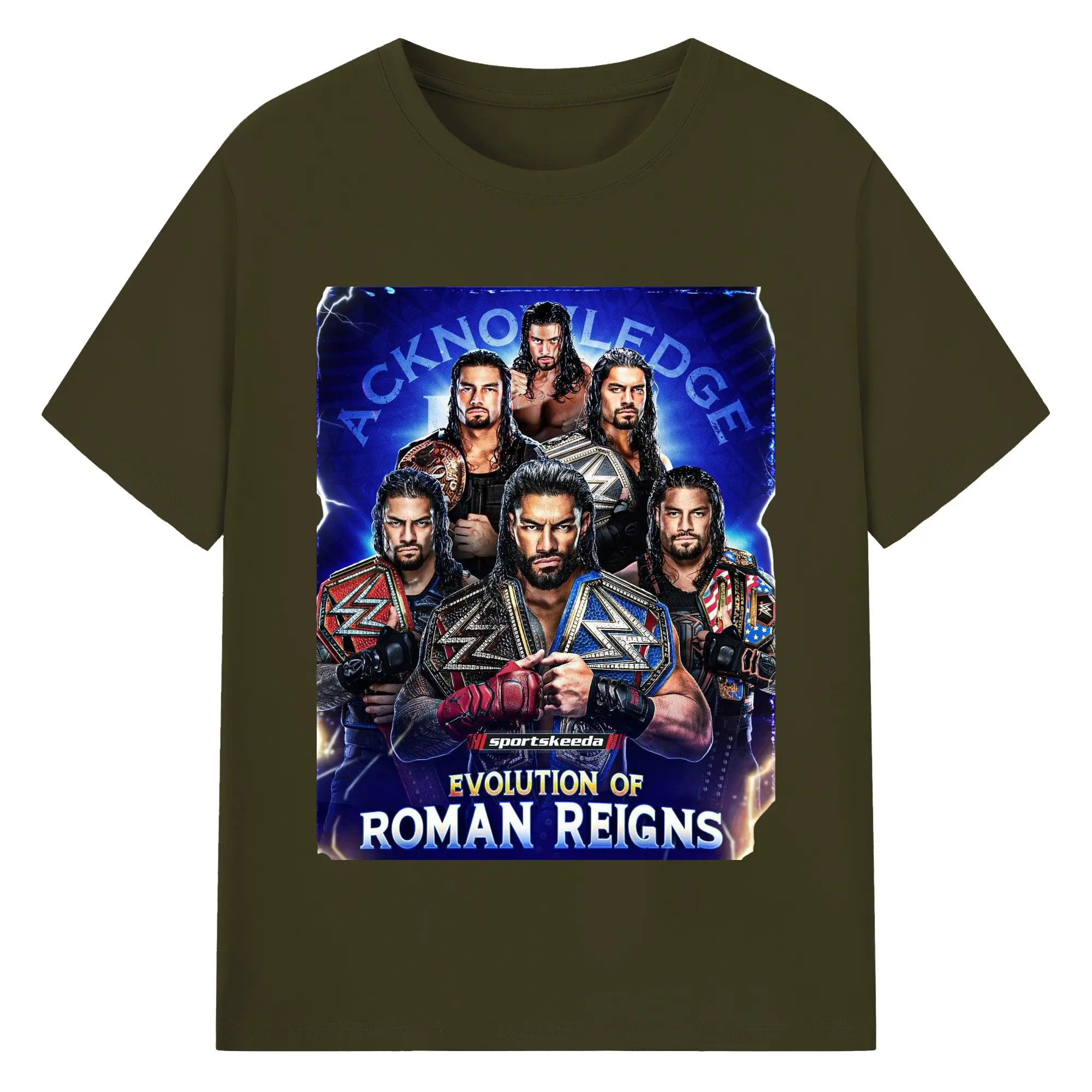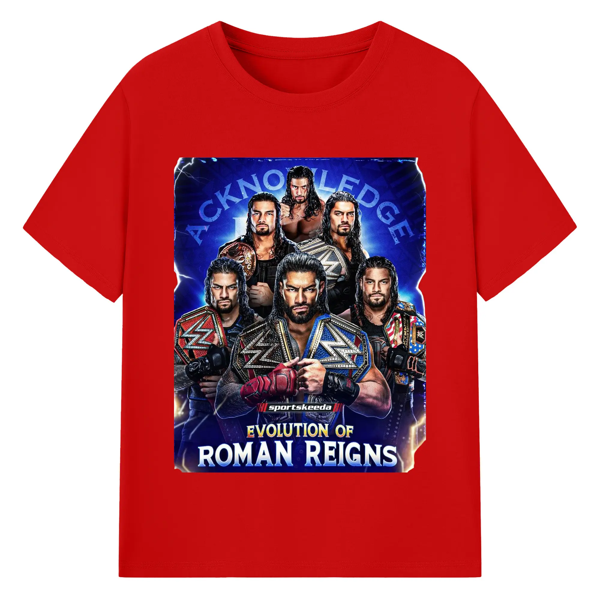 Roman Reigns WWE Evolution Champion DIY Shirt - 180g Cotton T-Shirt With Front Heat Transfer Print – Soft, Lightweight, Fitted Design – Comfortable Casual Wear For Sports & Everyday Use