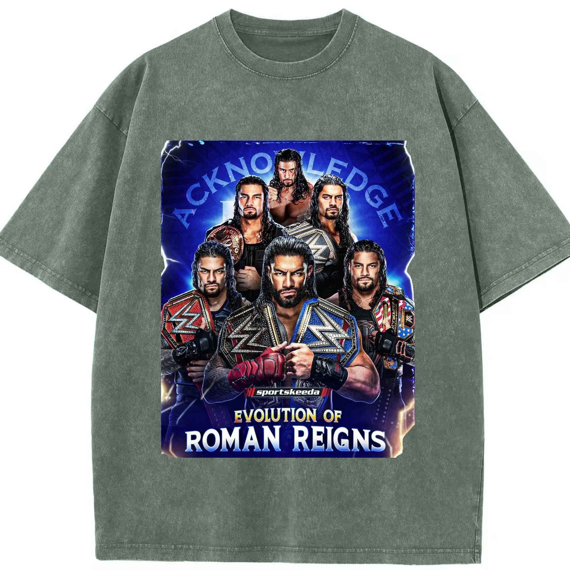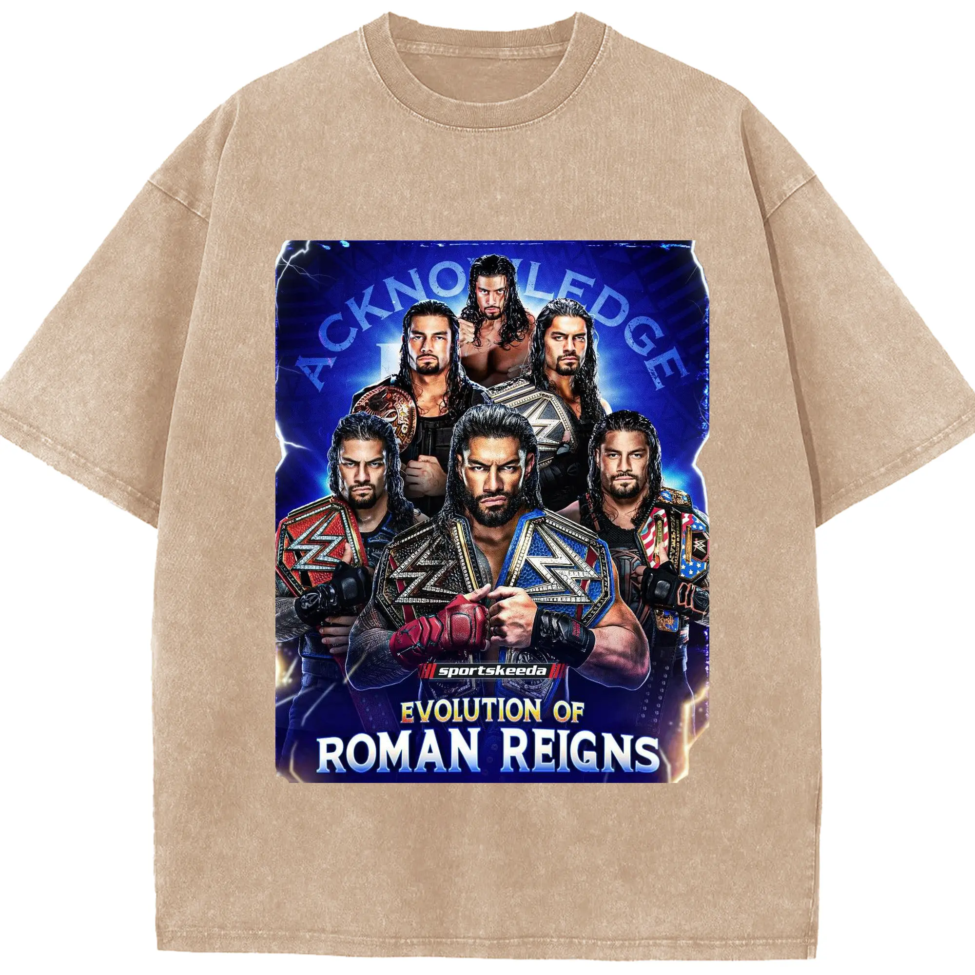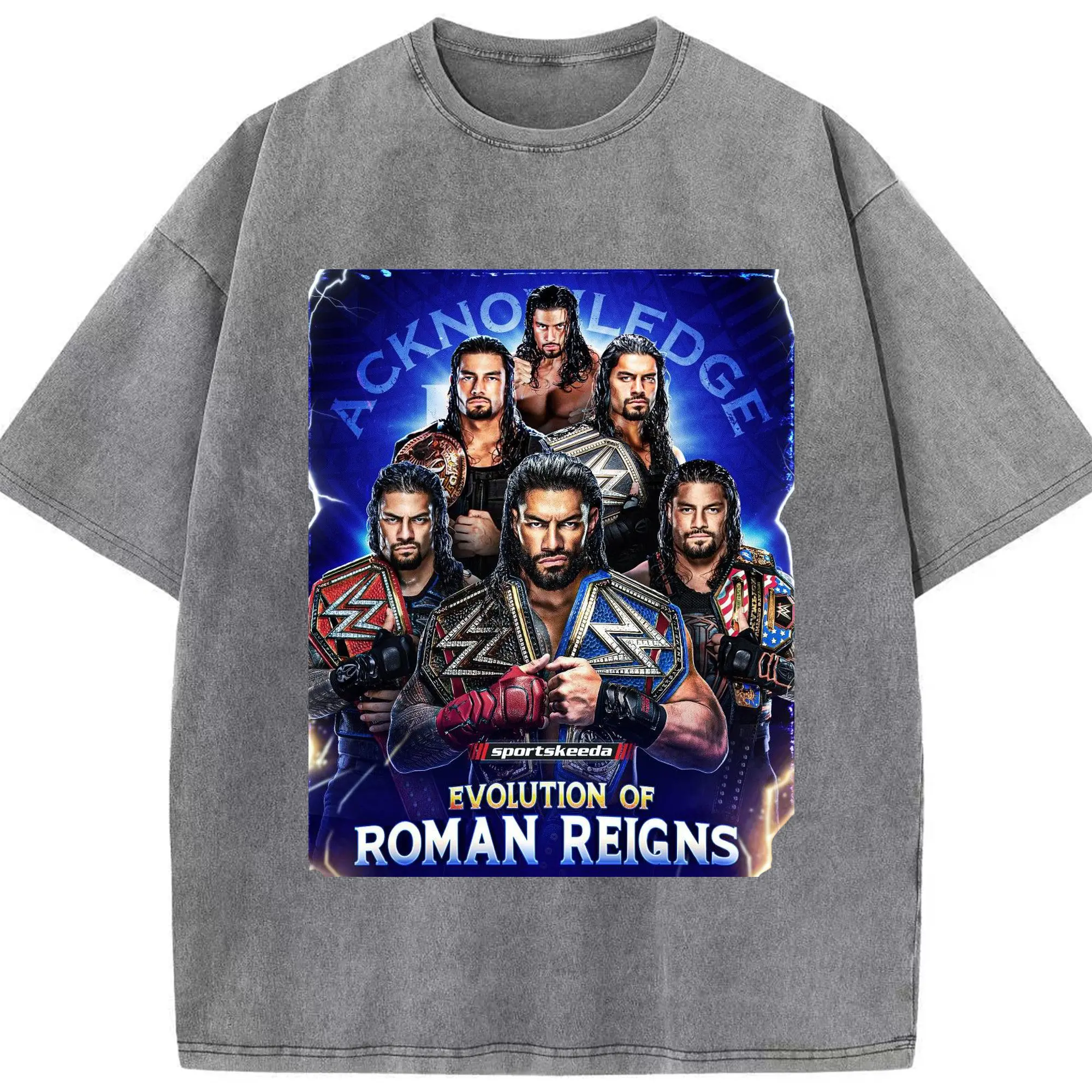 Roman Reigns WWE Evolution Champion DIY Shirt - Washed Vintage Look 230g Cotton Oversized T-Shirt With Front Heat Transfer Print – Soft, Lightweight, Stylish Fit – Comfortable Casual Wear For Sports & Everyday Use