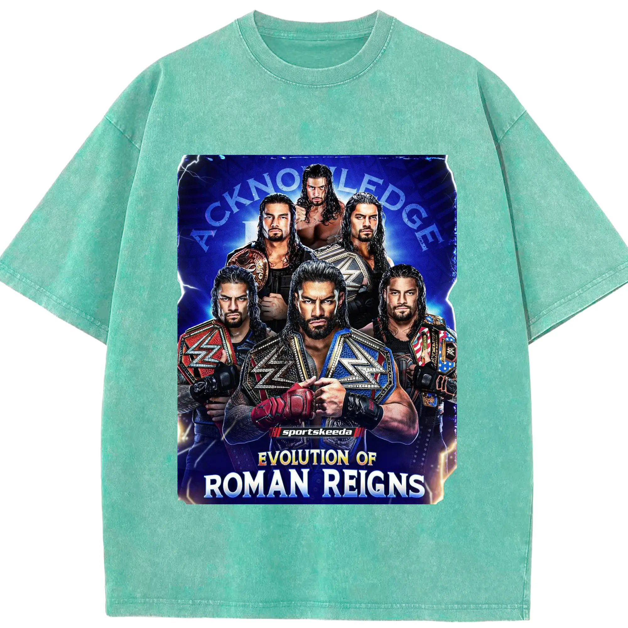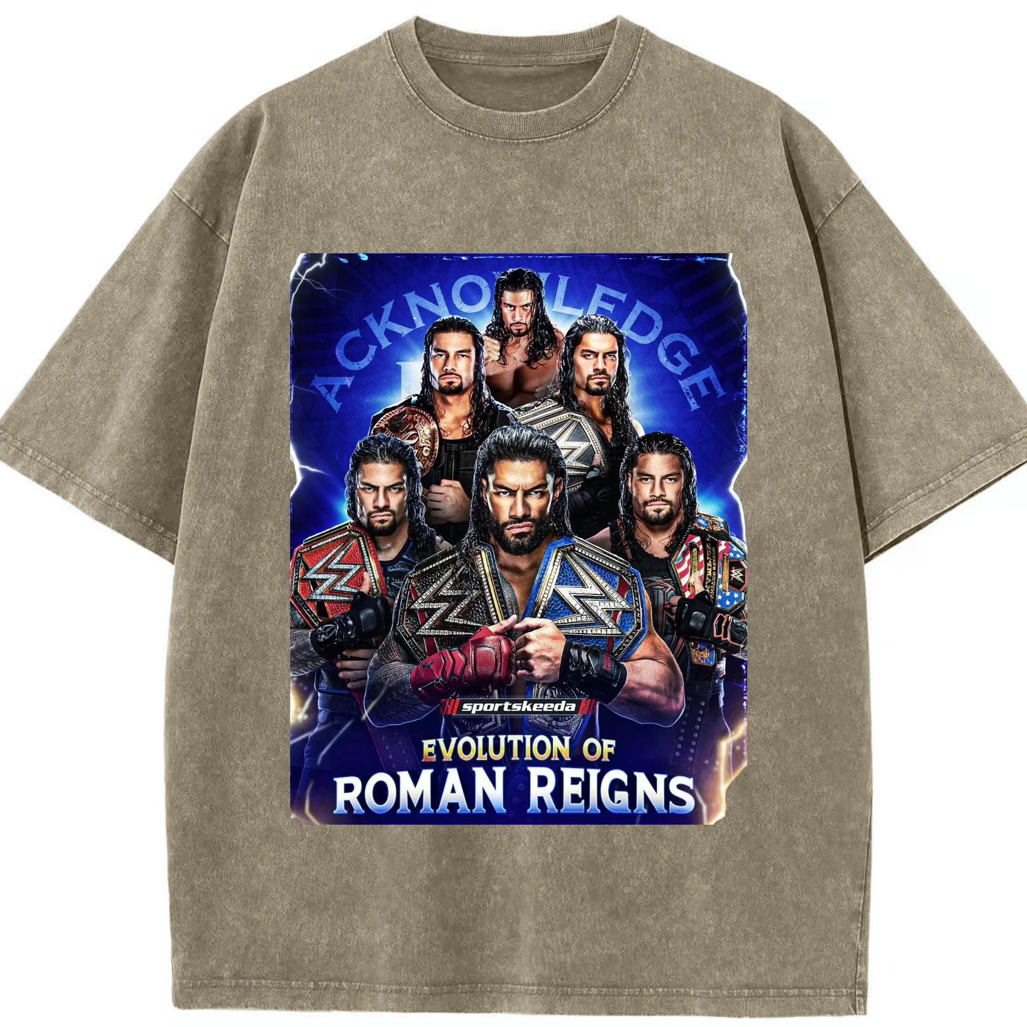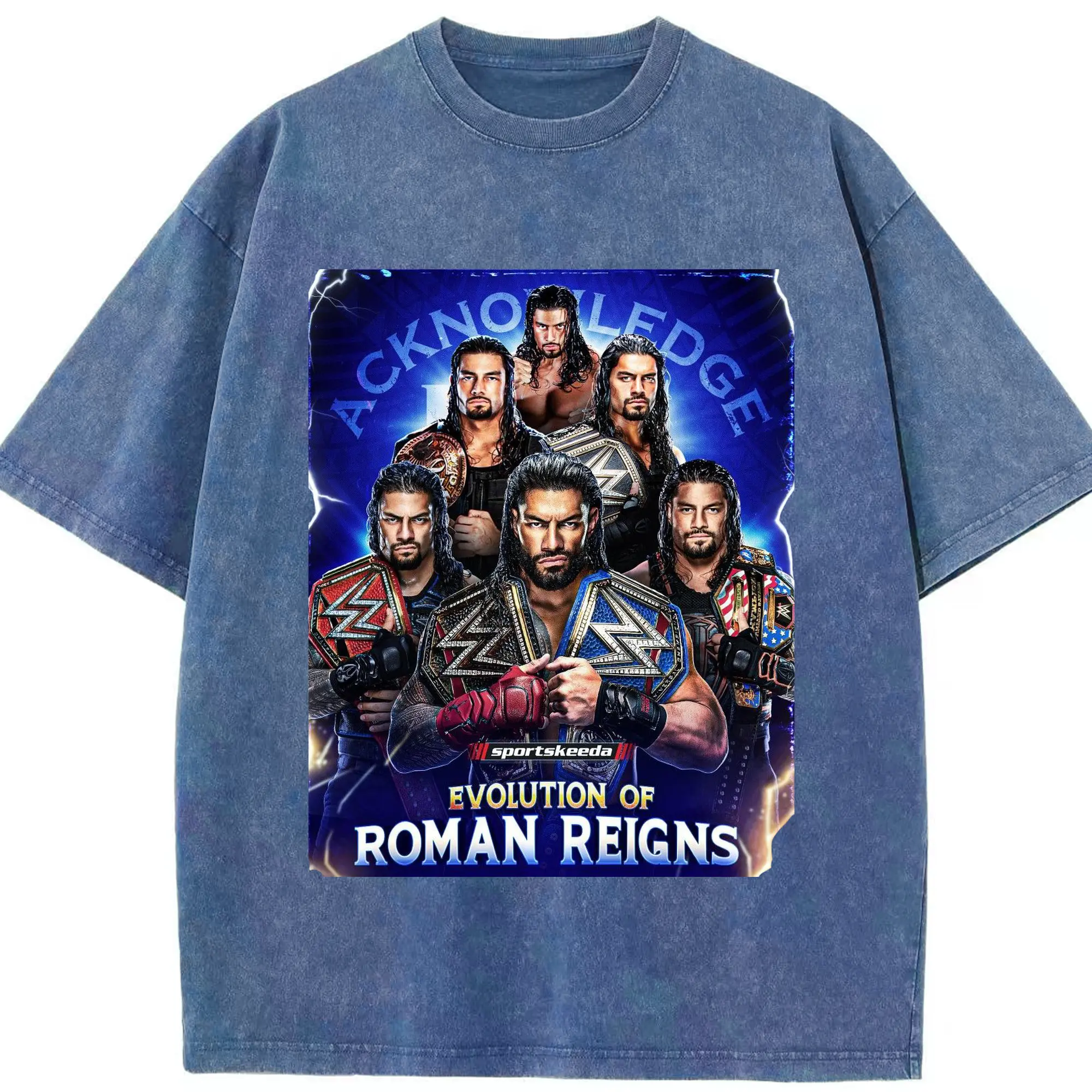 Roman Reigns WWE Evolution Champion DIY Shirt - Washed Vintage Look 230g Cotton Oversized T-Shirt With Front Heat Transfer Print – Soft, Lightweight, Stylish Fit – Comfortable Casual Wear For Sports & Everyday Use