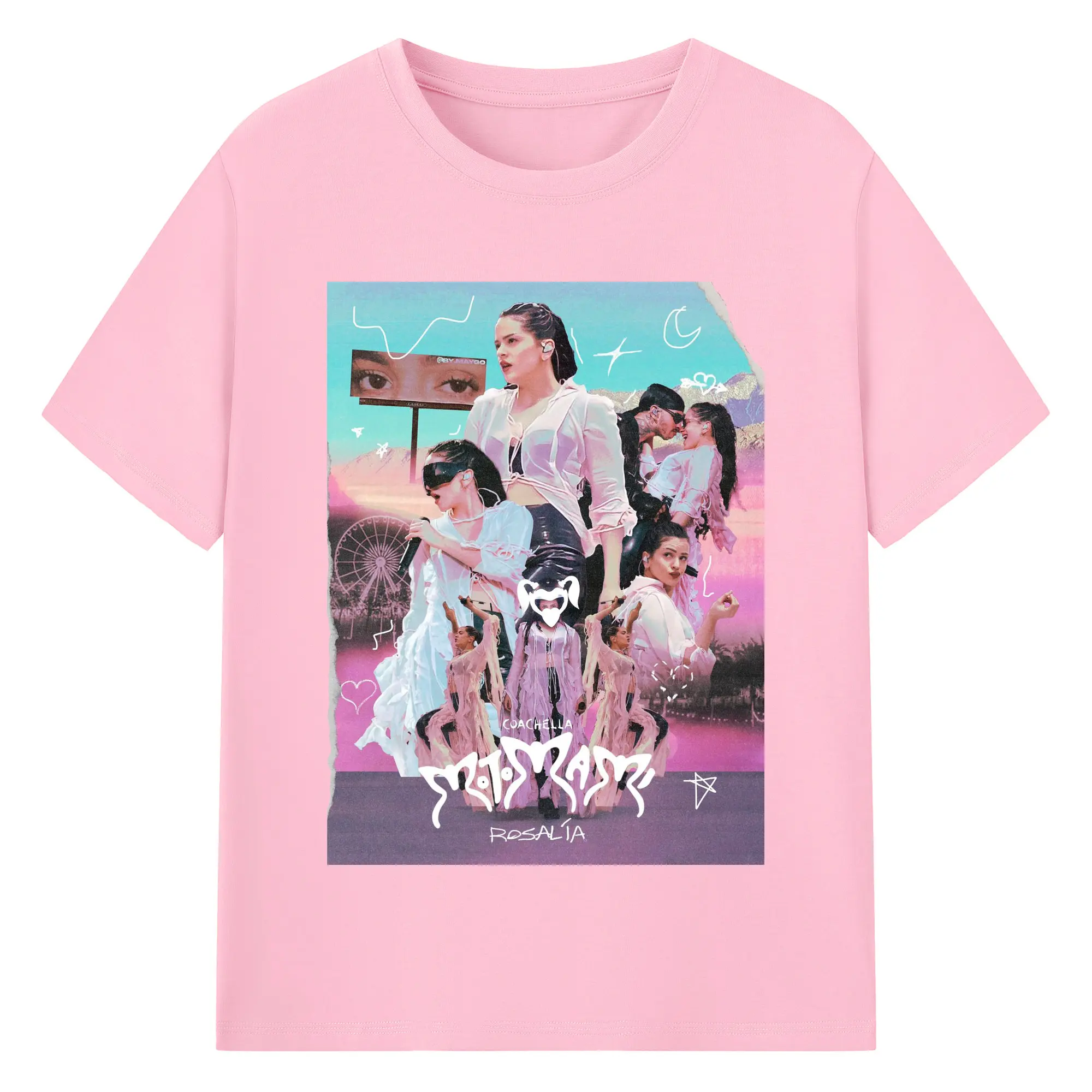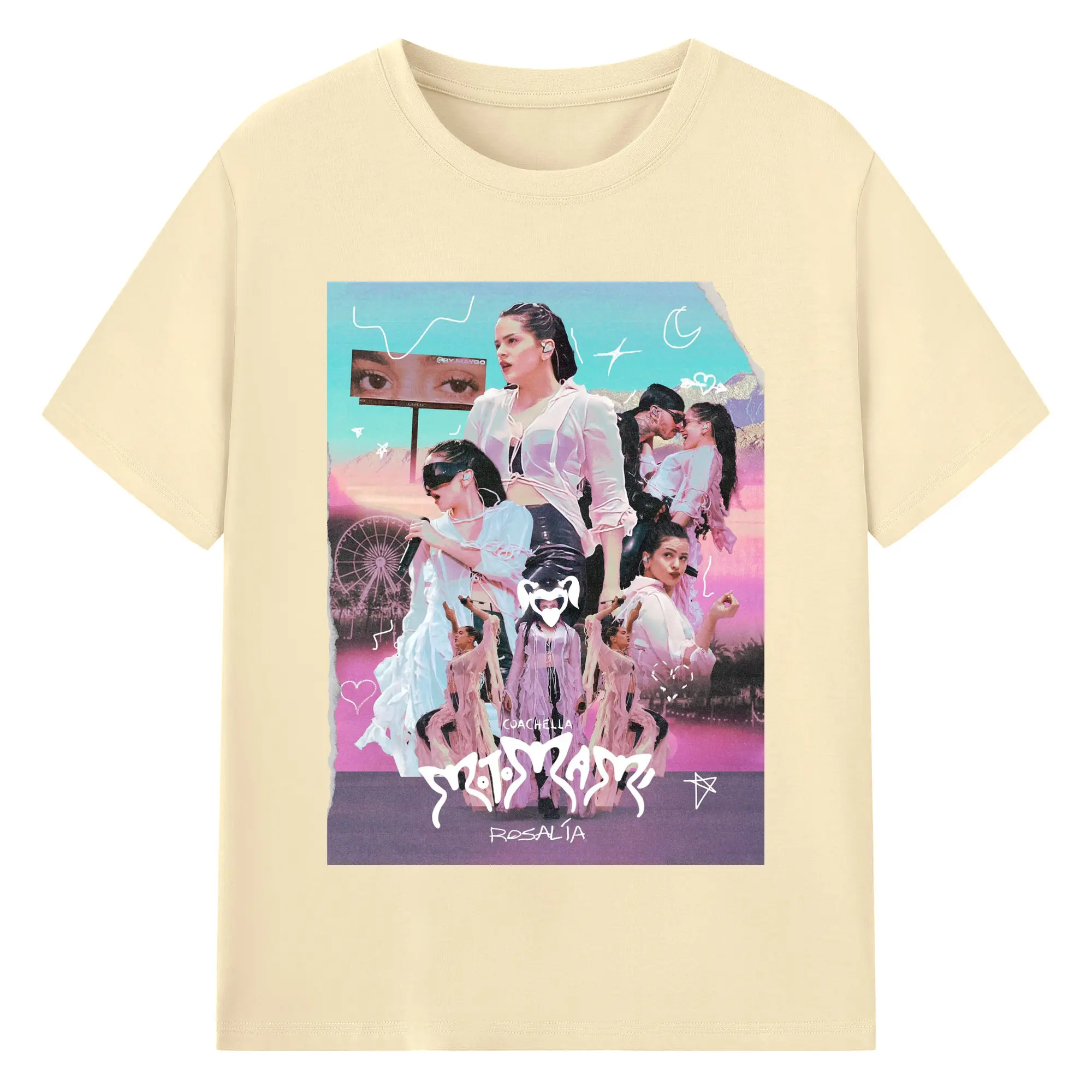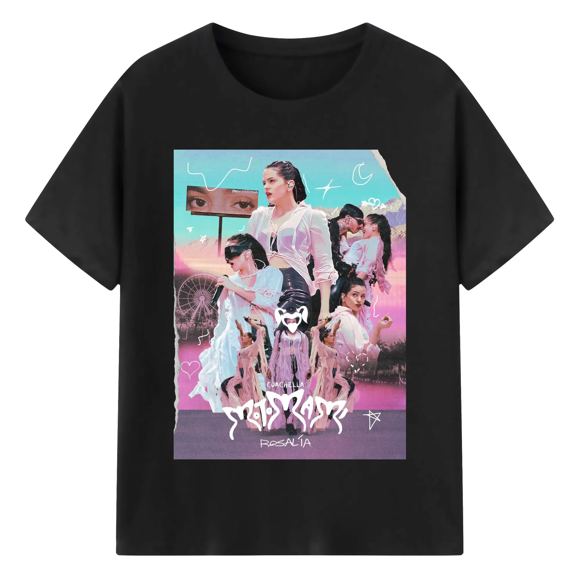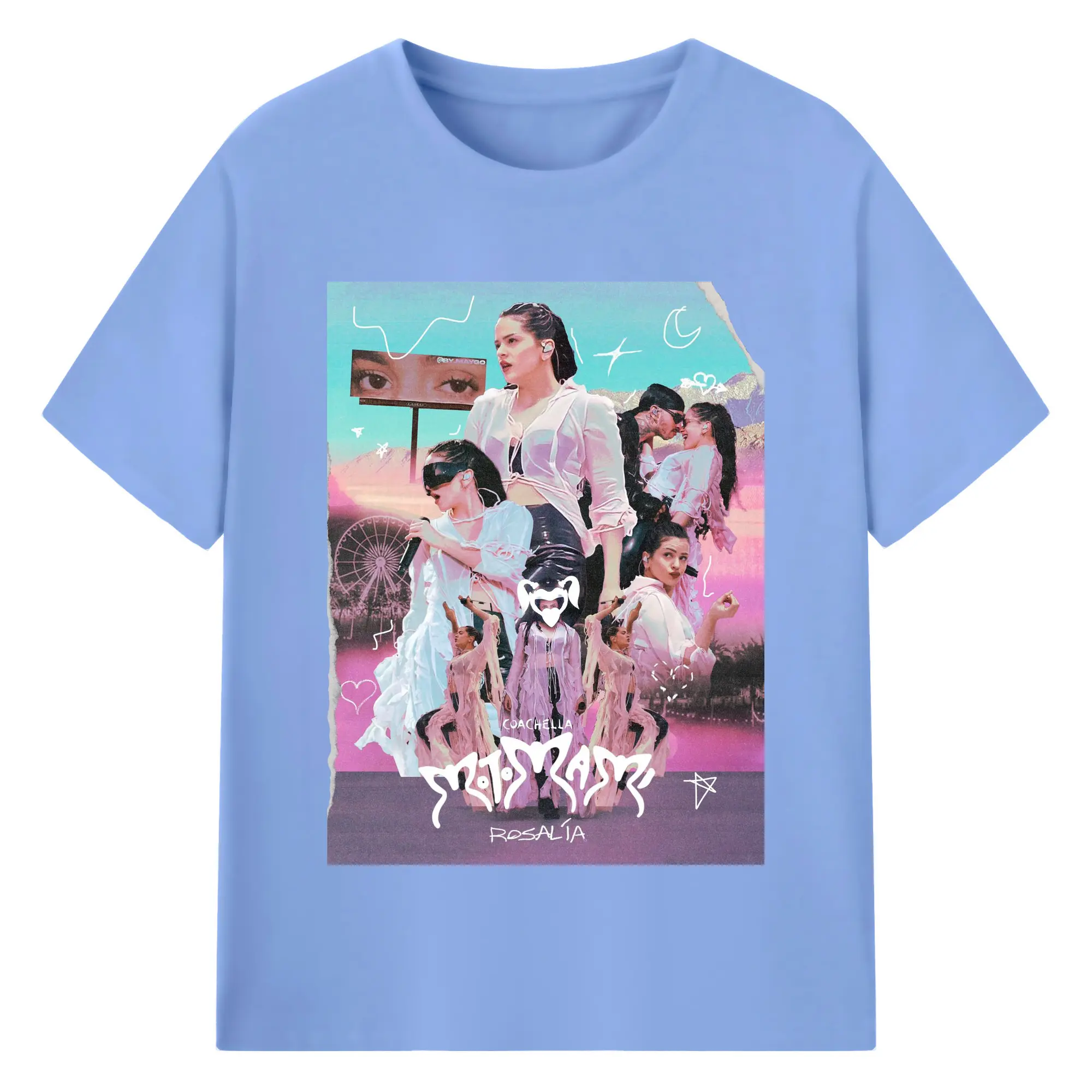 Rosalía-Inspired Coachella Festival Trend DIY - 180g Cotton T-Shirt With Front Heat Transfer Print – Soft, Lightweight, Fitted Design – Comfortable Casual Wear For Sports & Everyday Use