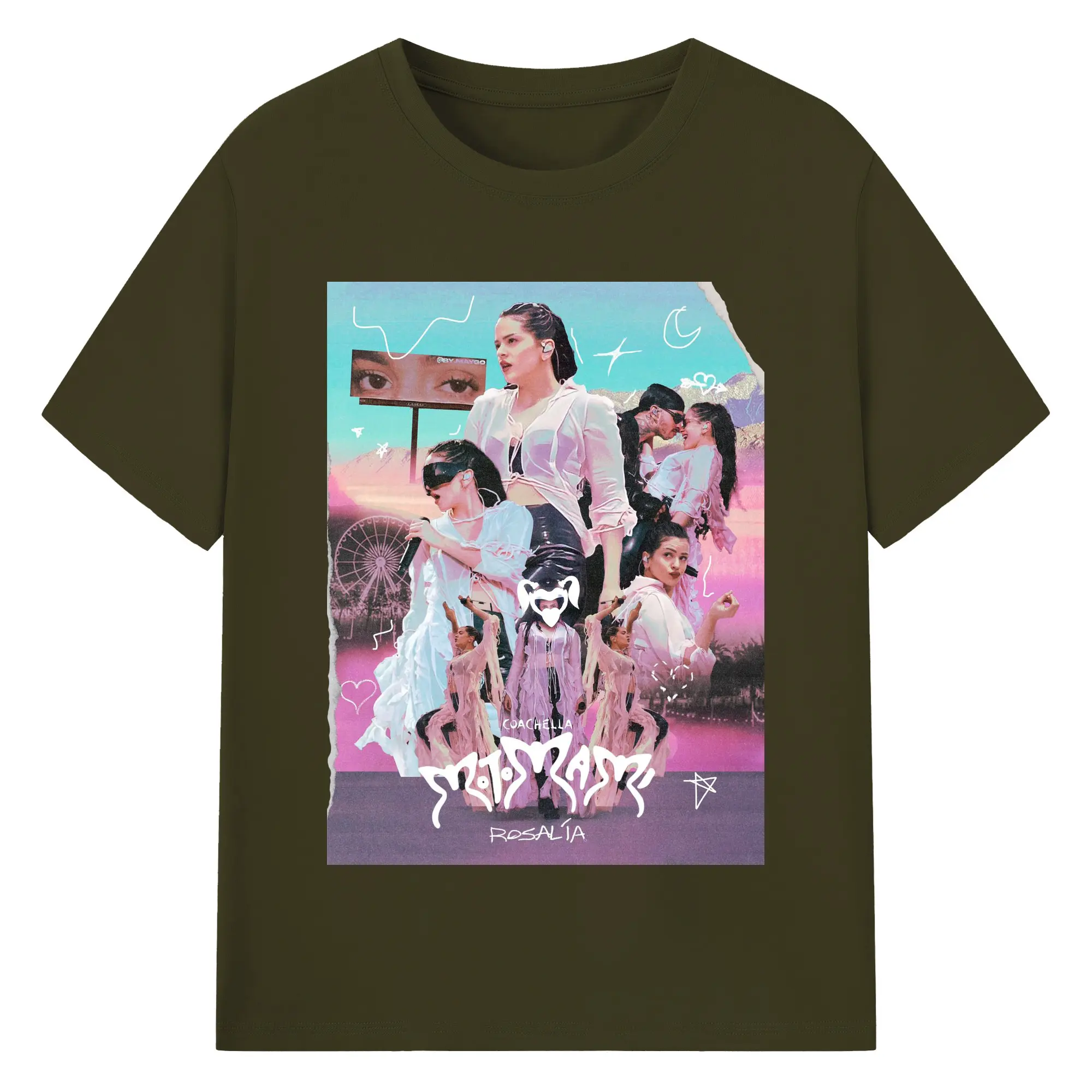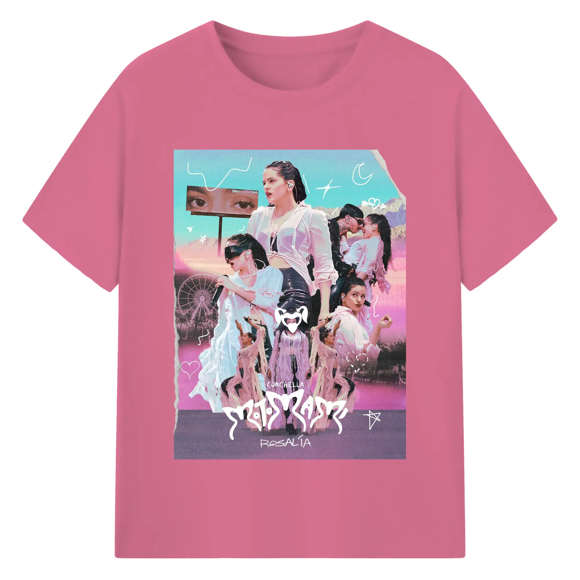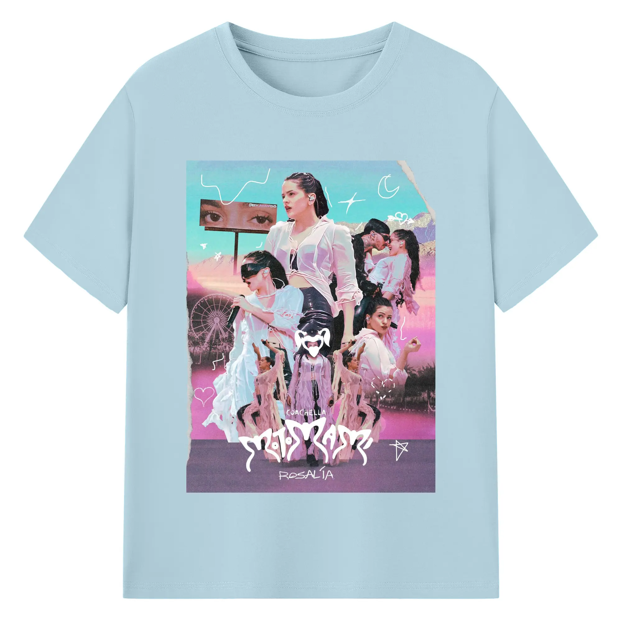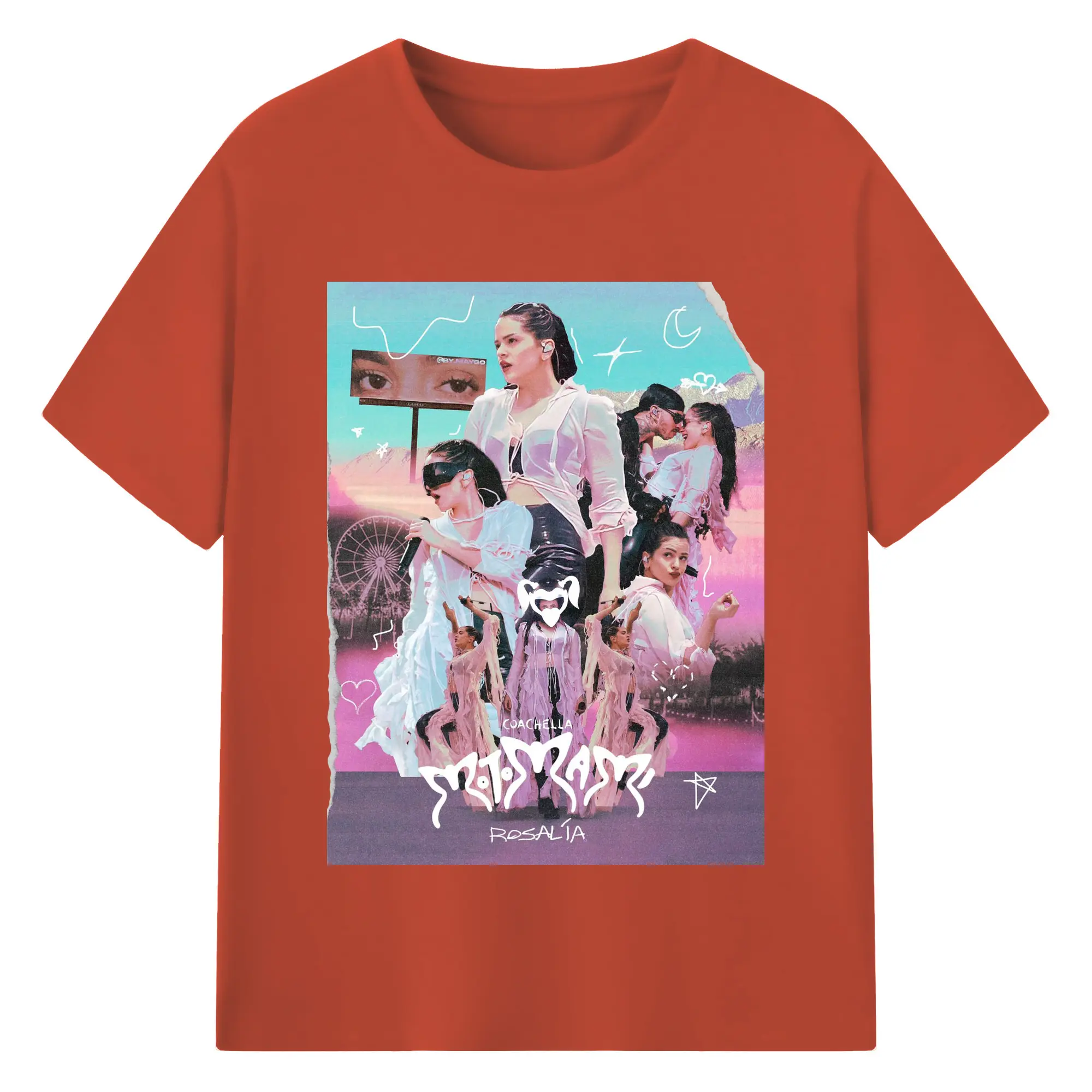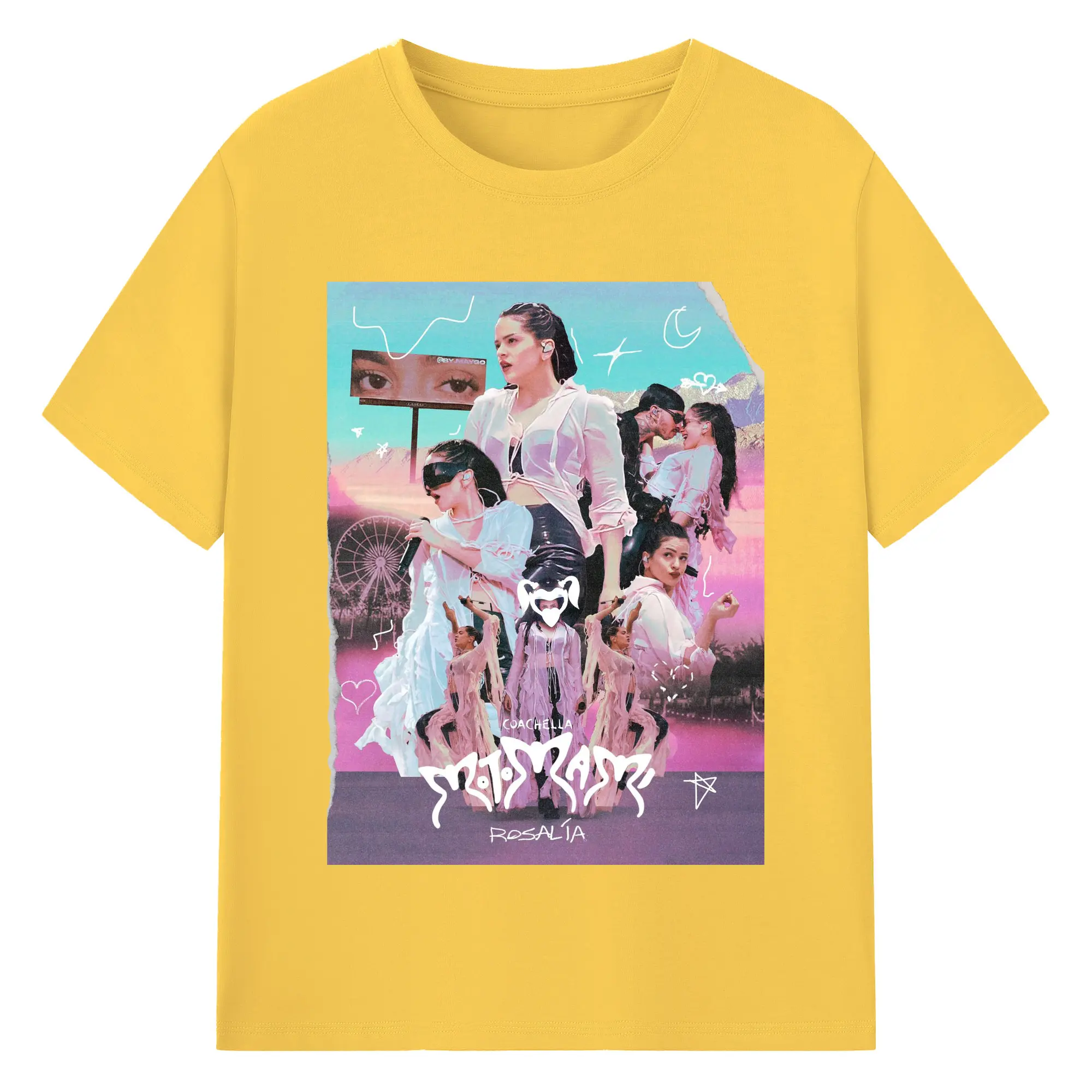 Rosalía-Inspired Coachella Festival Trend DIY - 180g Cotton T-Shirt With Front Heat Transfer Print – Soft, Lightweight, Fitted Design – Comfortable Casual Wear For Sports & Everyday Use