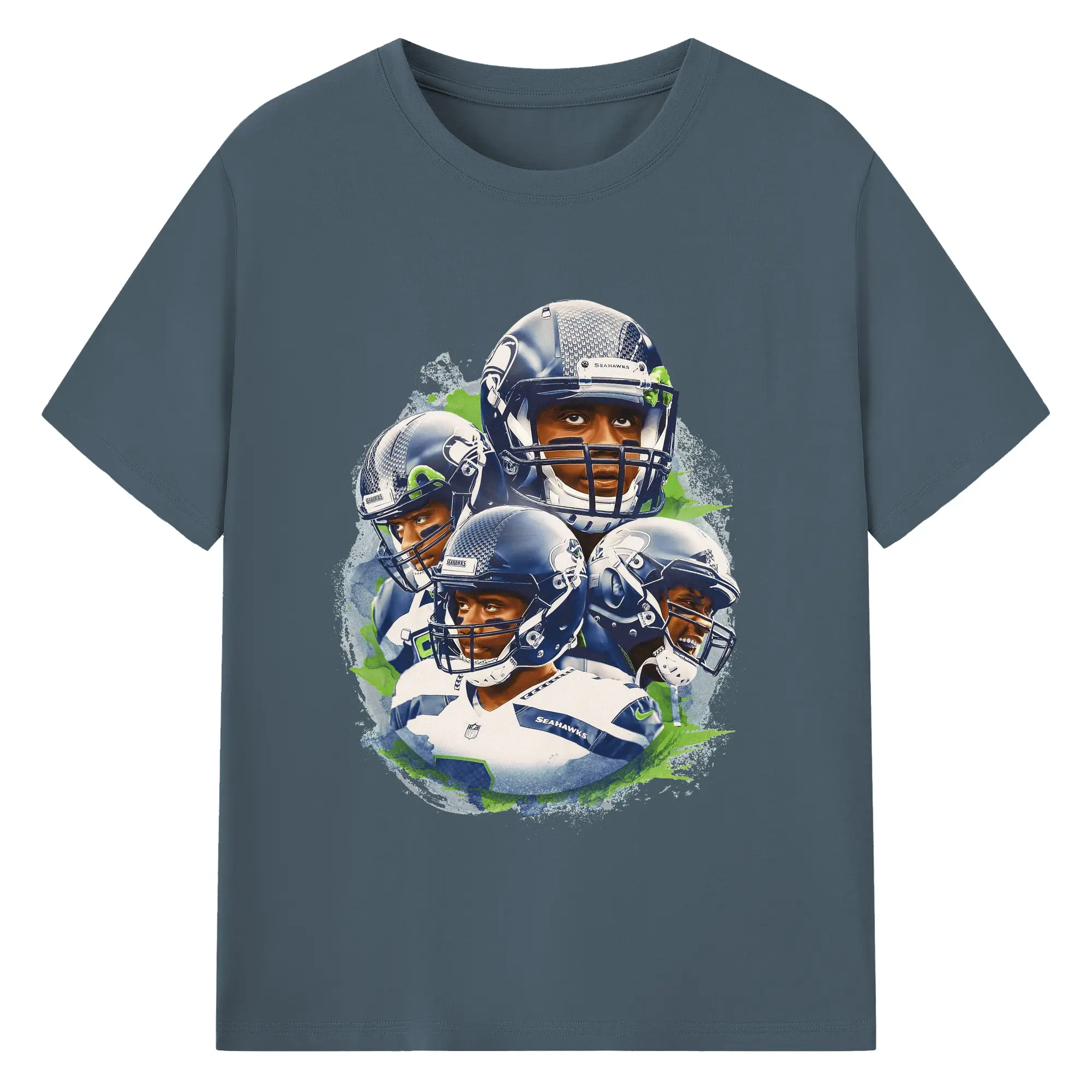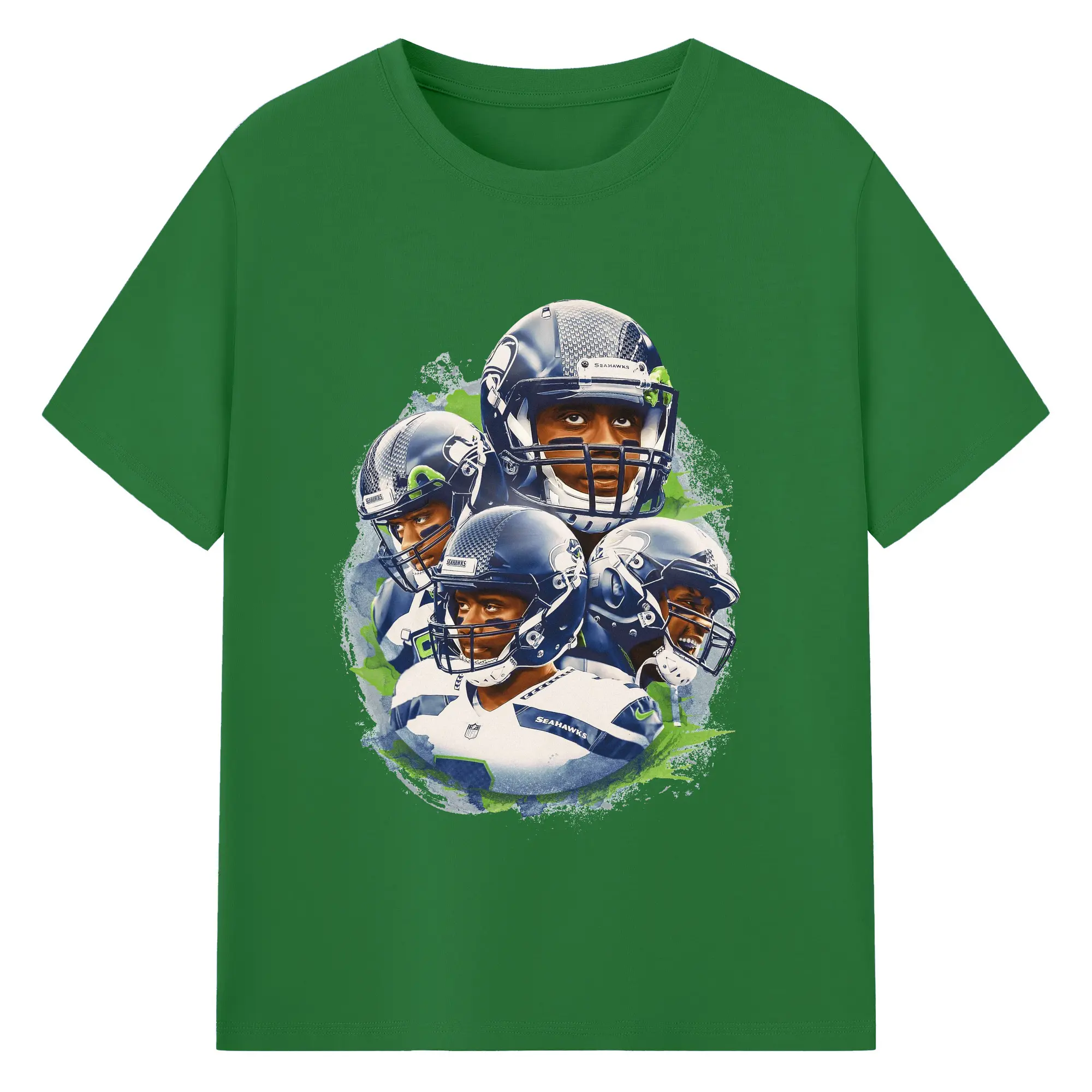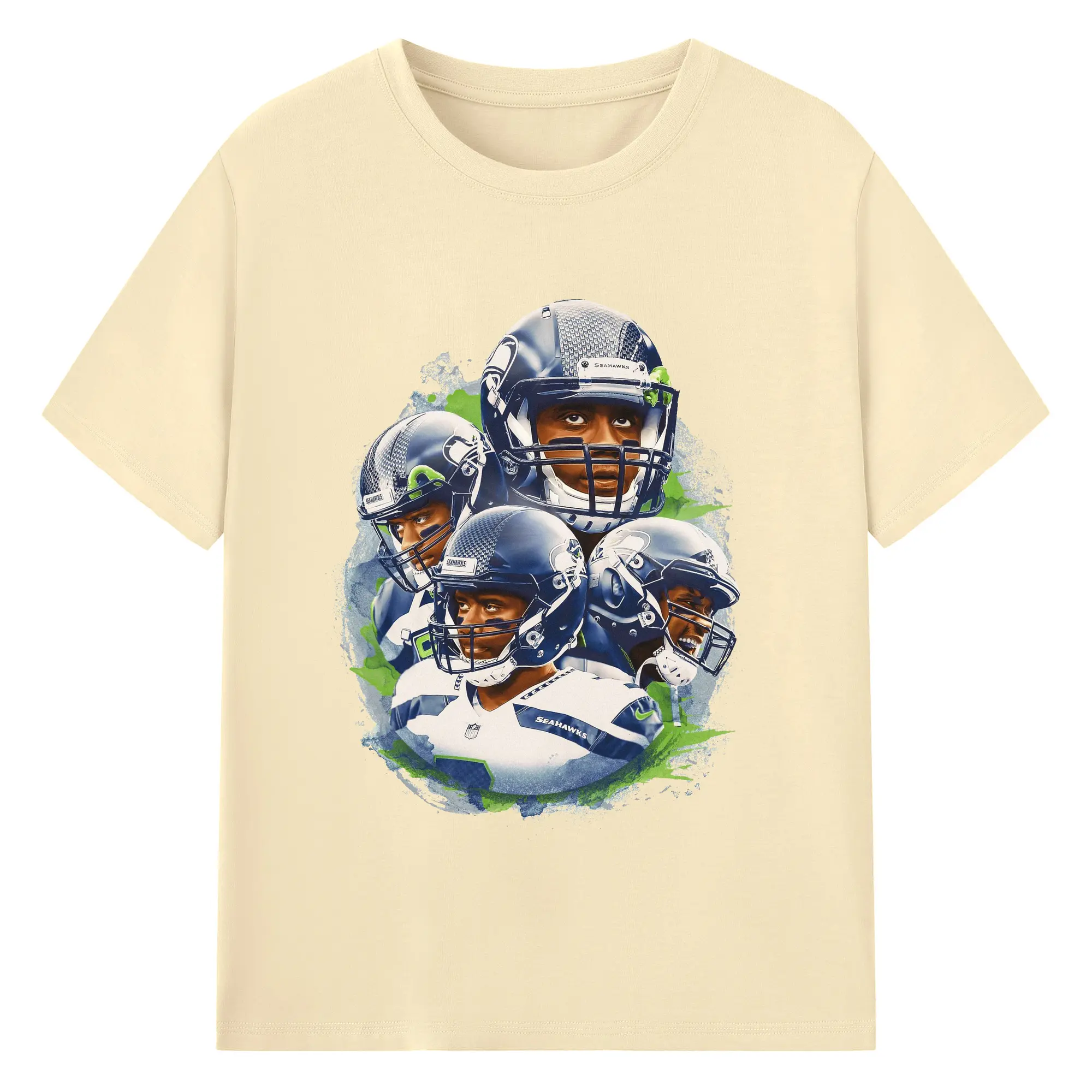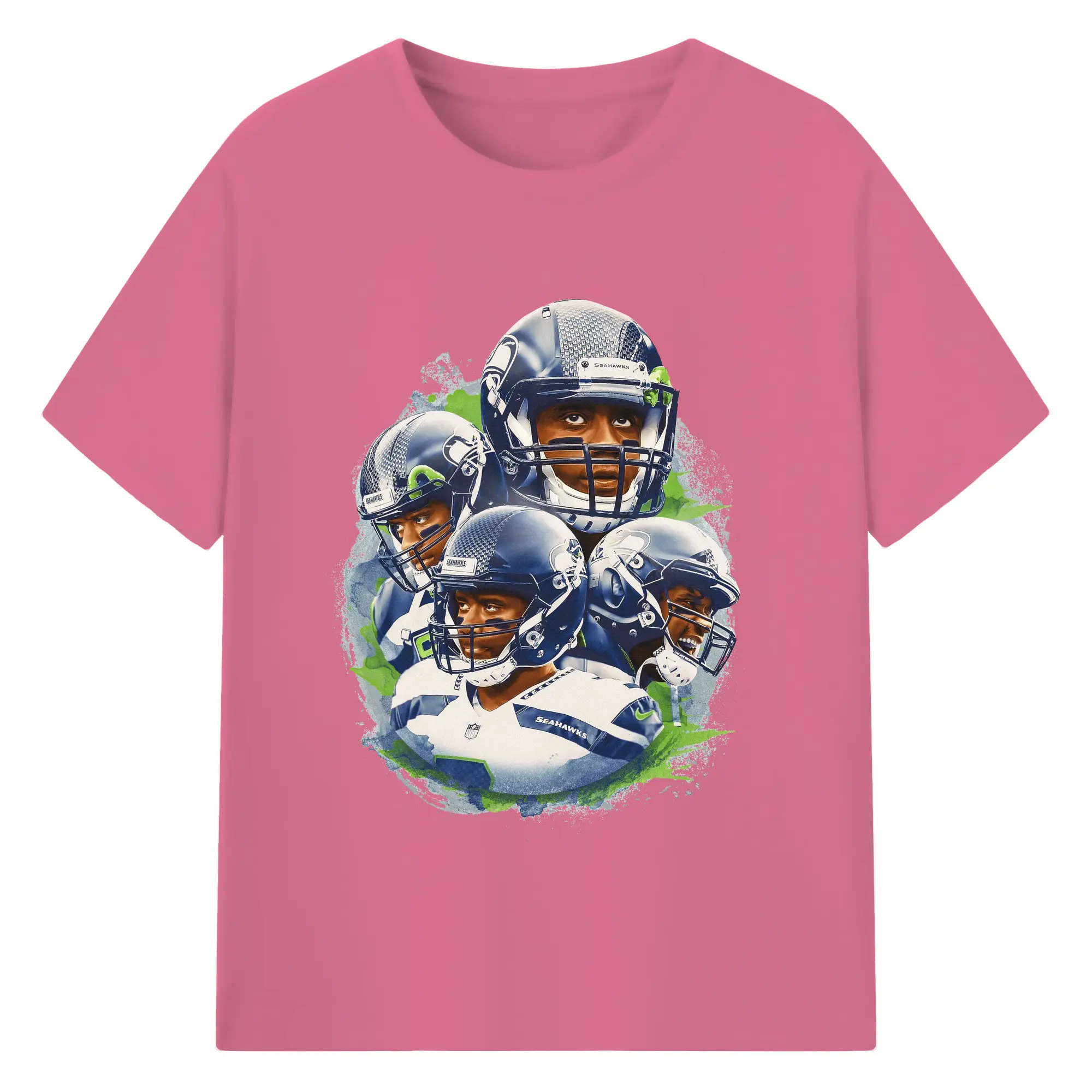Russell Wilson Seattle Seahawks Watercolor Team Collage DIY Shirt - 180g Cotton T-Shirt With Front Heat Transfer Print – Soft, Lightweight, Fitted Design – Comfortable Casual Wear For Sports & Everyday Use