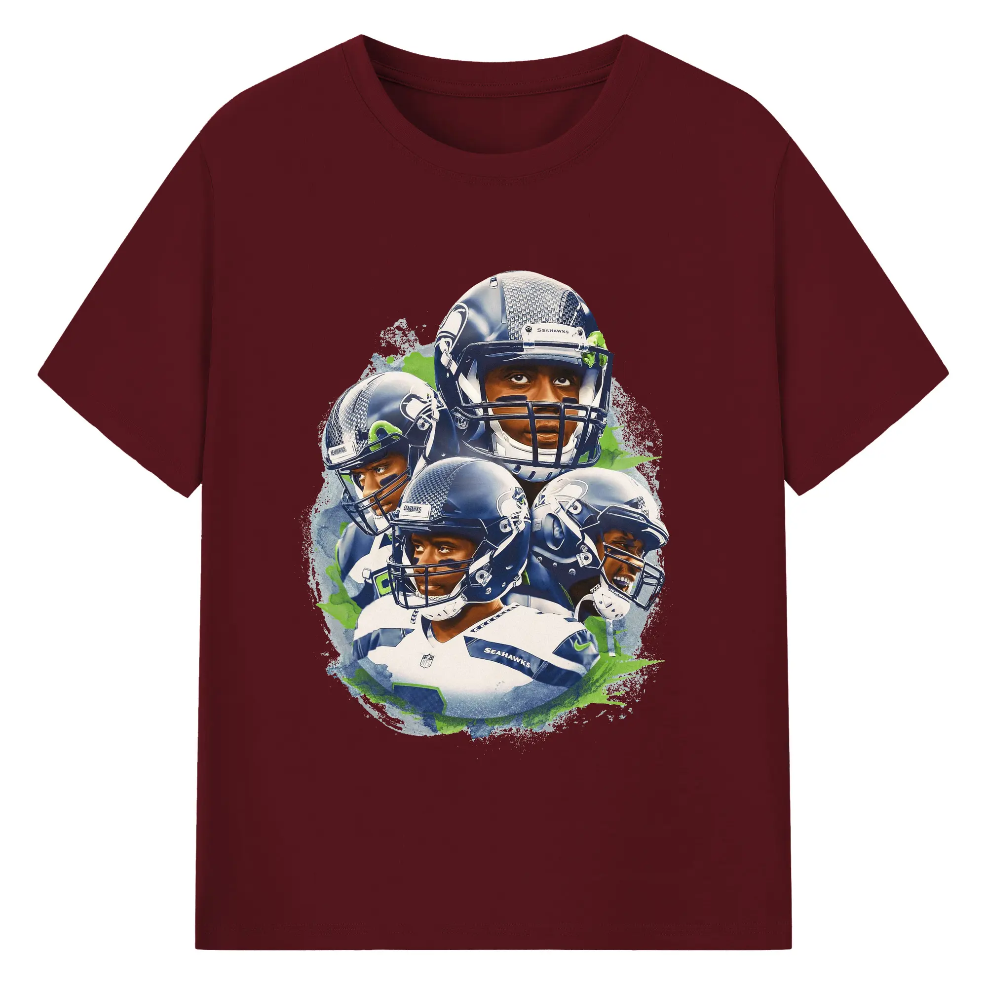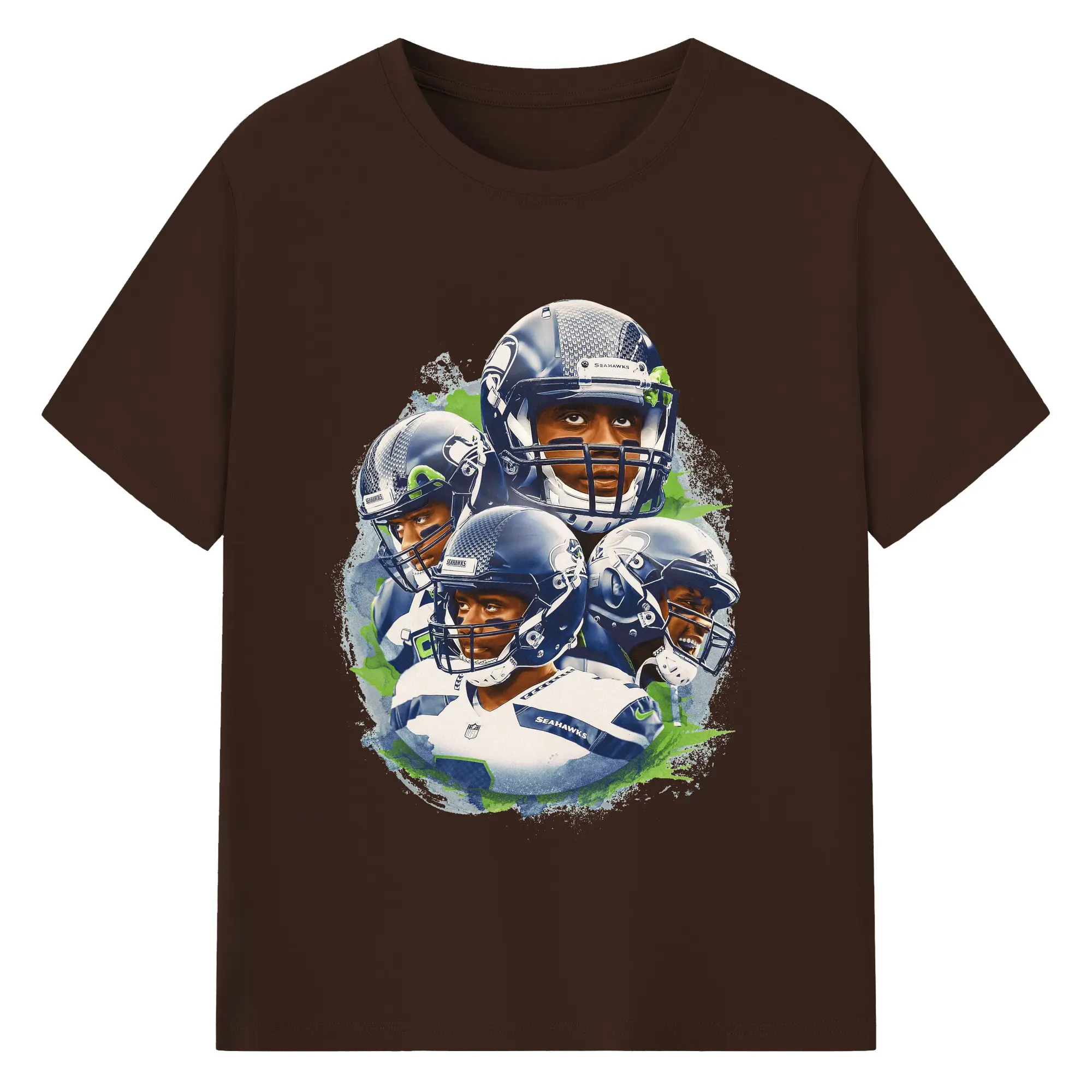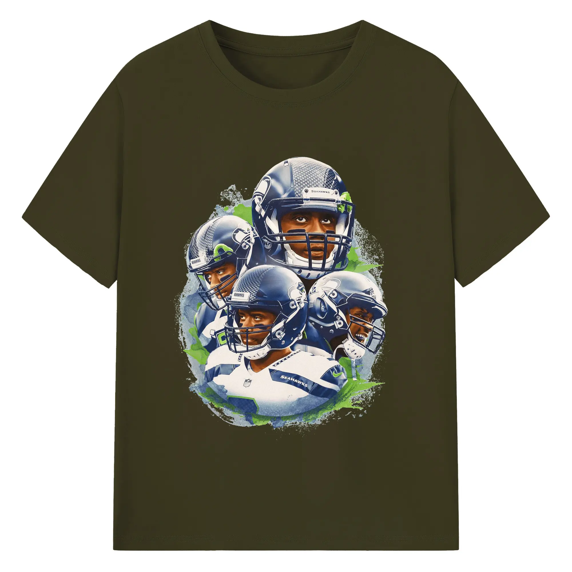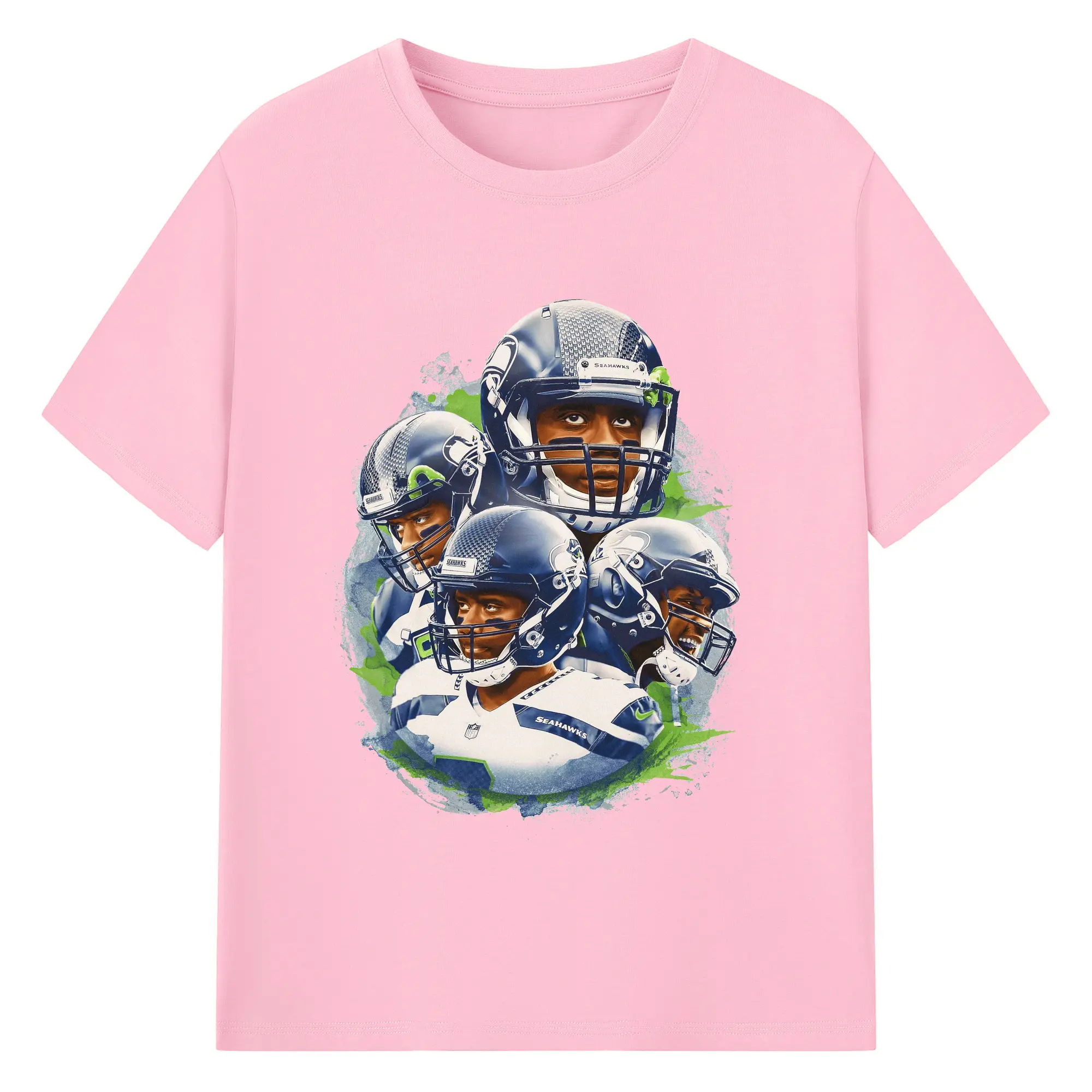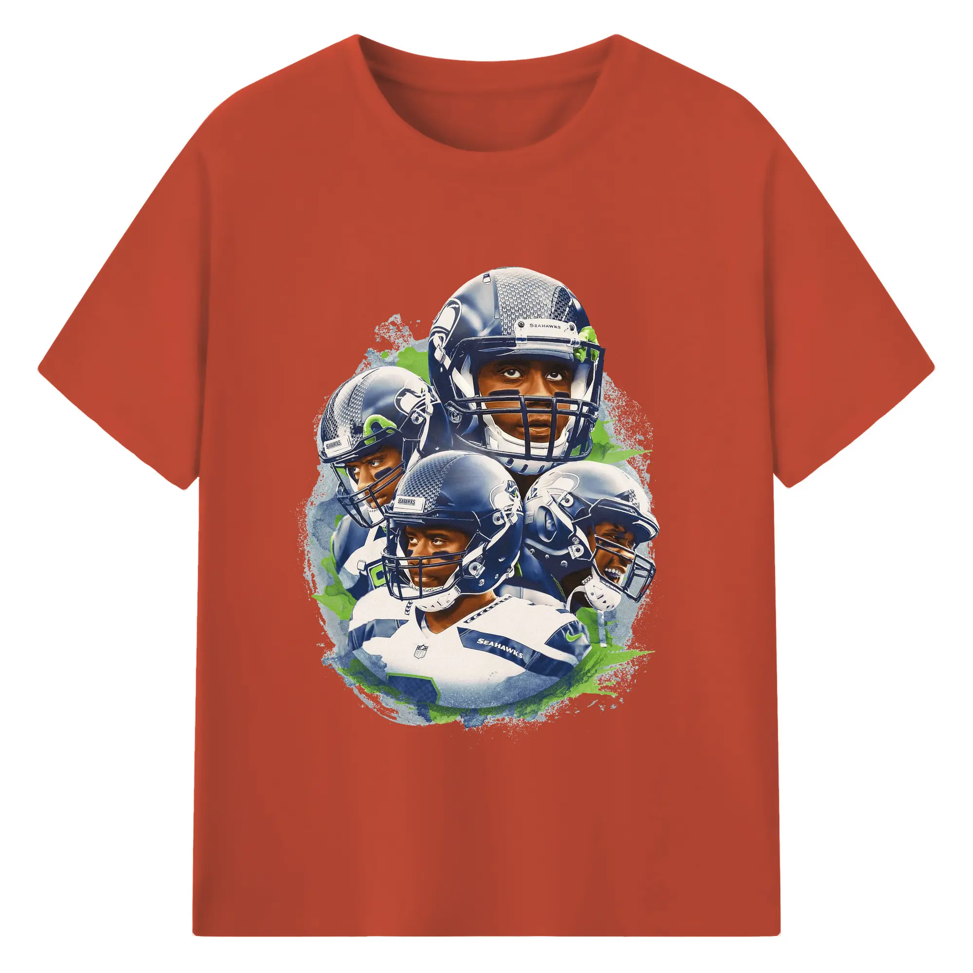 Russell Wilson Seattle Seahawks Watercolor Team Collage DIY Shirt - 180g Cotton T-Shirt With Front Heat Transfer Print – Soft, Lightweight, Fitted Design – Comfortable Casual Wear For Sports & Everyday Use