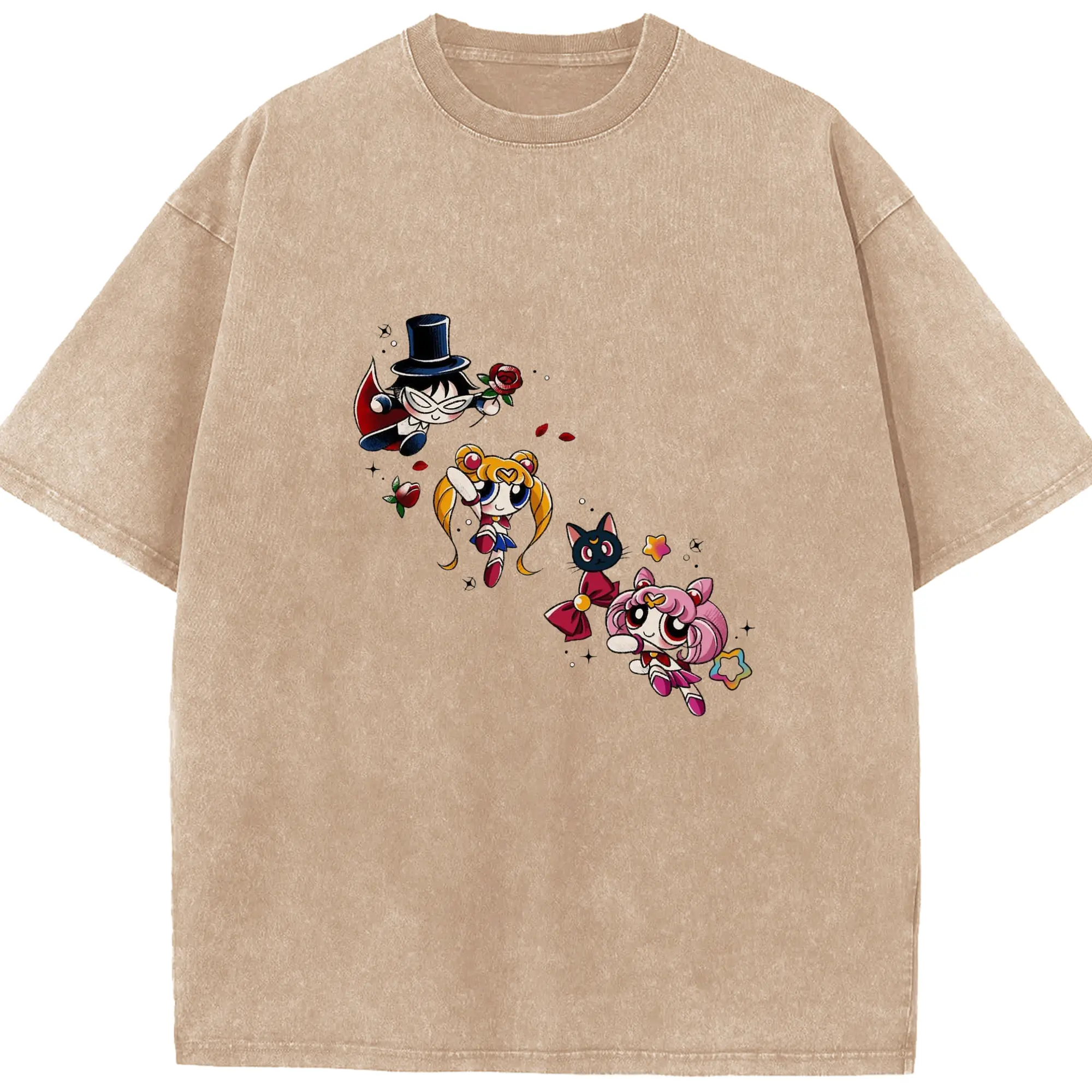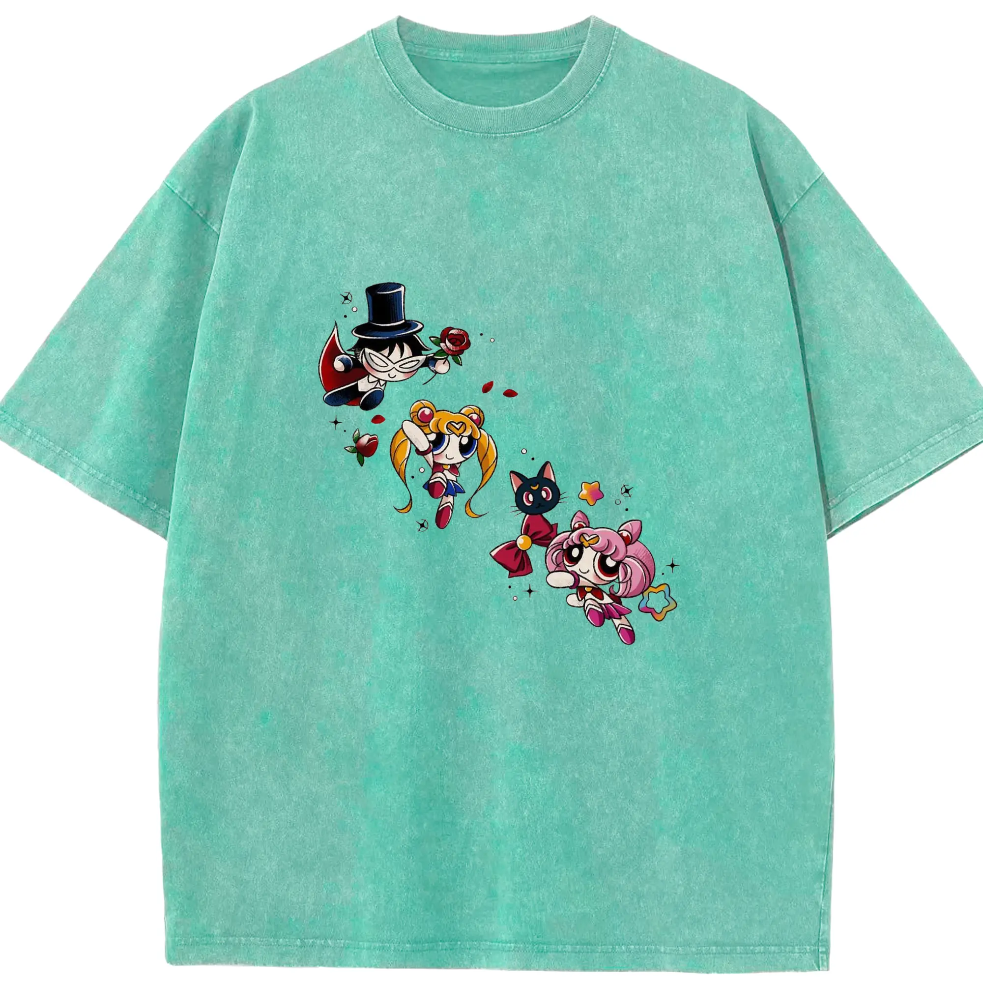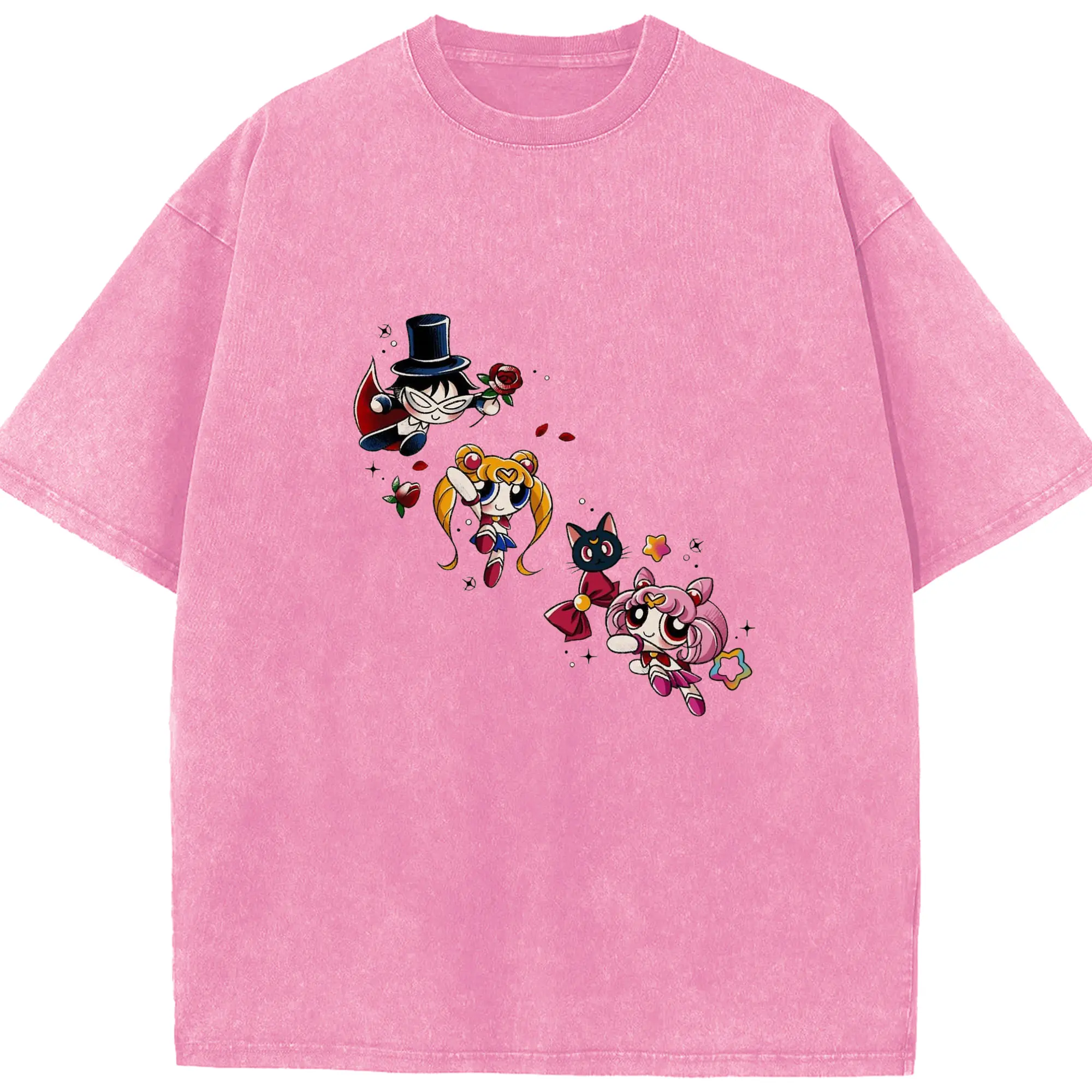 Sailor Moon Cute Chibi Characters DIY Shirt - Washed Vintage Look 230g Cotton Oversized T-Shirt With Front Heat Transfer Print – Soft, Lightweight, Stylish Fit – Comfortable Casual Wear For Sports & Everyday Use