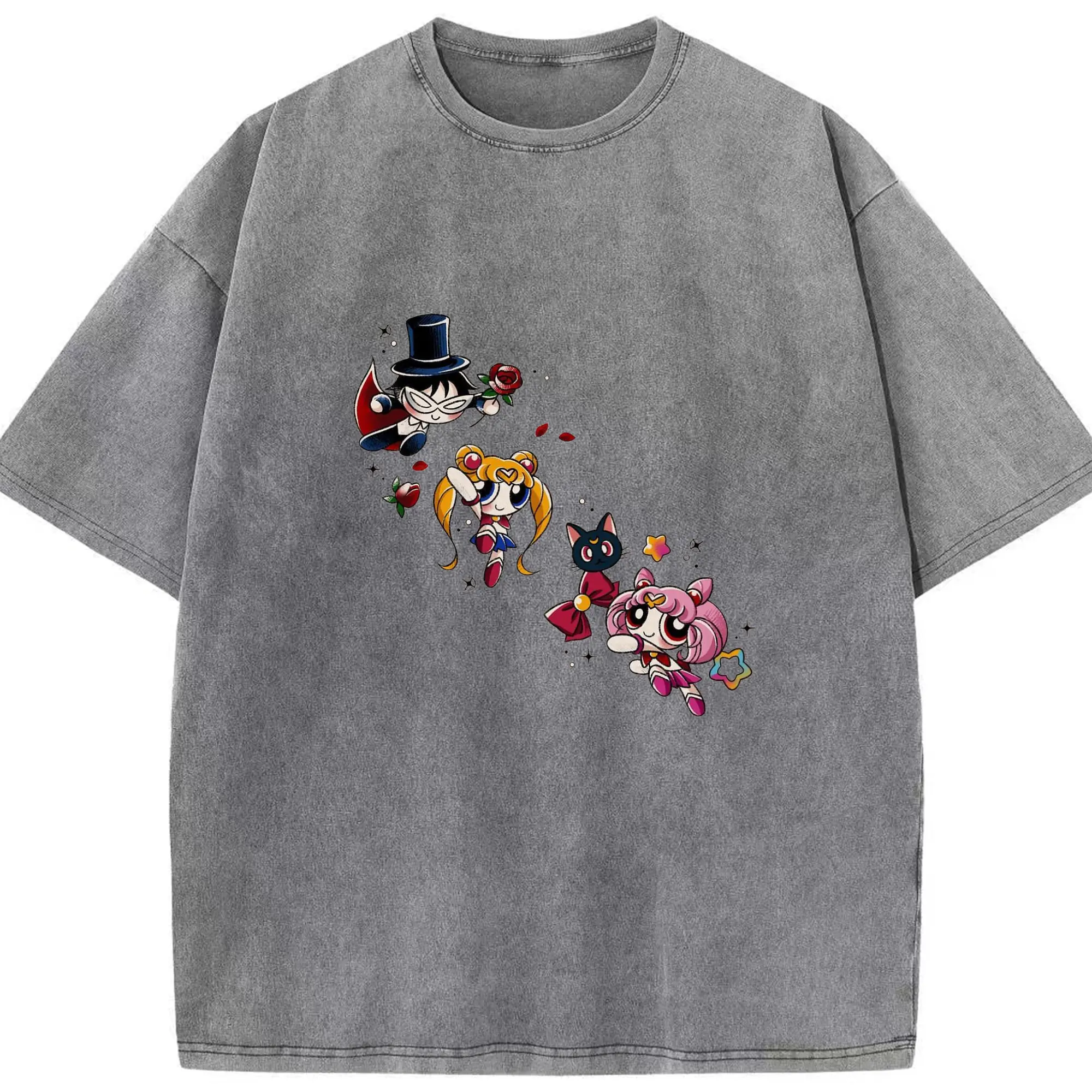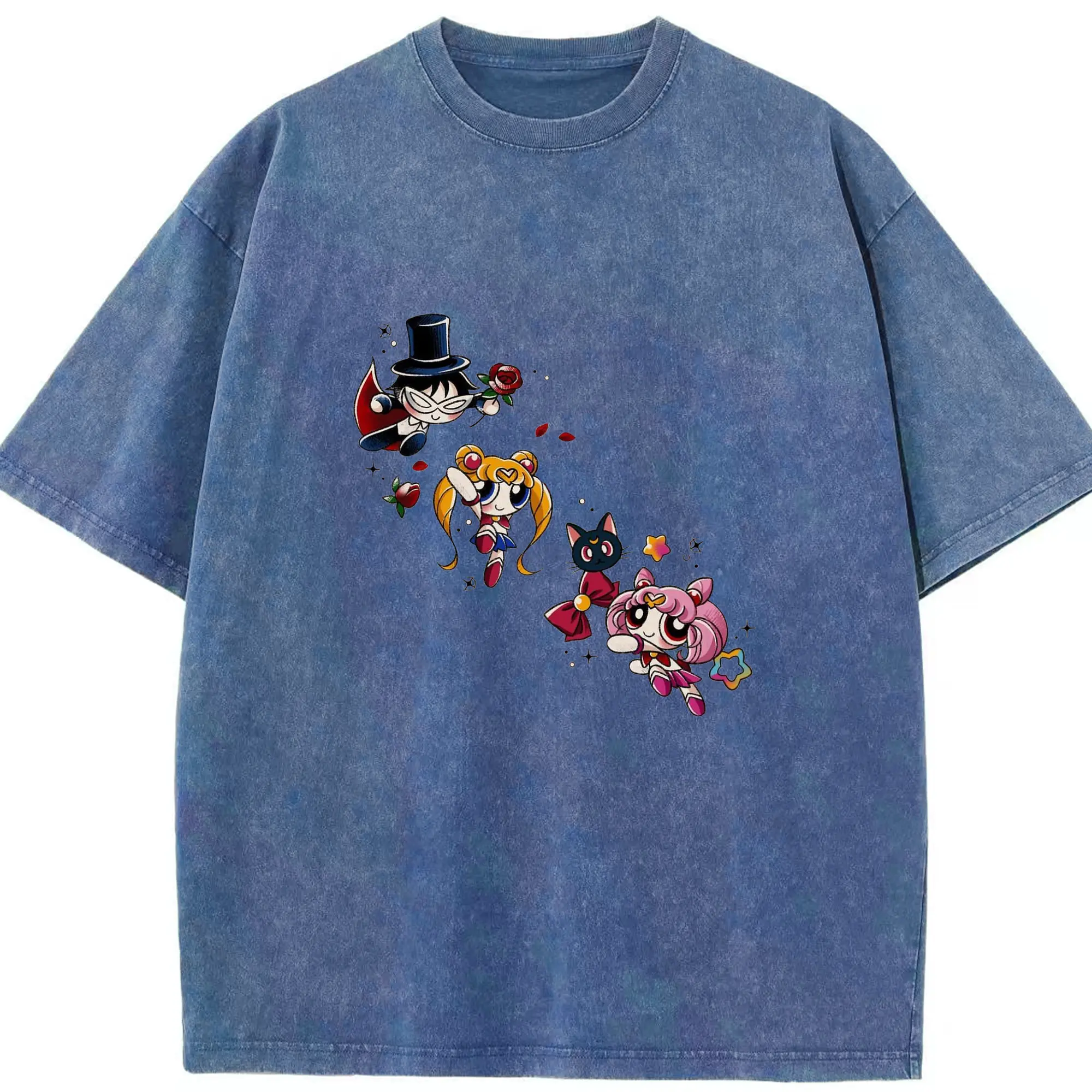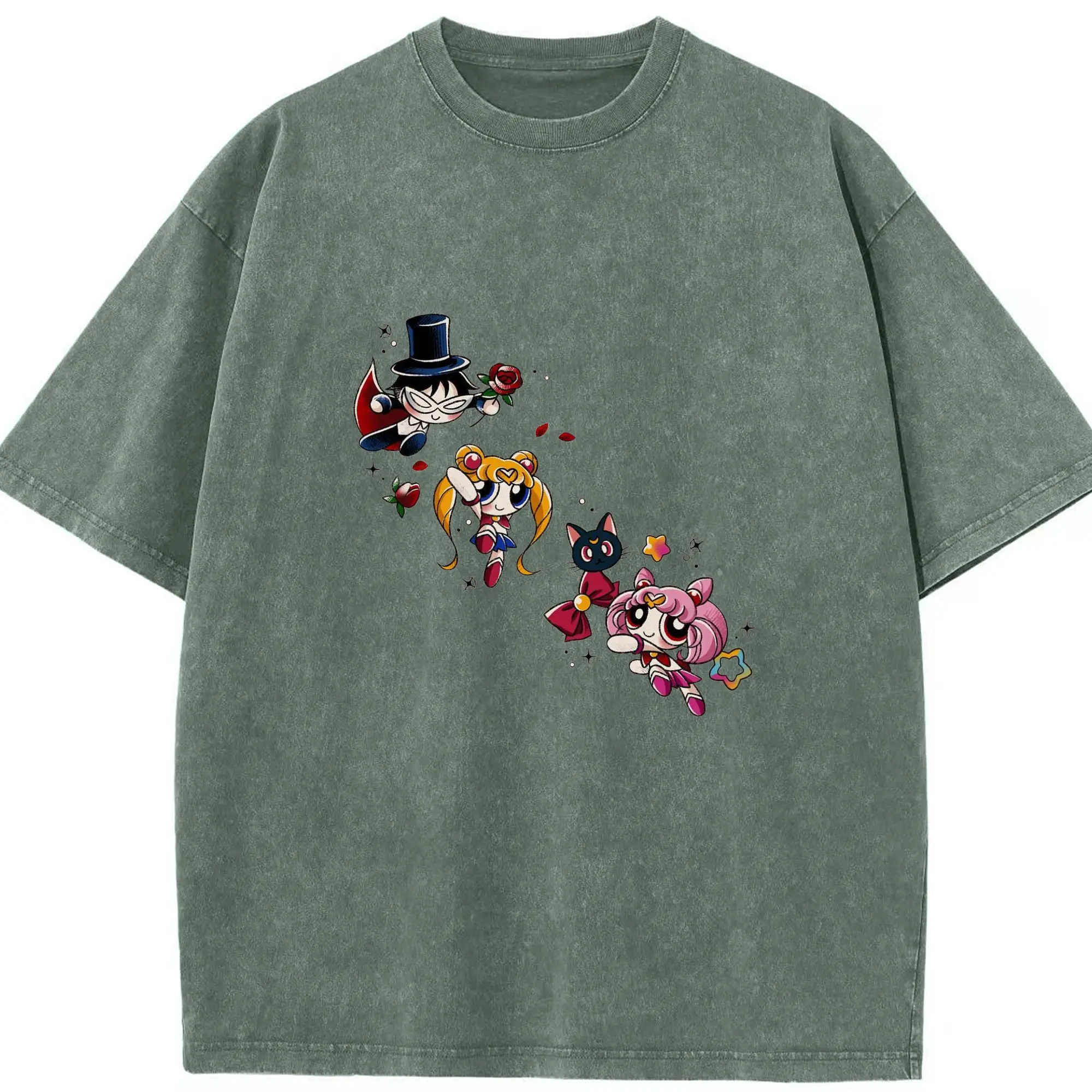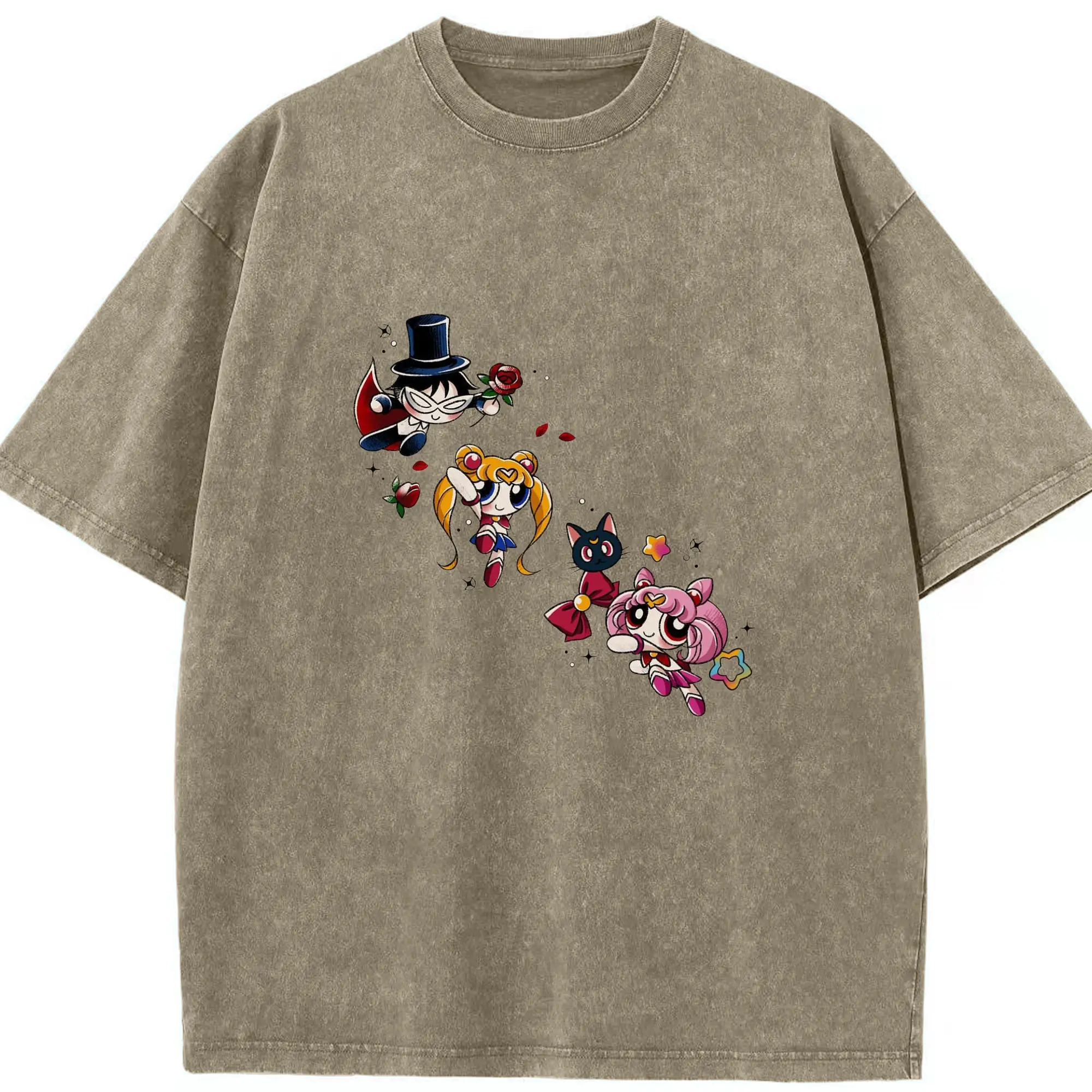 Sailor Moon Cute Chibi Characters DIY Shirt - Washed Vintage Look 230g Cotton Oversized T-Shirt With Front Heat Transfer Print – Soft, Lightweight, Stylish Fit – Comfortable Casual Wear For Sports & Everyday Use