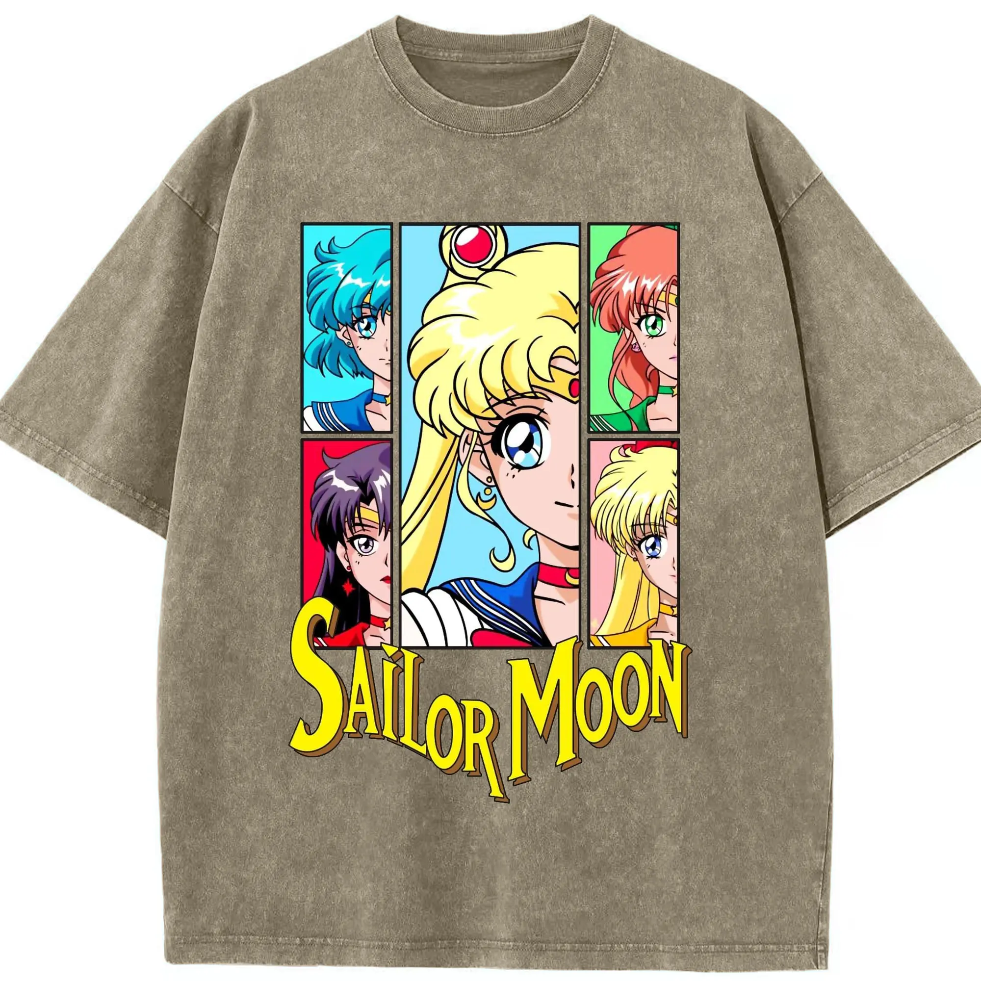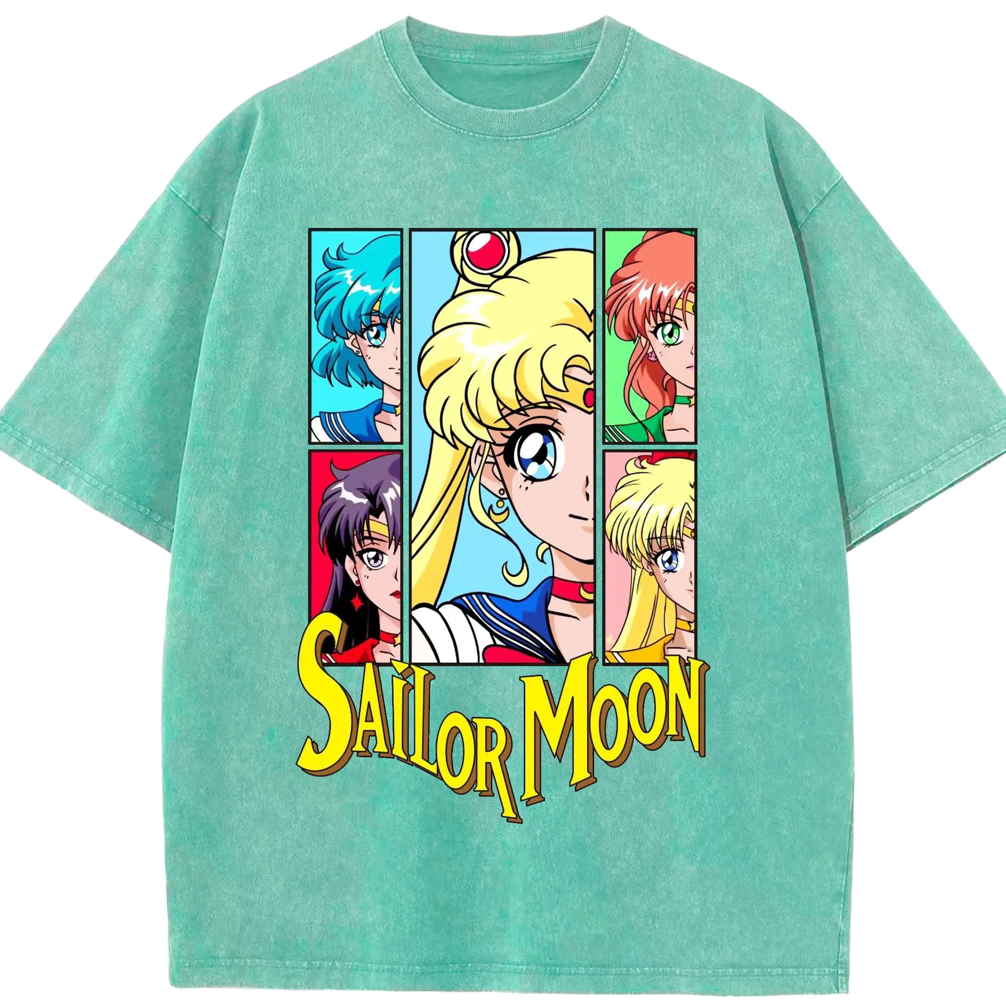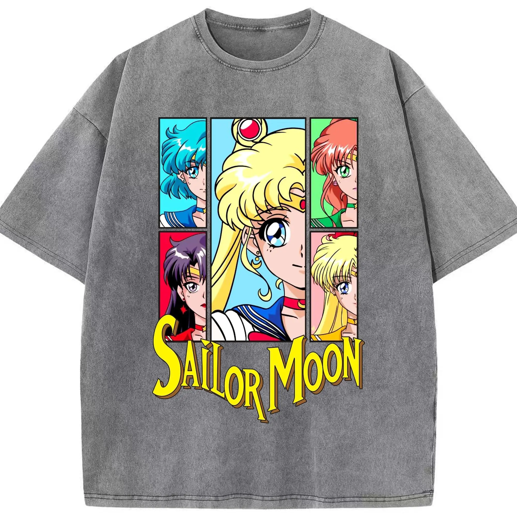Sailor Moon Group Characters Classic Anime DIY Shirt - Washed Vintage Look 230g Cotton Oversized T-Shirt With Front Heat Transfer Print – Soft, Lightweight, Stylish Fit – Comfortable Casual Wear For Sports & Everyday Use