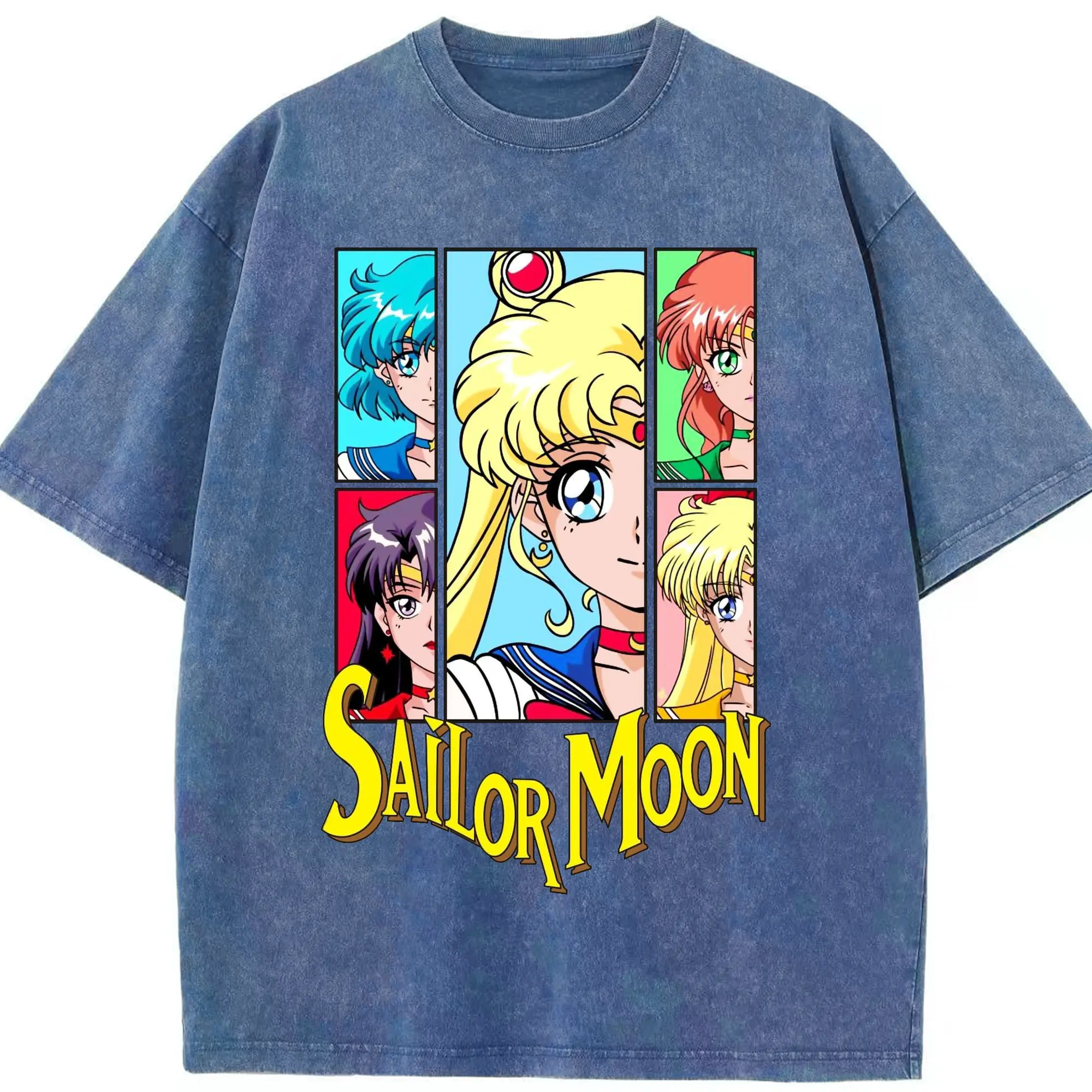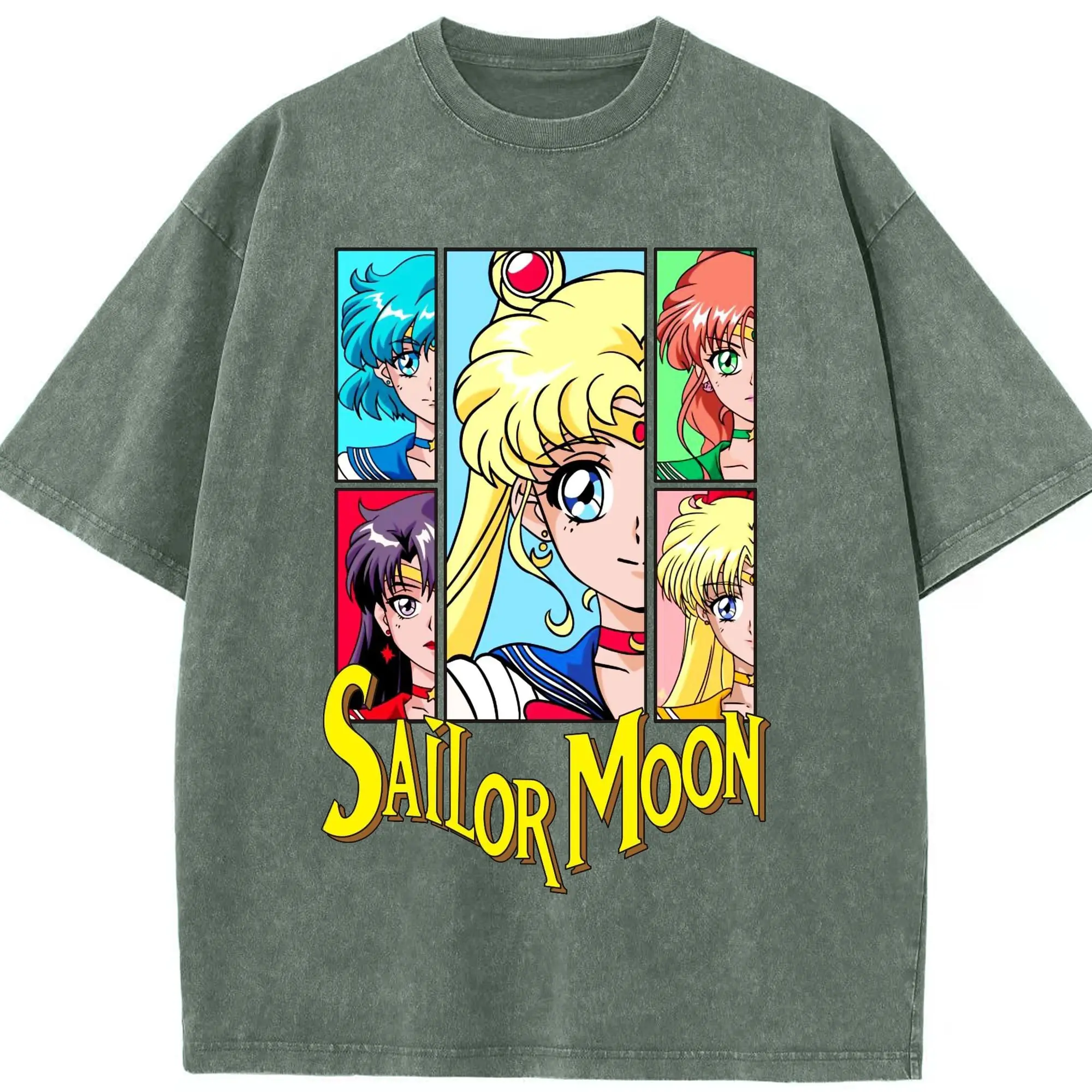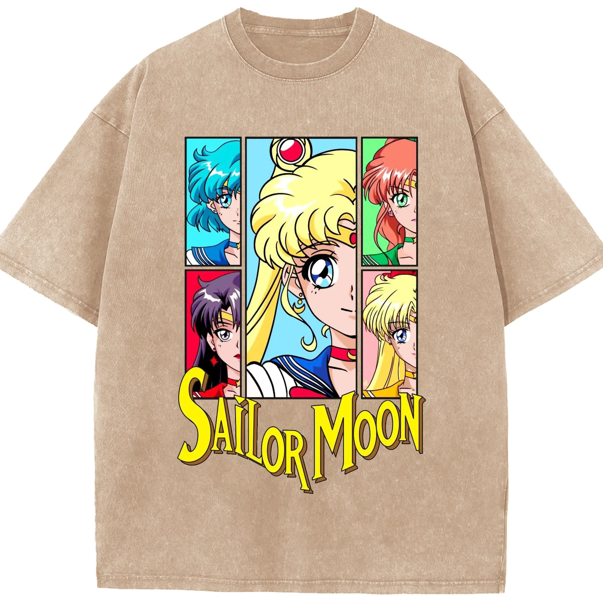 Sailor Moon Group Characters Classic Anime DIY Shirt - Washed Vintage Look 230g Cotton Oversized T-Shirt With Front Heat Transfer Print – Soft, Lightweight, Stylish Fit – Comfortable Casual Wear For Sports & Everyday Use