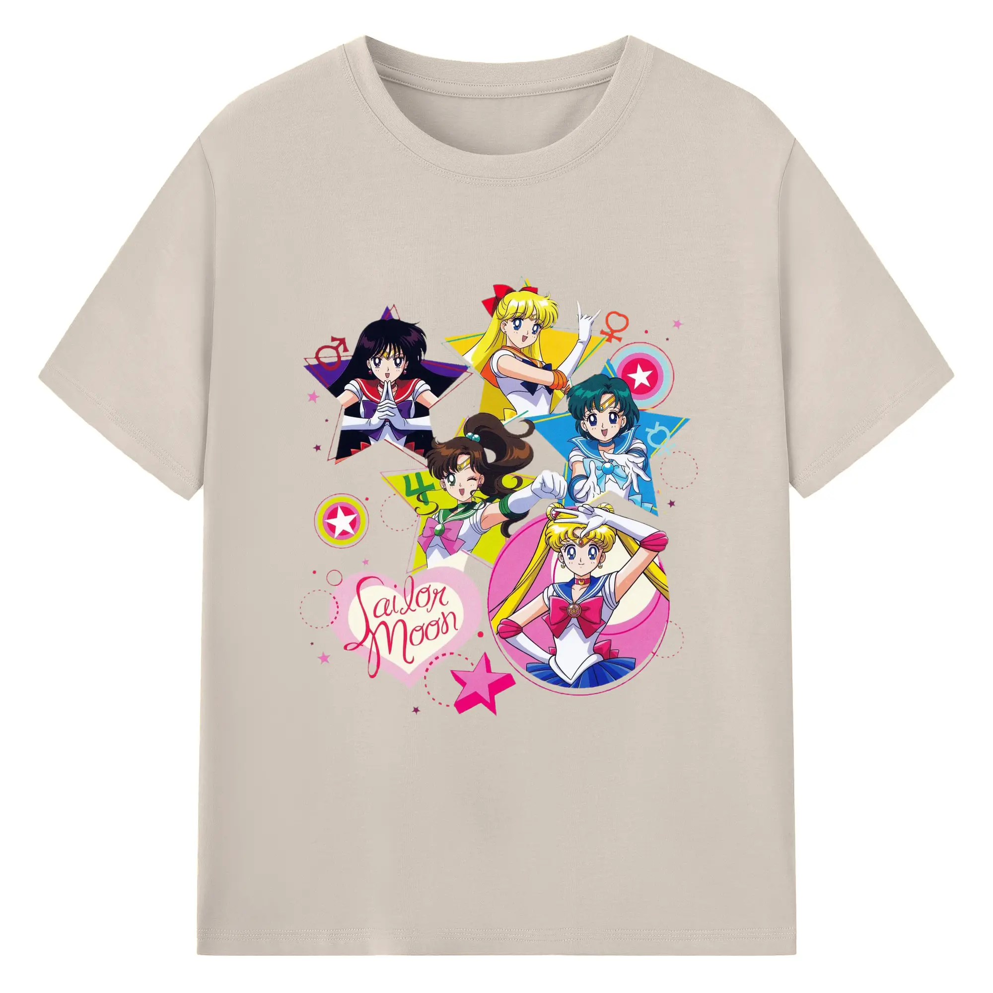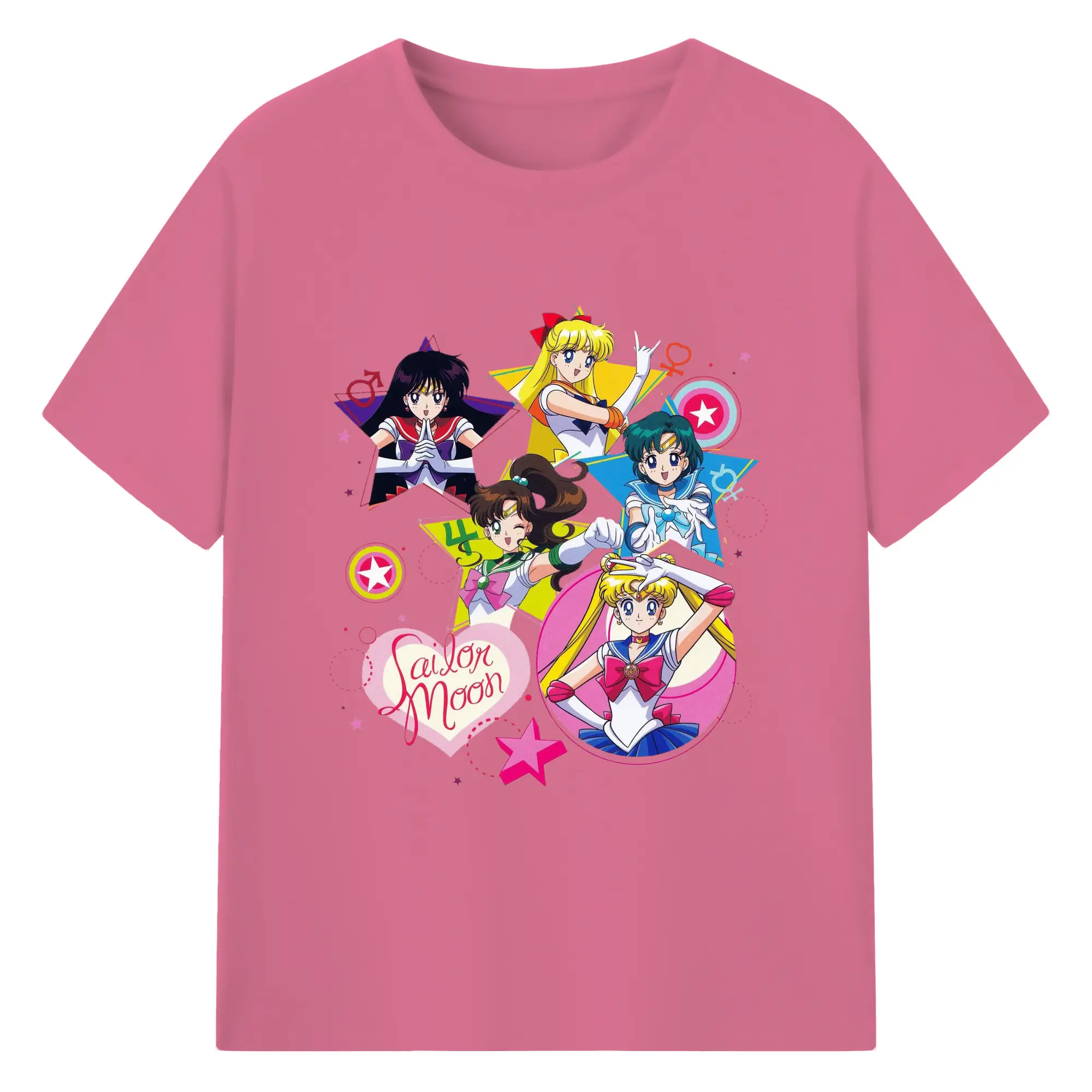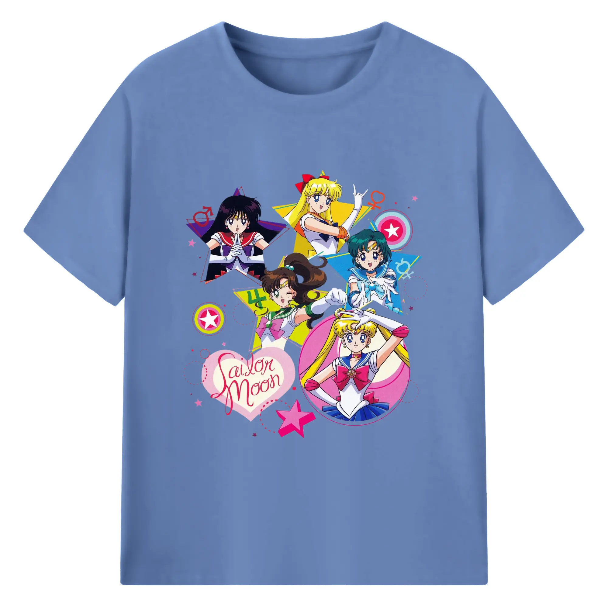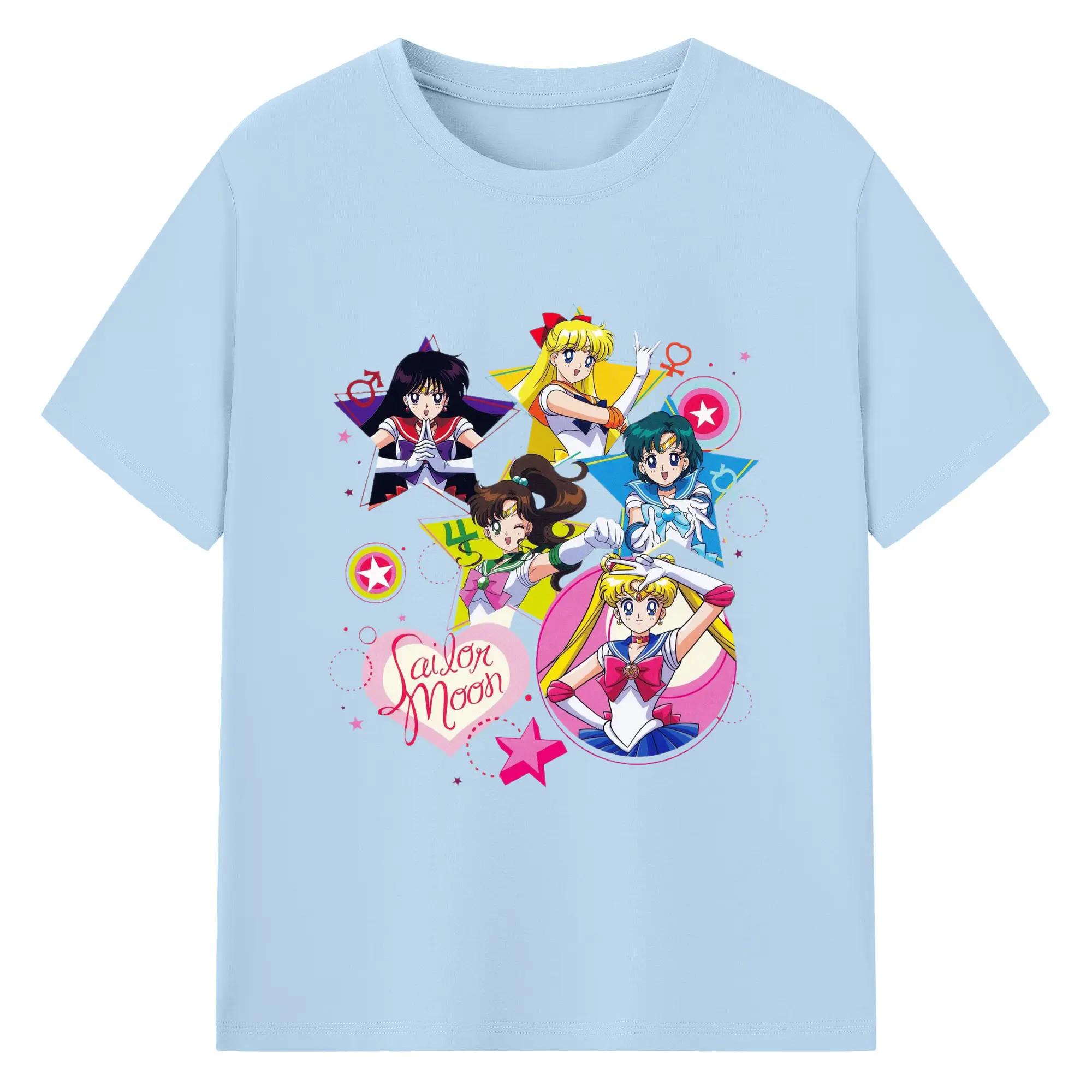 Sailor Moon Group Characters Cute Style DIY Shirt - 180g Cotton T-Shirt With Front Heat Transfer Print – Soft, Lightweight, Fitted Design – Comfortable Casual Wear For Sports & Everyday Use