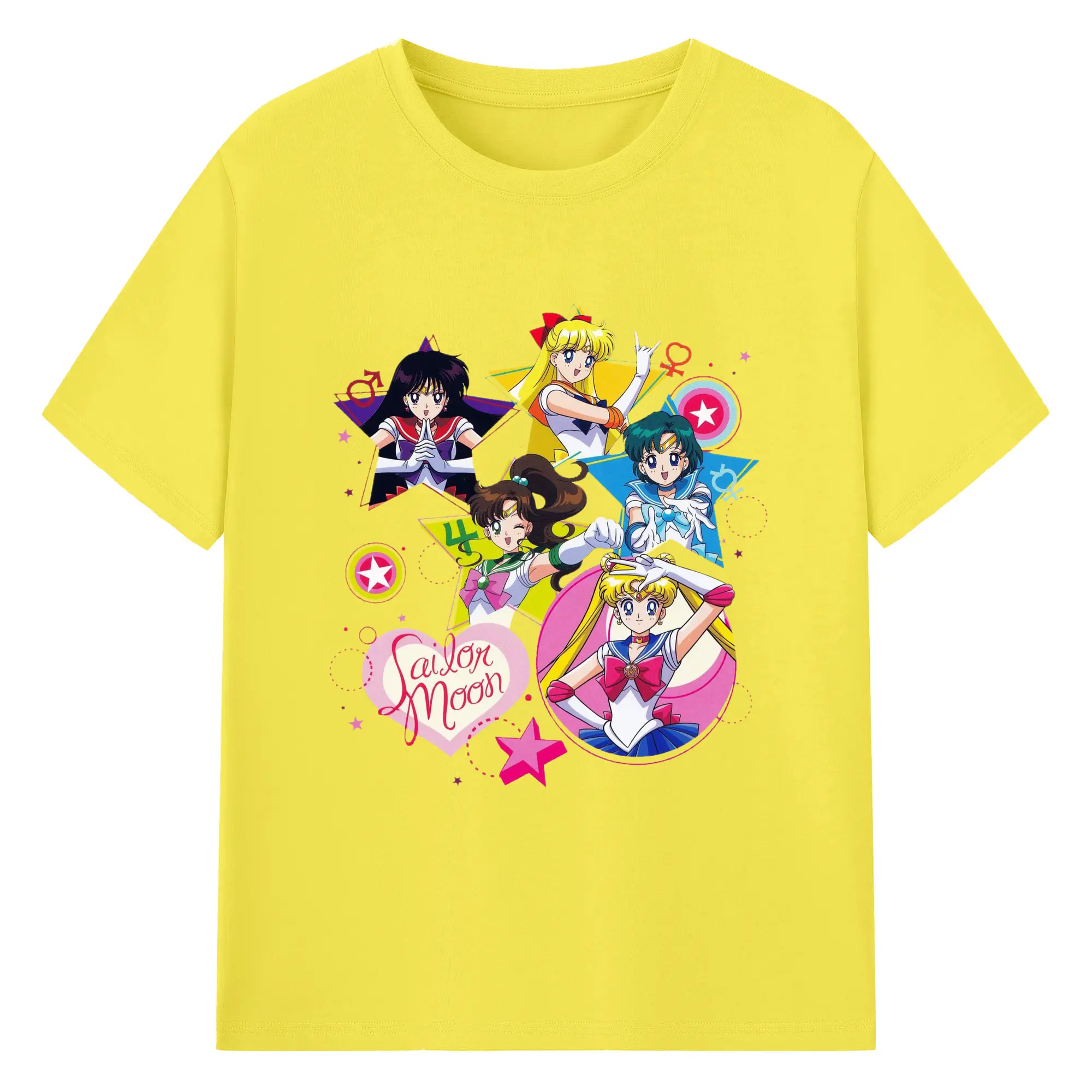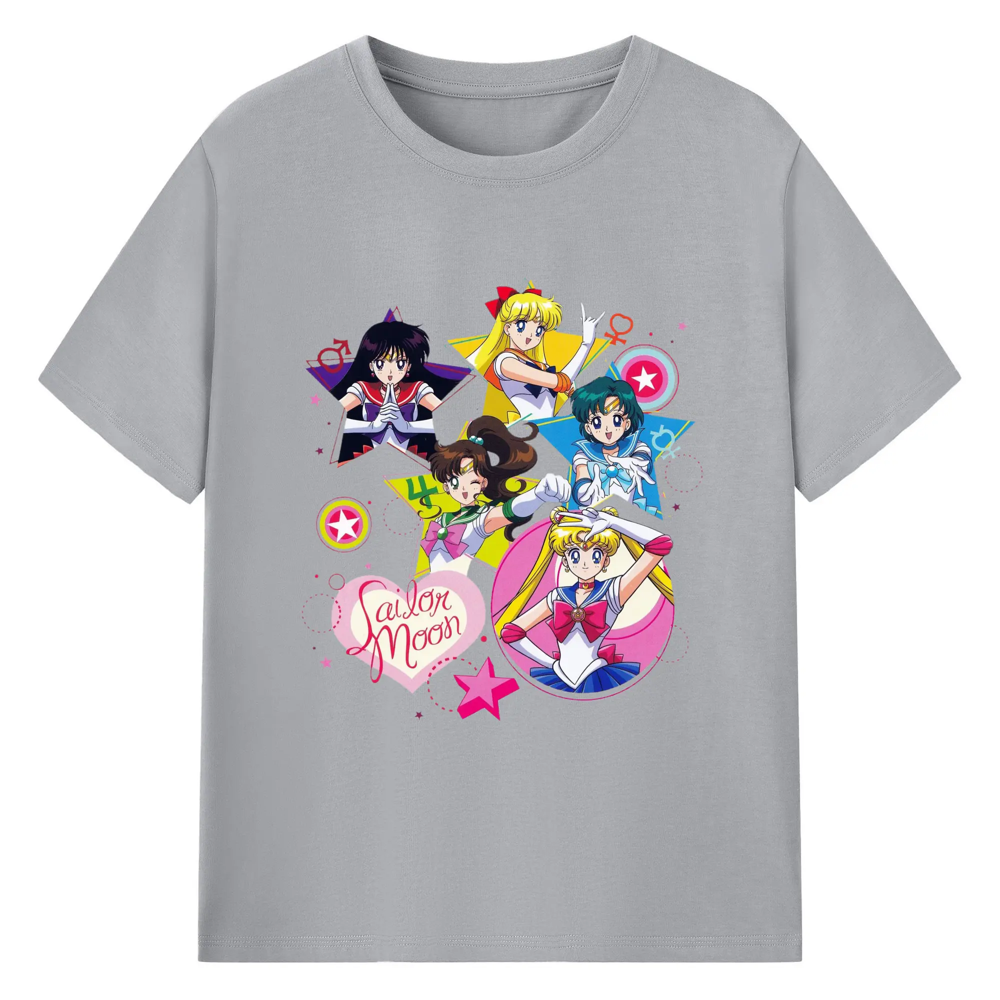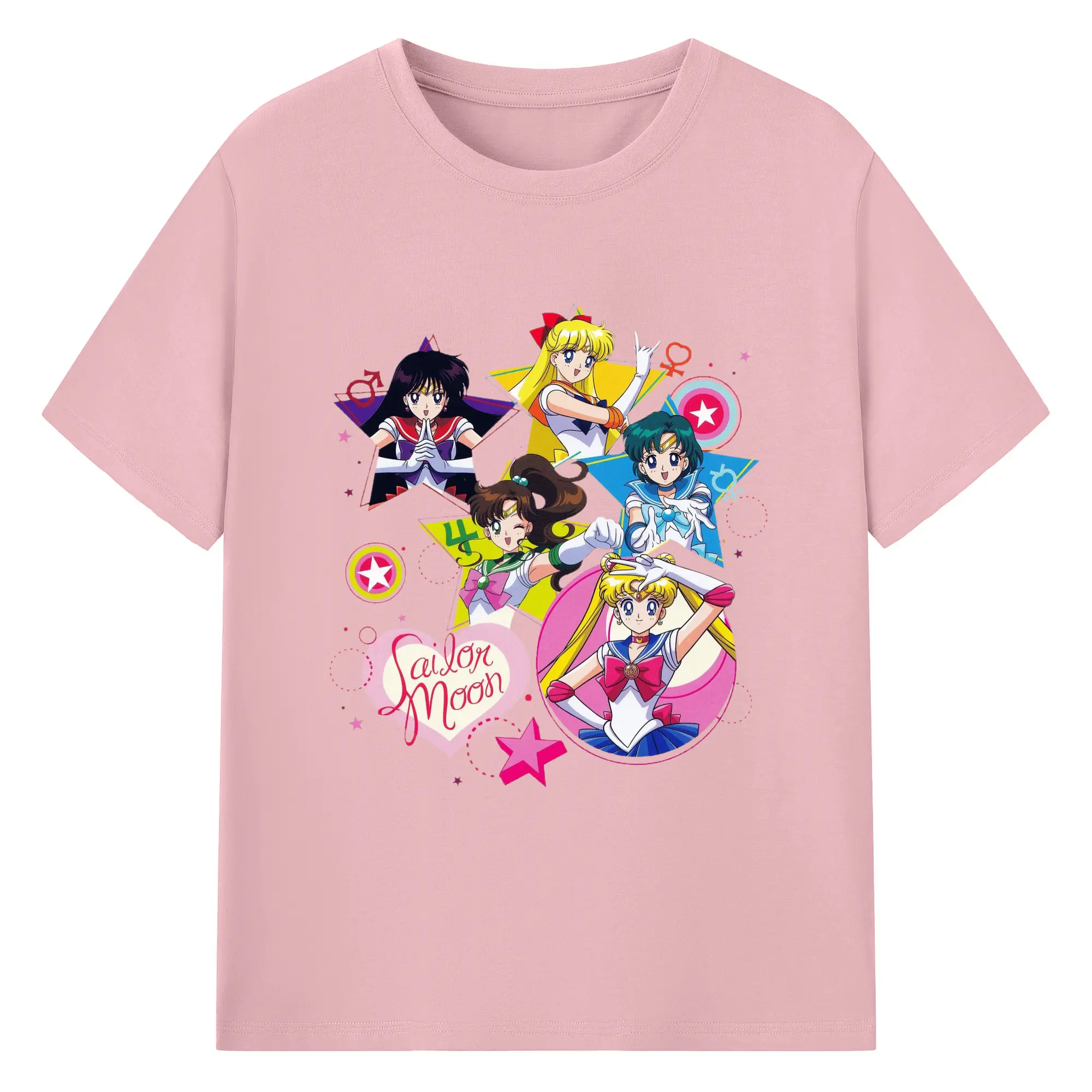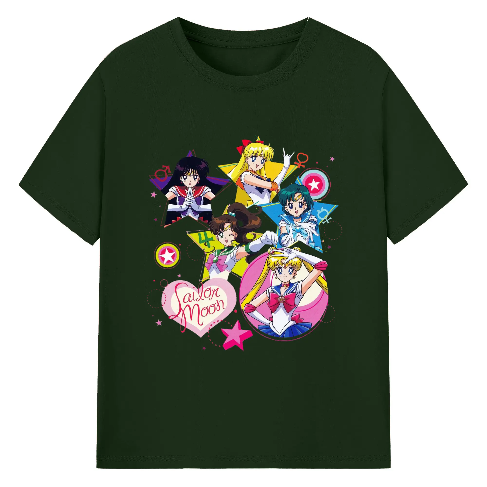 Sailor Moon Group Characters Cute Style DIY Shirt - 180g Cotton T-Shirt With Front Heat Transfer Print – Soft, Lightweight, Fitted Design – Comfortable Casual Wear For Sports & Everyday Use