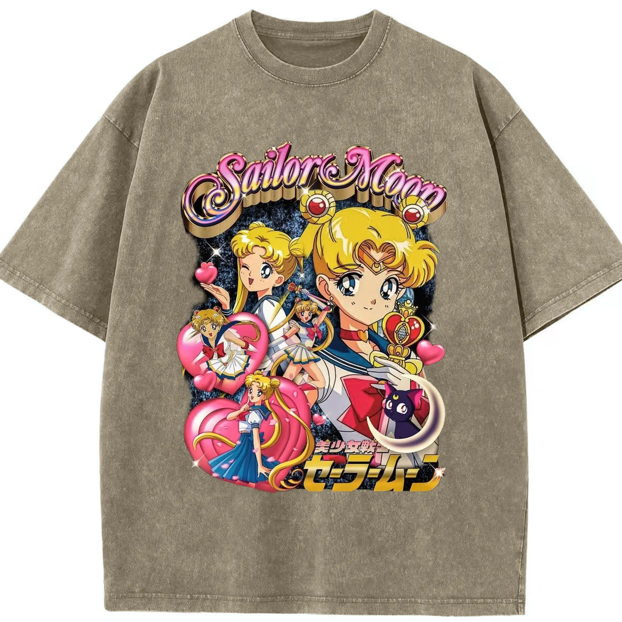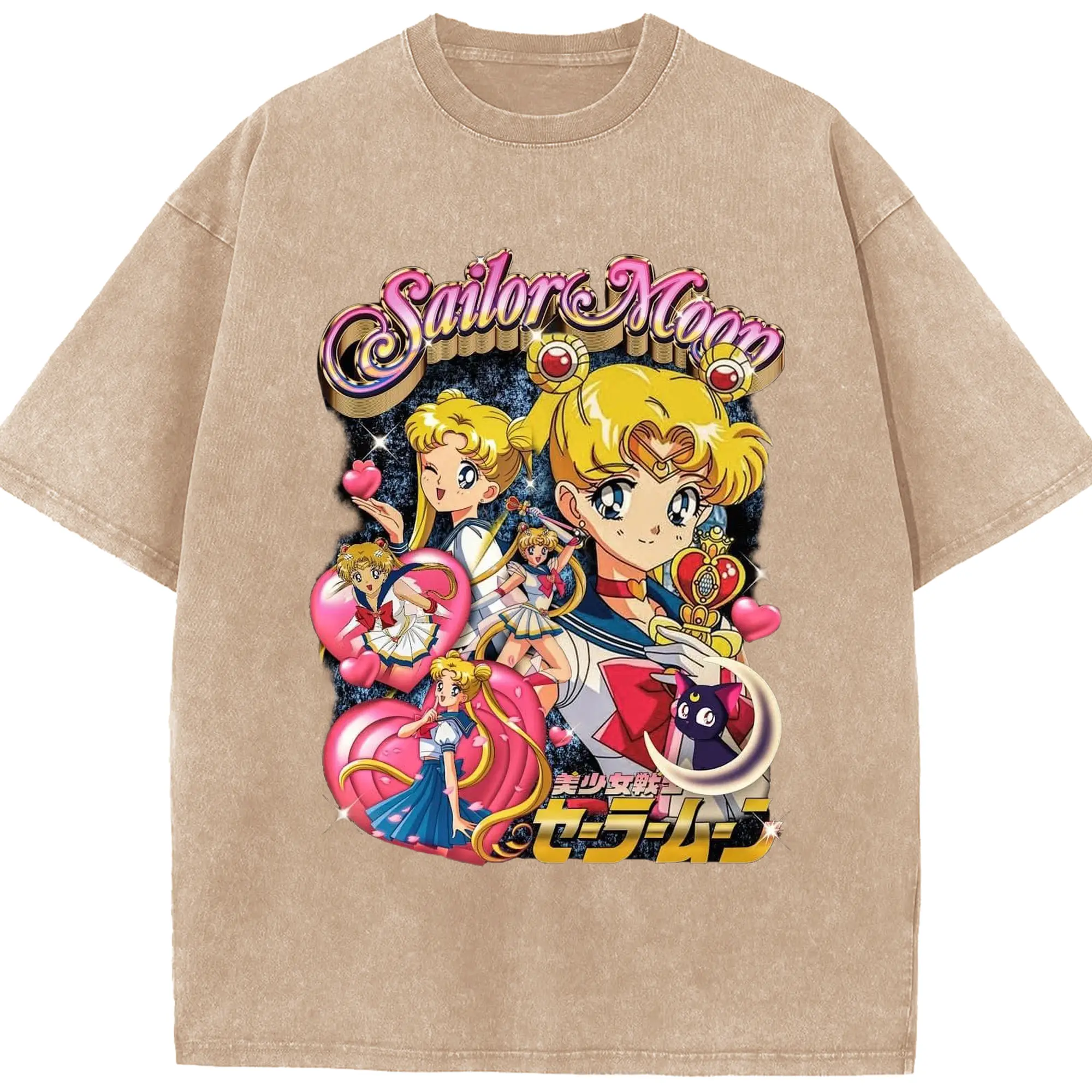 Sailor Moon Usagi Multi-Style DIY Shirt - Washed Vintage Look 230g Cotton Oversized T-Shirt With Front Heat Transfer Print – Soft, Lightweight, Stylish Fit – Comfortable Casual Wear For Sports & Everyday Use