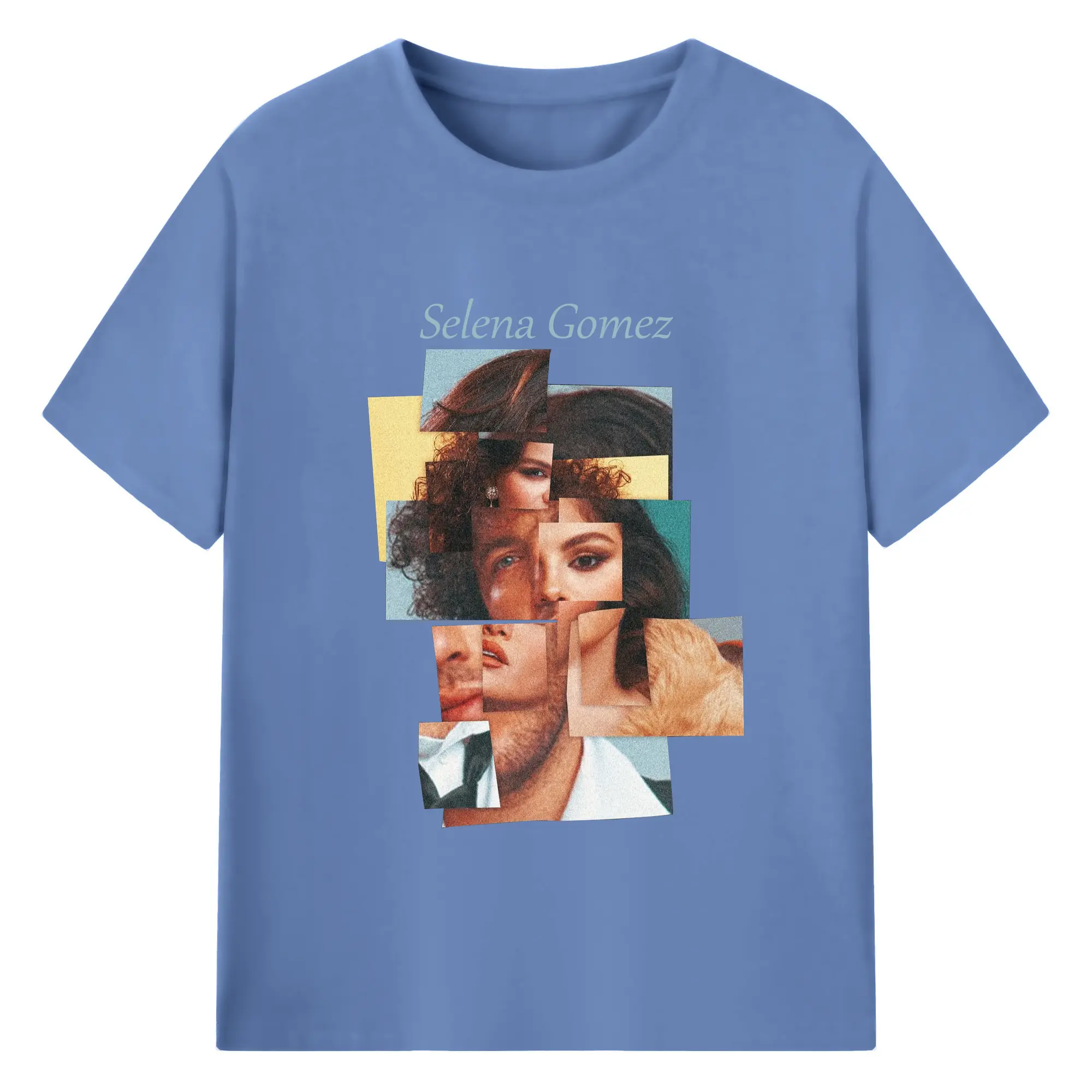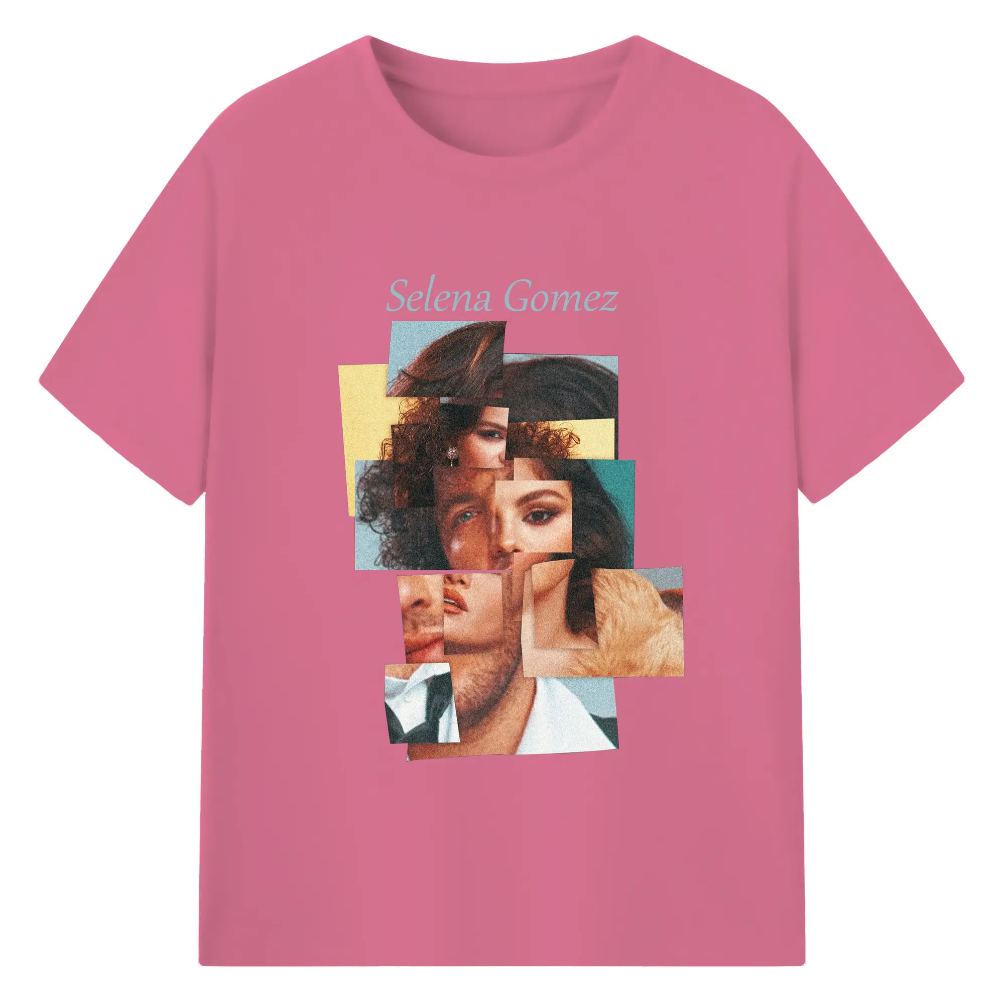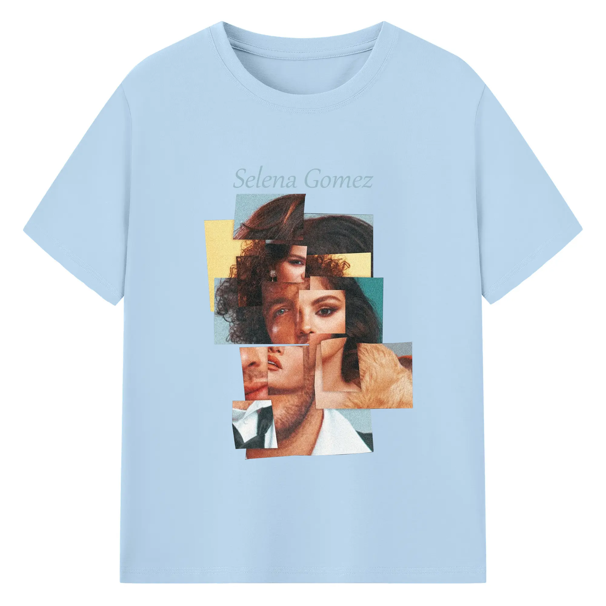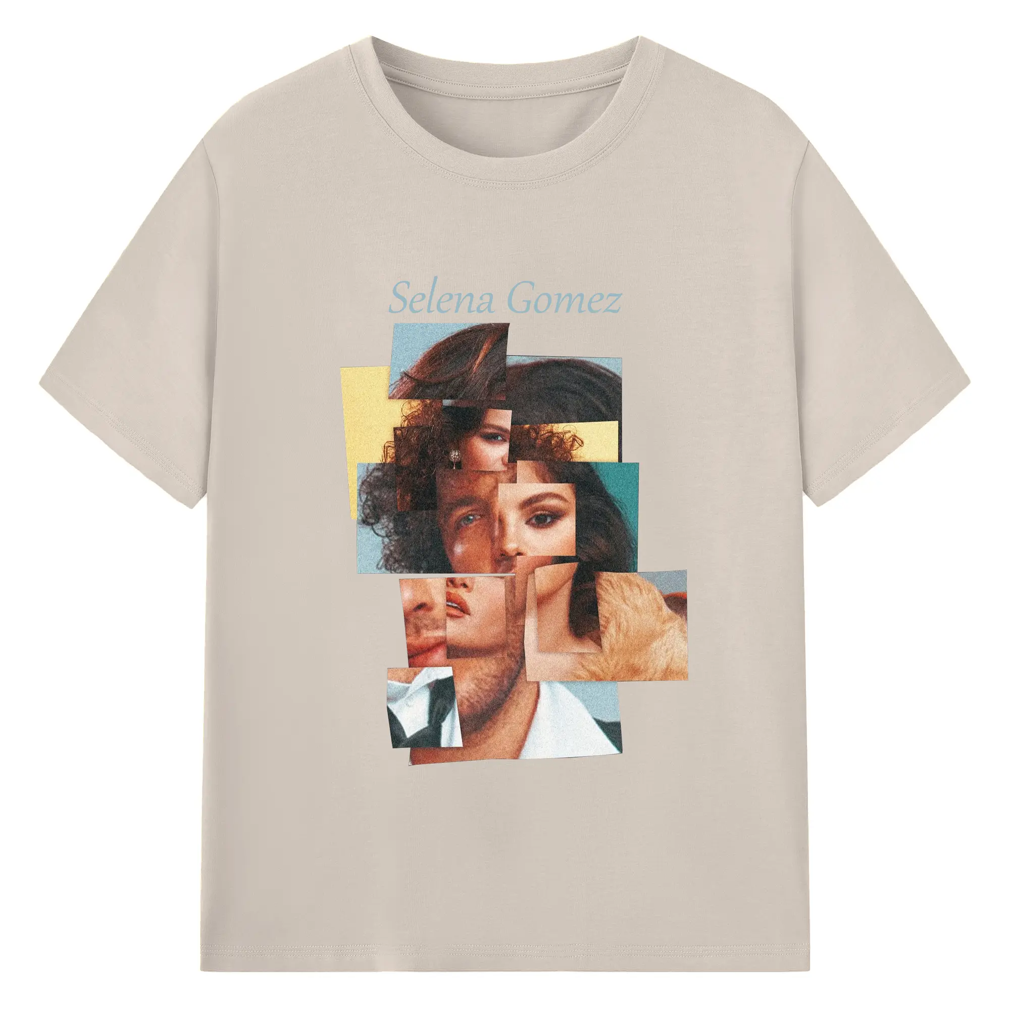 Selena Gomez Abstract Art Collage DIY - 180g Cotton T-Shirt With Front Heat Transfer Print – Soft, Lightweight, Fitted Design – Comfortable Casual Wear For Sports & Everyday Use