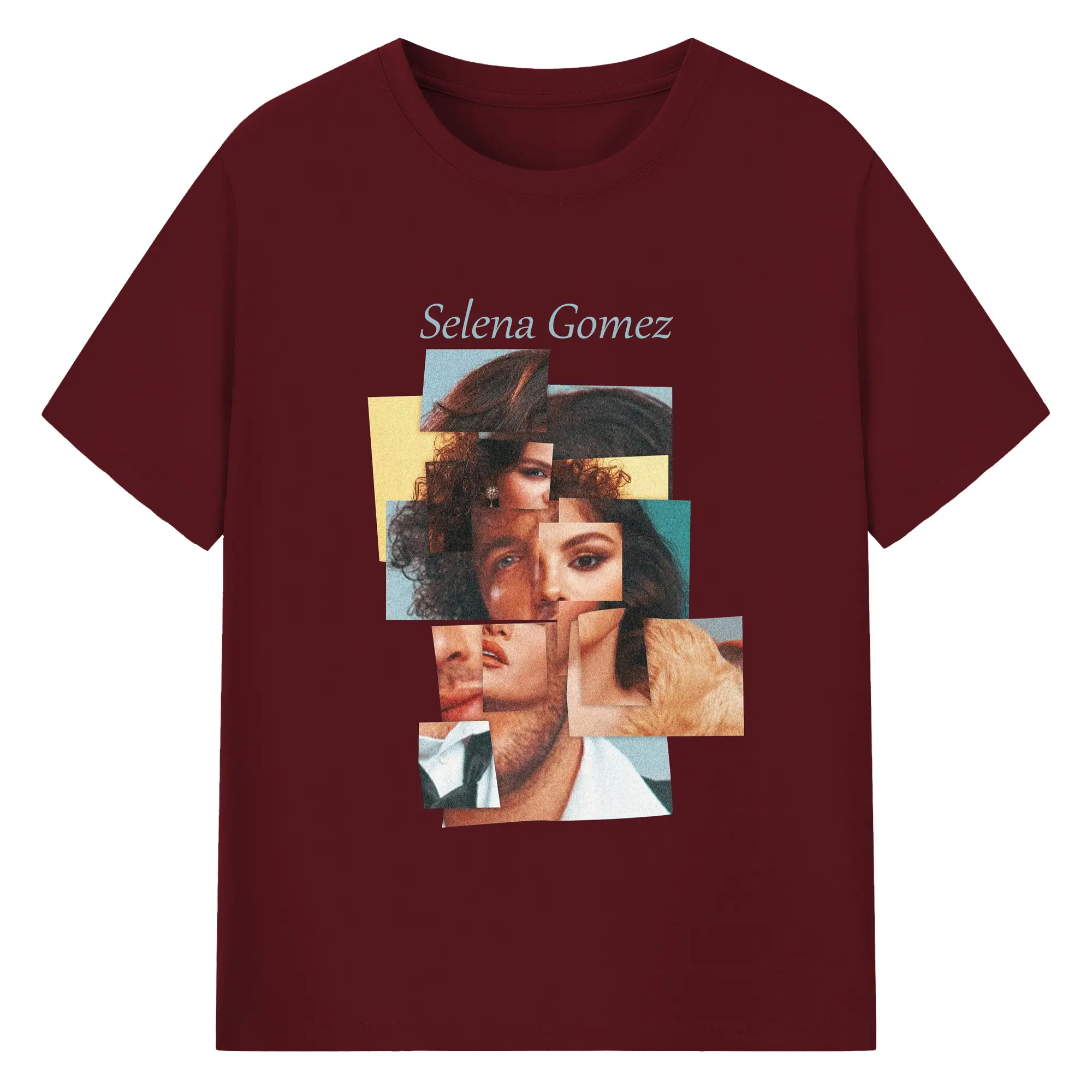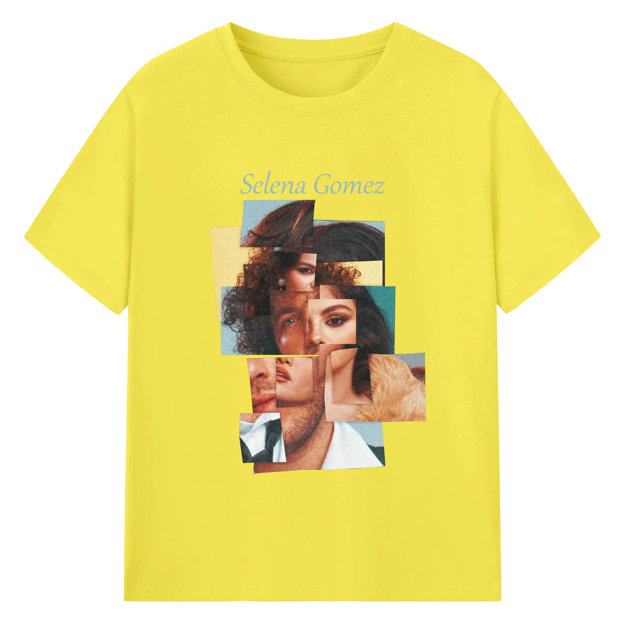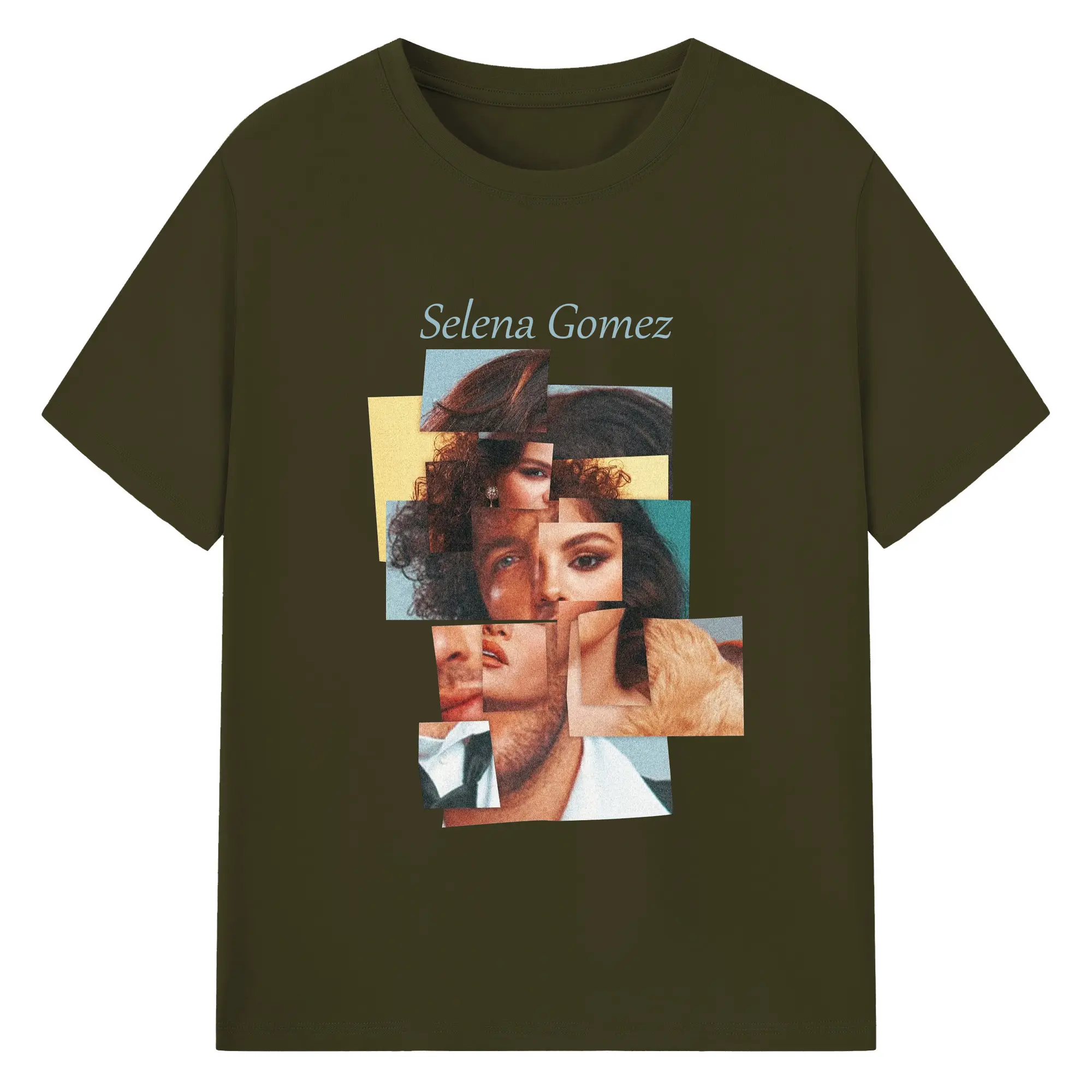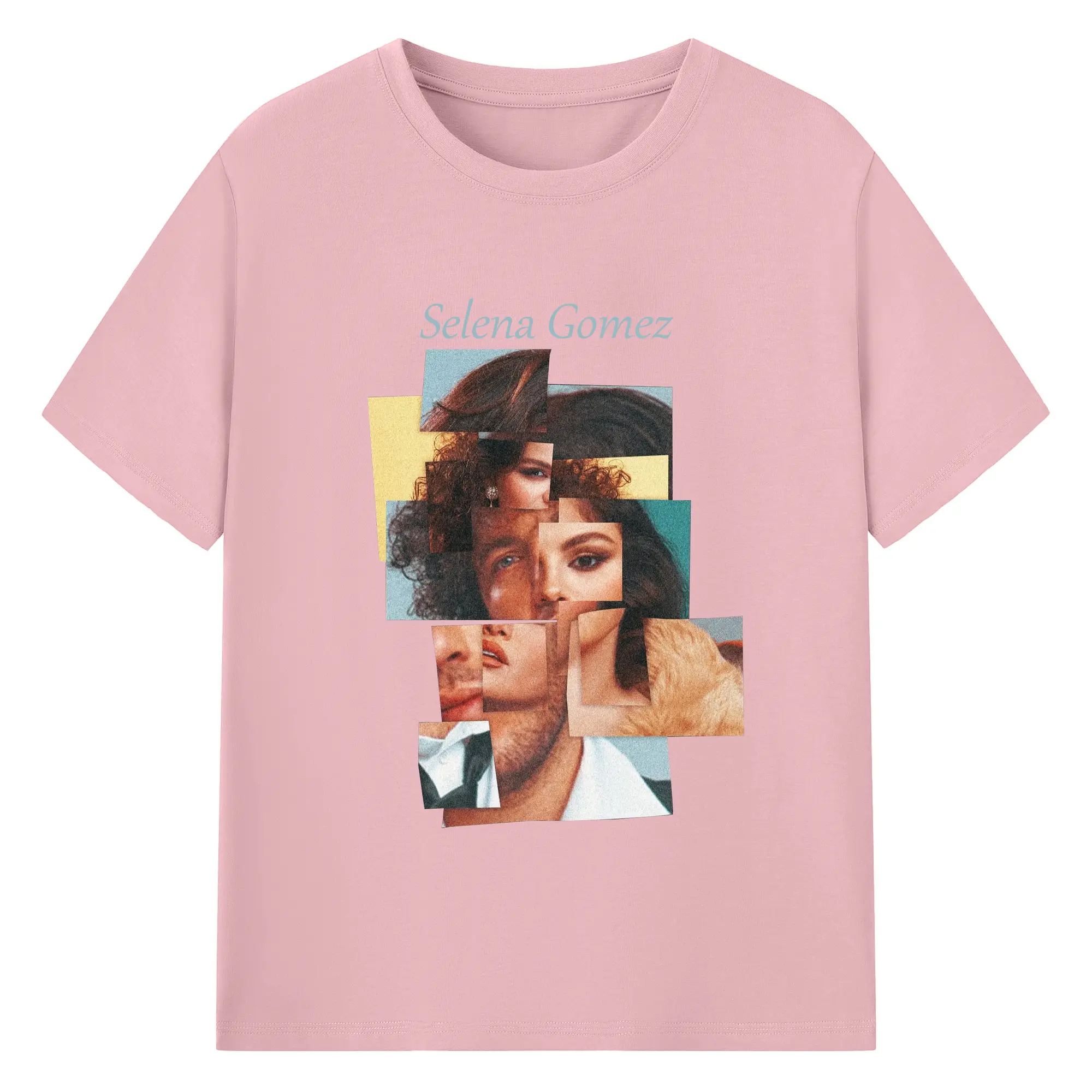 Selena Gomez Abstract Art Collage DIY - 180g Cotton T-Shirt With Front Heat Transfer Print – Soft, Lightweight, Fitted Design – Comfortable Casual Wear For Sports & Everyday Use