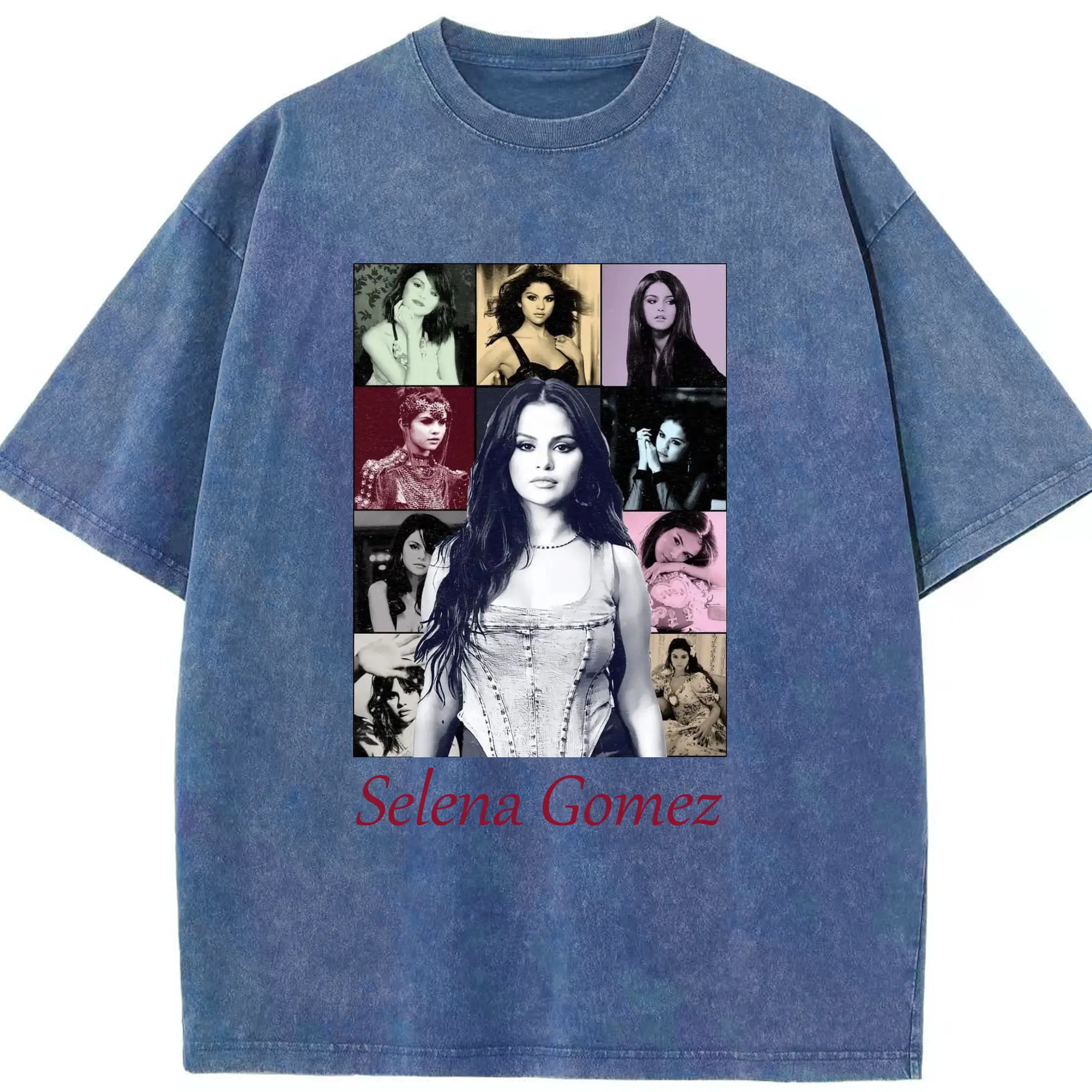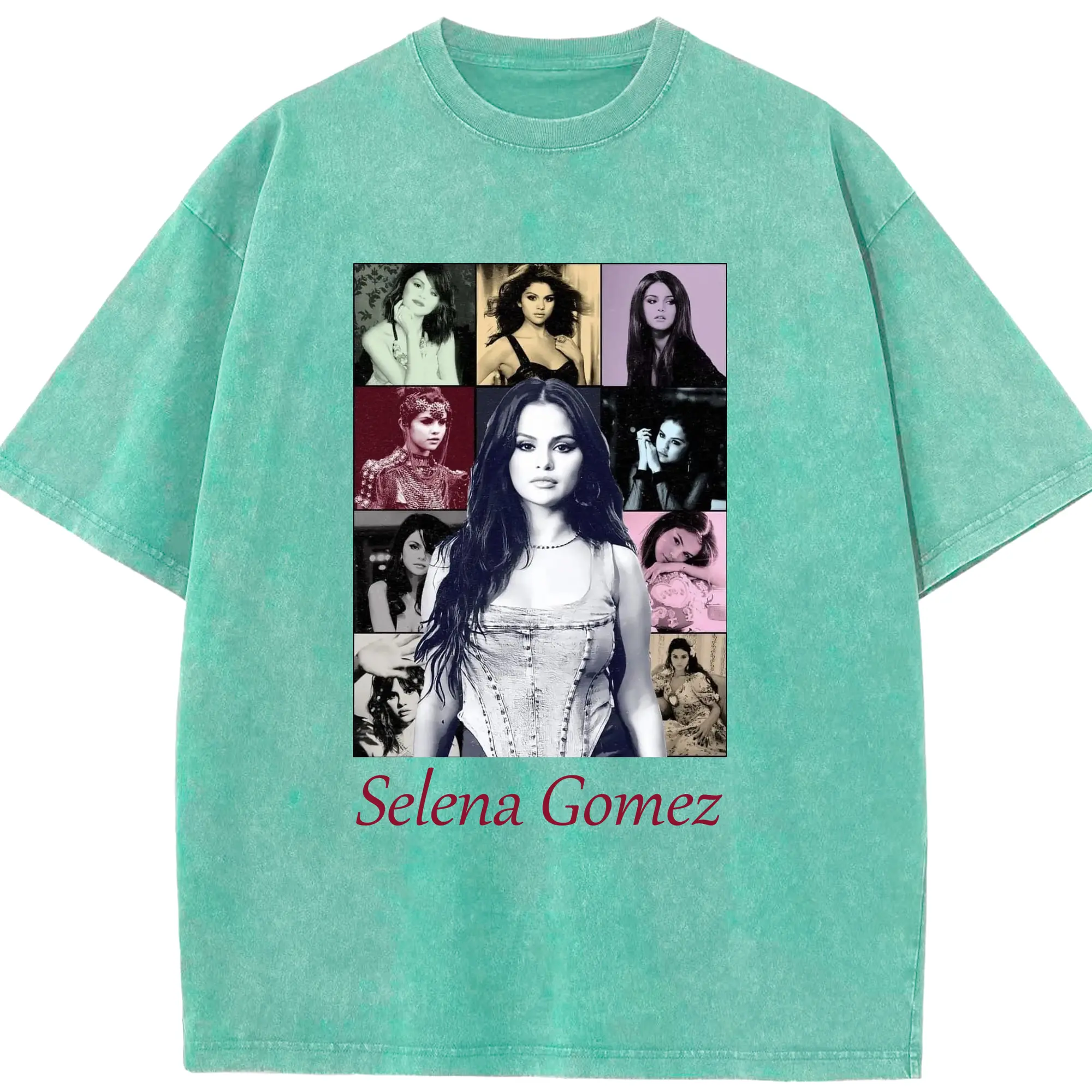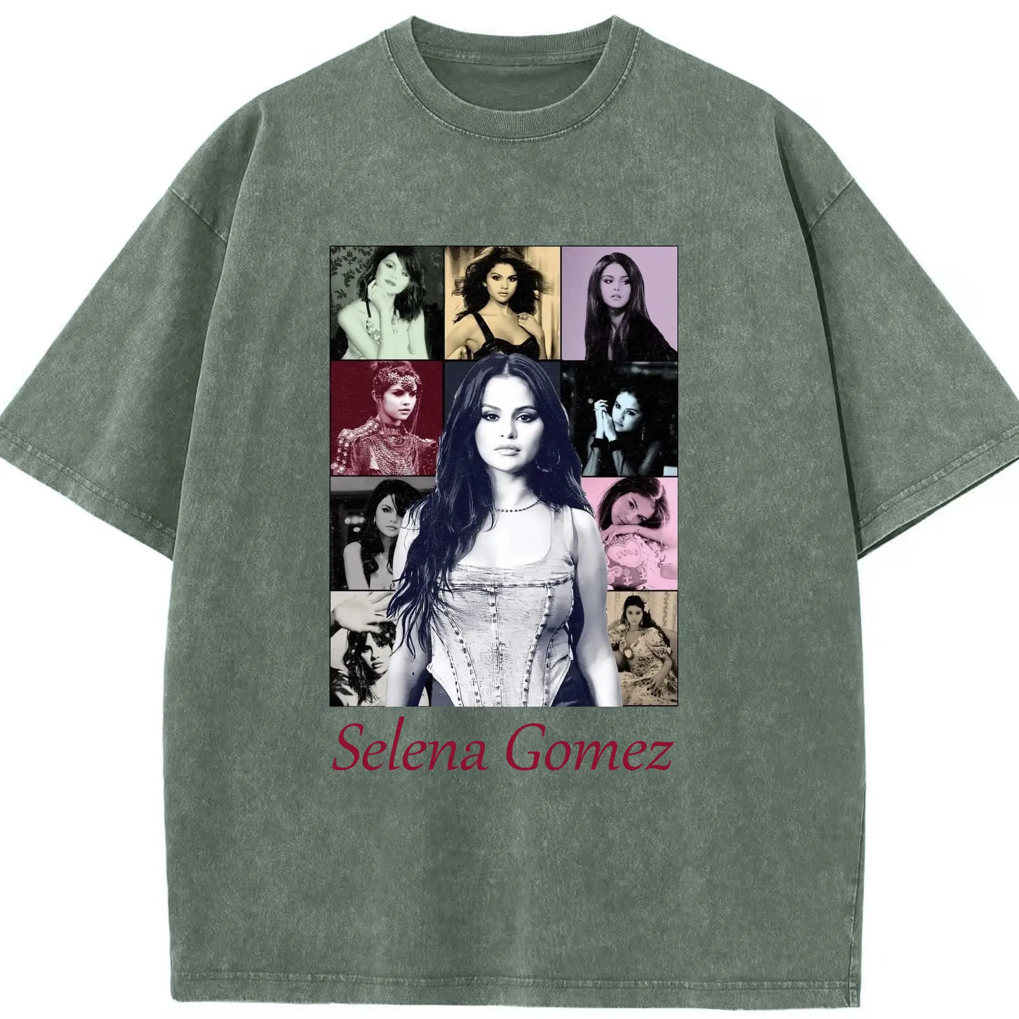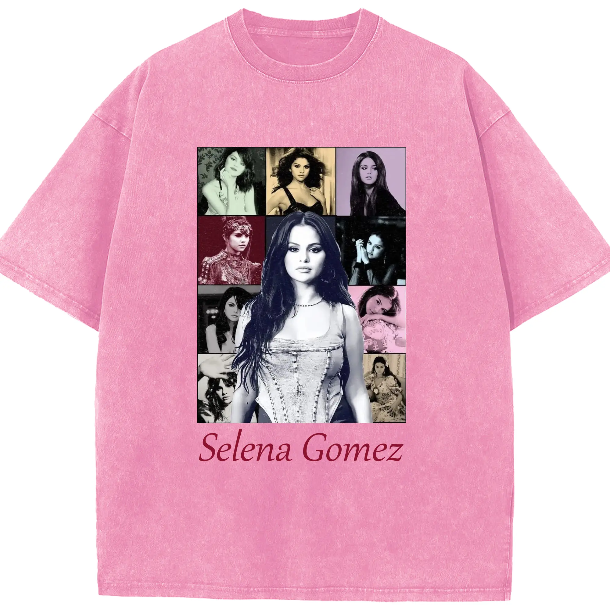 Selena Gomez Retro Collage DIY - Washed Vintage Look 230g Cotton Oversized T-Shirt With Front Heat Transfer Print – Soft, Lightweight, Stylish Fit – Comfortable Casual Wear For Sports & Everyday Use