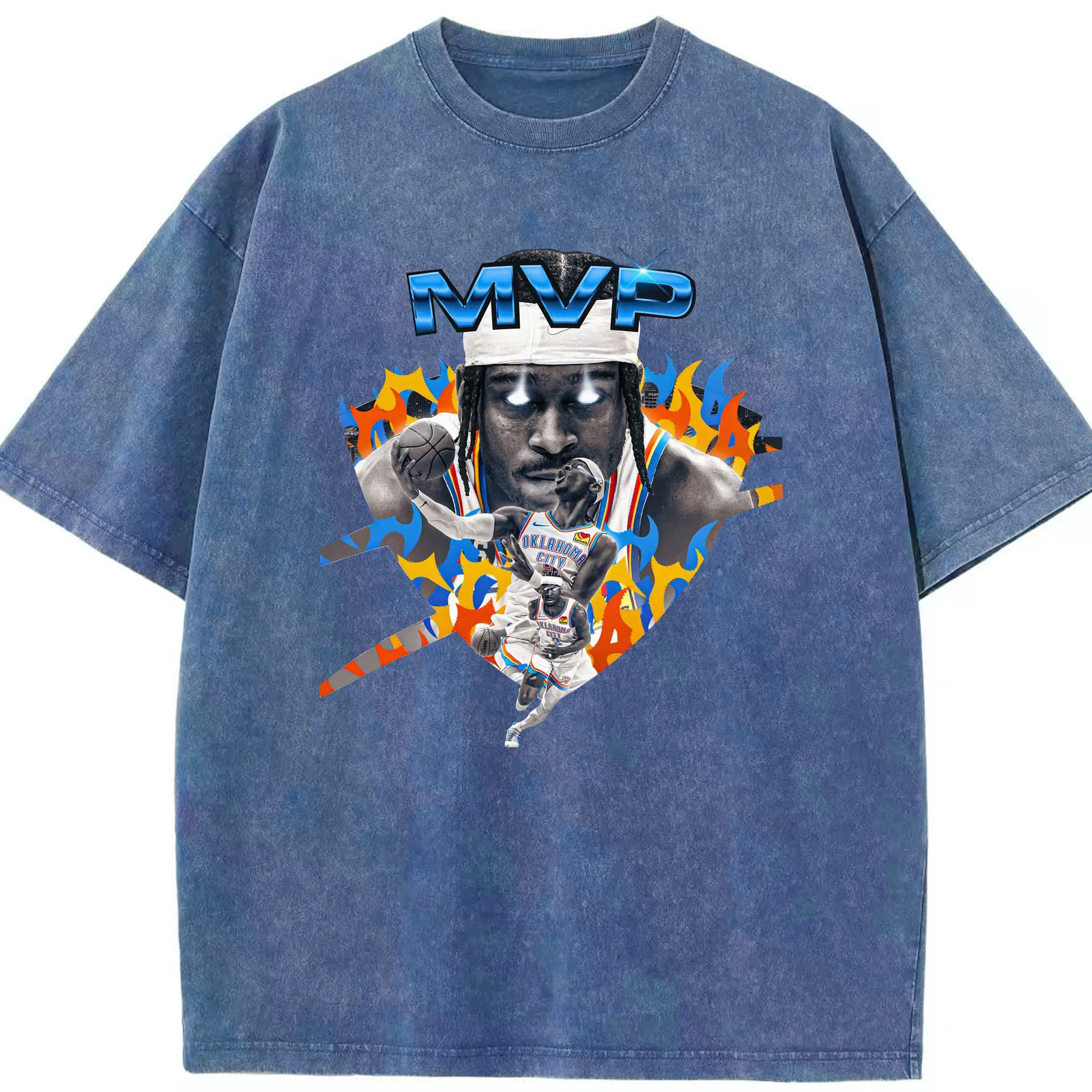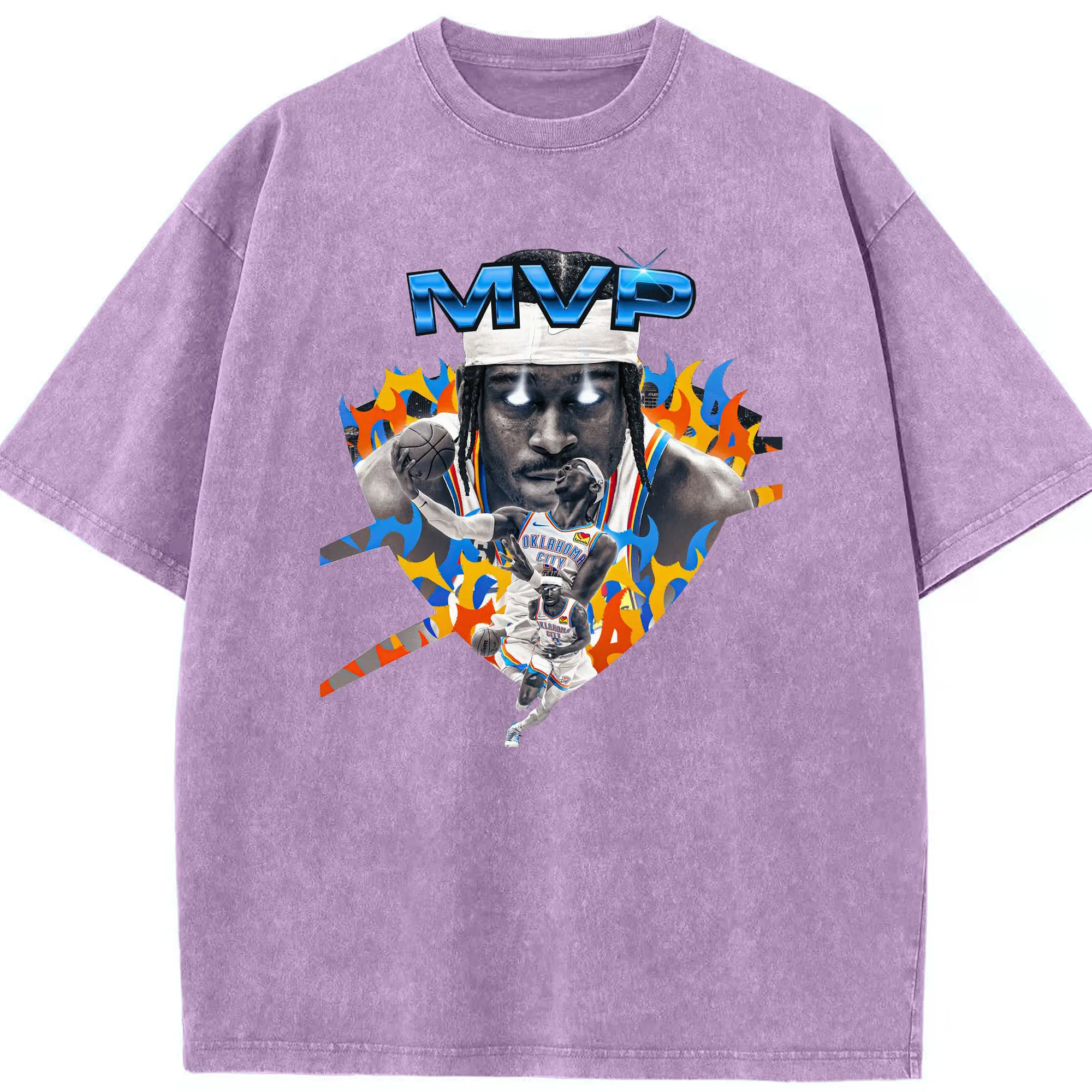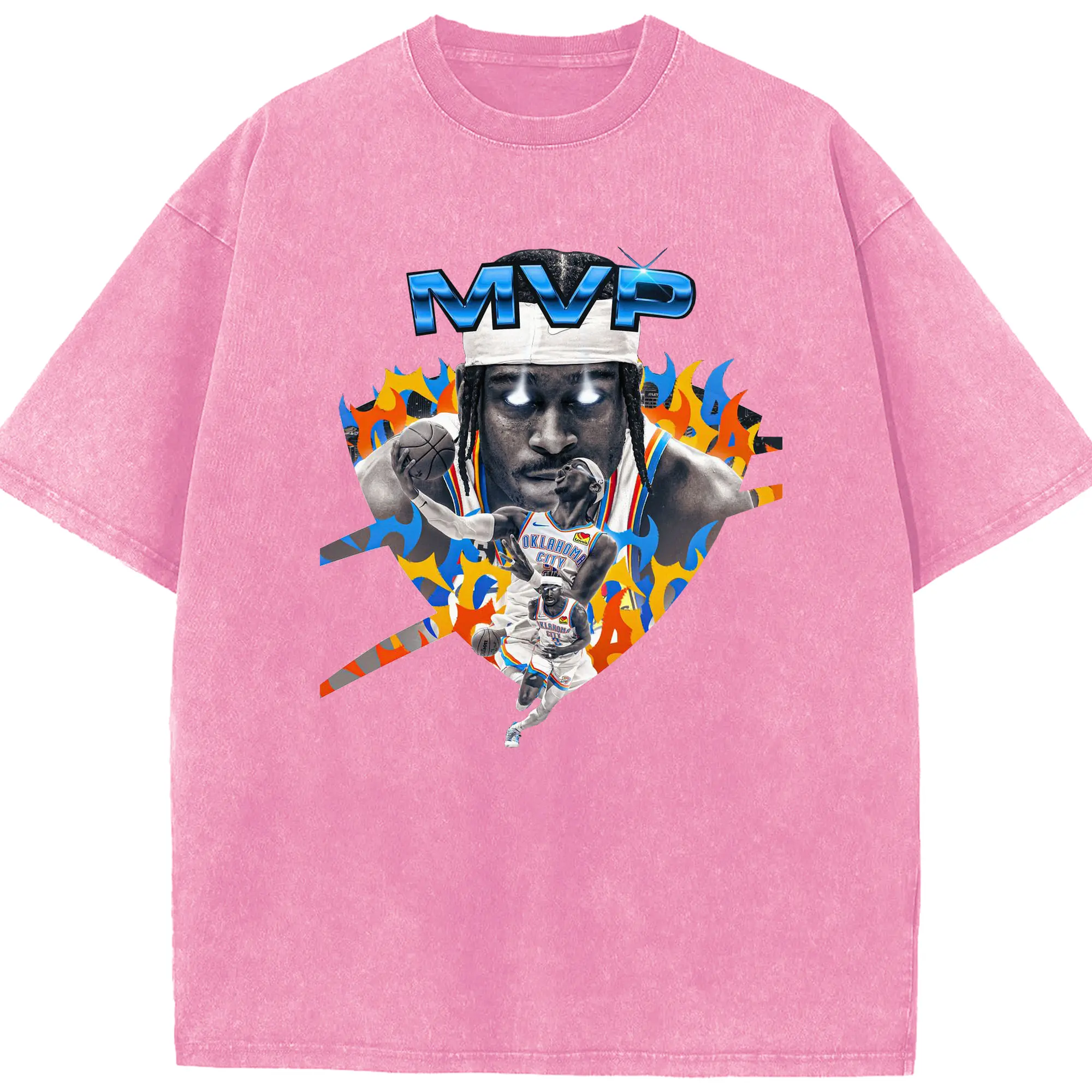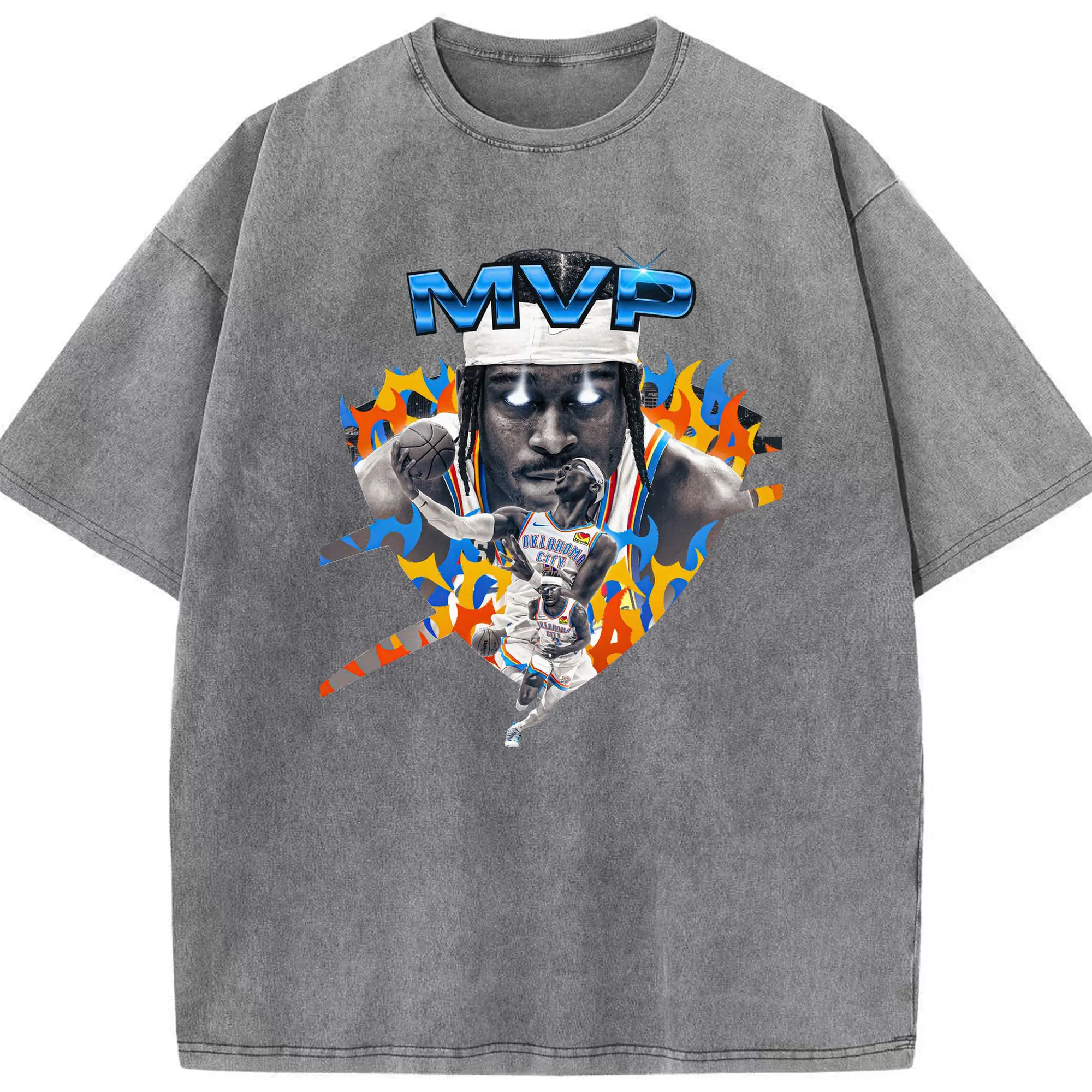 SGA MVP Electric Flame Graphic Shirt - Washed Vintage Look 230g Cotton Oversized T-Shirt With Front Heat Transfer Print – Soft, Lightweight, Stylish Fit – Comfortable Casual Wear For Sports & Everyday Use