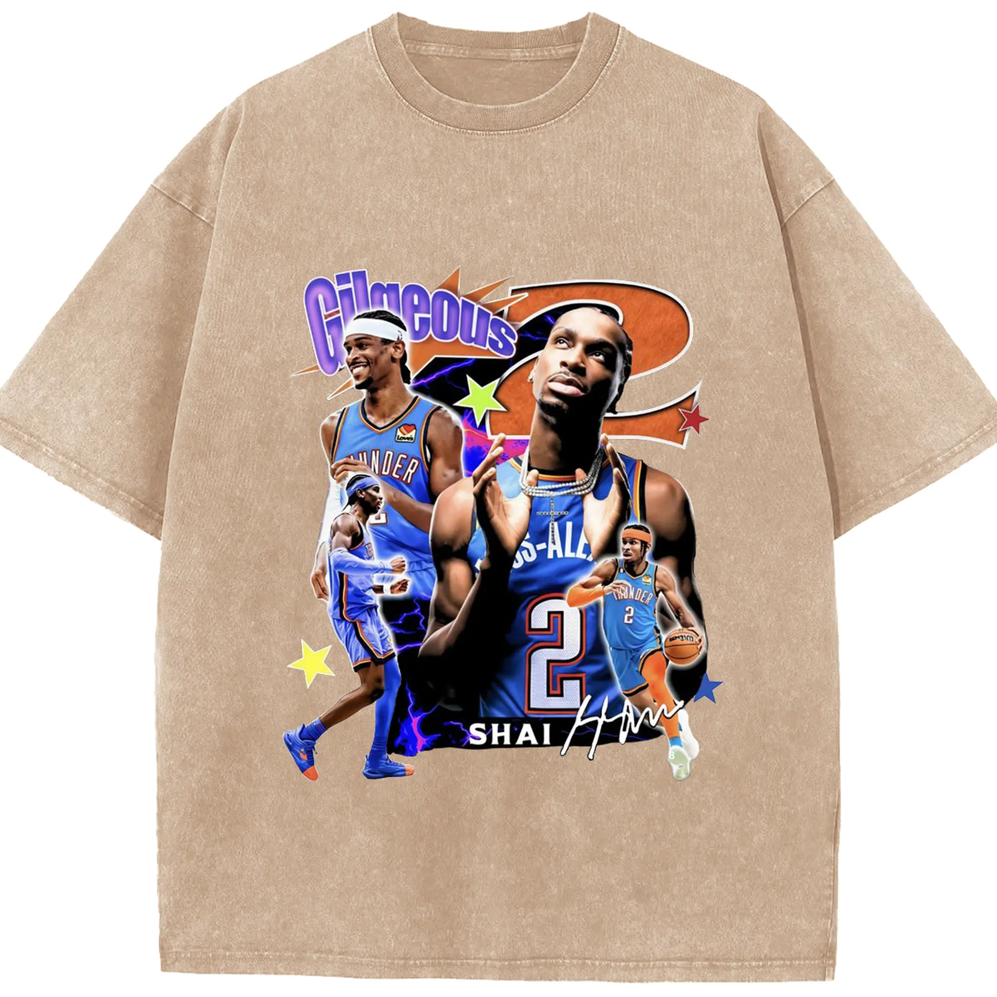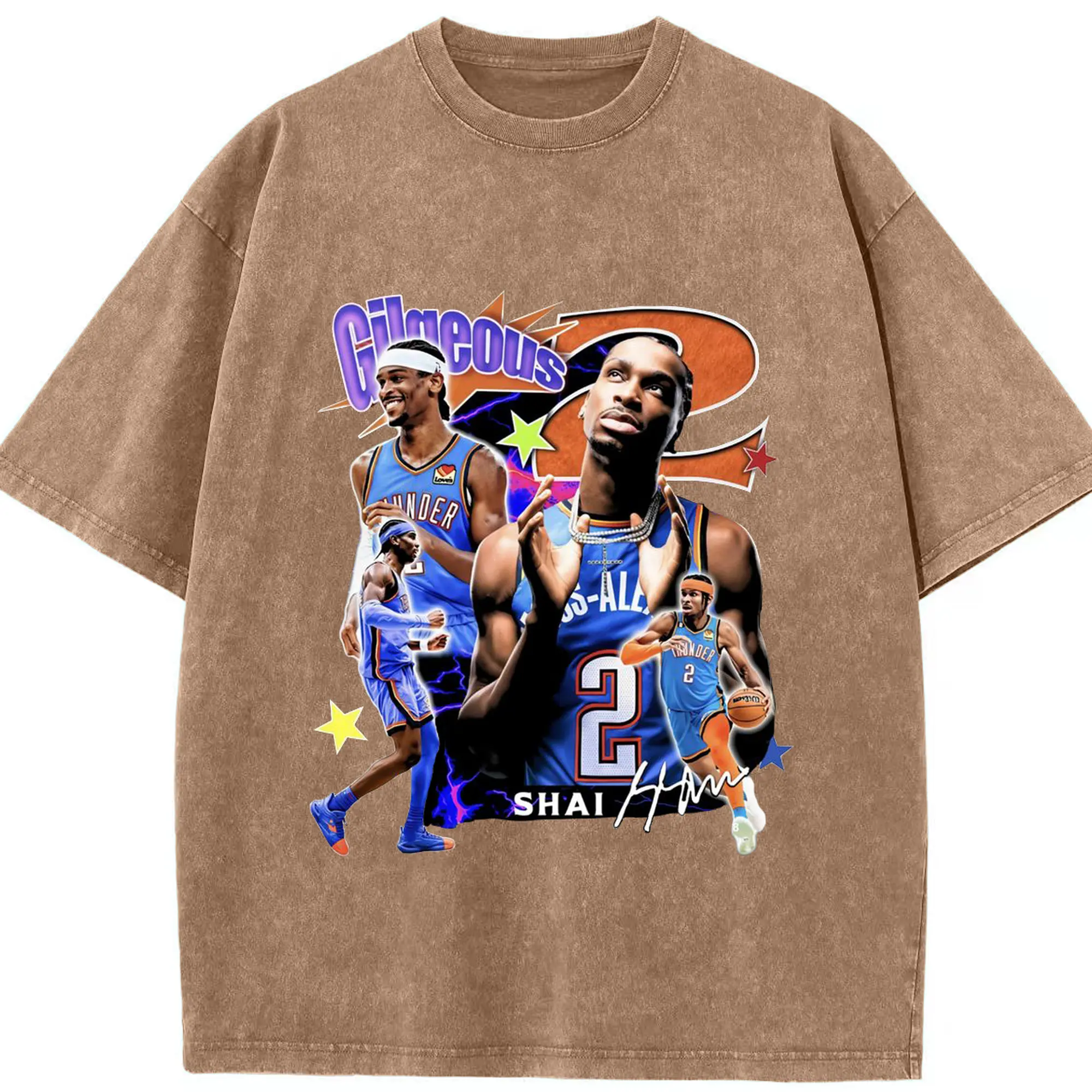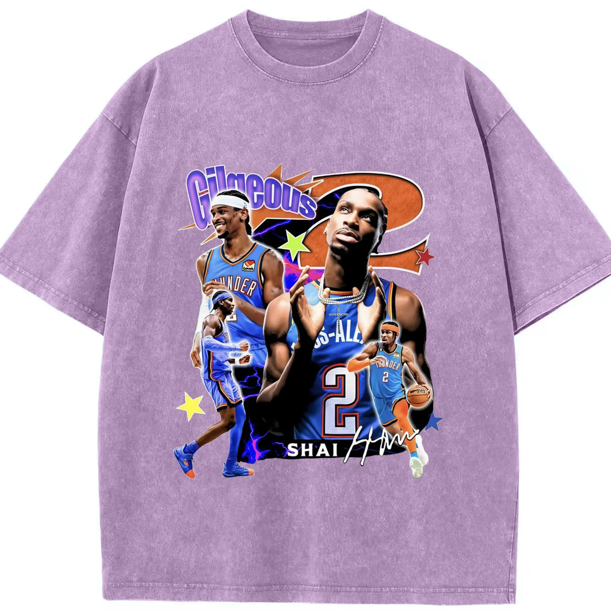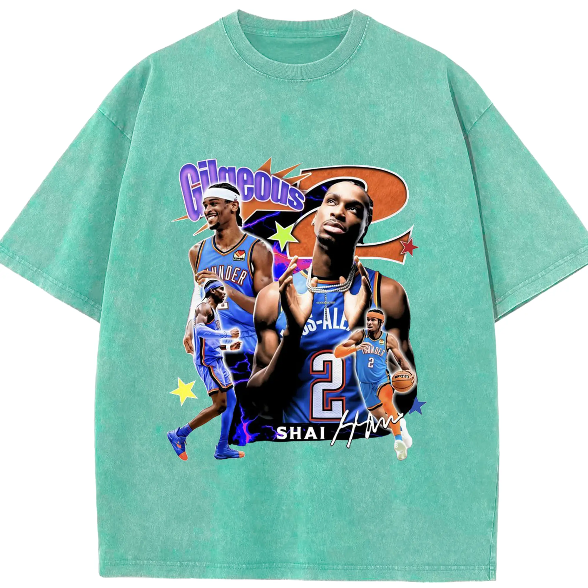 SGA Thunder #2 Player Streetstyle Shirt - Washed Vintage Look 230g Cotton Oversized T-Shirt With Front Heat Transfer Print – Soft, Lightweight, Stylish Fit – Comfortable Casual Wear For Sports & Everyday Use