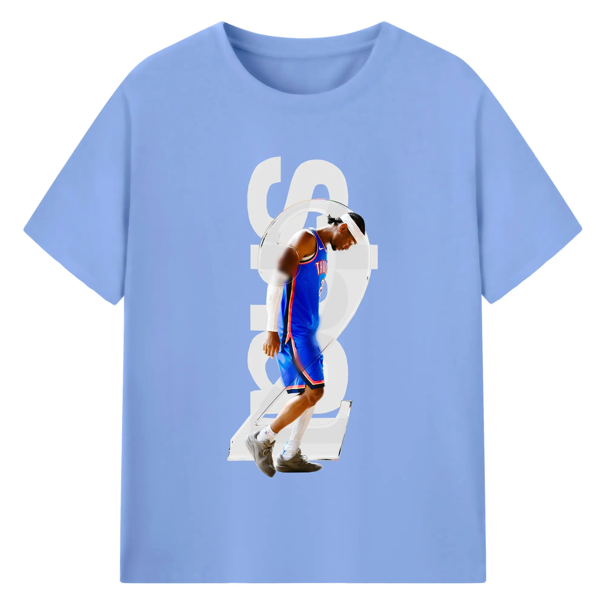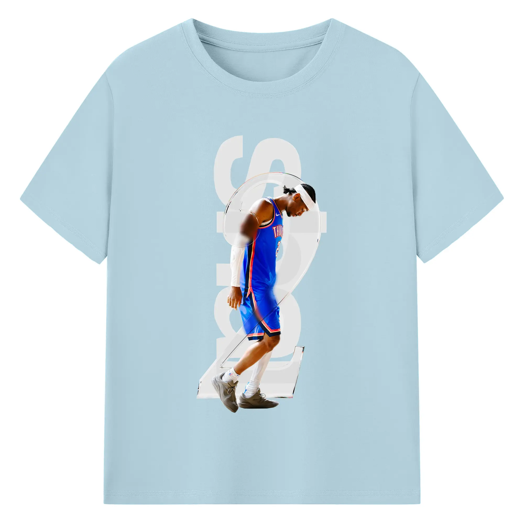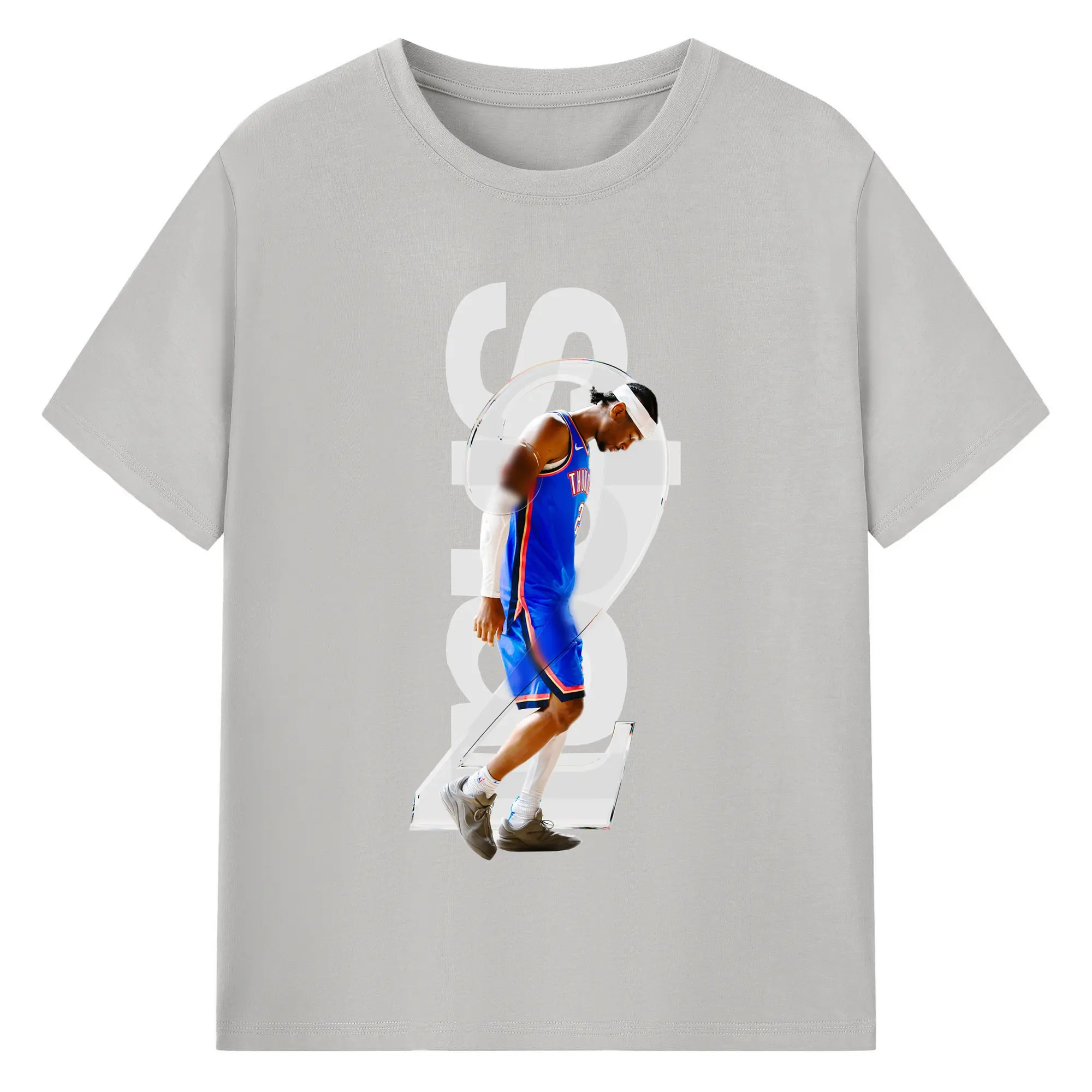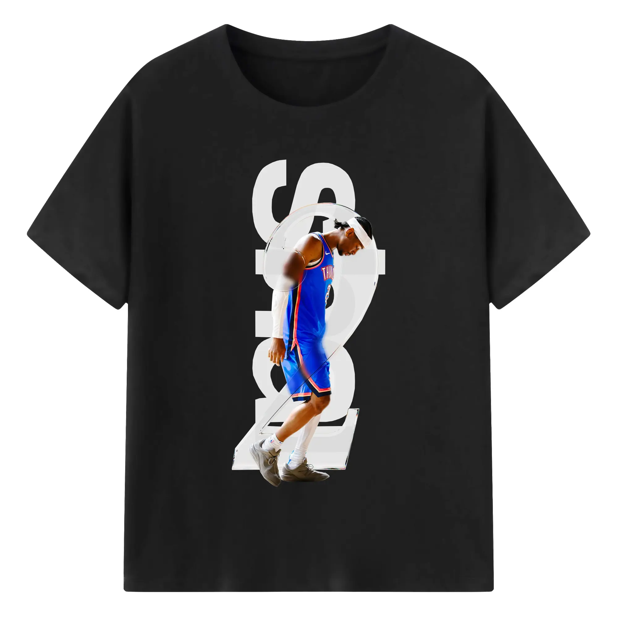 Shai Gilgeous - Alexander Transparent Number Art Shirt - 180g Cotton T-Shirt With Front Heat Transfer Print – Soft, Lightweight, Fitted Design – Comfortable Casual Wear For Sports & Everyday Use