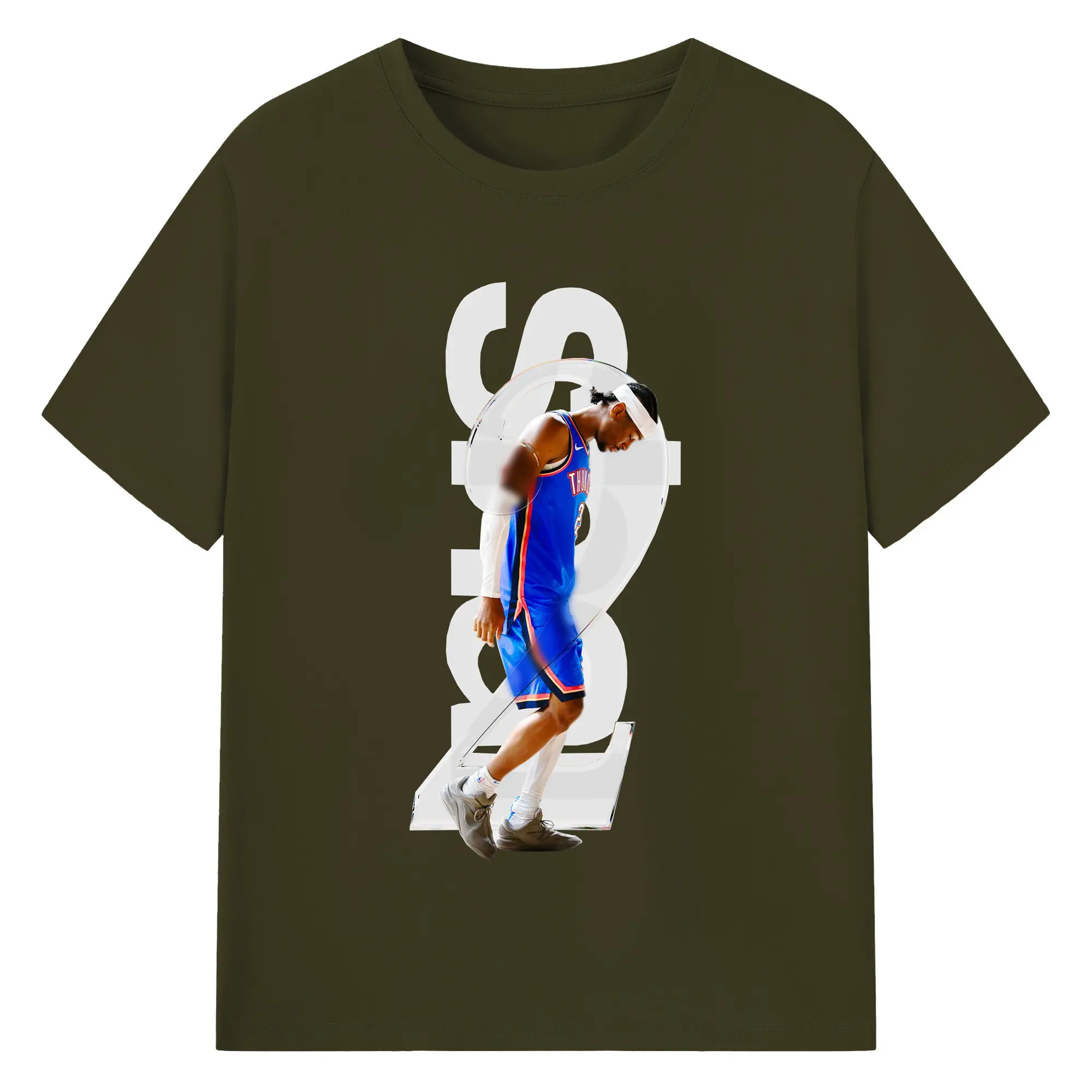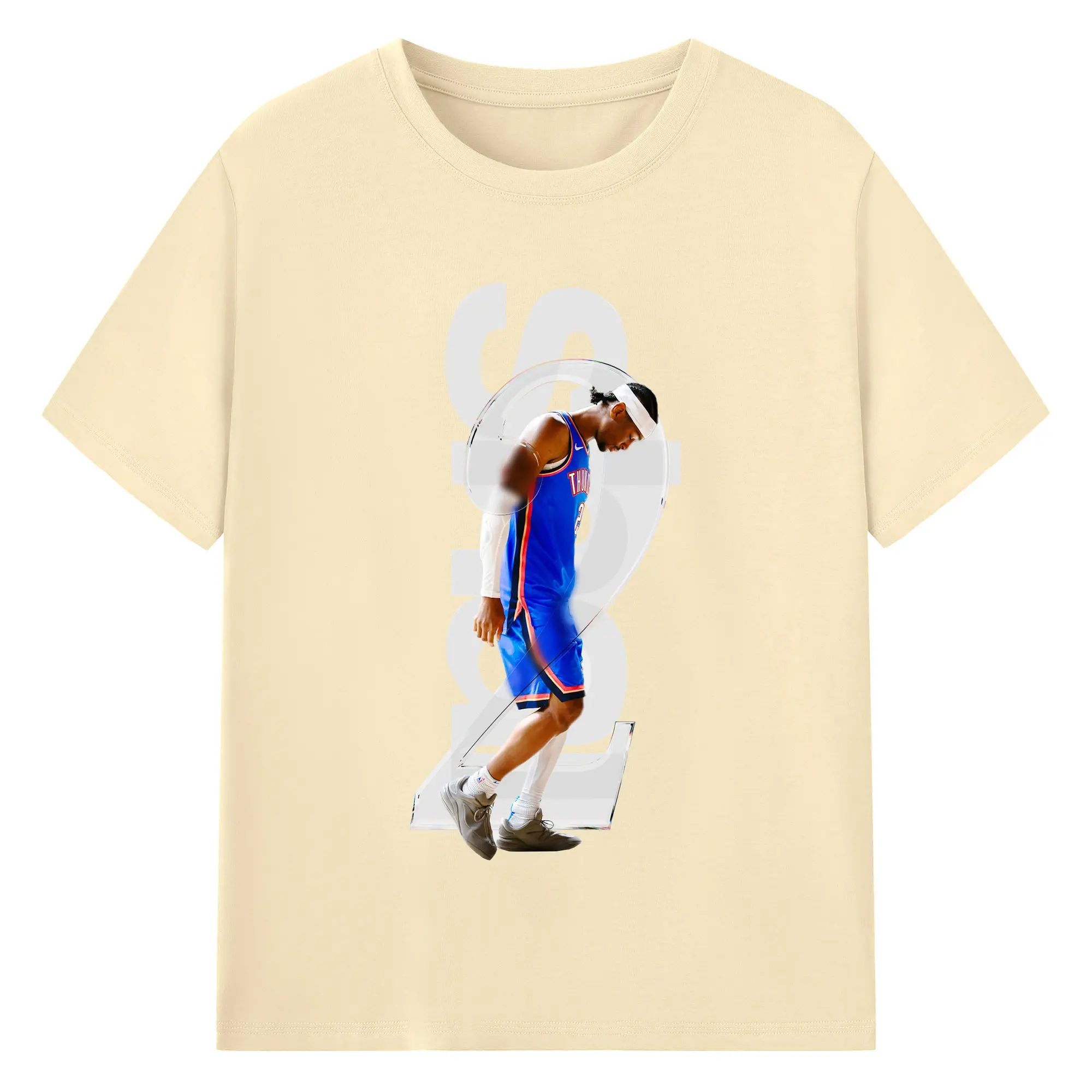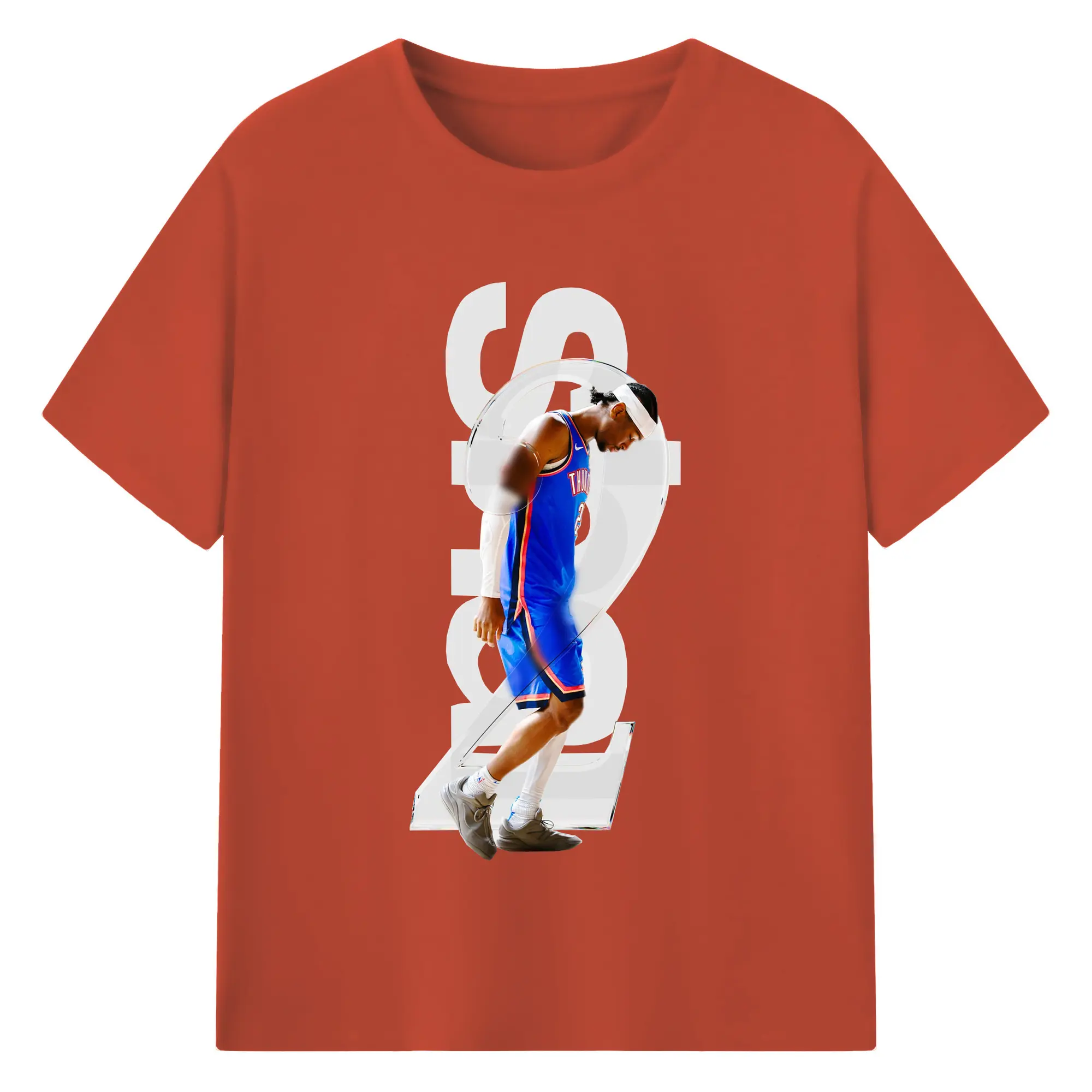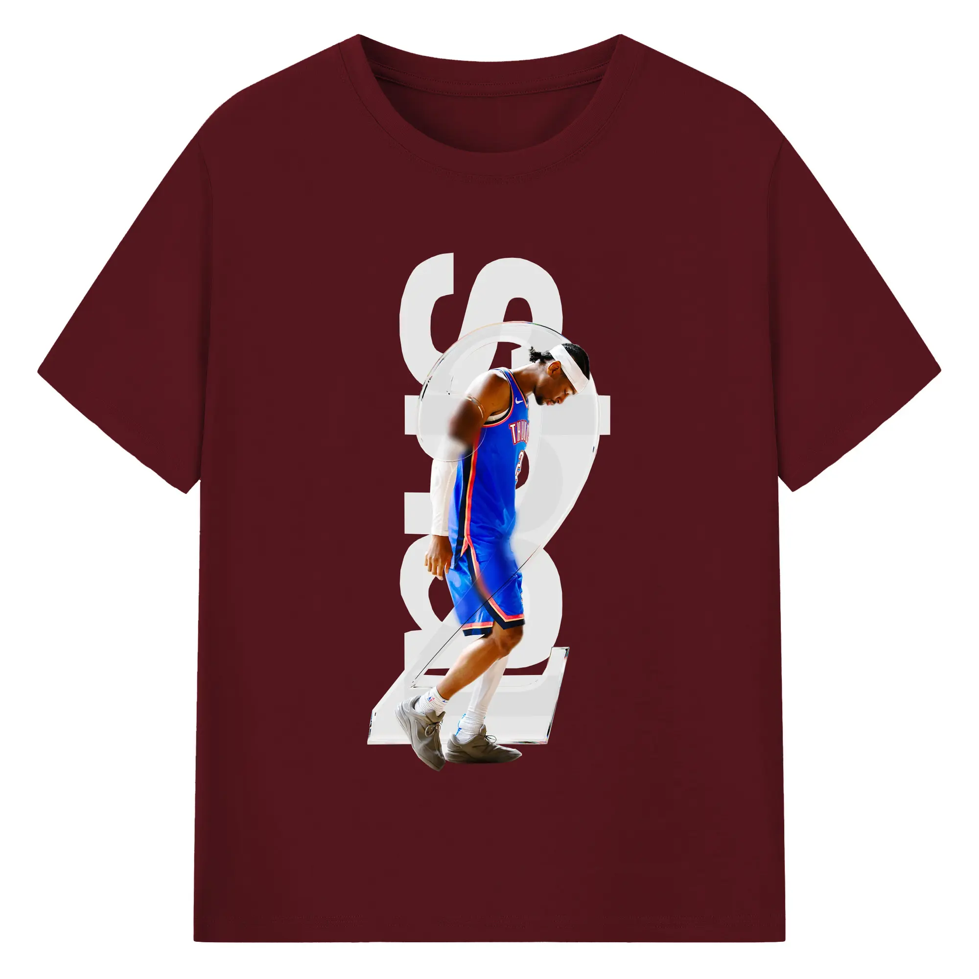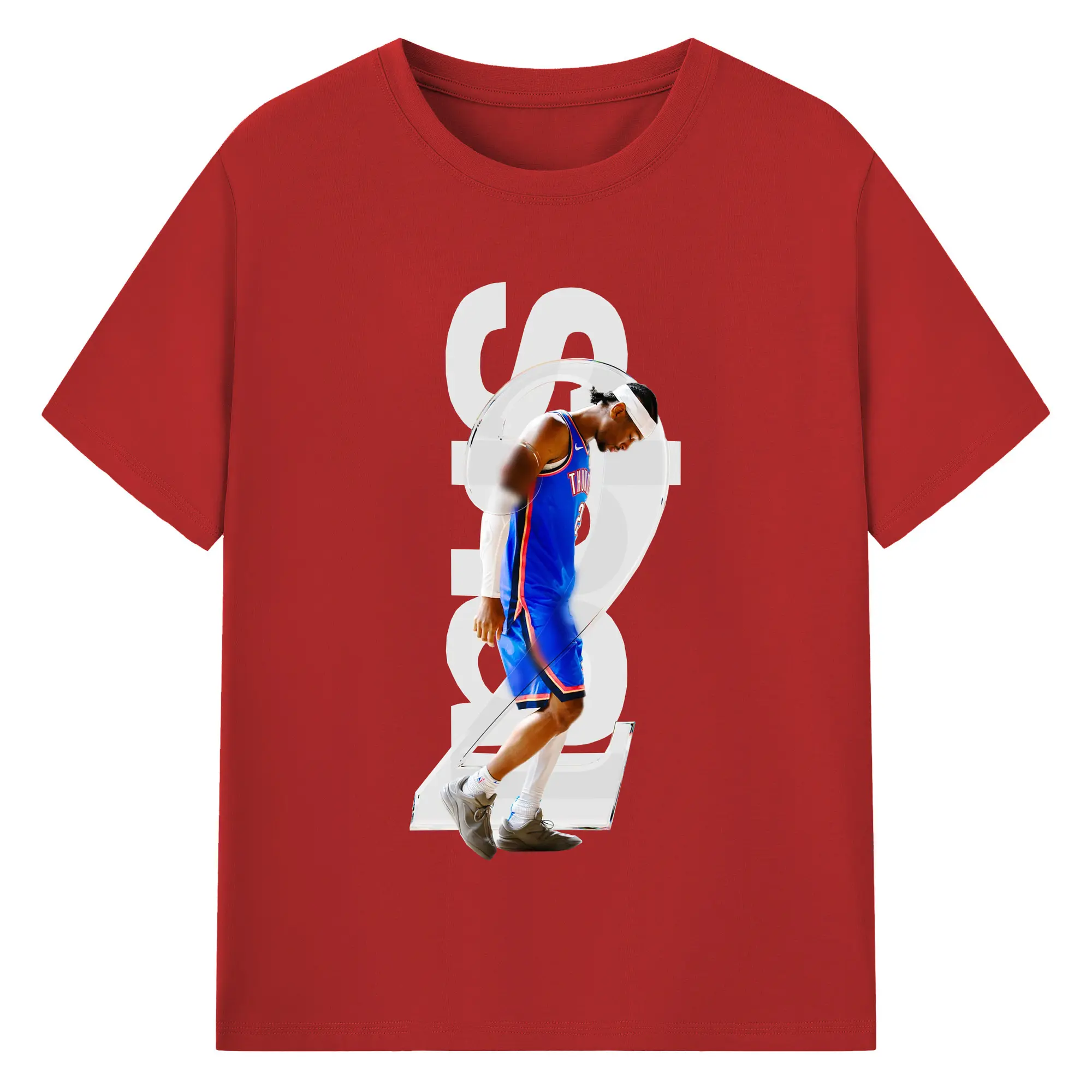 Shai Gilgeous - Alexander Transparent Number Art Shirt - 180g Cotton T-Shirt With Front Heat Transfer Print – Soft, Lightweight, Fitted Design – Comfortable Casual Wear For Sports & Everyday Use