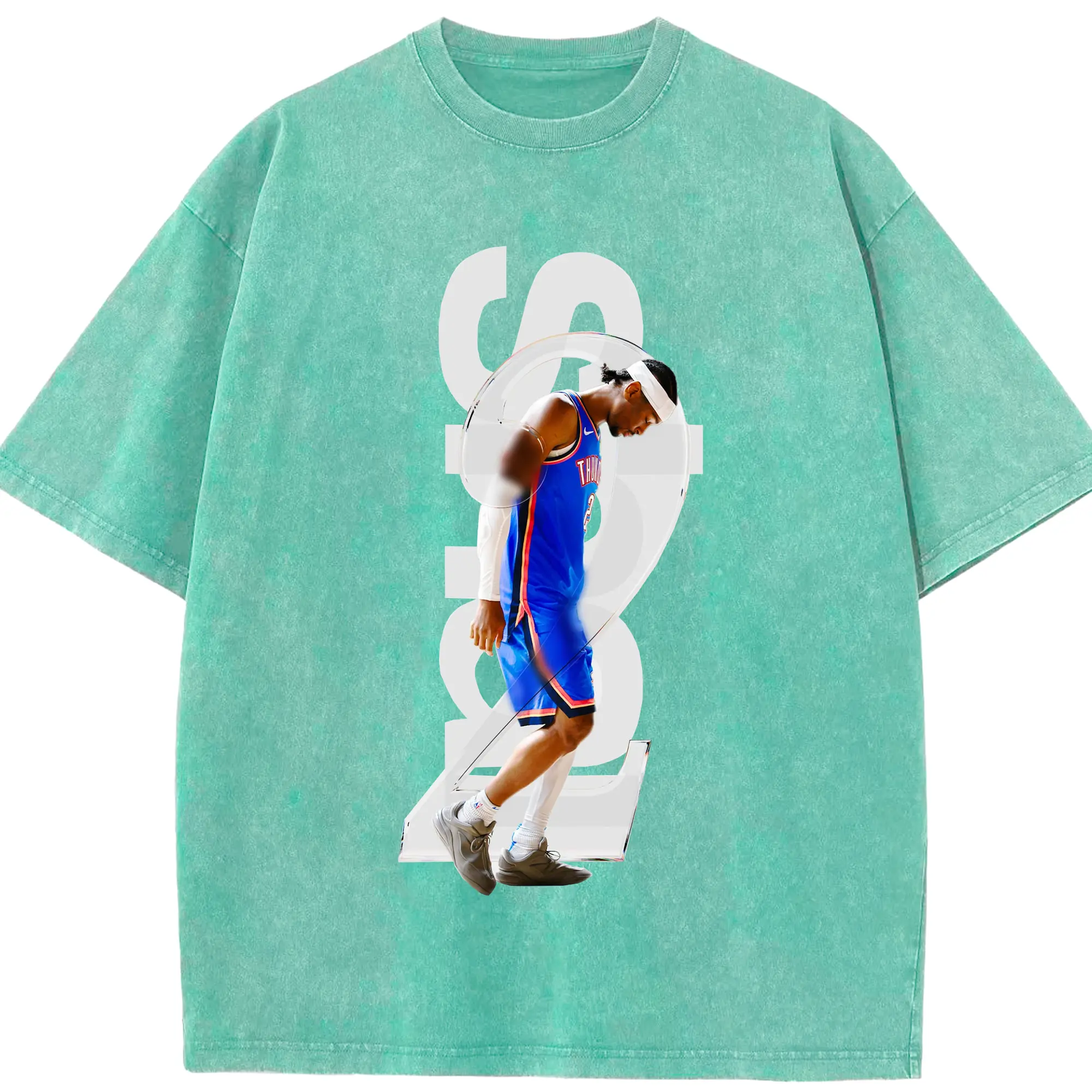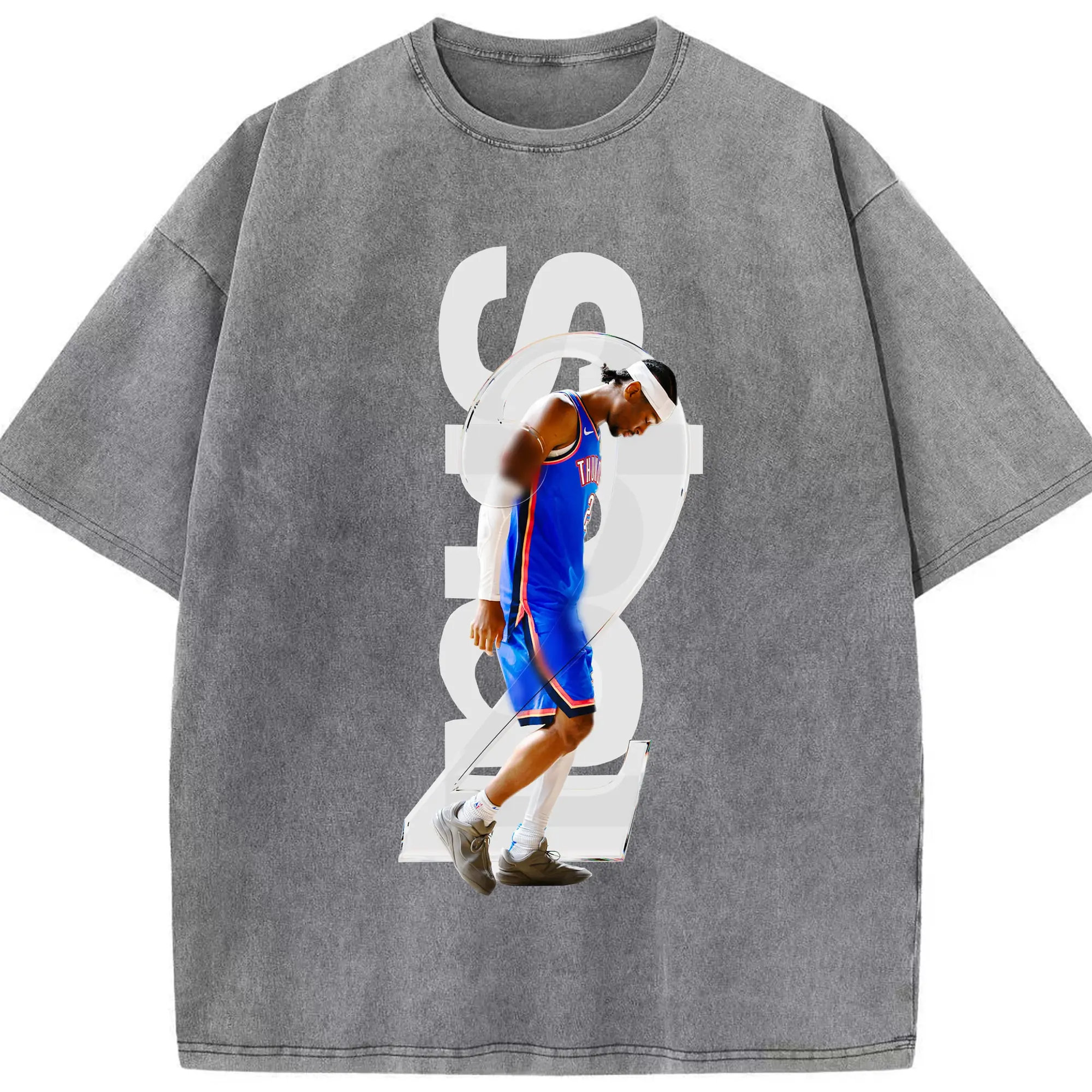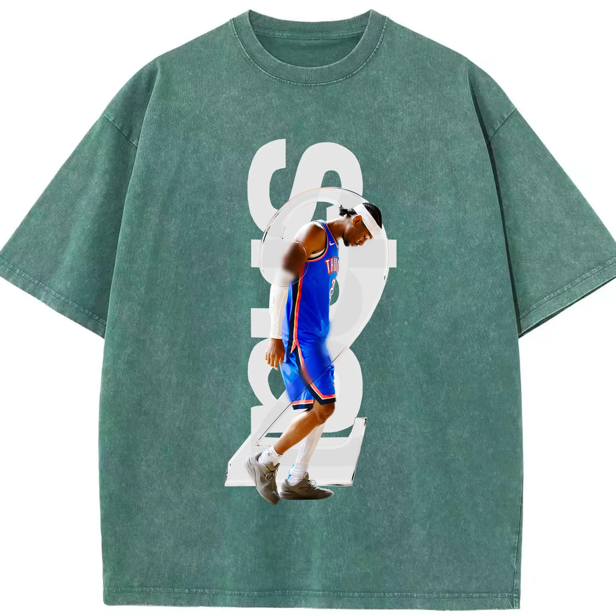 Shai Gilgeous - Alexander Transparent Number Art Shirt - Washed Vintage Look 230g Cotton Oversized T-Shirt With Front Heat Transfer Print – Soft, Lightweight, Stylish Fit – Comfortable Casual Wear For Sports & Everyday Use