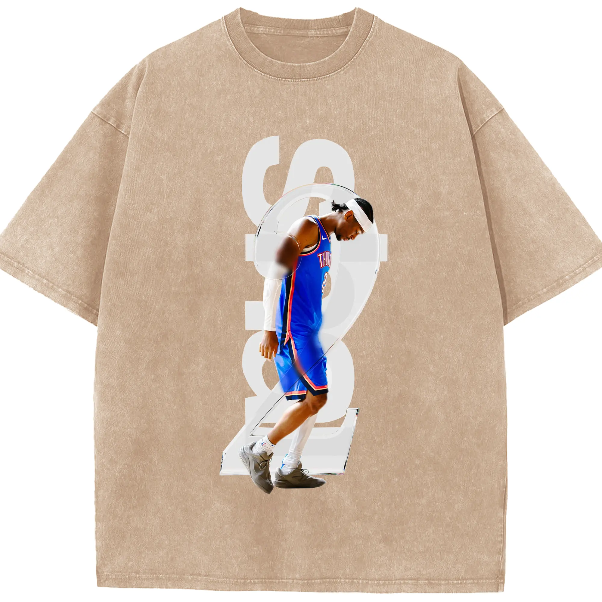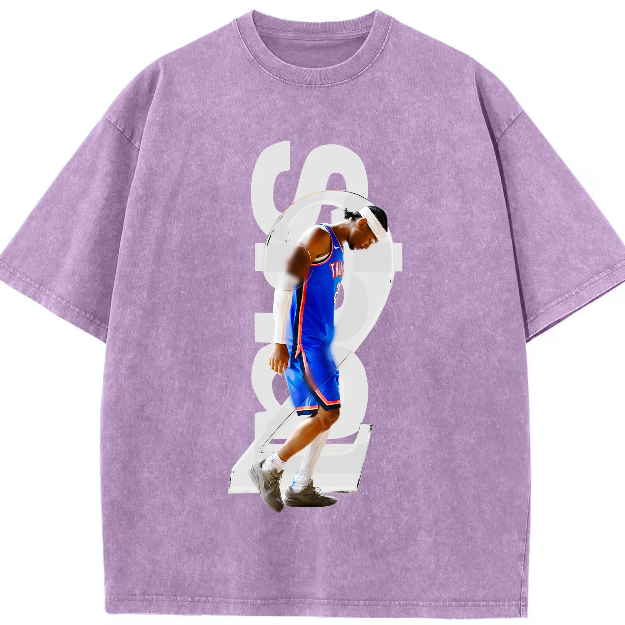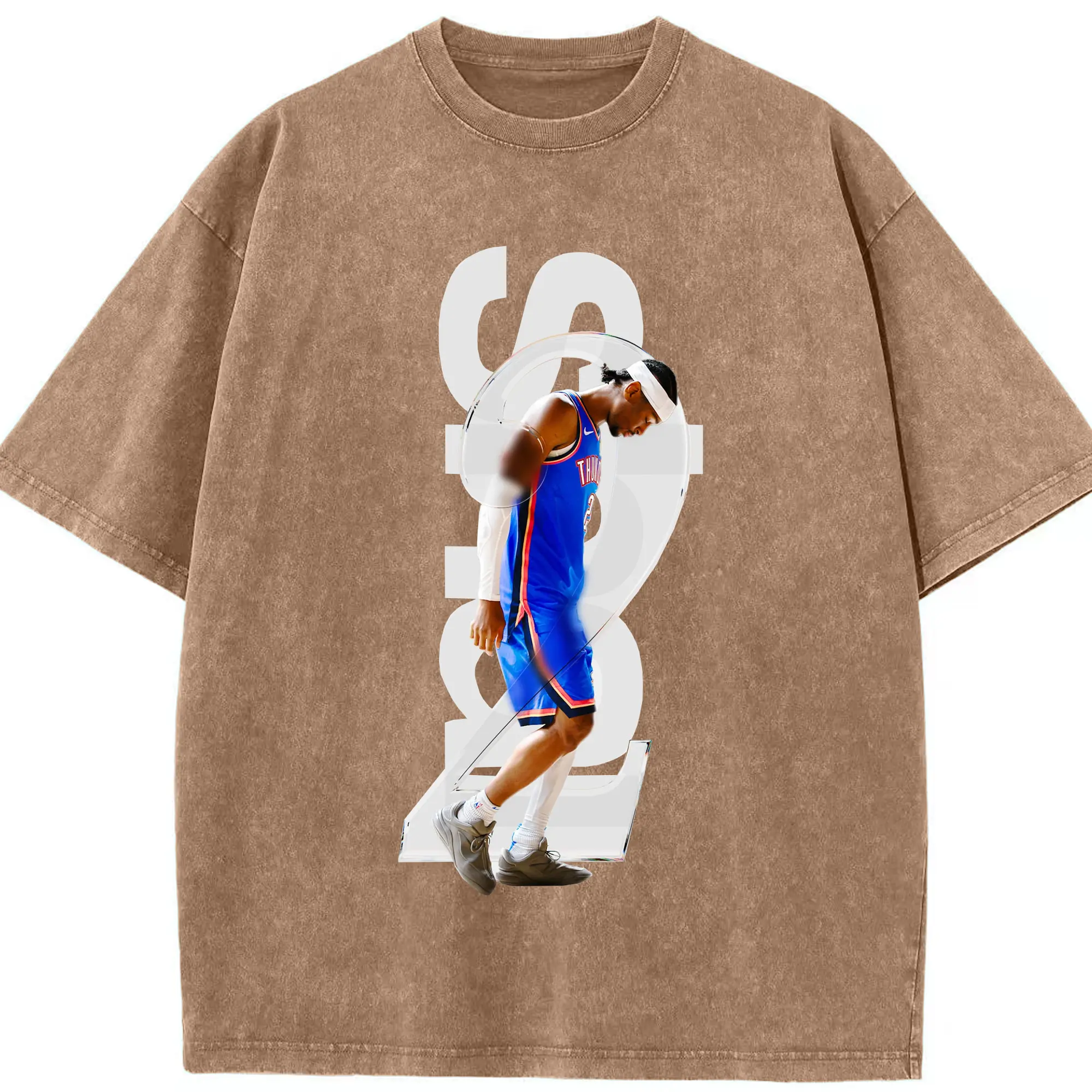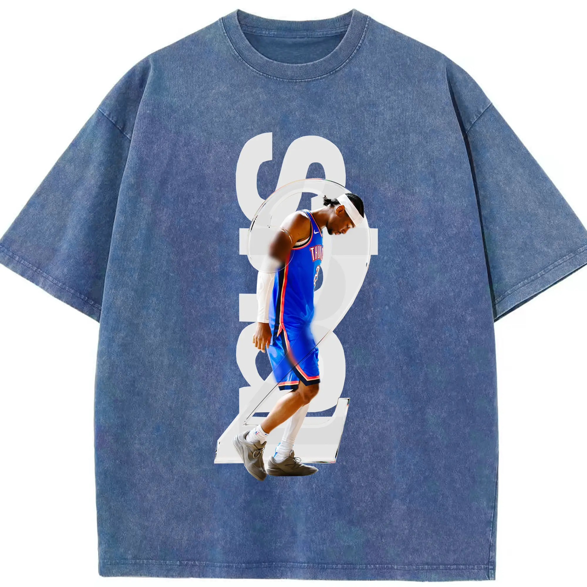 Shai Gilgeous - Alexander Transparent Number Art Shirt - Washed Vintage Look 230g Cotton Oversized T-Shirt With Front Heat Transfer Print – Soft, Lightweight, Stylish Fit – Comfortable Casual Wear For Sports & Everyday Use