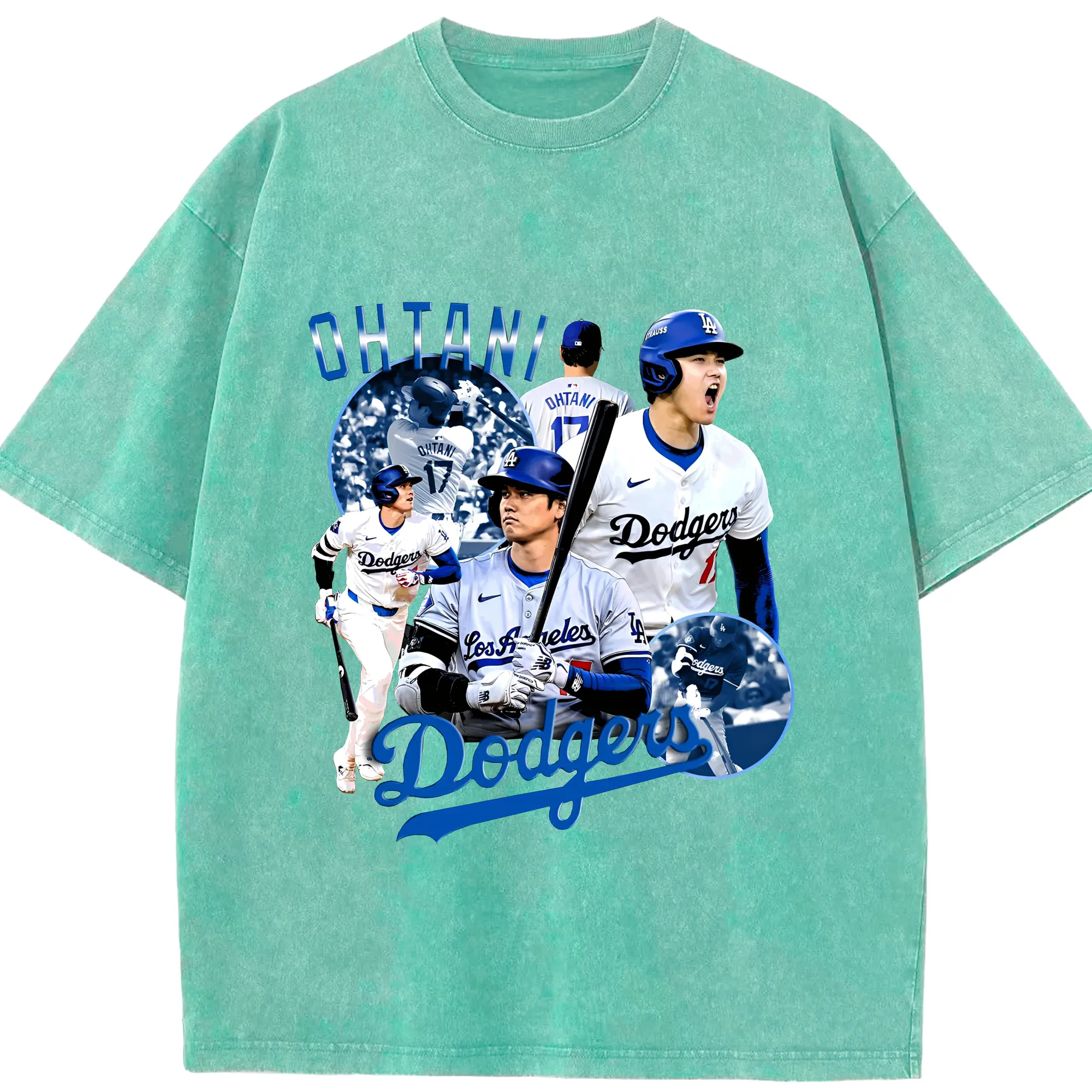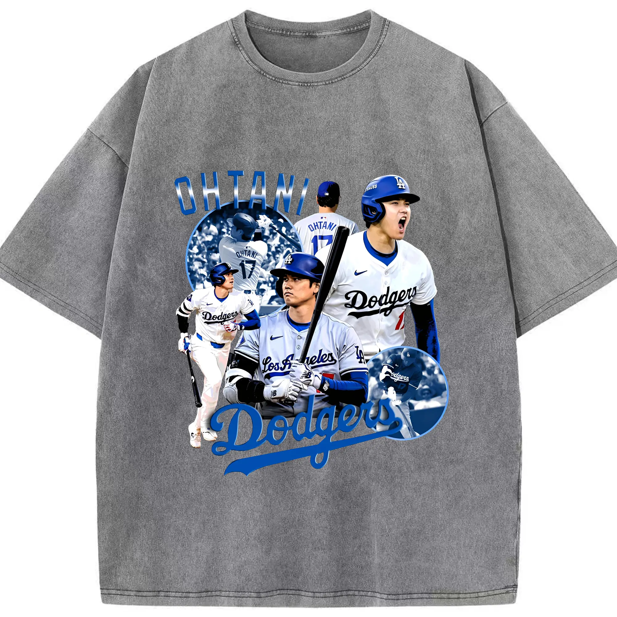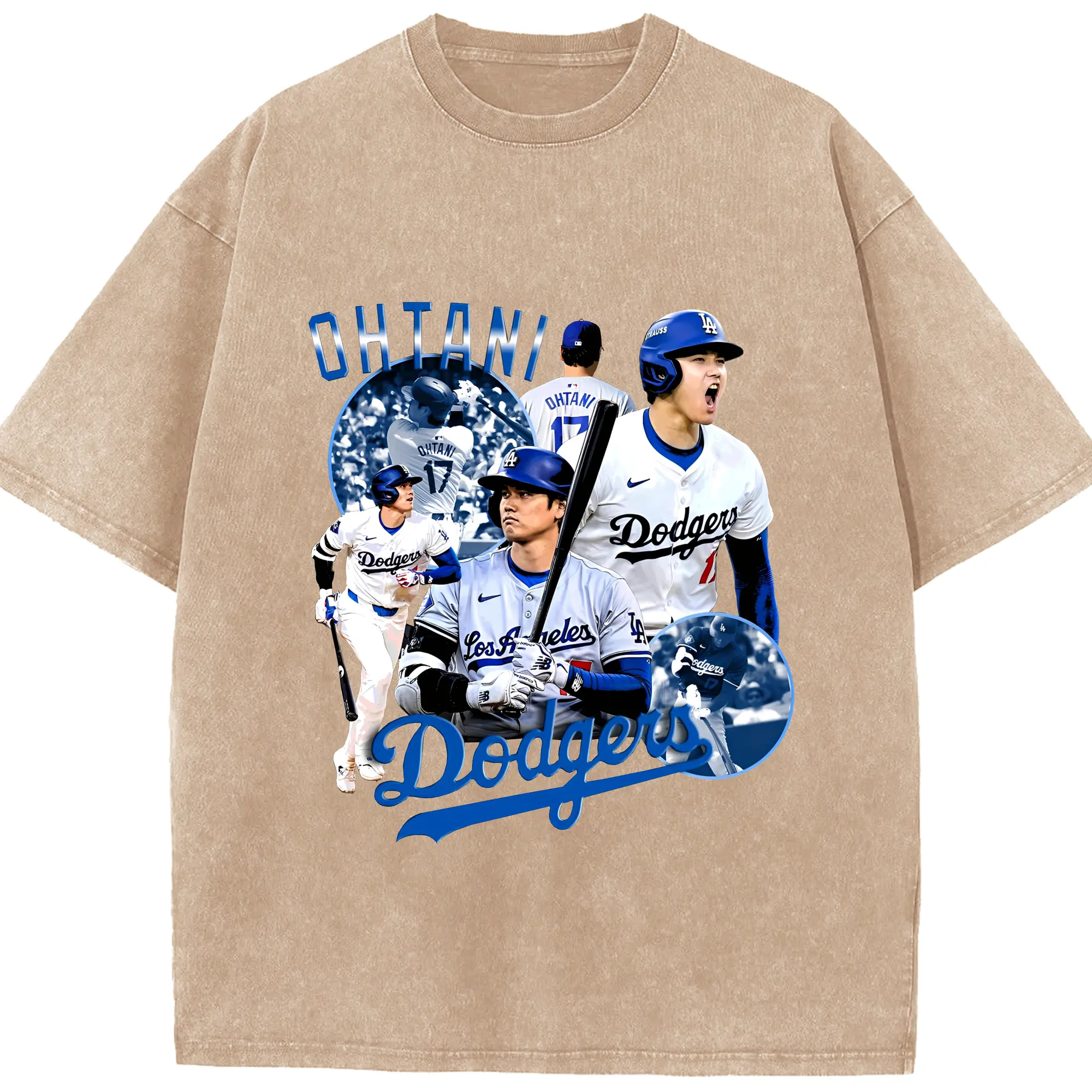 “Shohei Ohtani Dodgers MLB” Baseball Star DIY Shirt - Washed Vintage Look 230g Cotton Oversized T-Shirt With Front Heat Transfer Print – Soft, Lightweight, Stylish Fit – Comfortable Casual Wear For Sports & Everyday Use