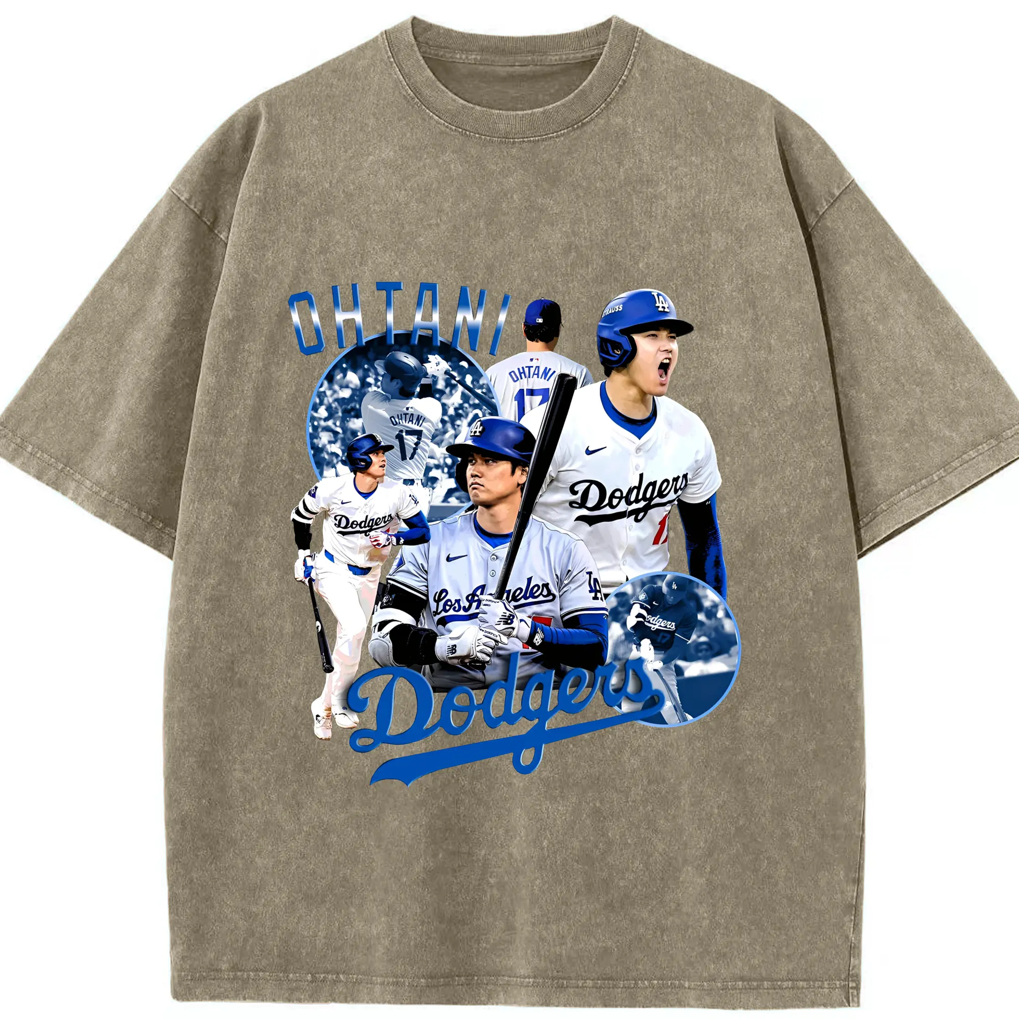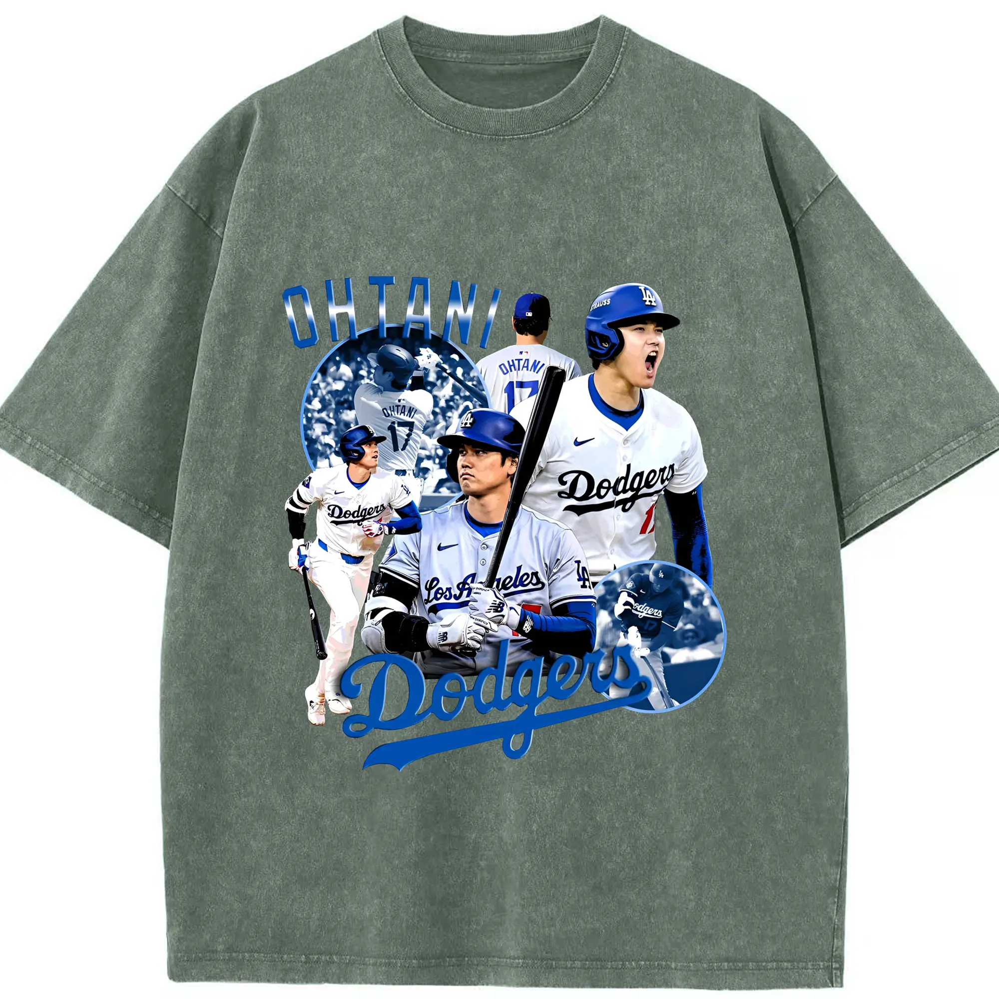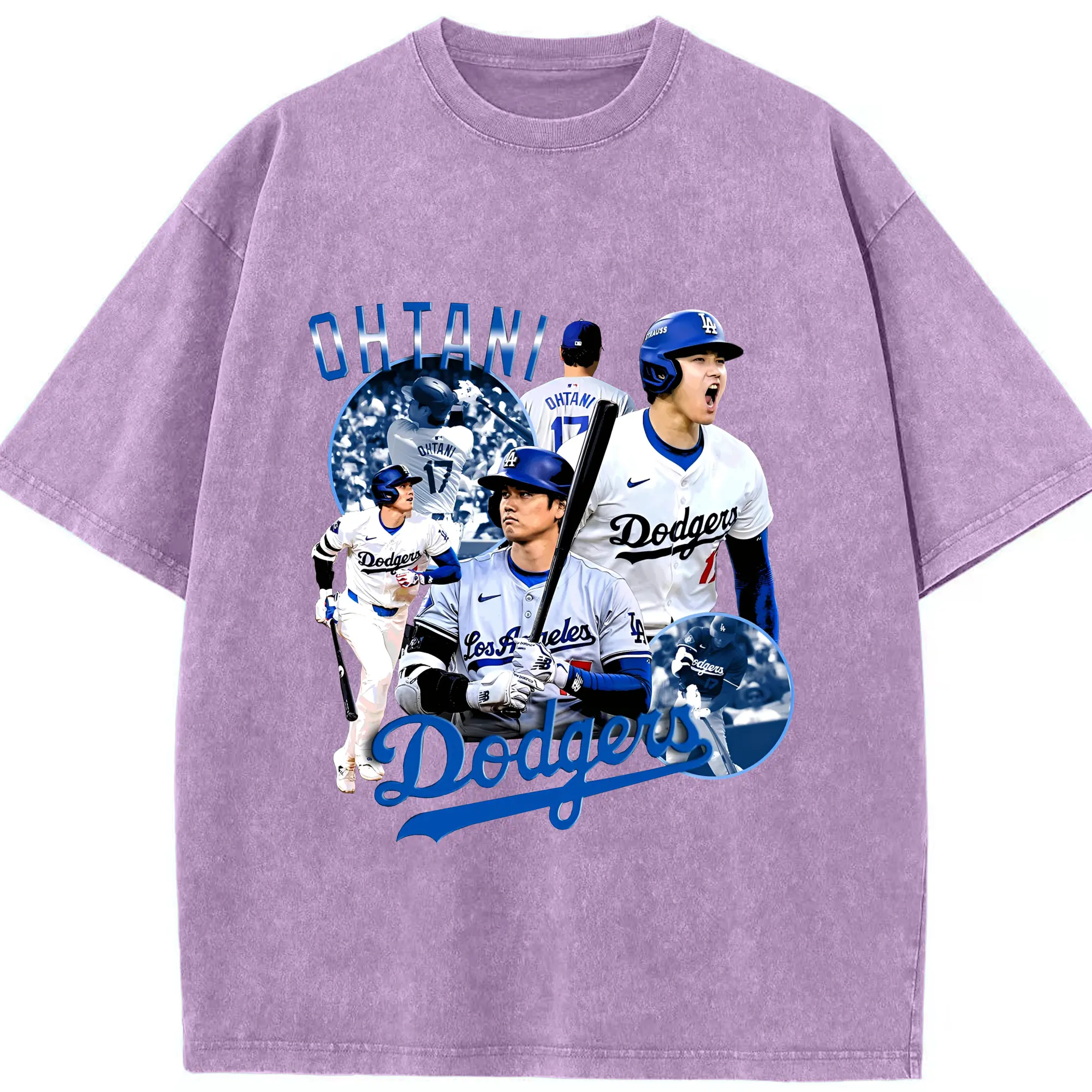 “Shohei Ohtani Dodgers MLB” Baseball Star DIY Shirt - Washed Vintage Look 230g Cotton Oversized T-Shirt With Front Heat Transfer Print – Soft, Lightweight, Stylish Fit – Comfortable Casual Wear For Sports & Everyday Use